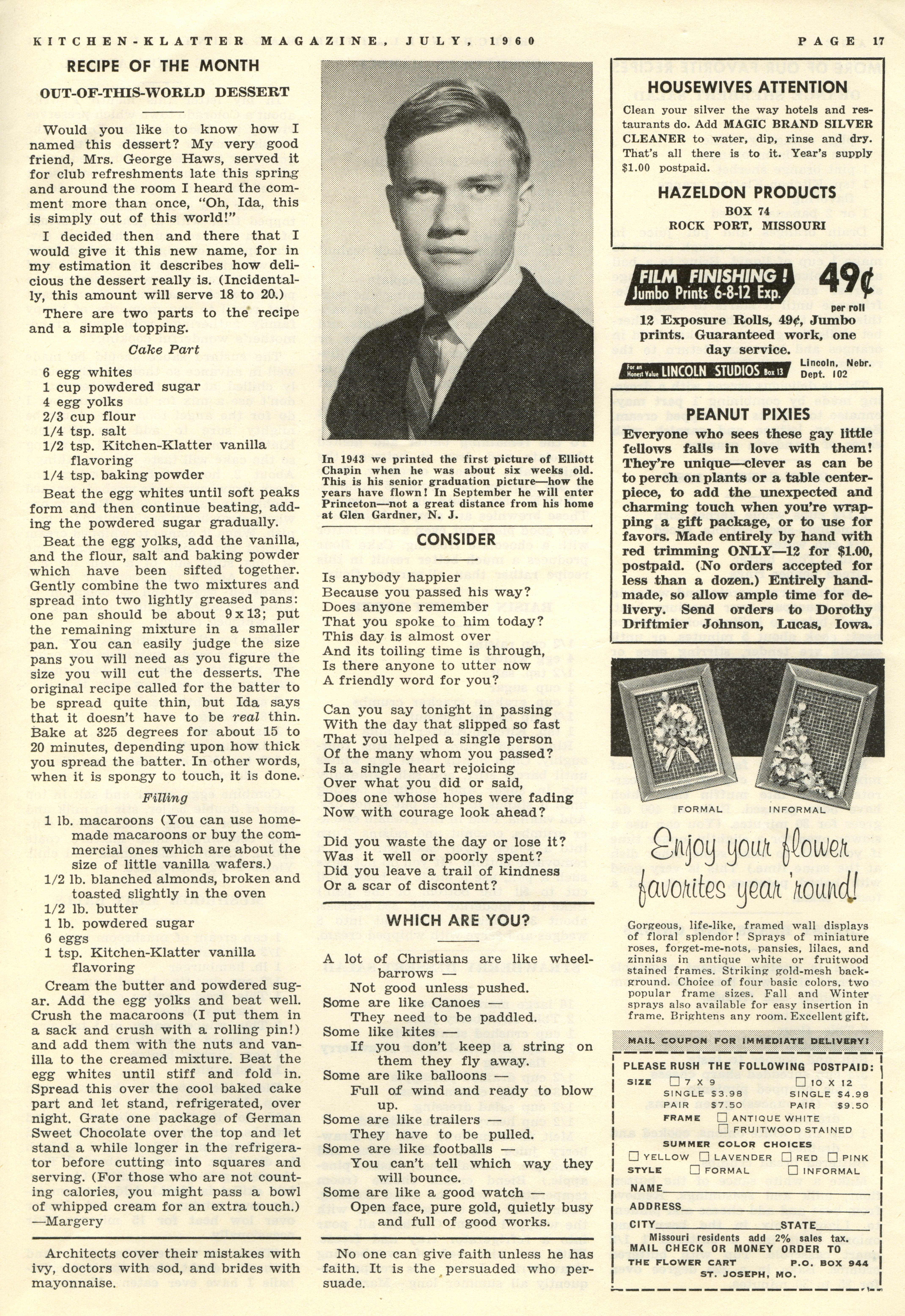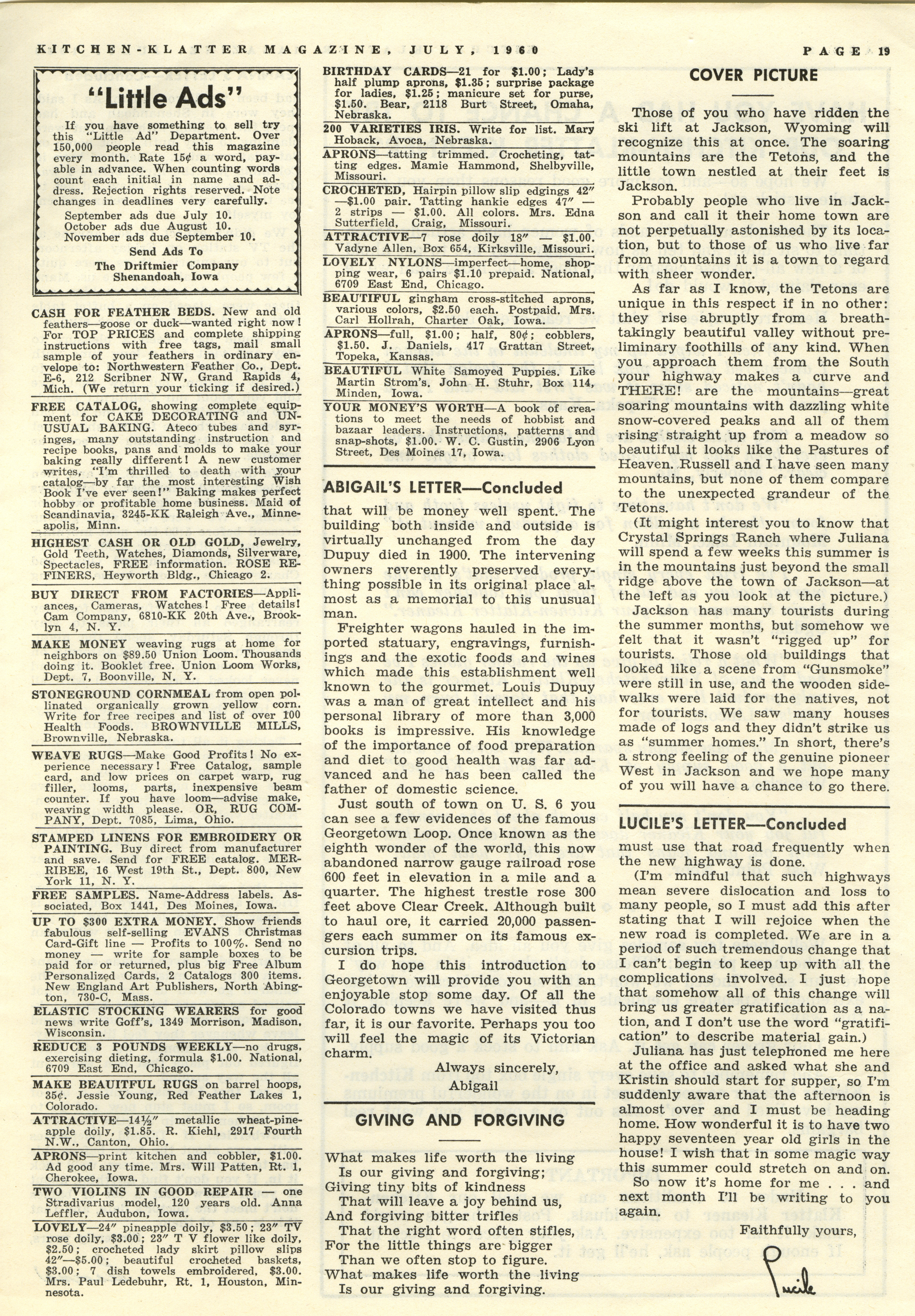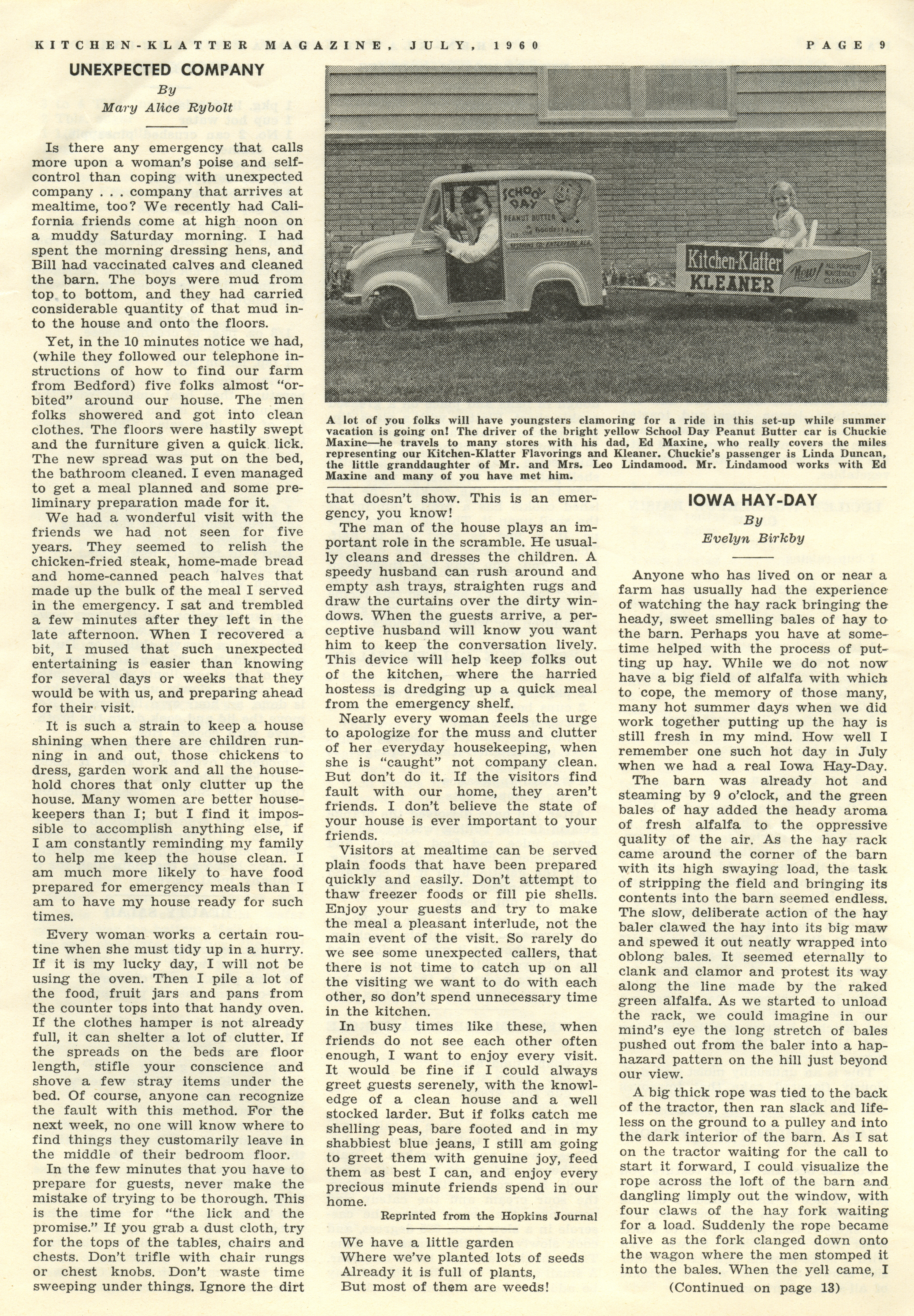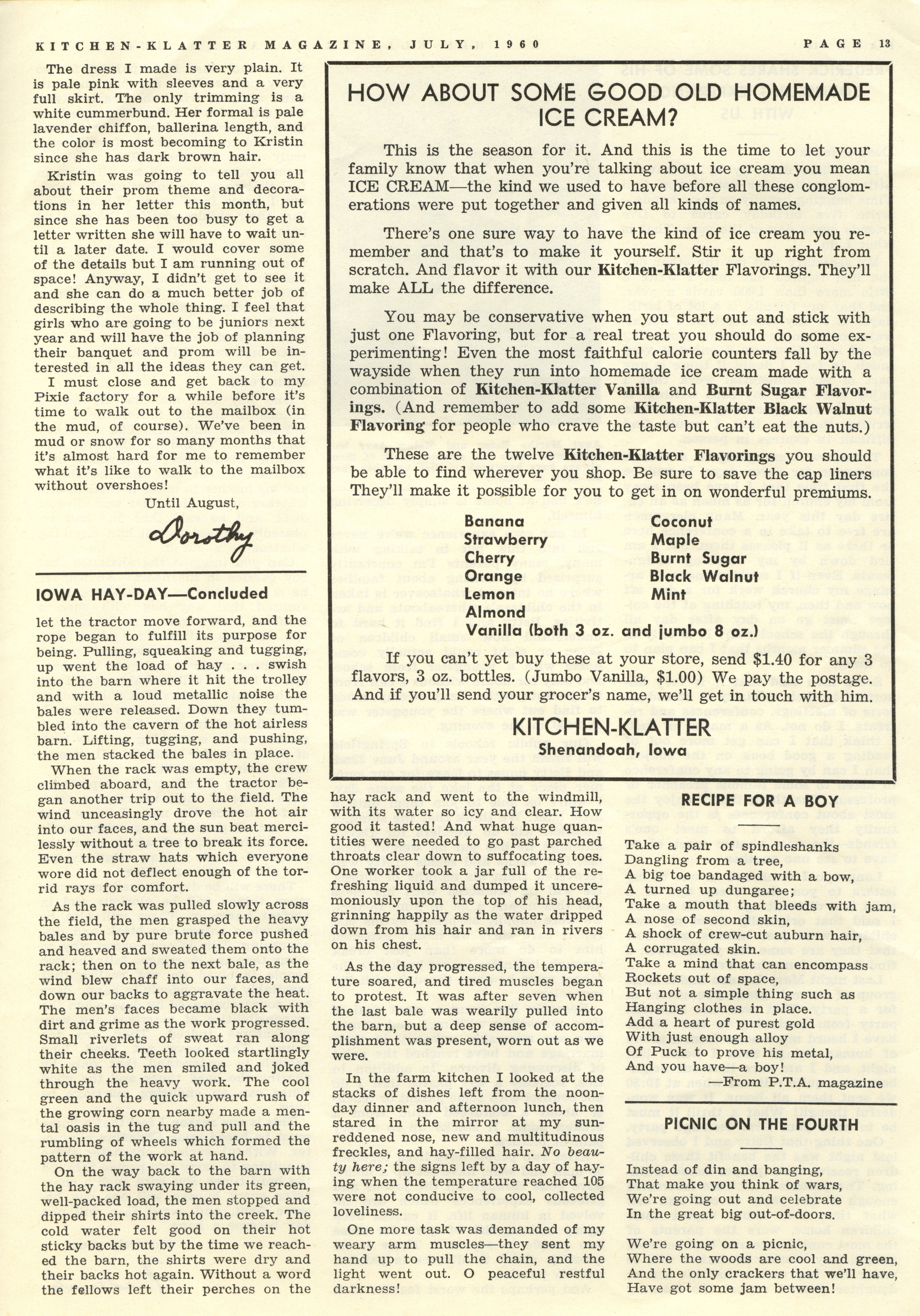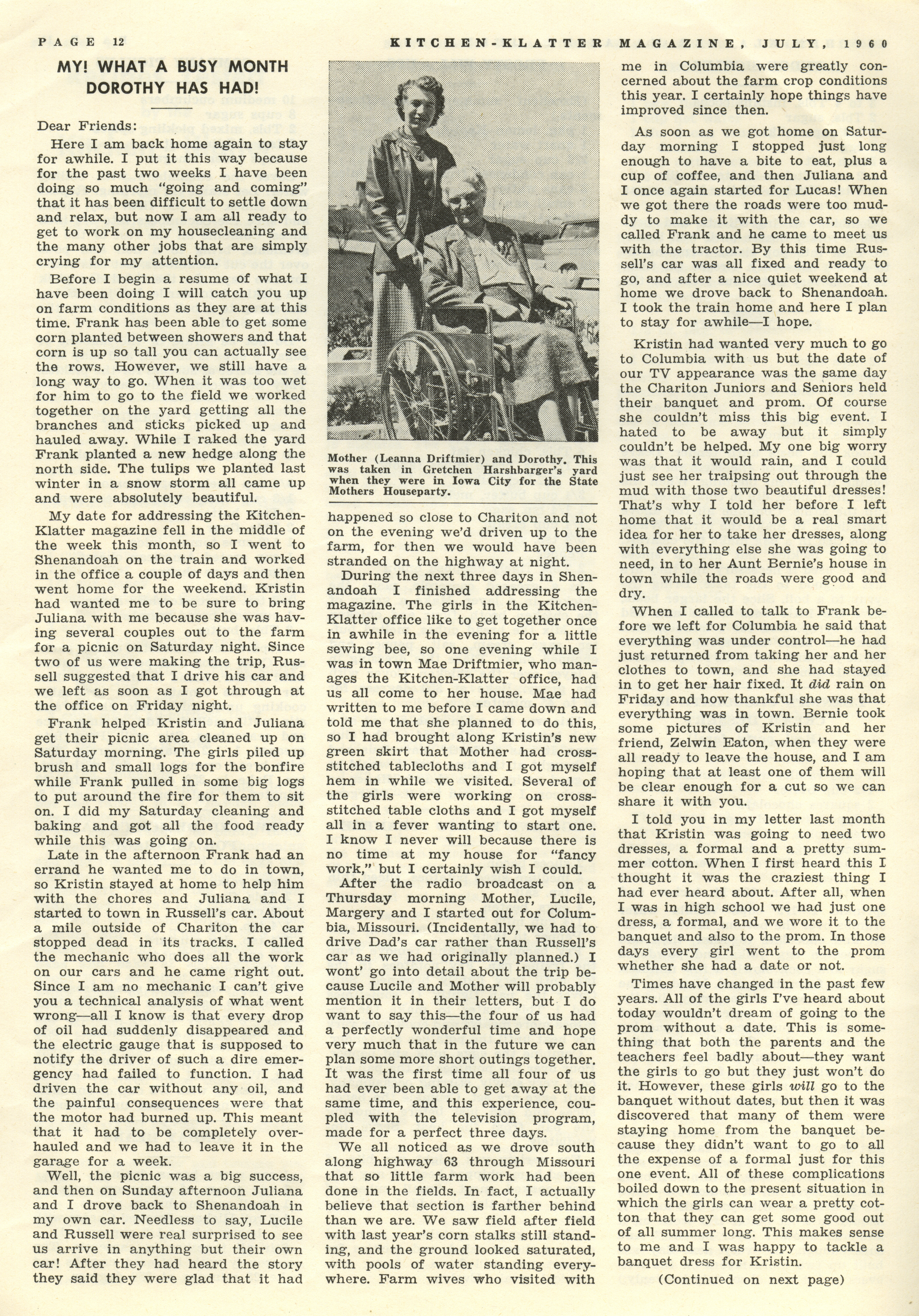 - "Kitchen-Klatter v. 24, n. 07, 1960", Kitchen-Klatter Magazine Issues, Iowa State University Library Digital Collections