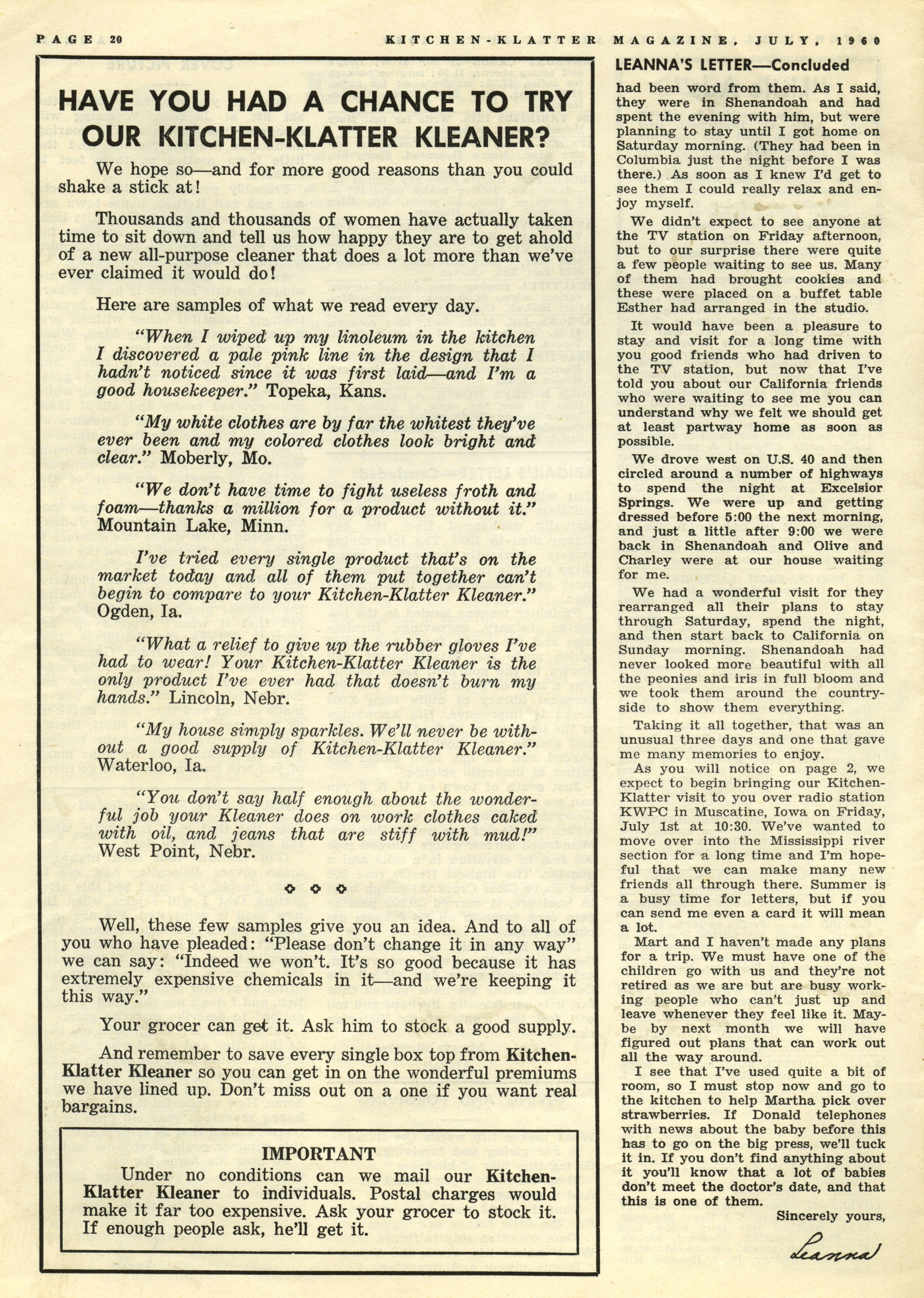 Kitchen-Klatter v. 24, n. 07, 1960 Item Info