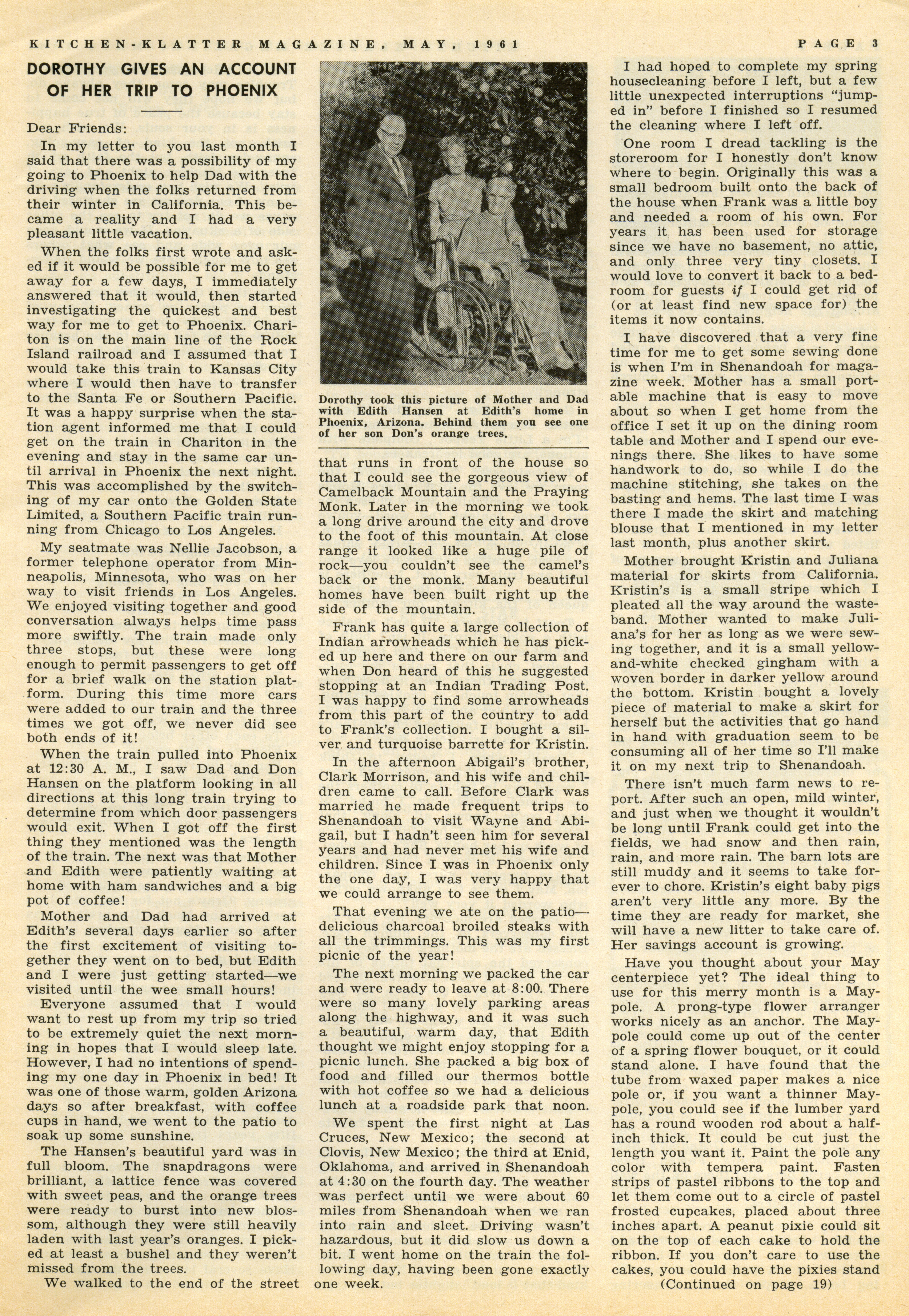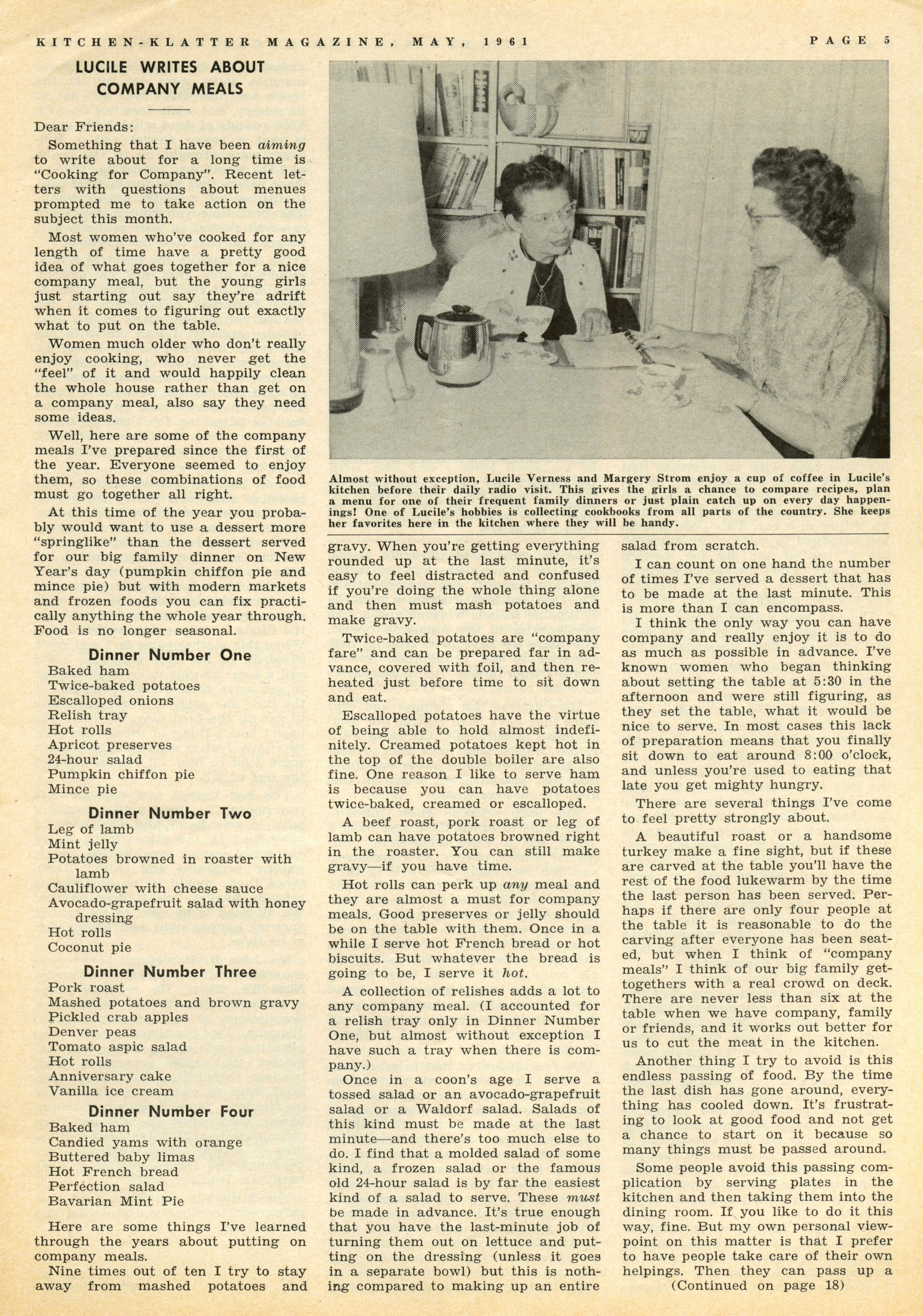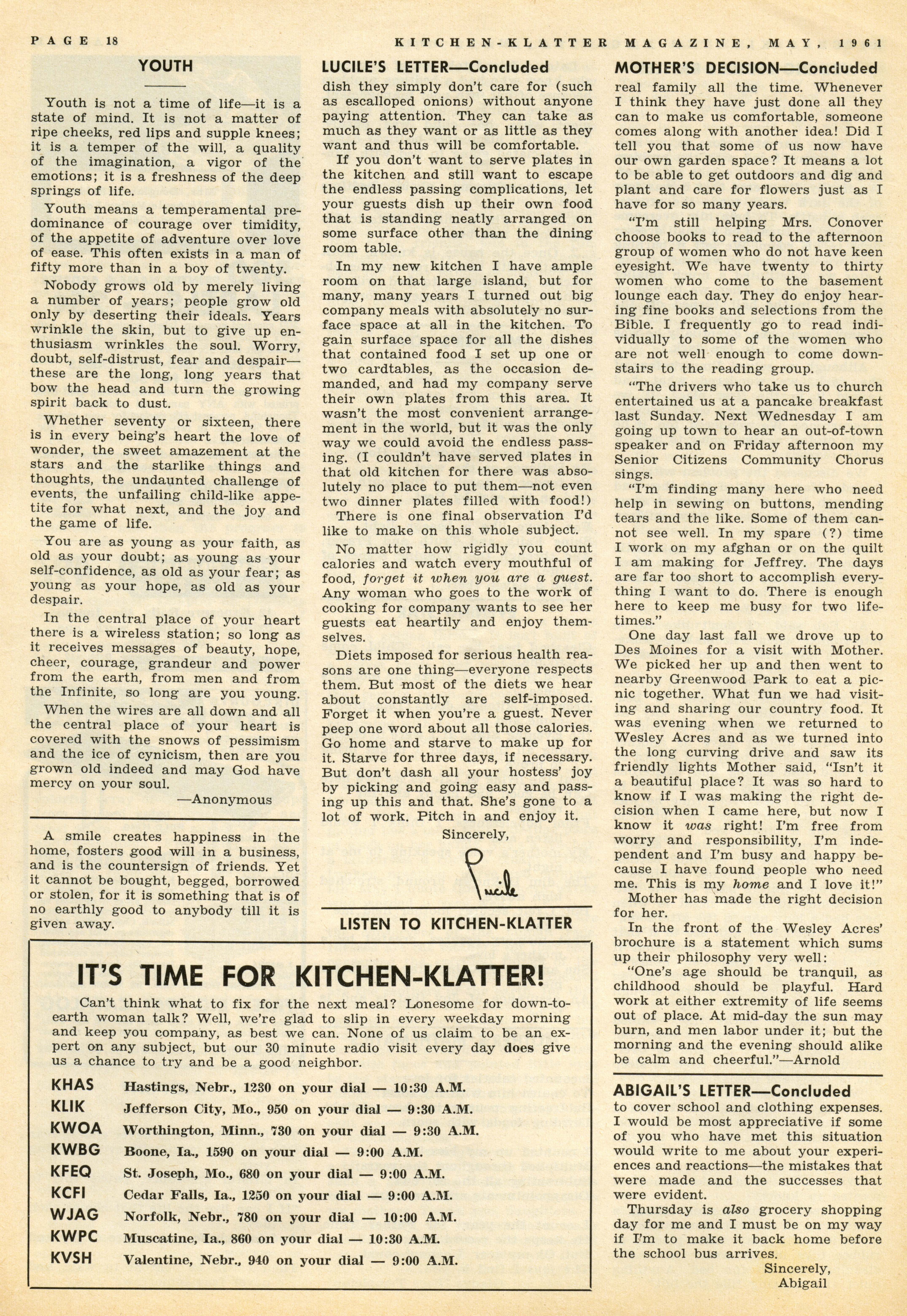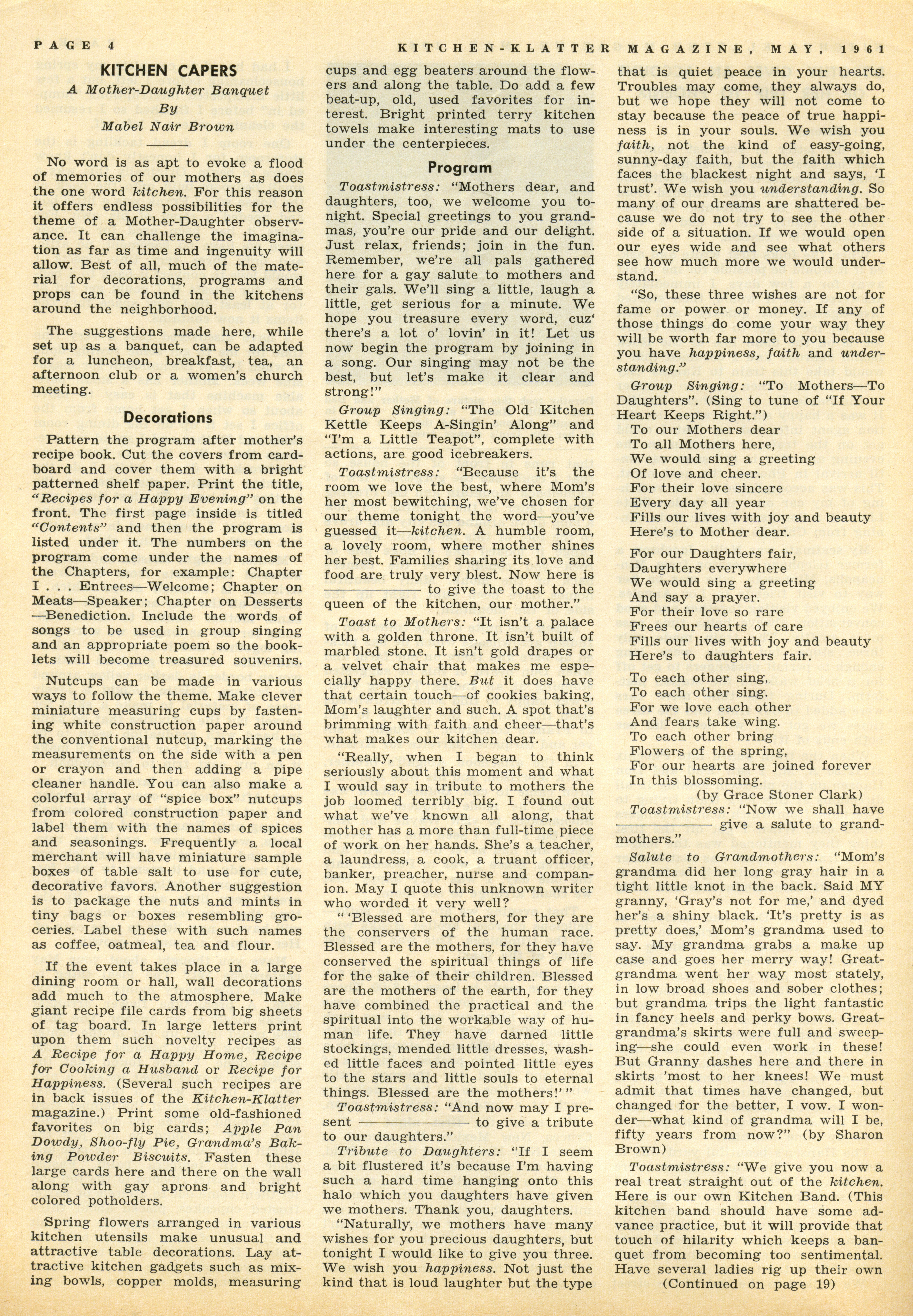 - "Kitchen-Klatter v. 25, n. 05, 1961", Kitchen-Klatter Magazine Issues, Iowa State University Library Digital Collections