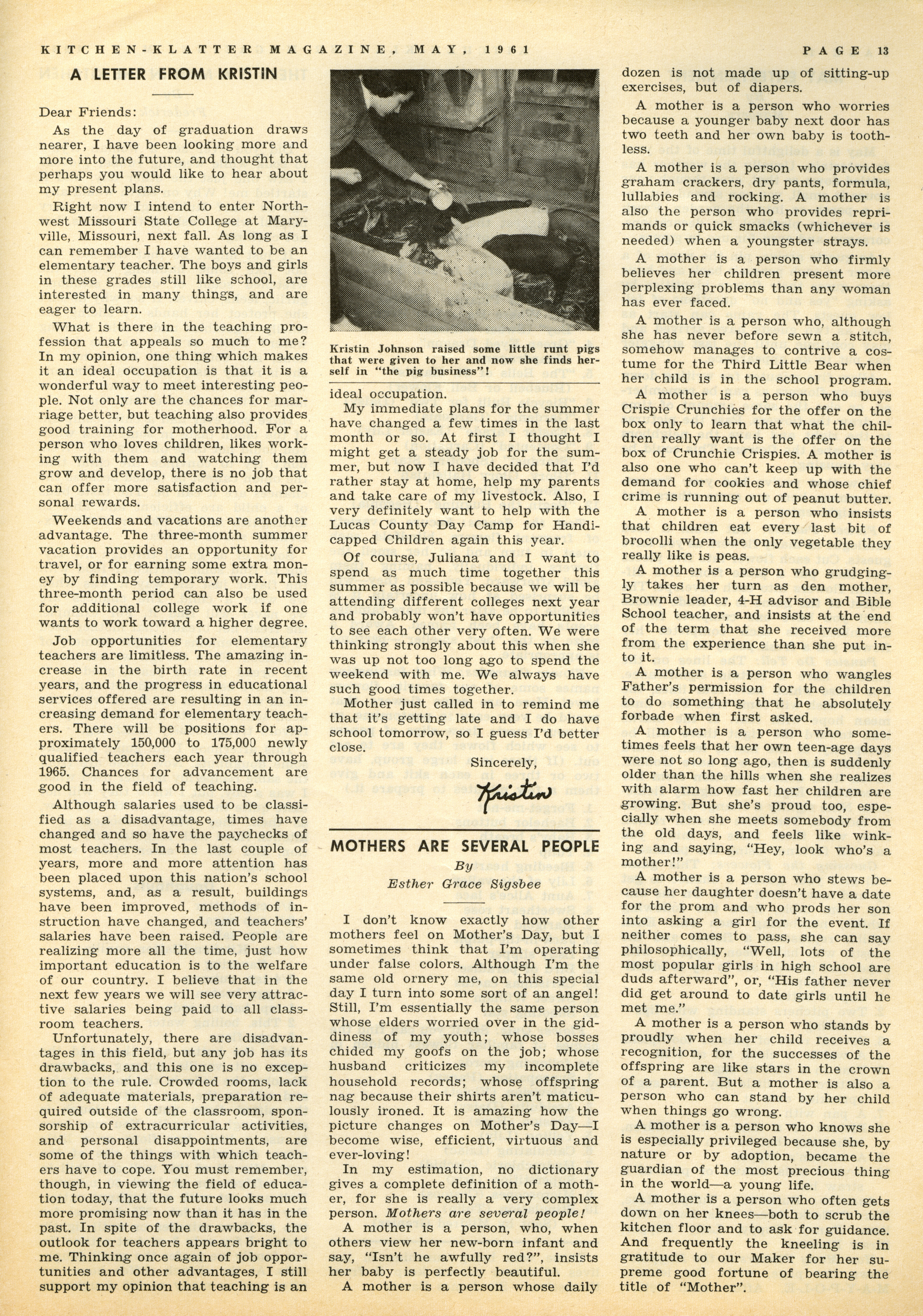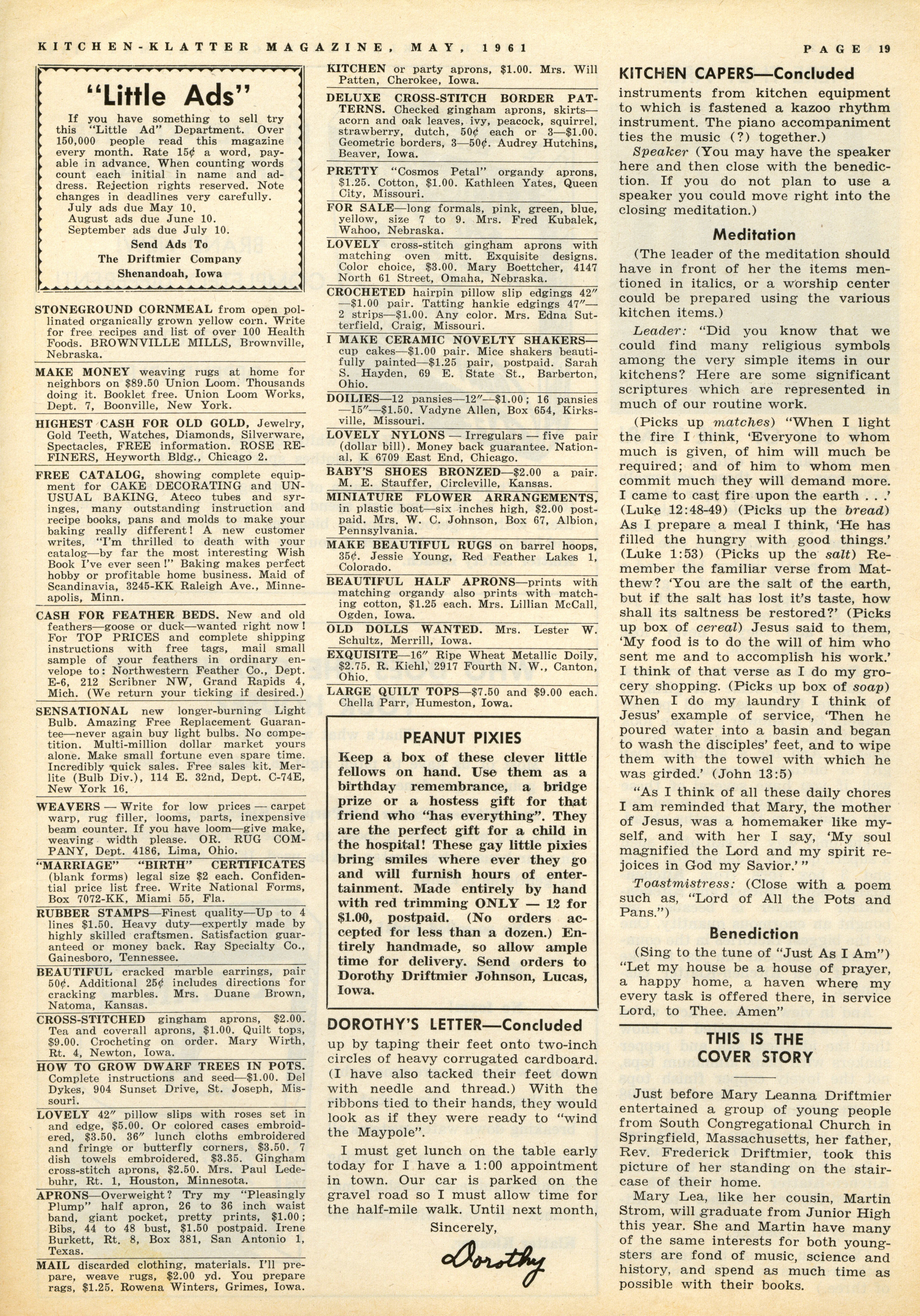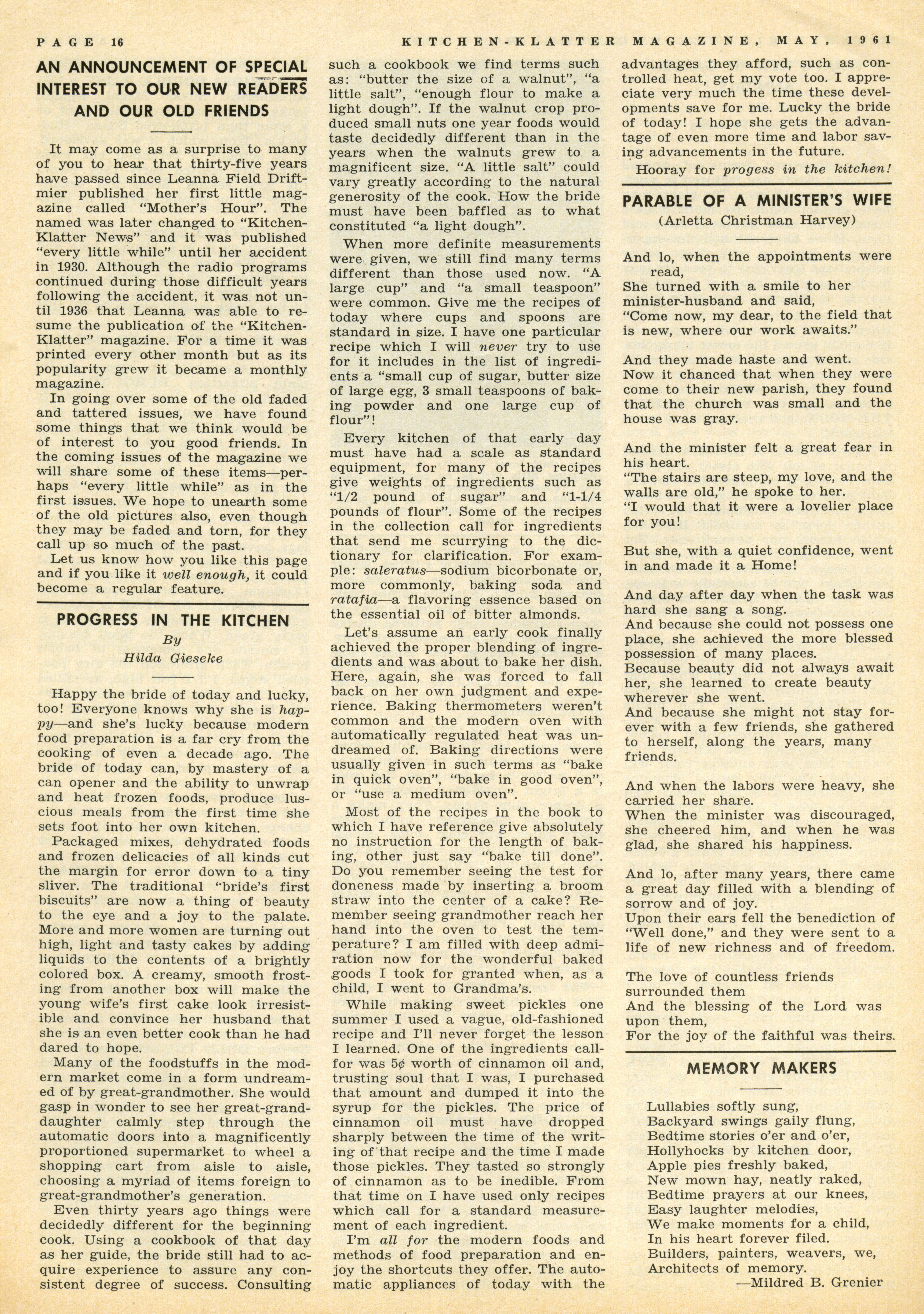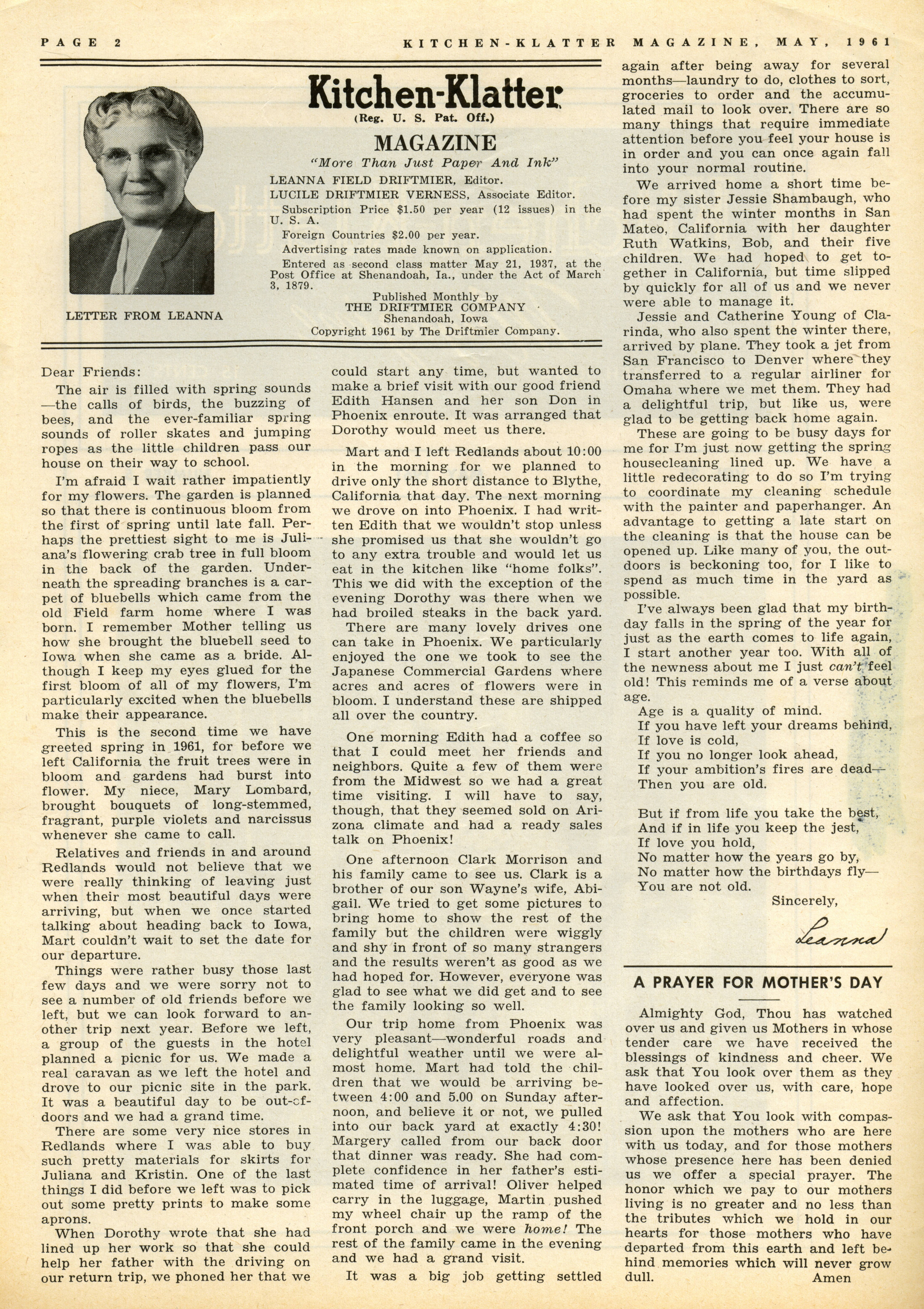 - "Kitchen-Klatter v. 25, n. 05, 1961", Kitchen-Klatter Magazine Issues, Iowa State University Library Digital Collections