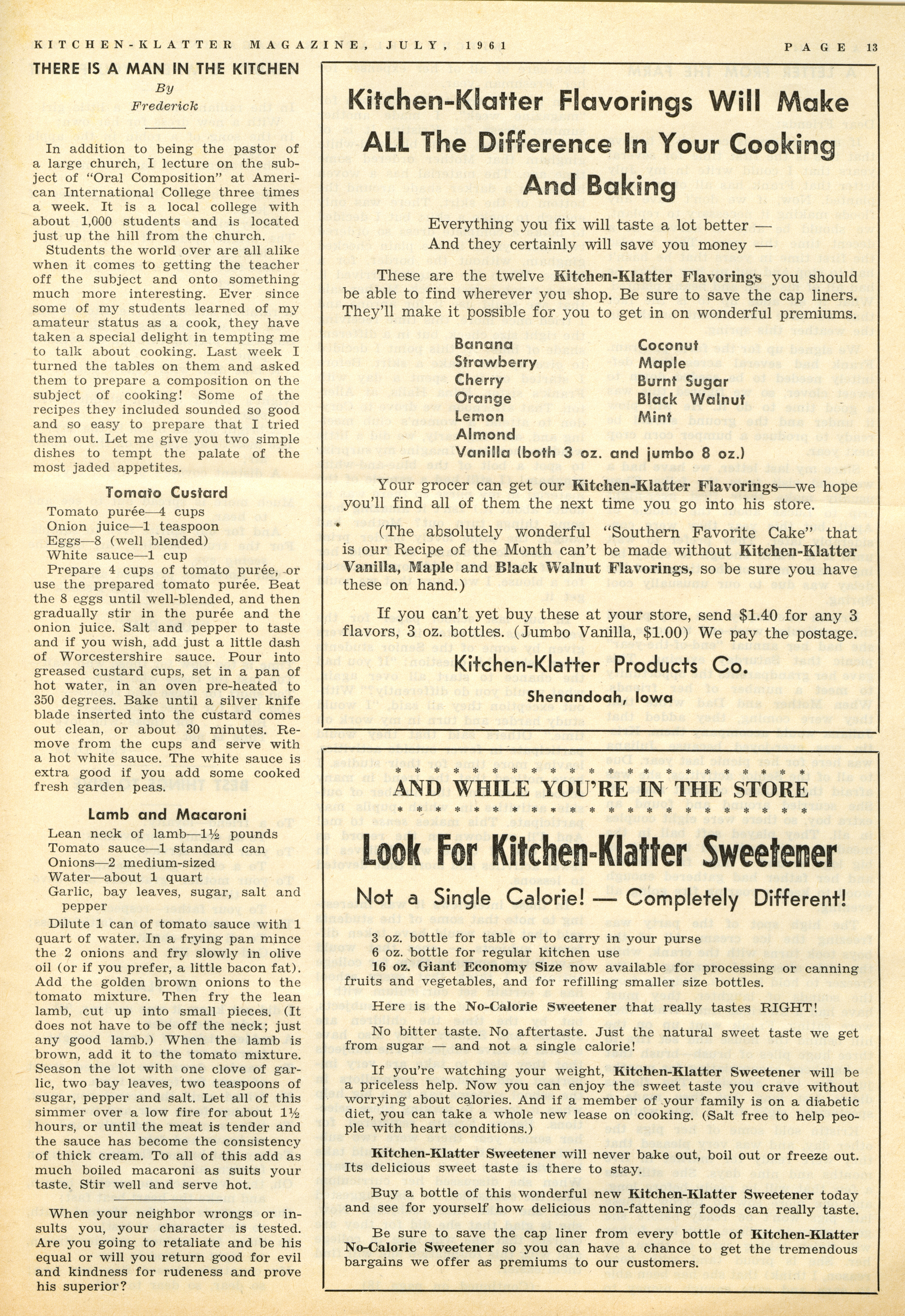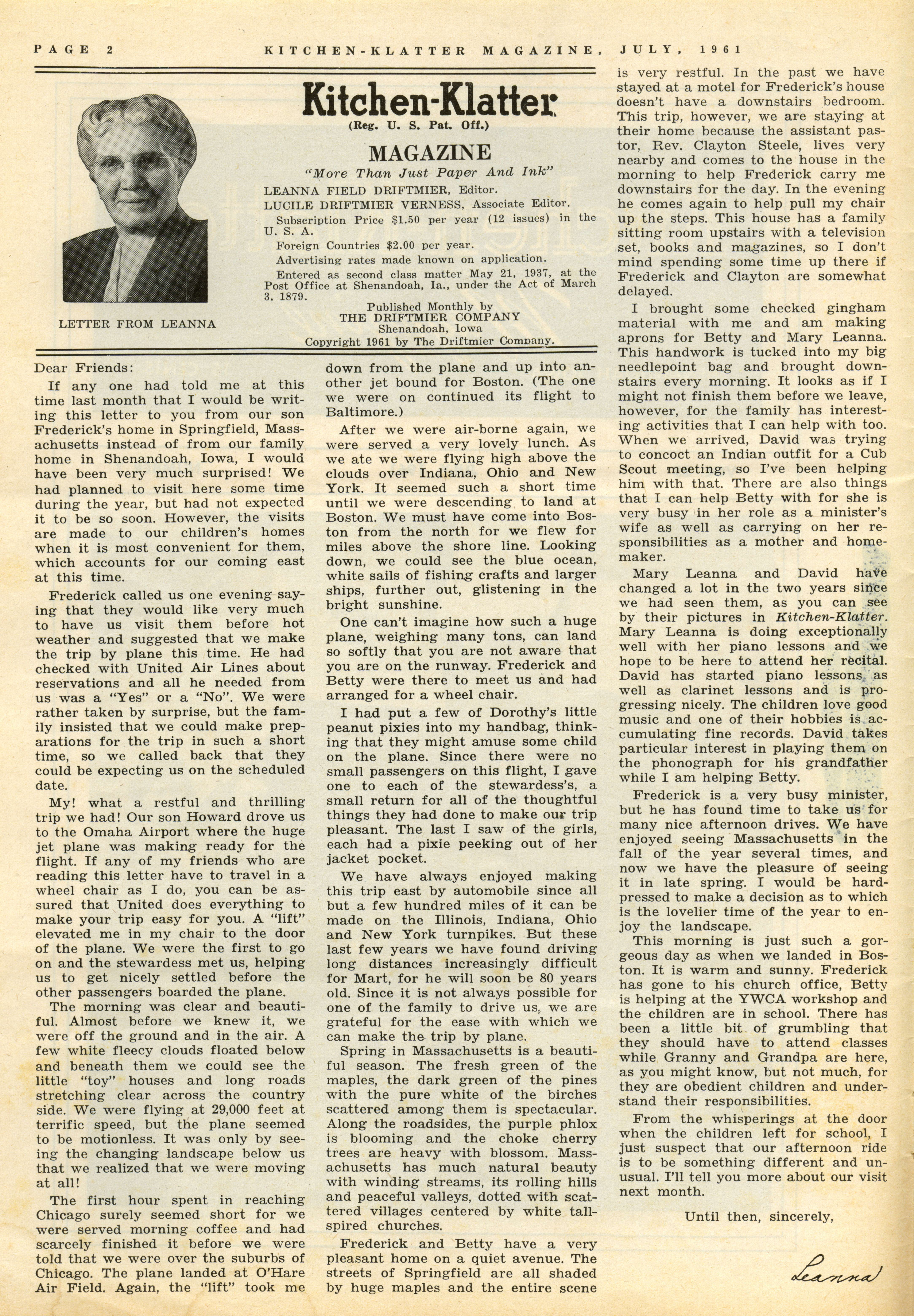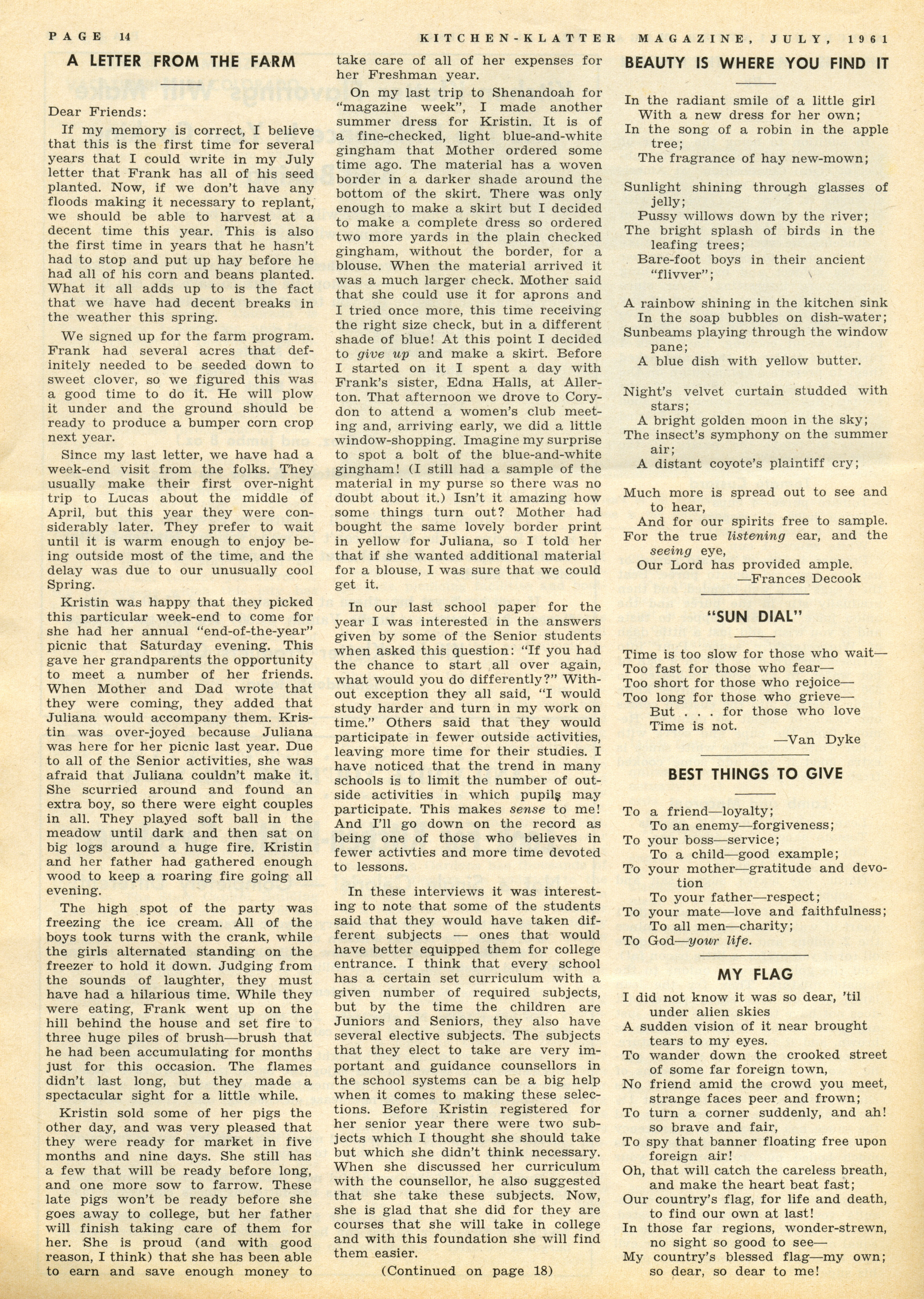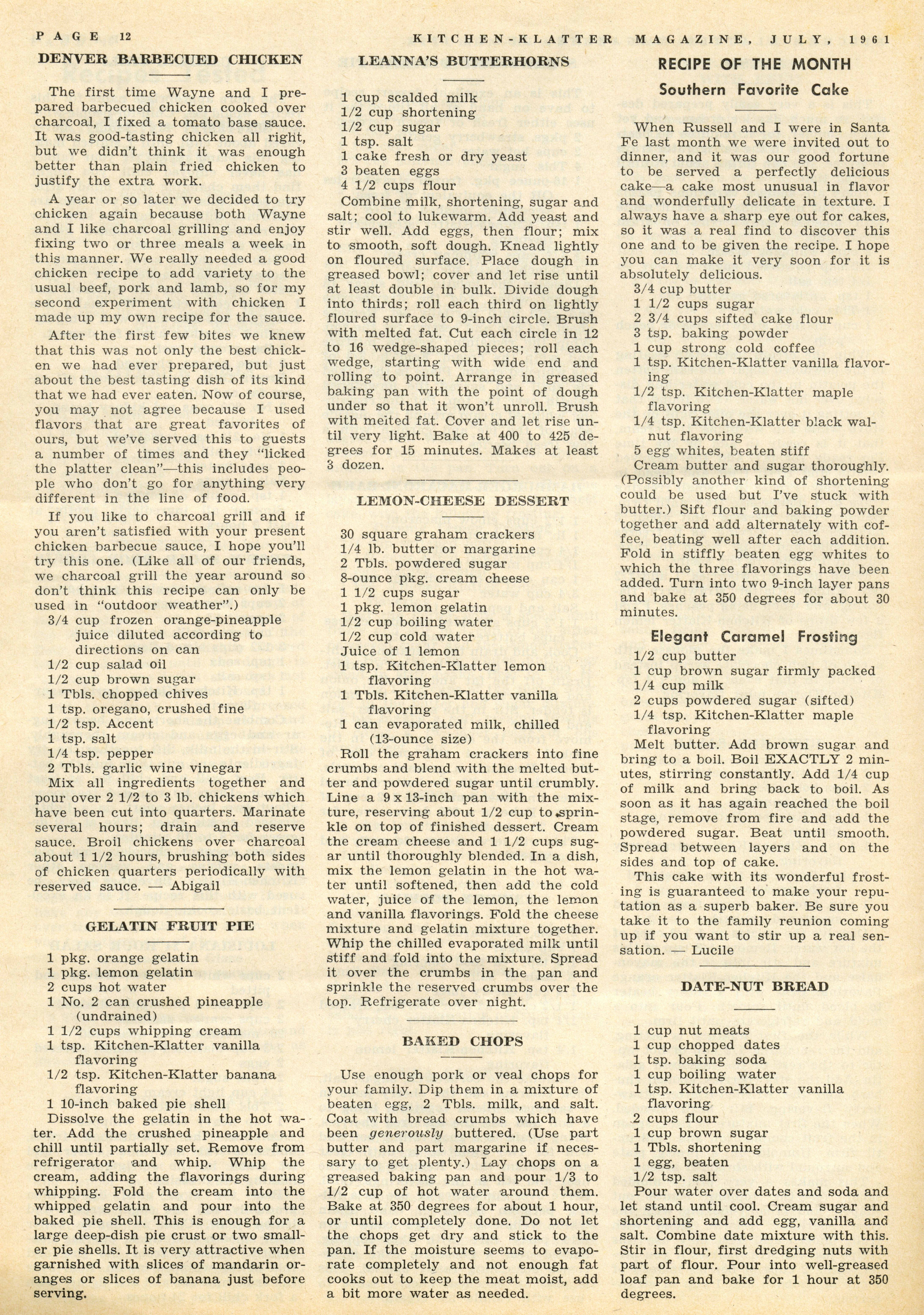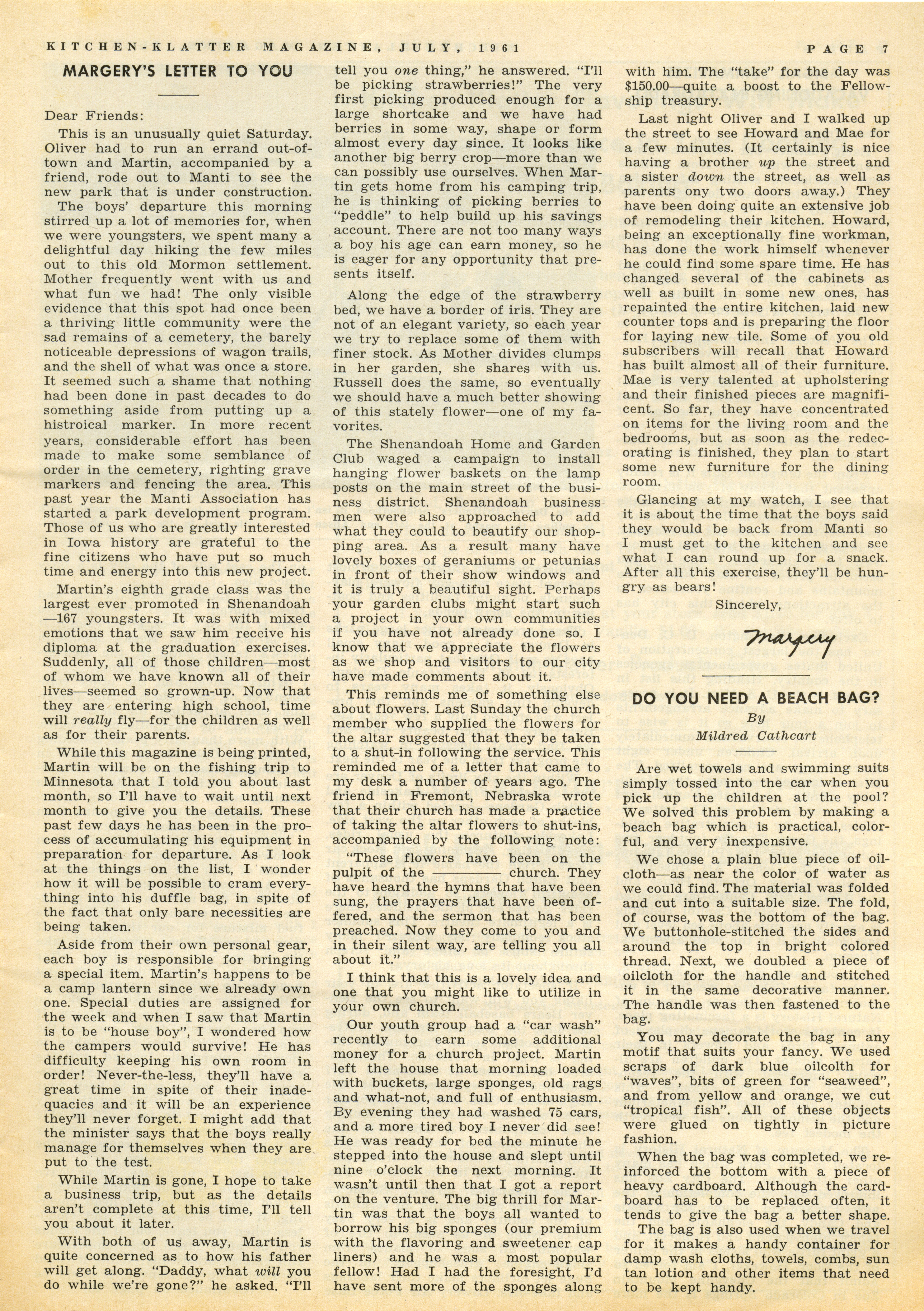 - "Kitchen-Klatter v. 25, n. 07, 1961", Kitchen-Klatter Magazine Issues, Iowa State University Library Digital Collections