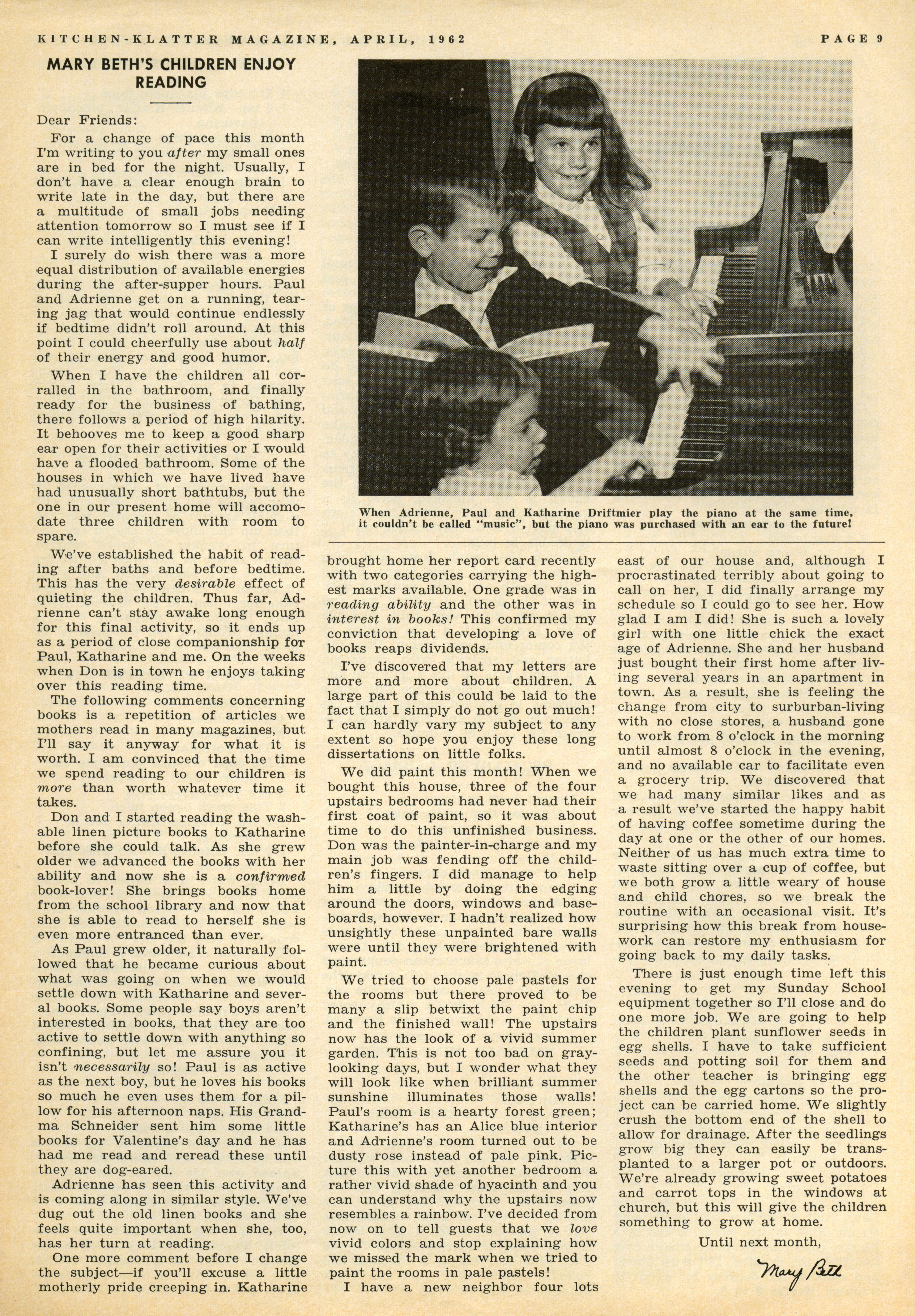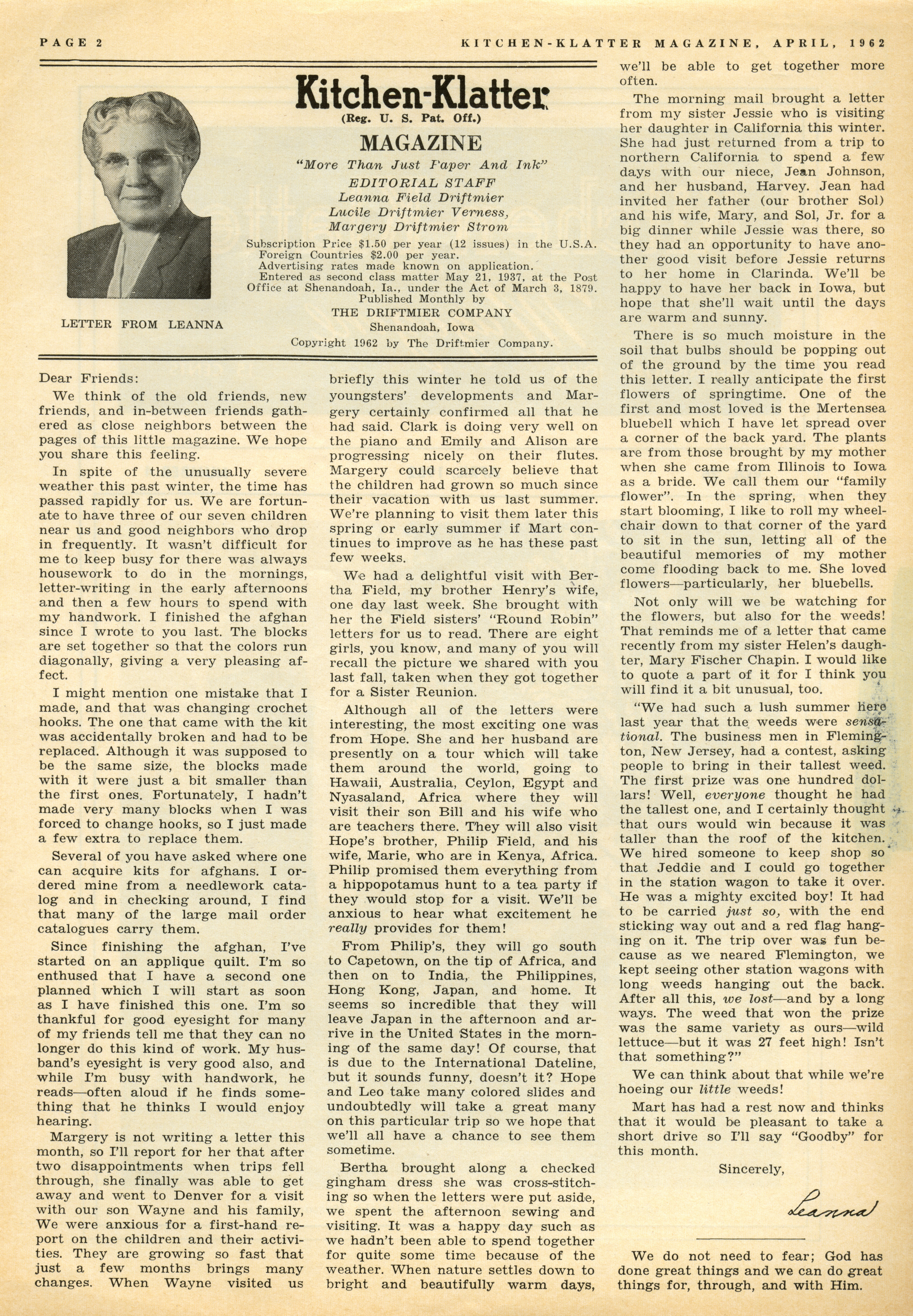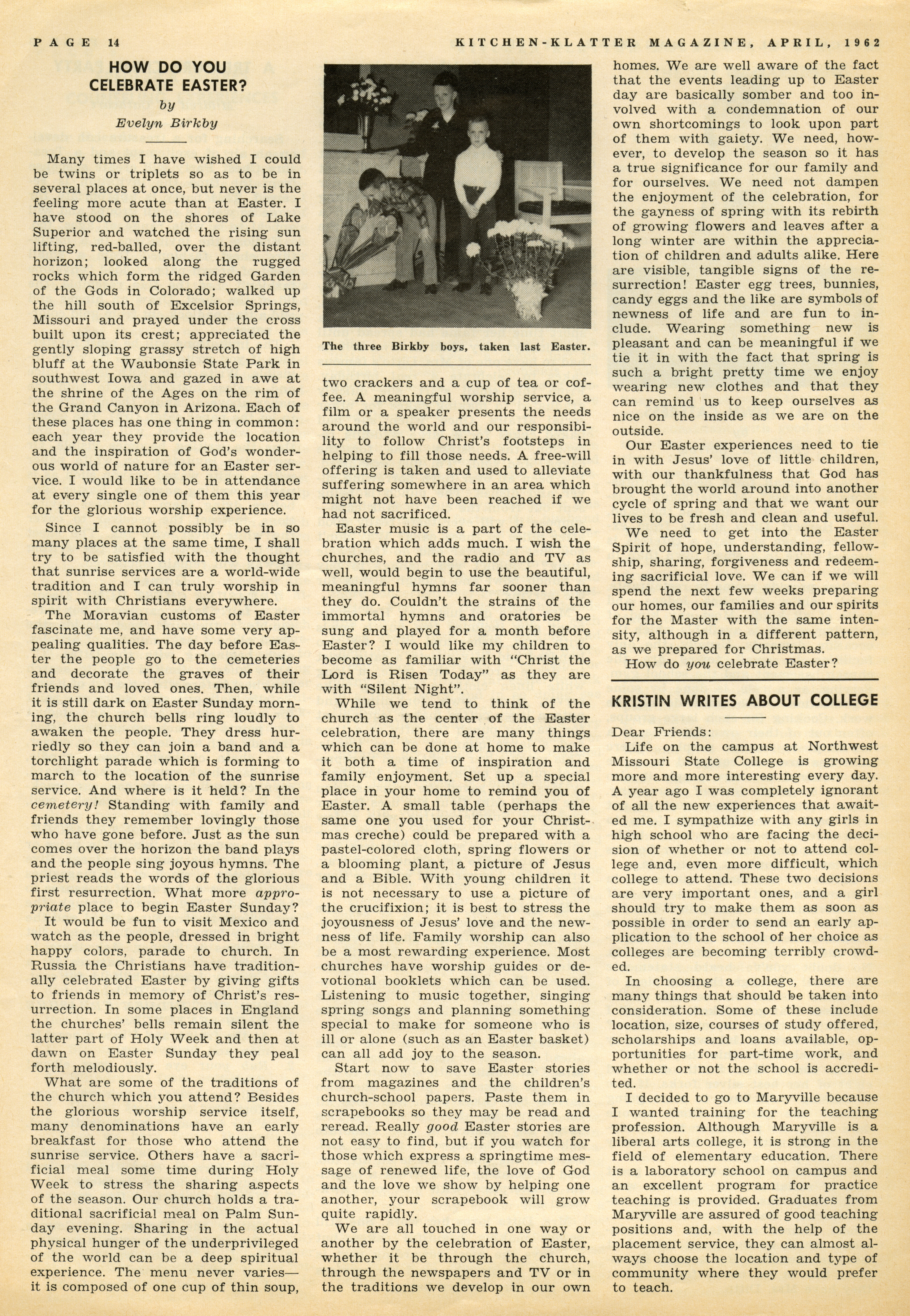 - "Kitchen-Klatter v. 26, n. 04, 1962", Kitchen-Klatter Magazine Issues, Iowa State University Library Digital Collections