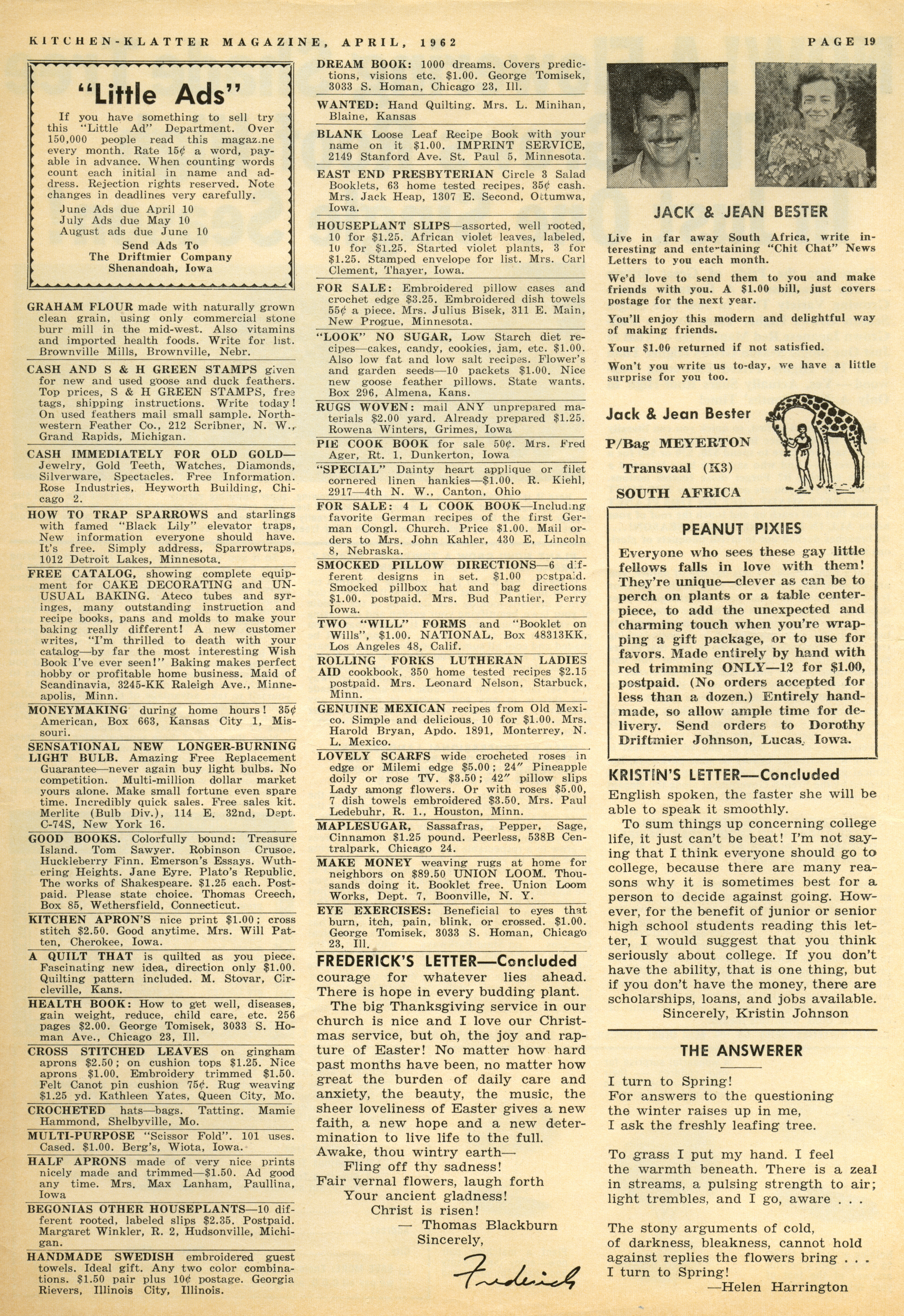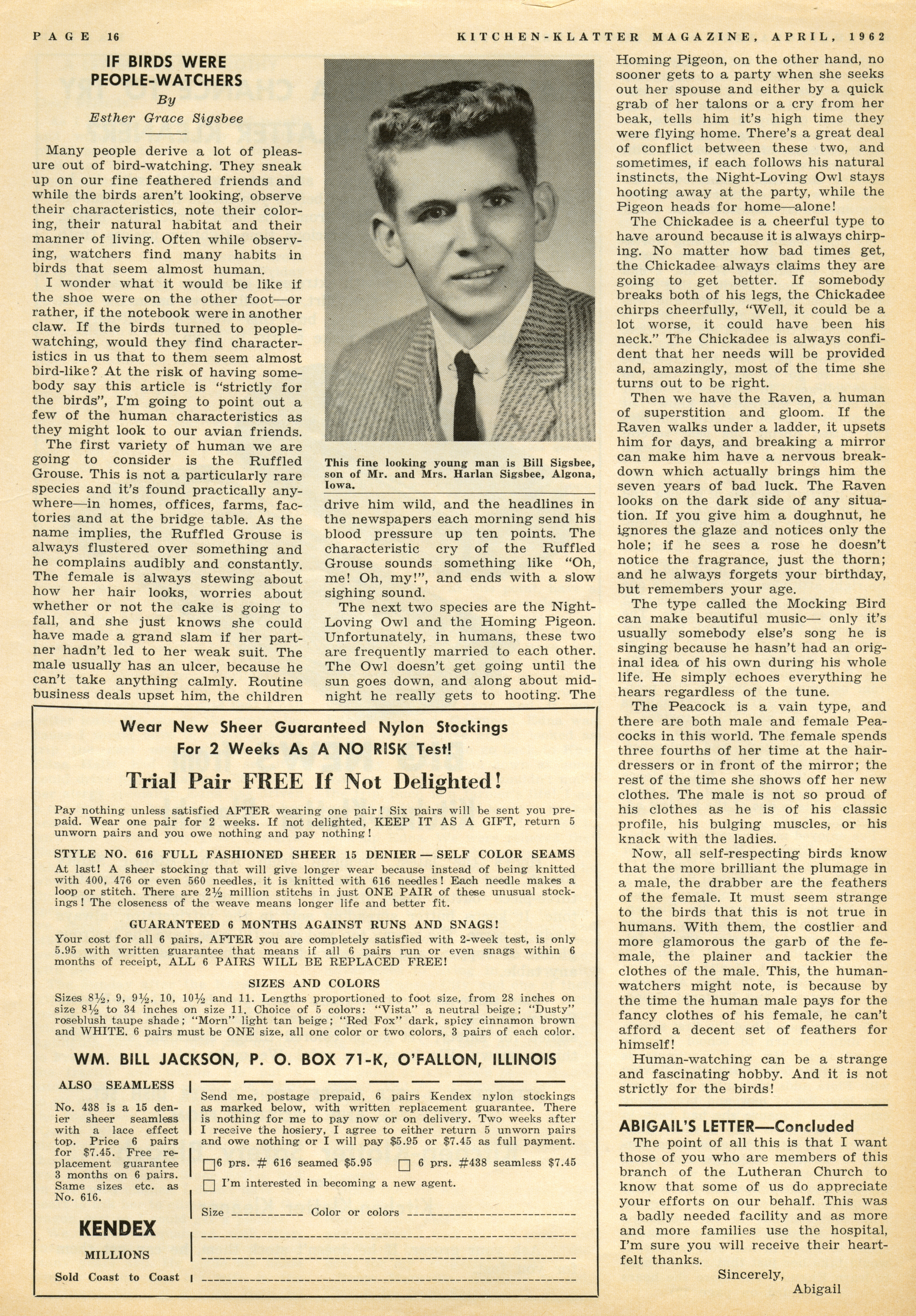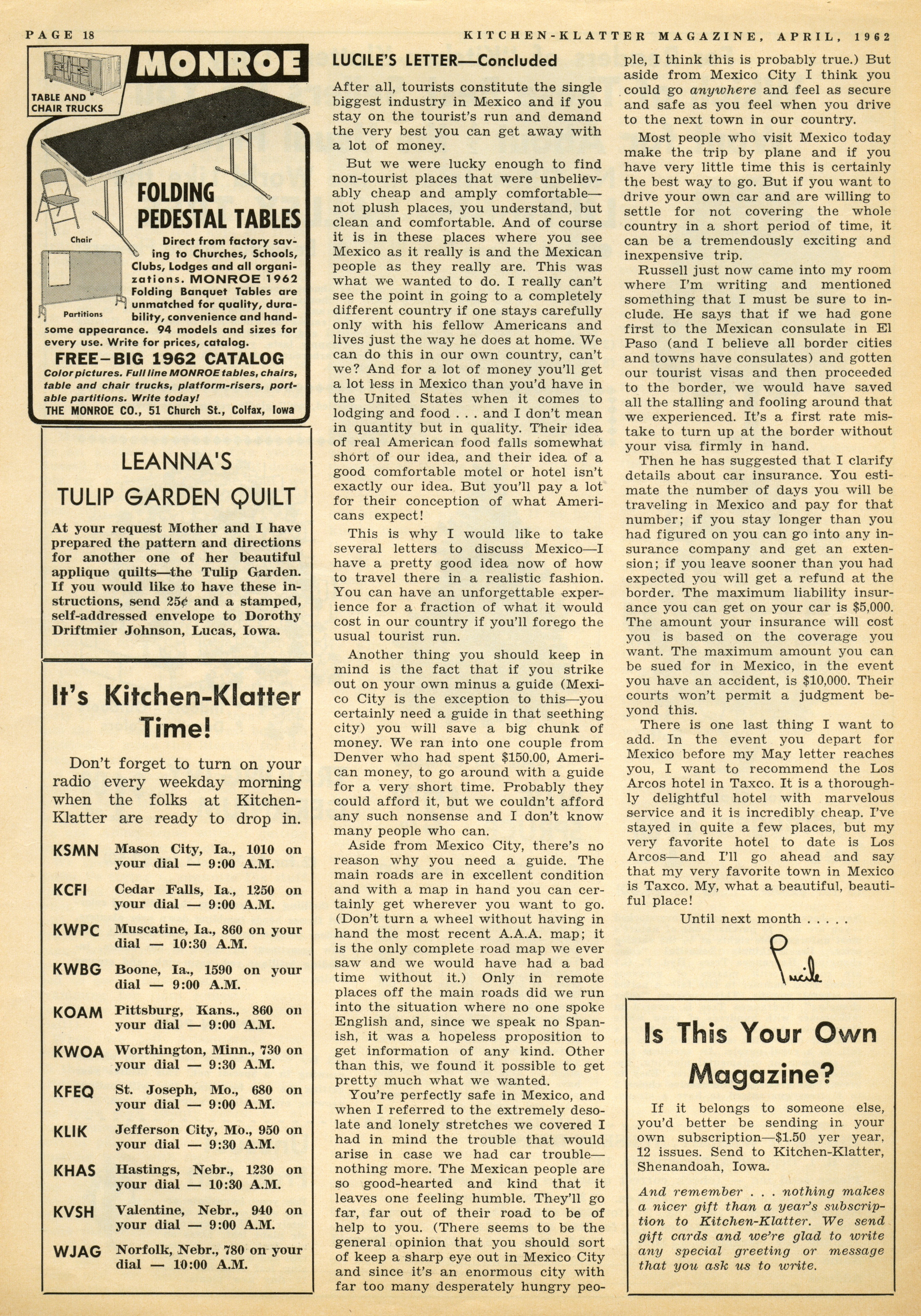 - "Kitchen-Klatter v. 26, n. 04, 1962", Kitchen-Klatter Magazine Issues, Iowa State University Library Digital Collections