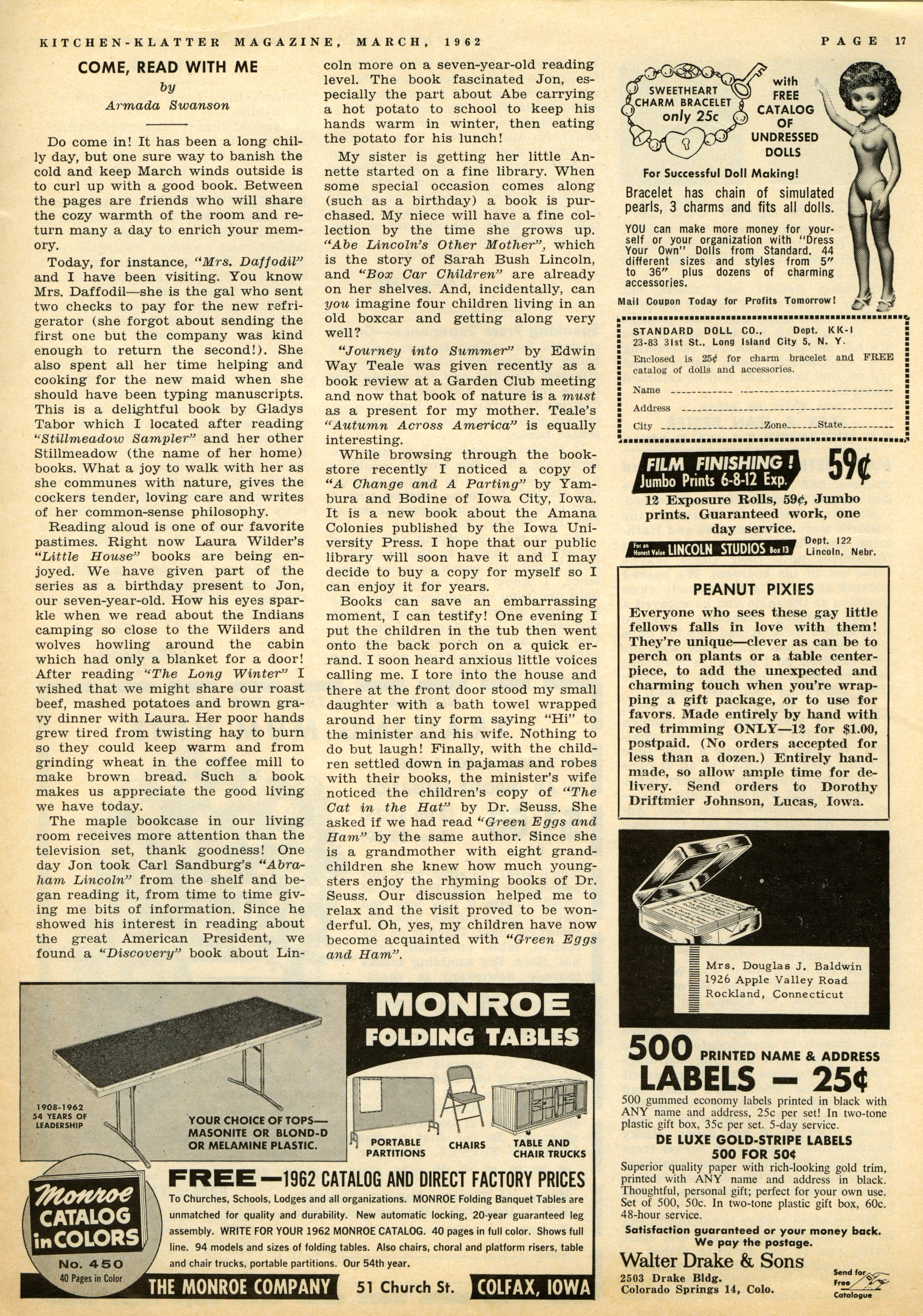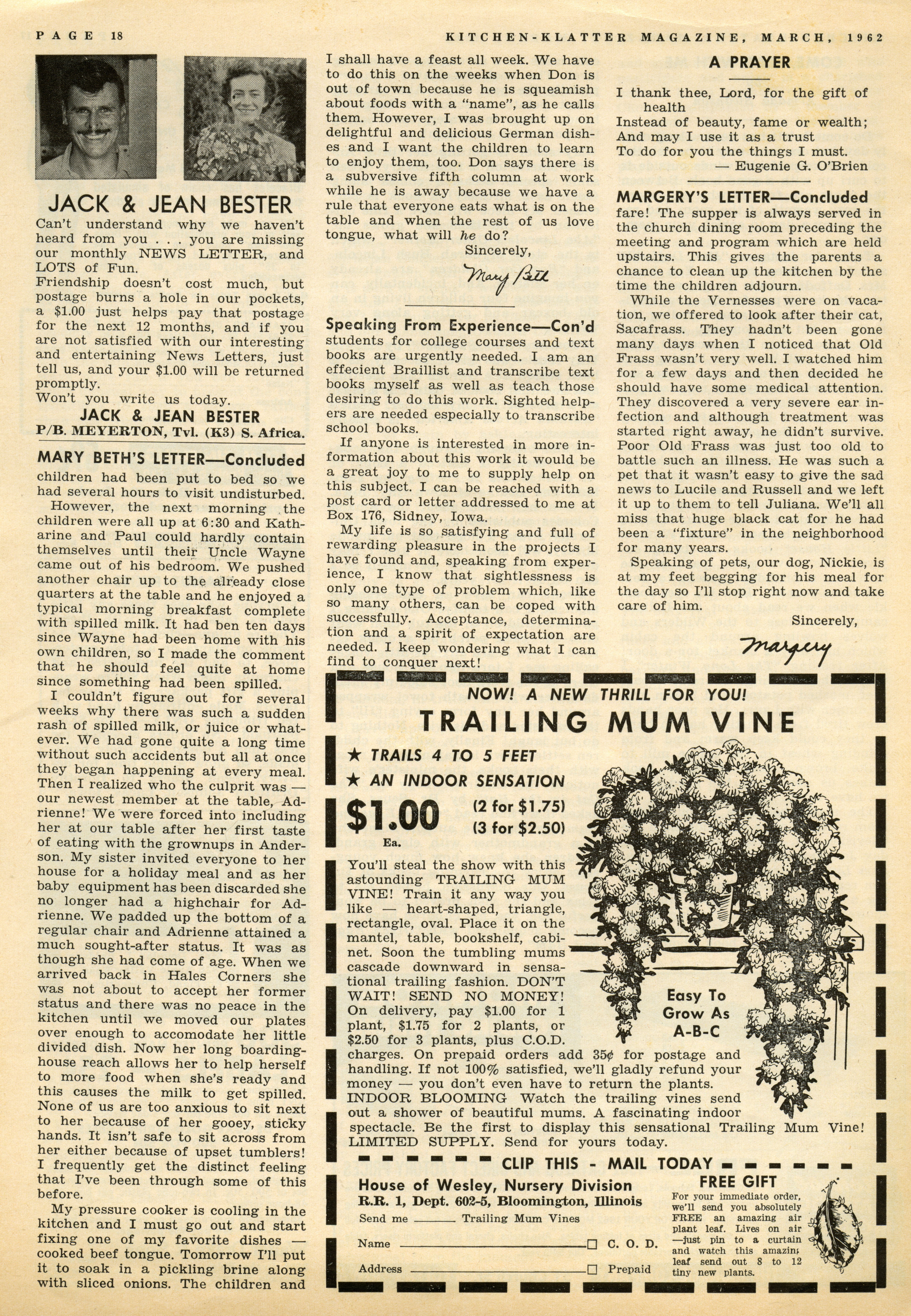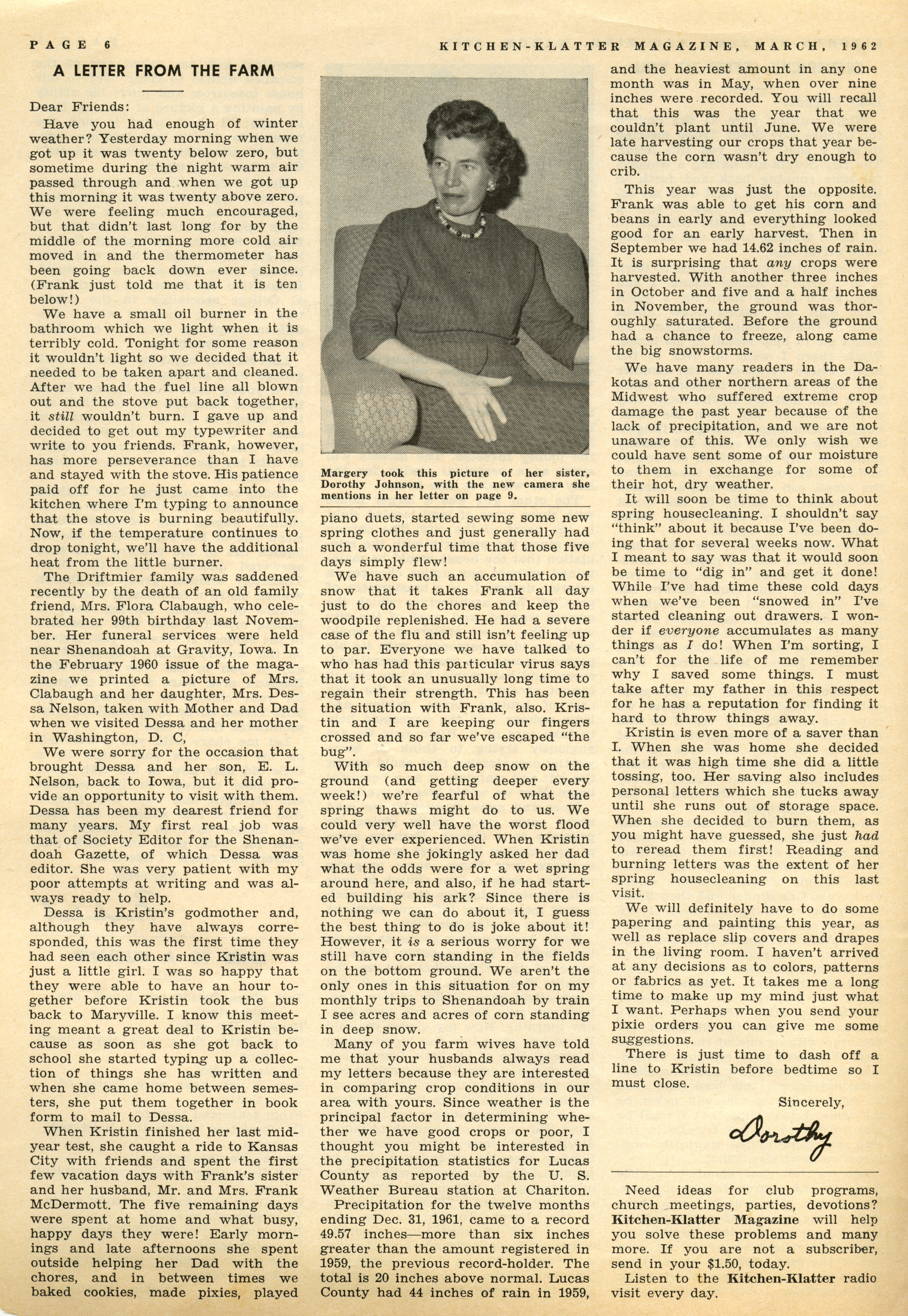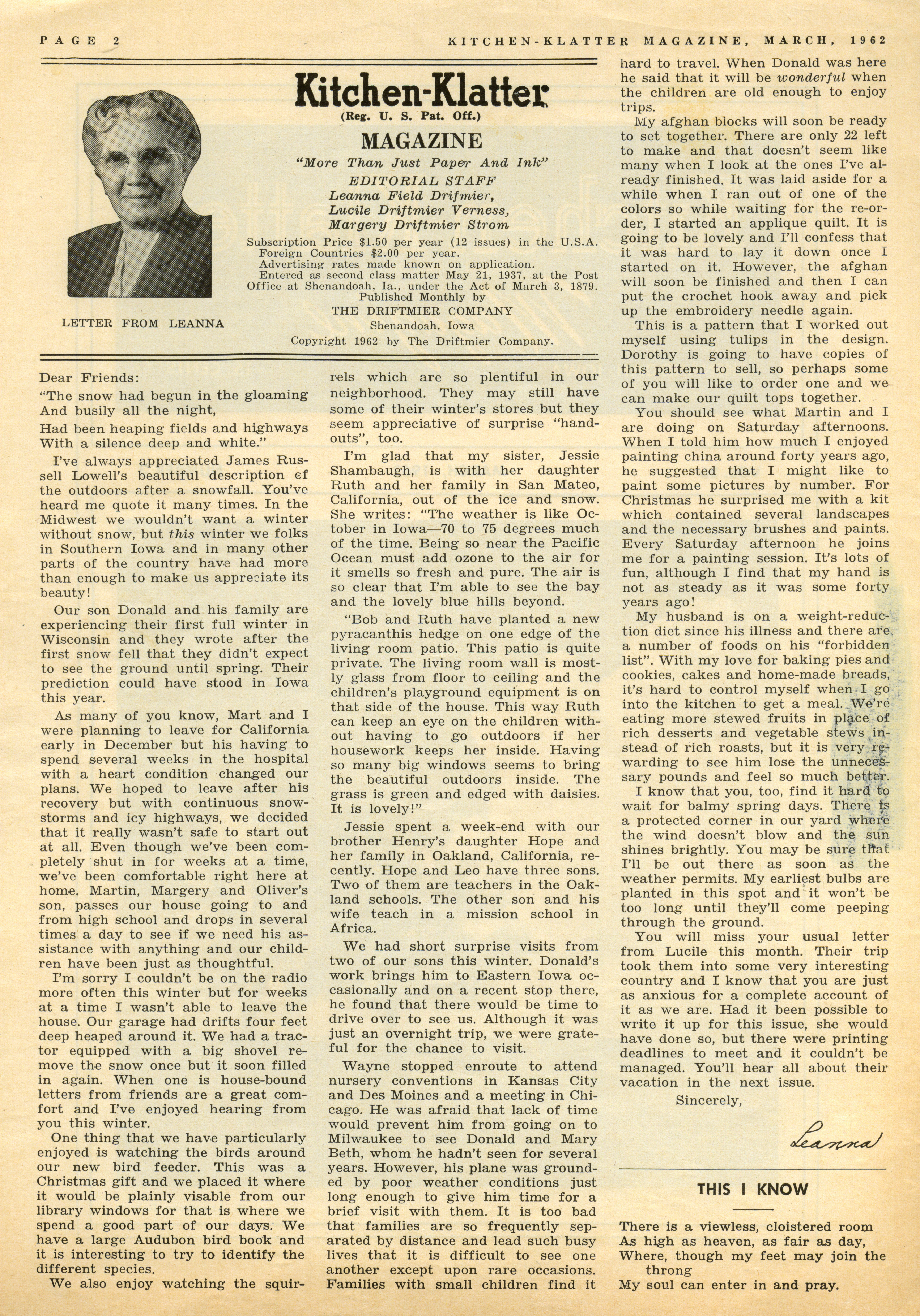 - "Kitchen-Klatter v. 26, n. 03, 1962", Kitchen-Klatter Magazine Issues, Iowa State University Library Digital Collections