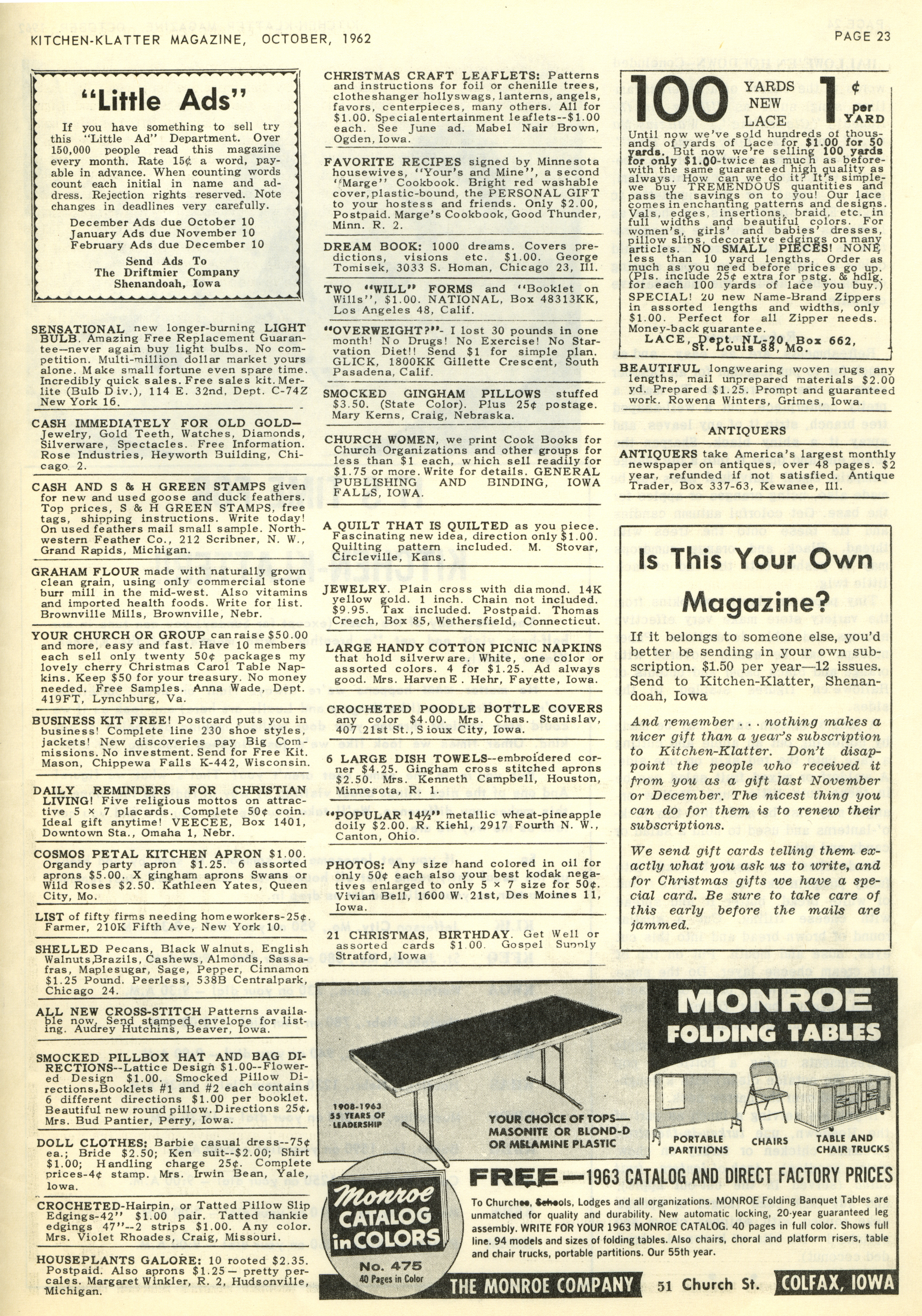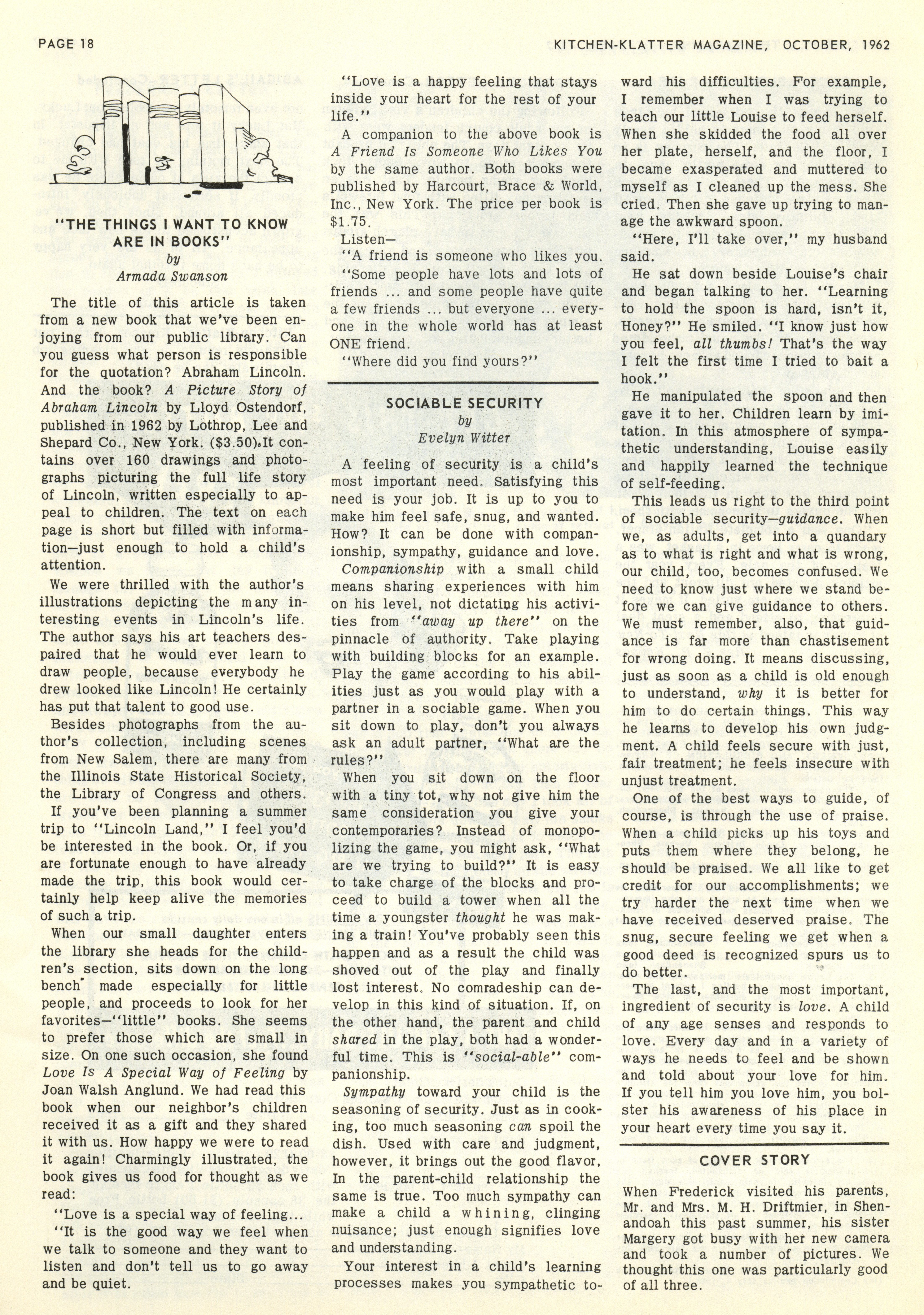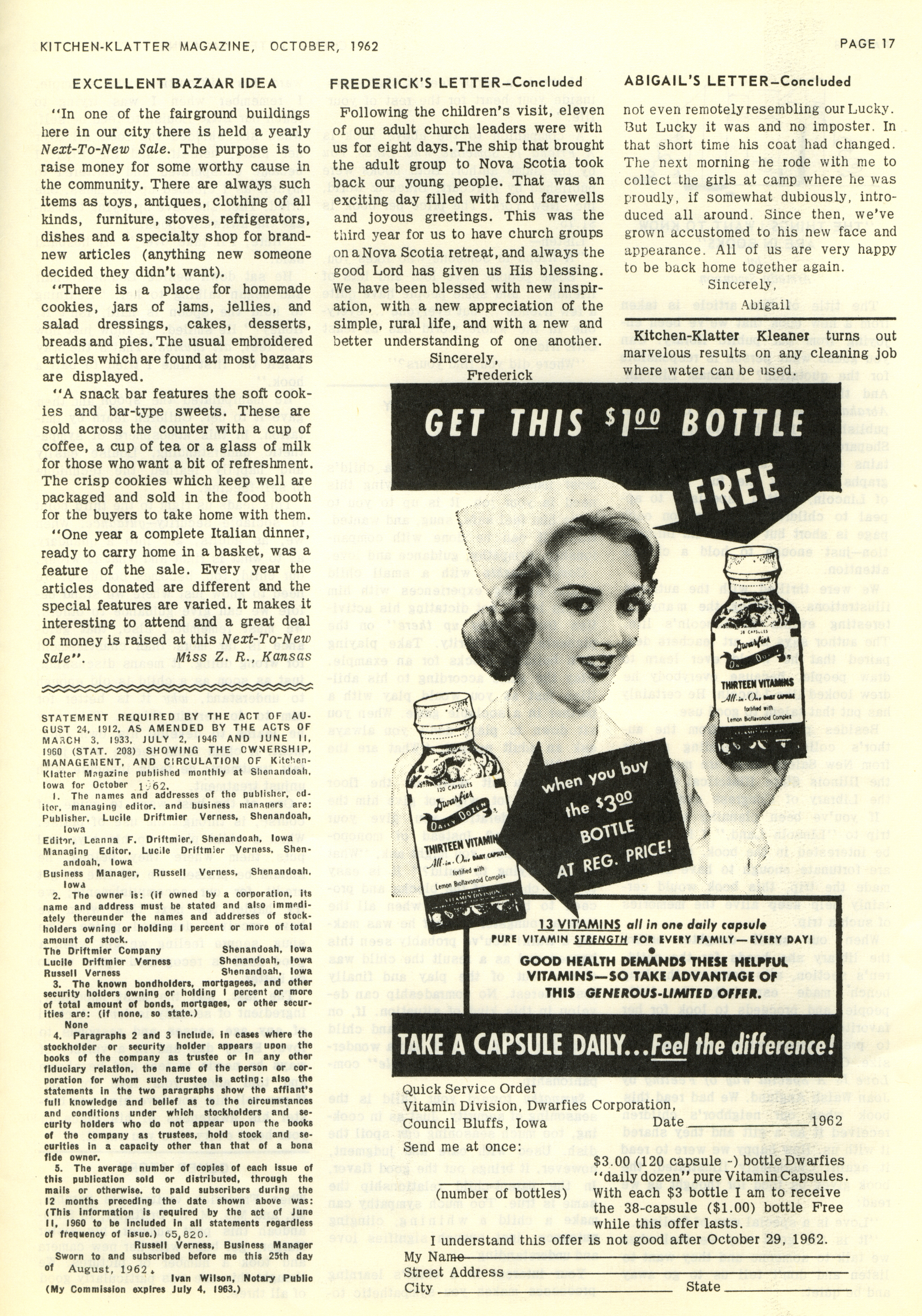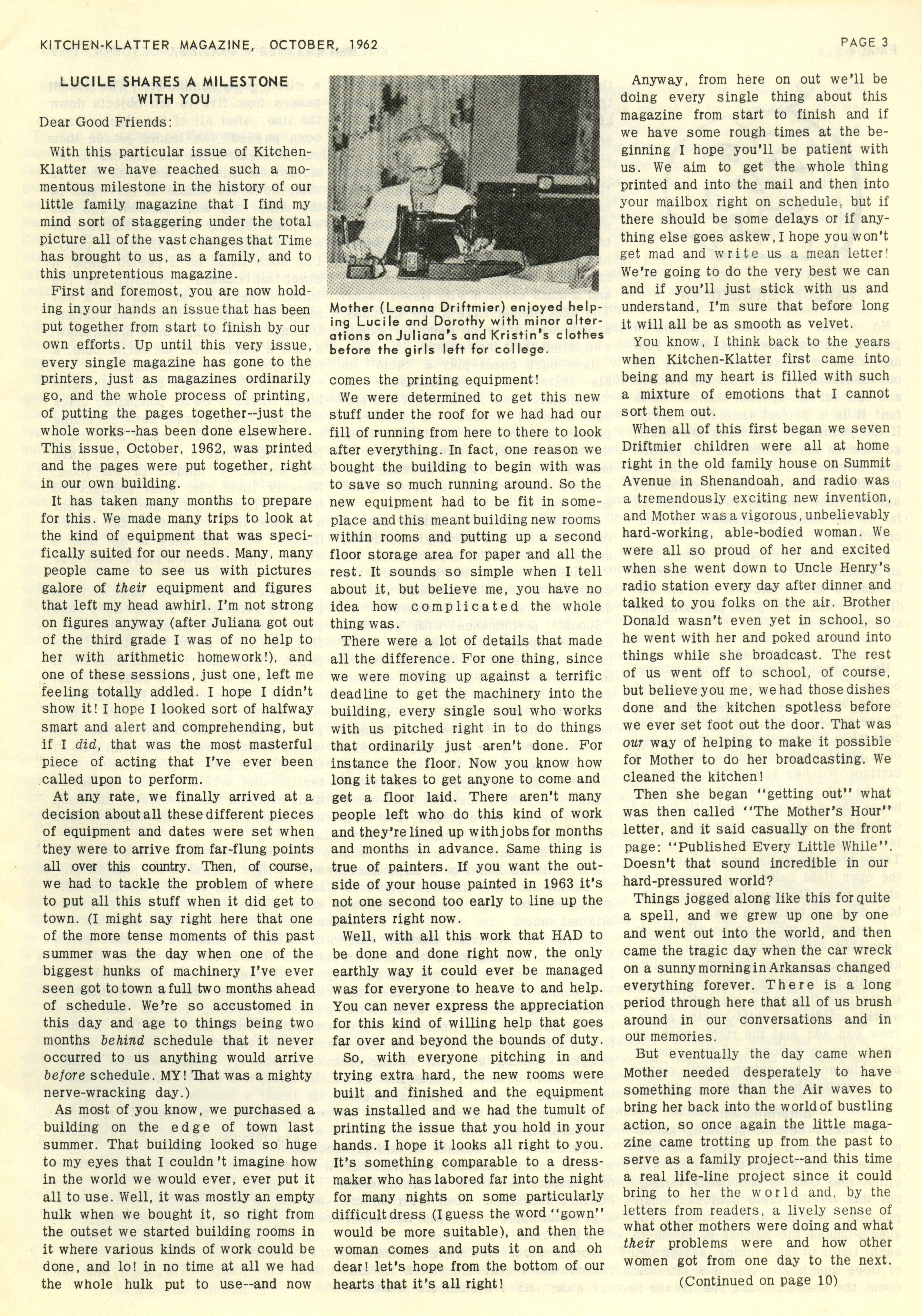 - "Kitchen-Klatter v. 26, n. 10, 1962", Kitchen-Klatter Magazine Issues, Iowa State University Library Digital Collections