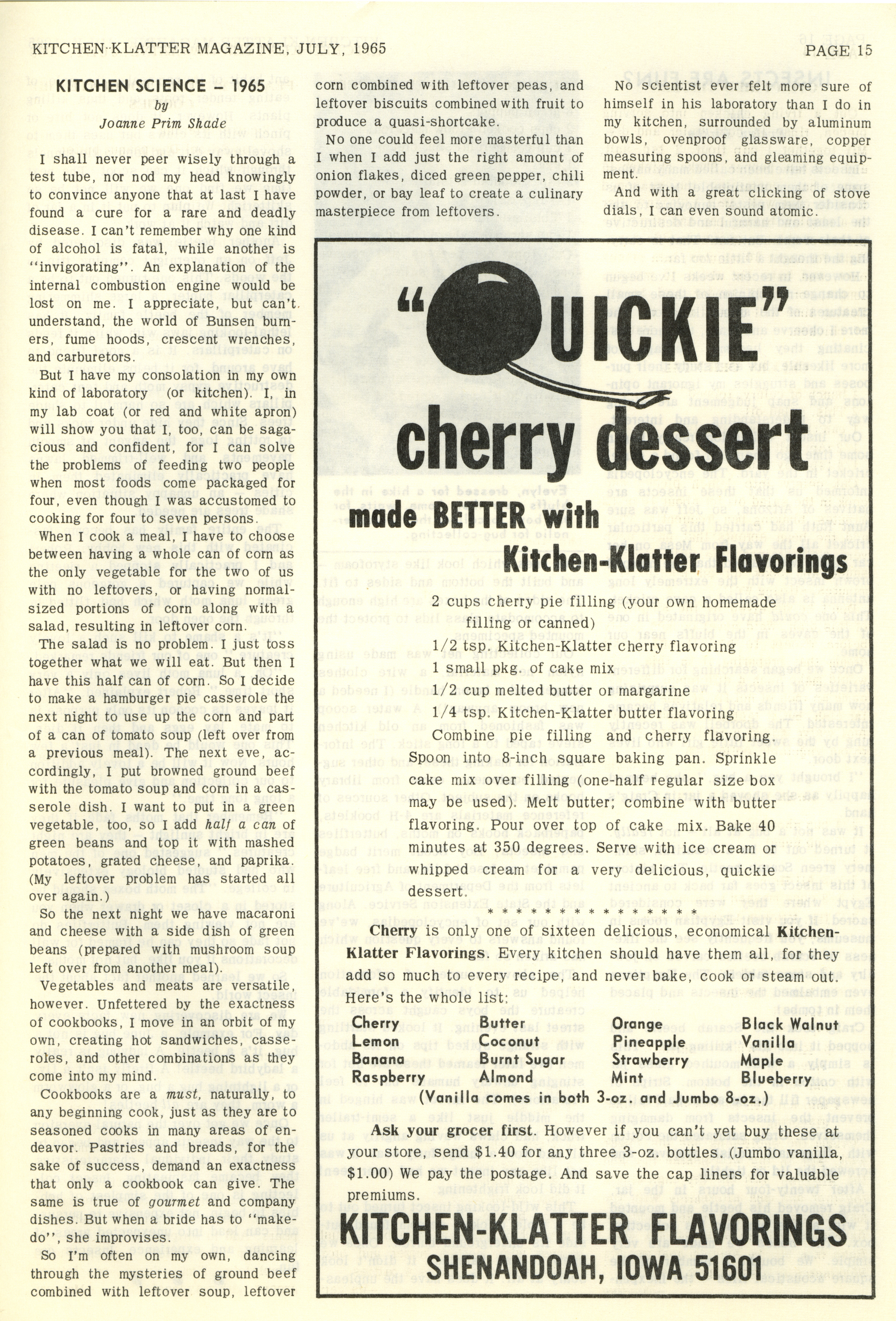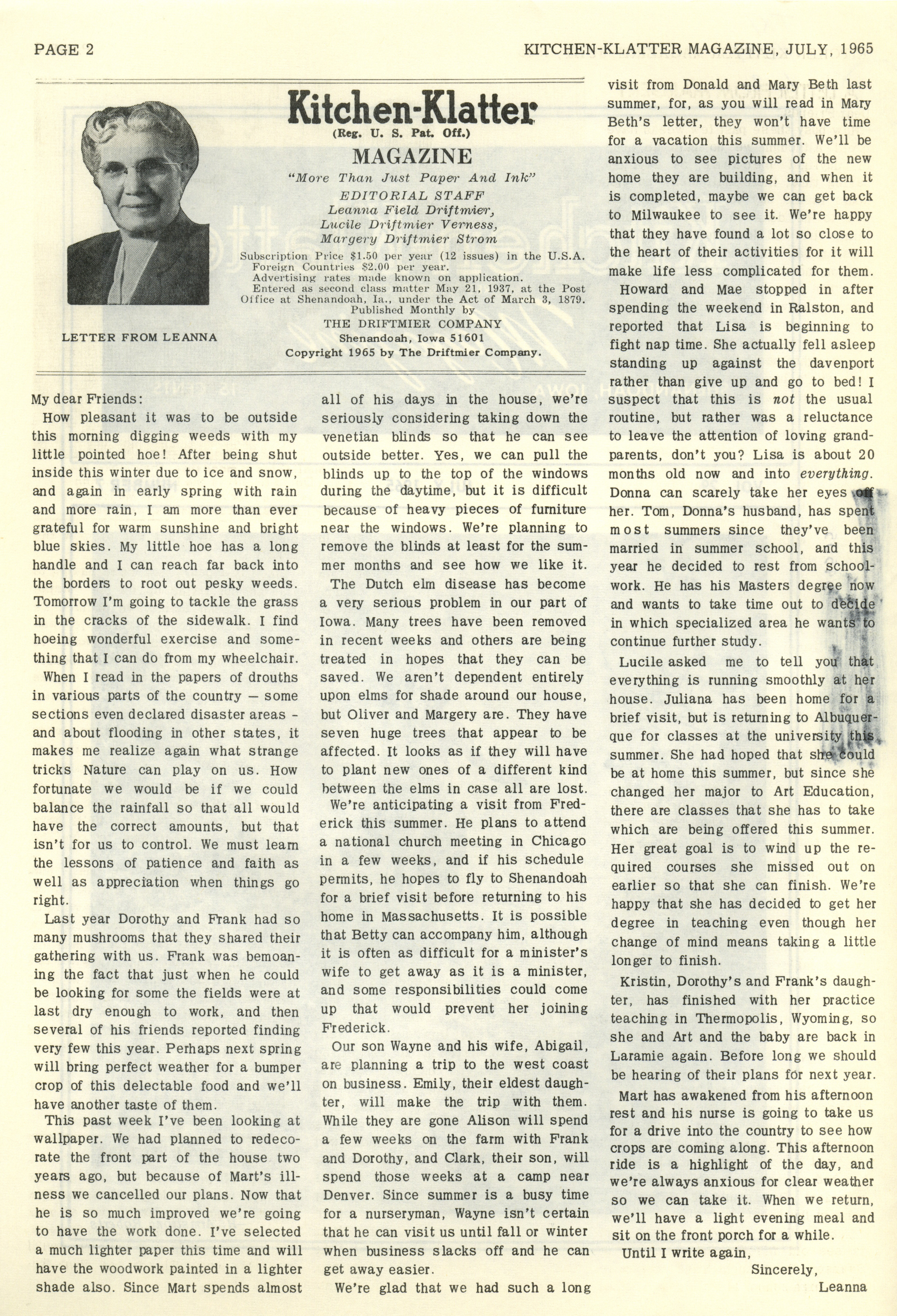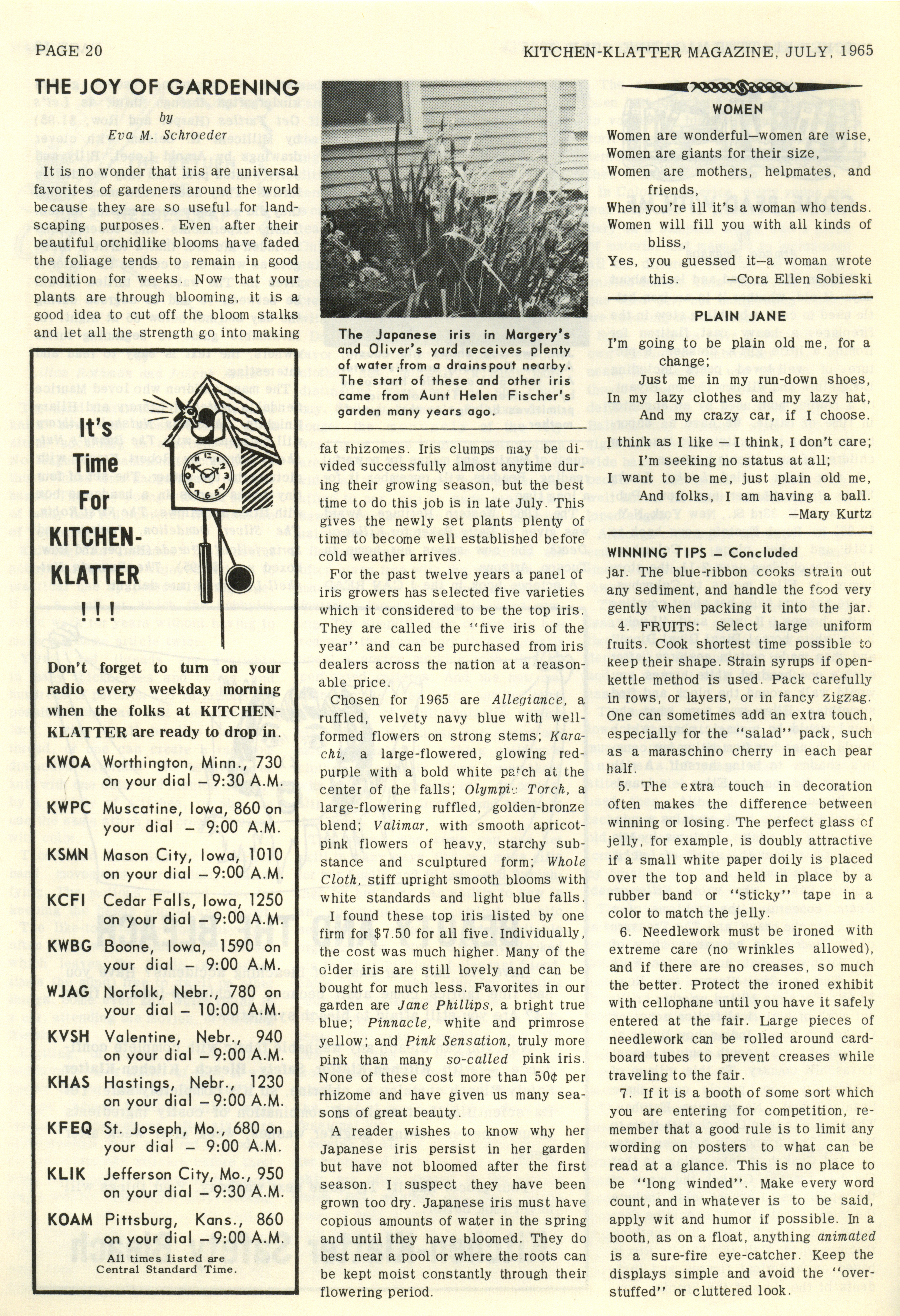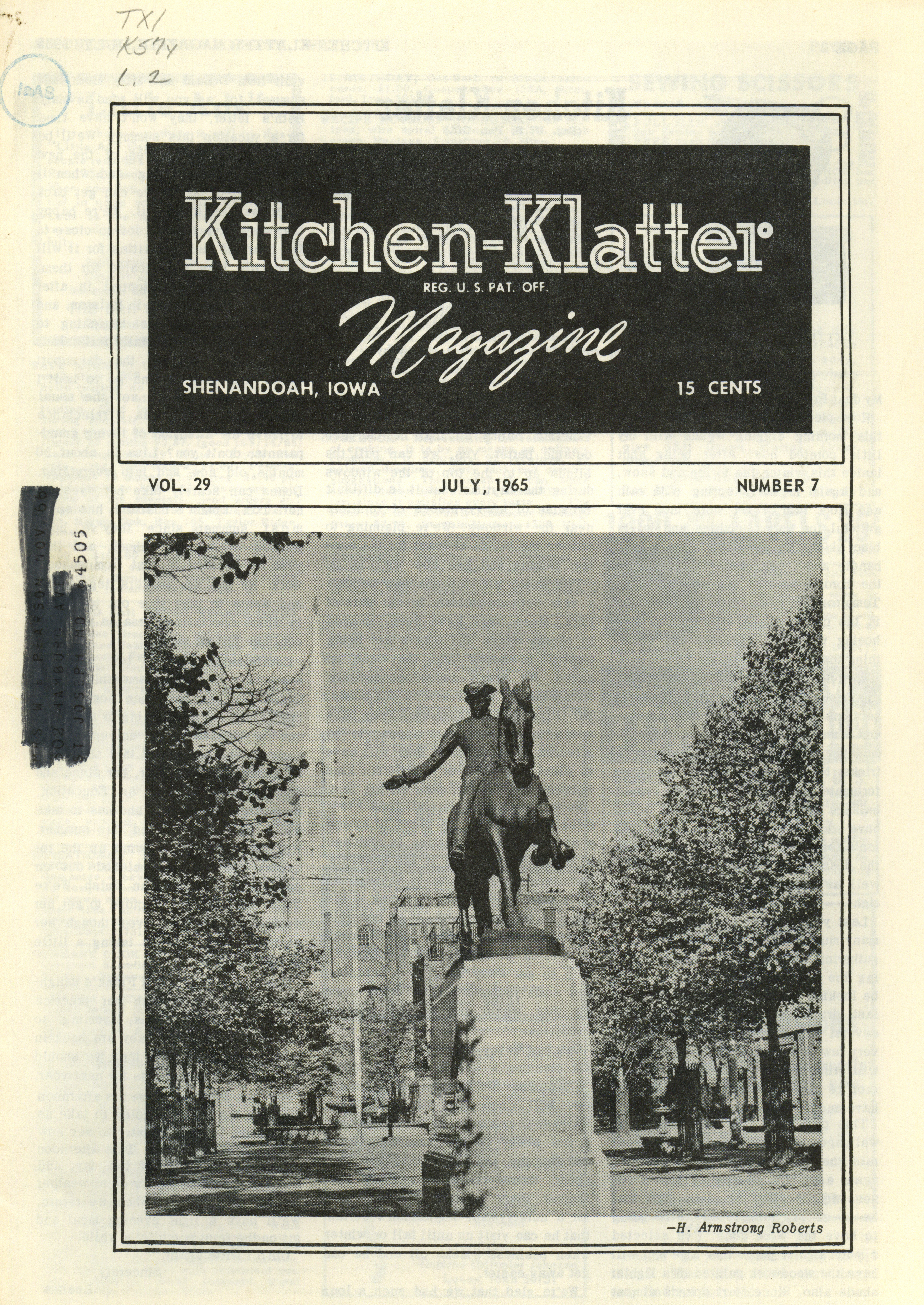 - "Kitchen-Klatter v. 29, n. 07, 1965", Kitchen-Klatter Magazine Issues, Iowa State University Library Digital Collections