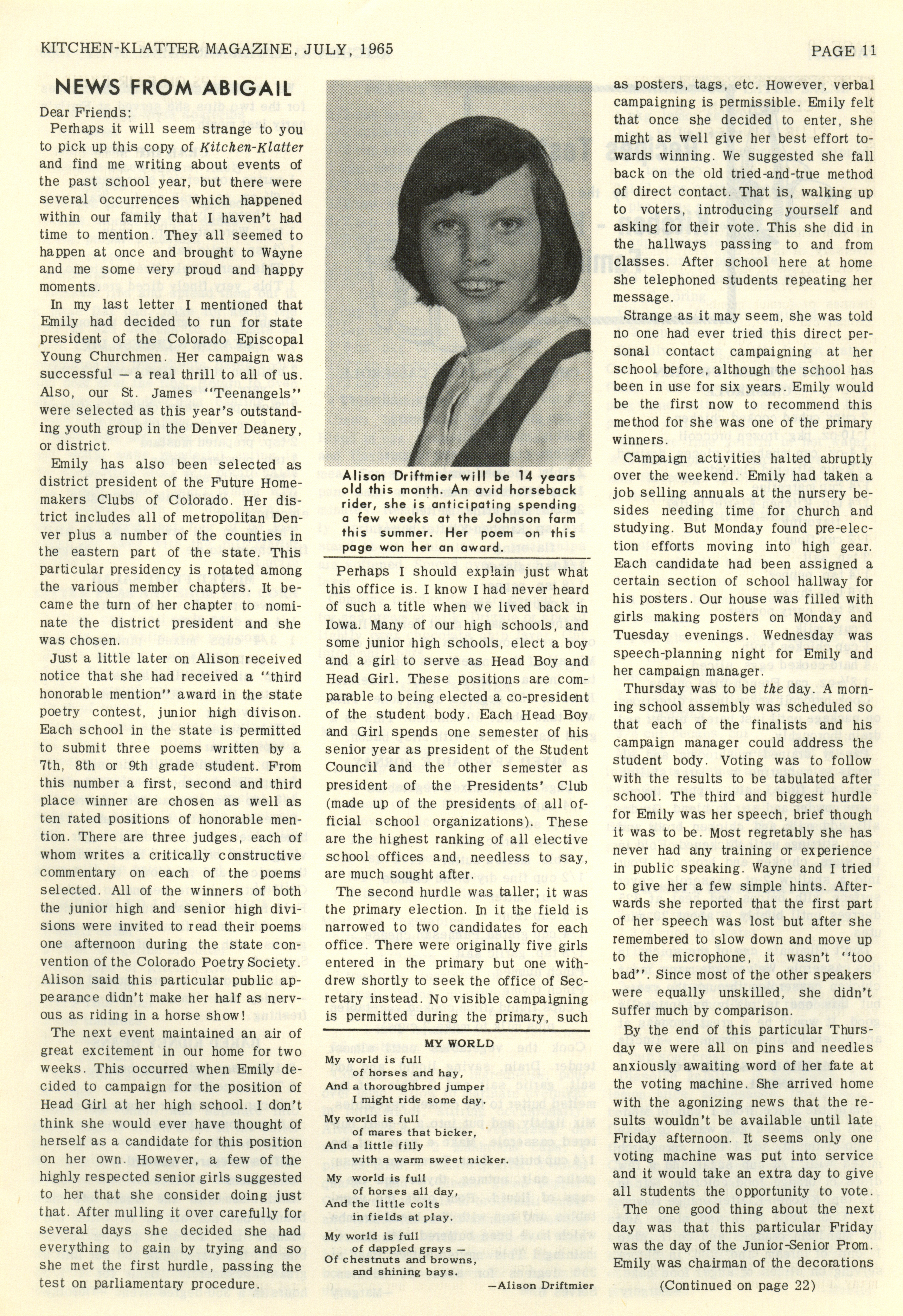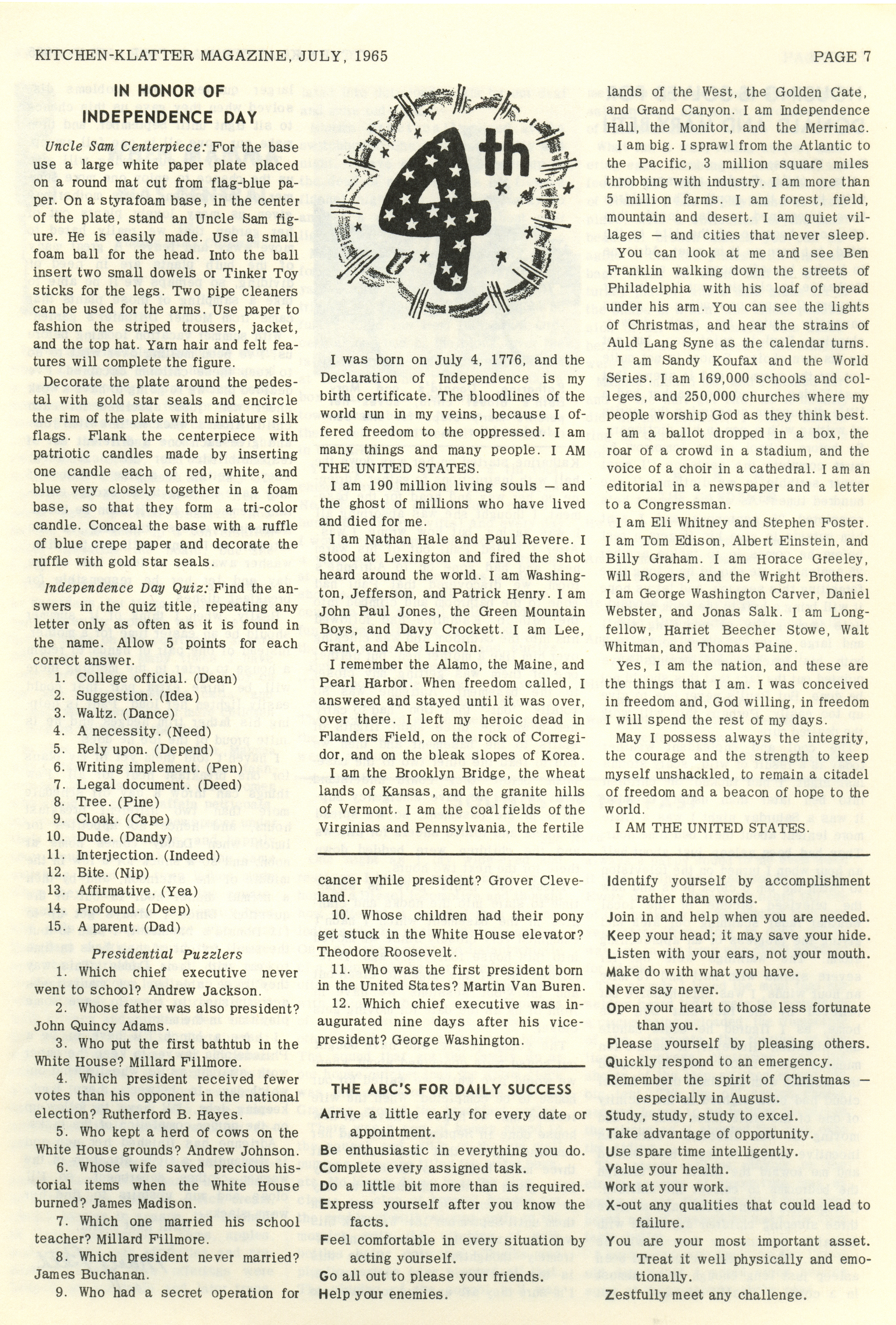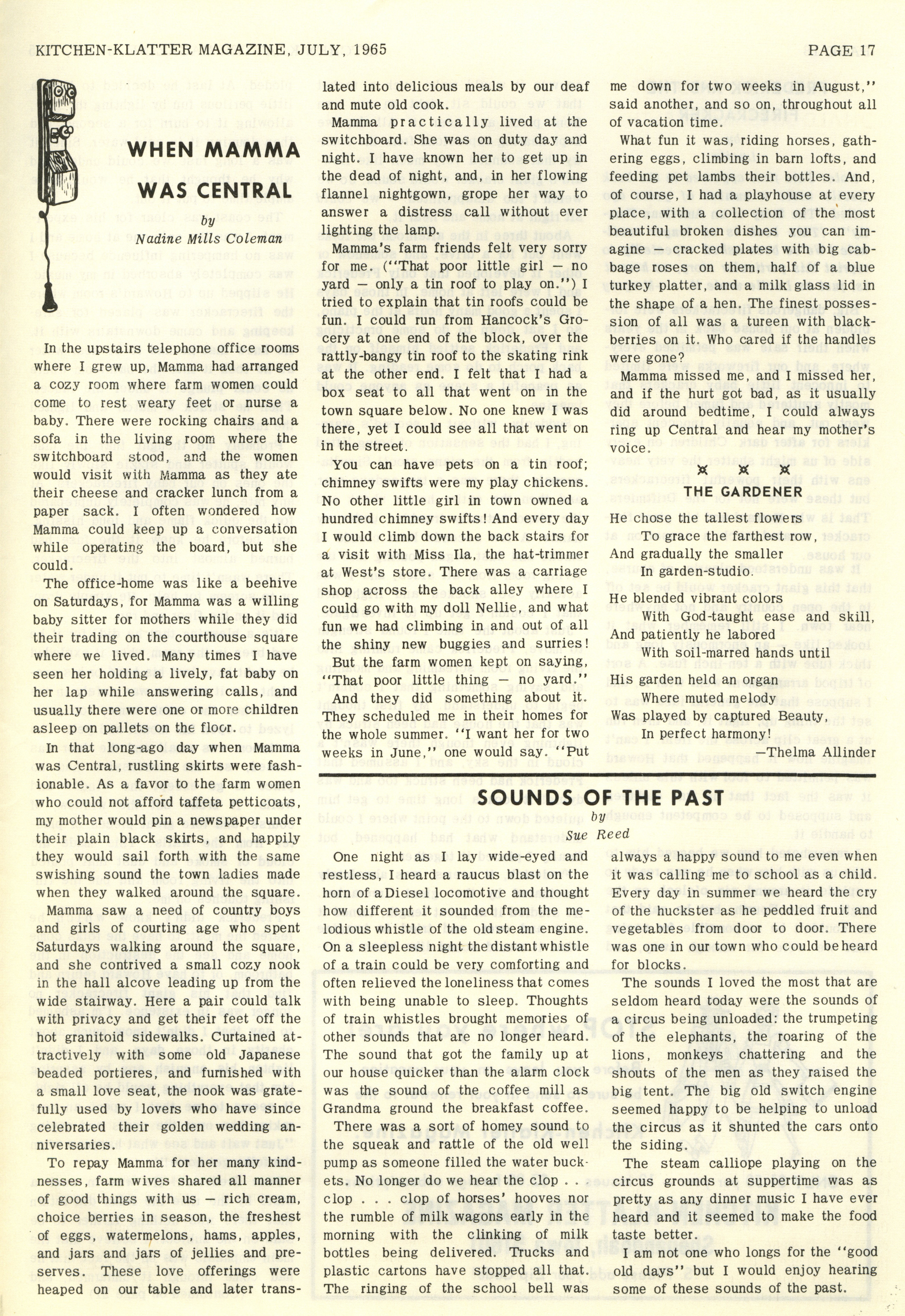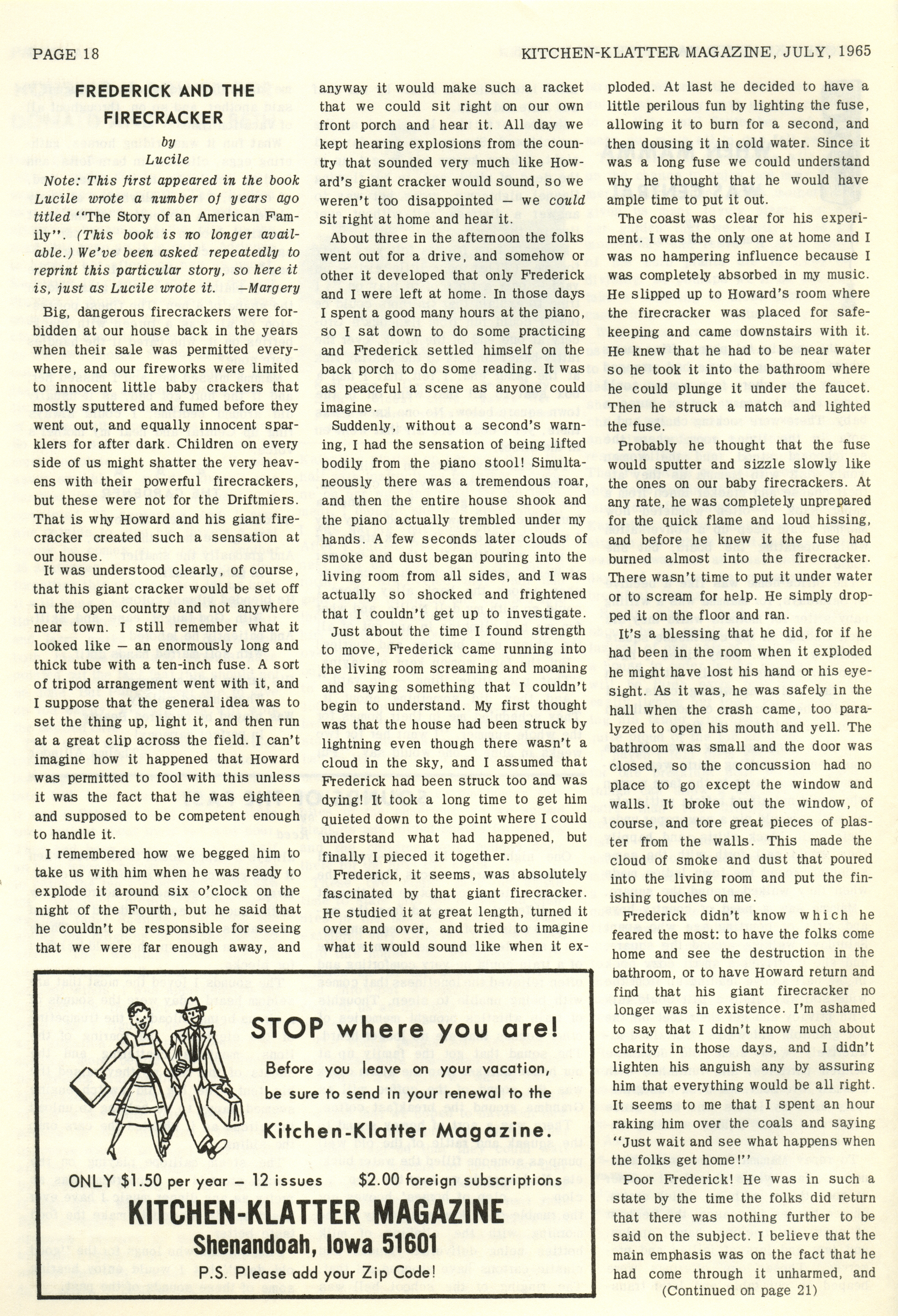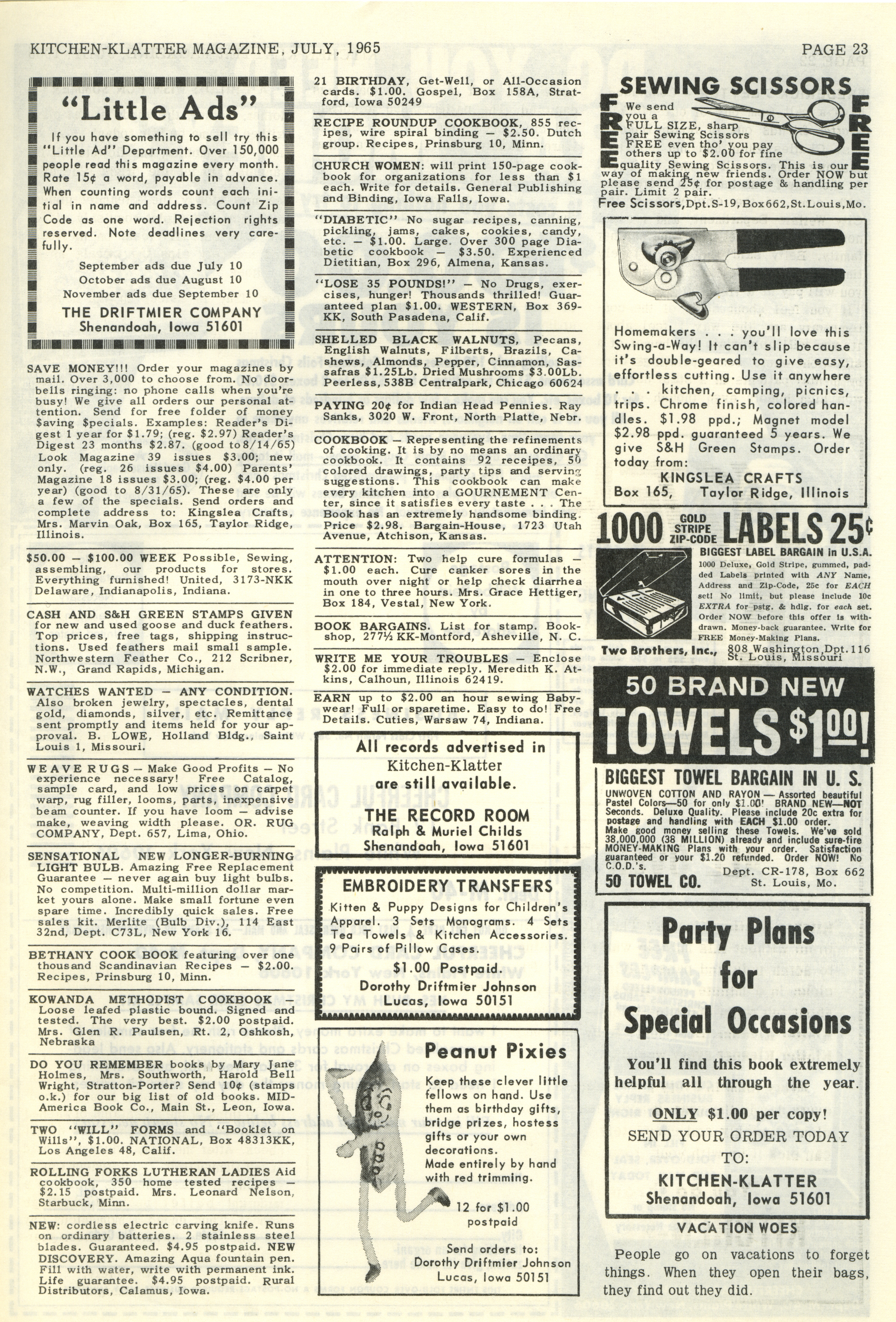 - "Kitchen-Klatter v. 29, n. 07, 1965", Kitchen-Klatter Magazine Issues, Iowa State University Library Digital Collections