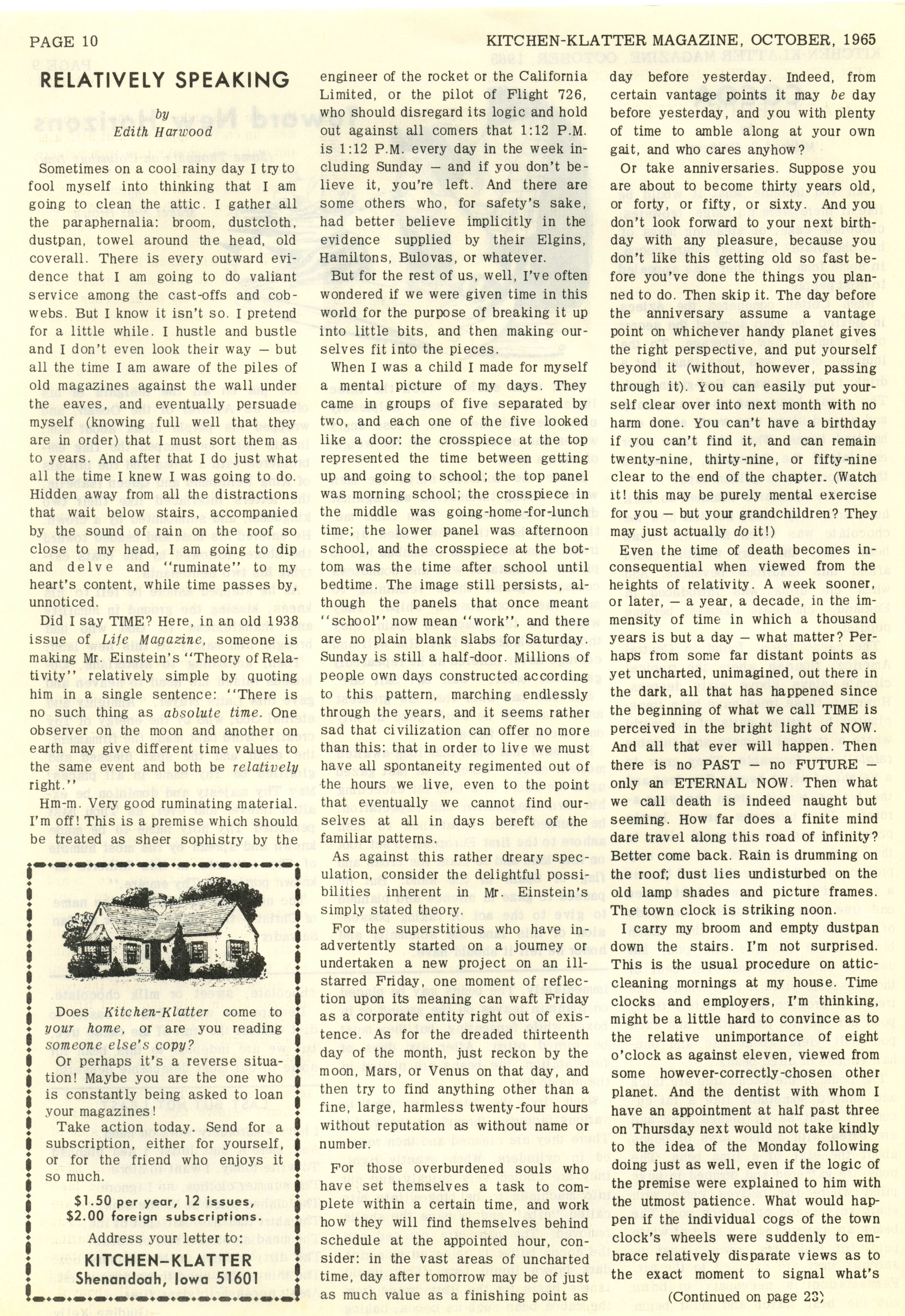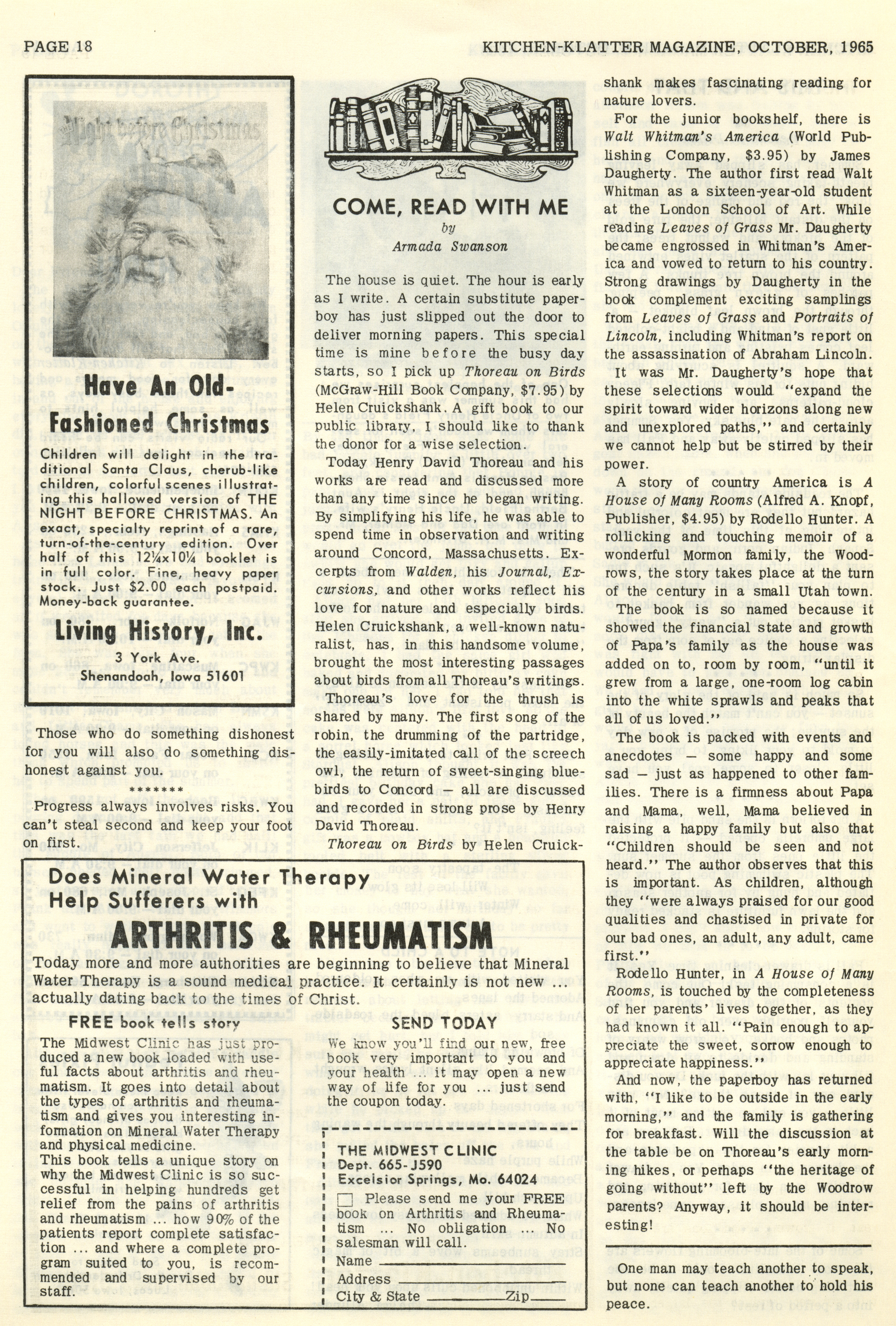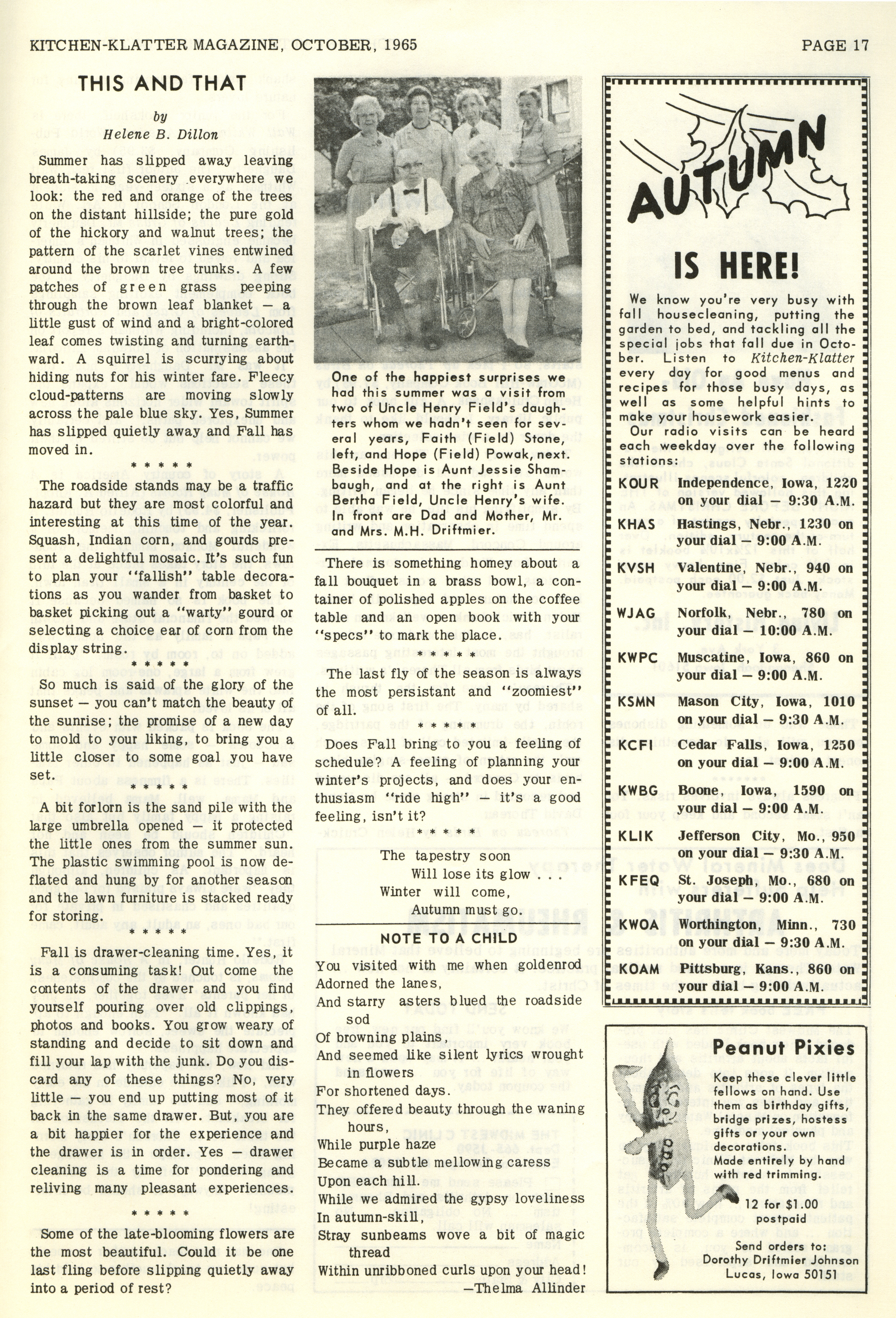 - "Kitchen-Klatter v. 29, n. 10, 1965", Kitchen-Klatter Magazine Issues, Iowa State University Library Digital Collections