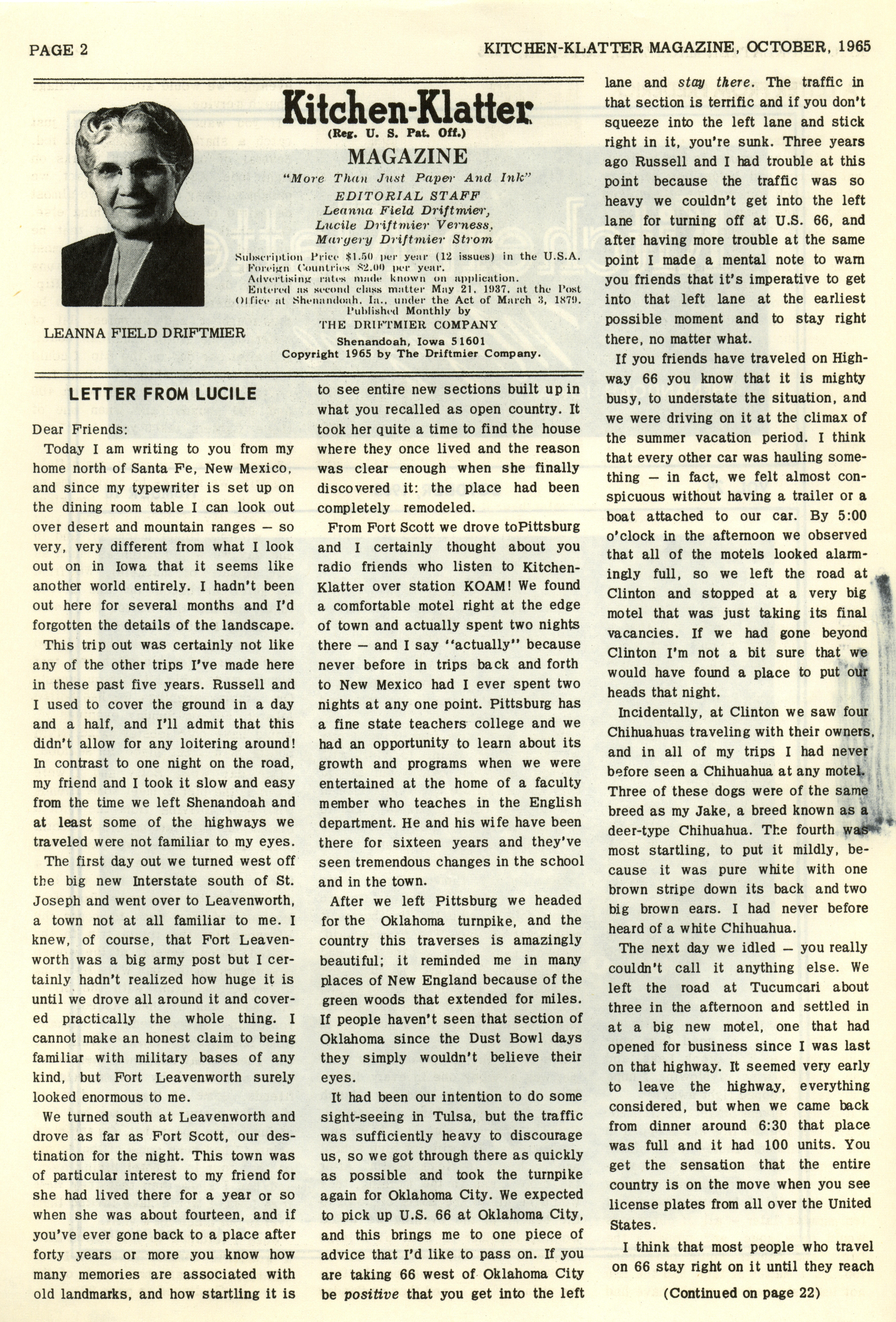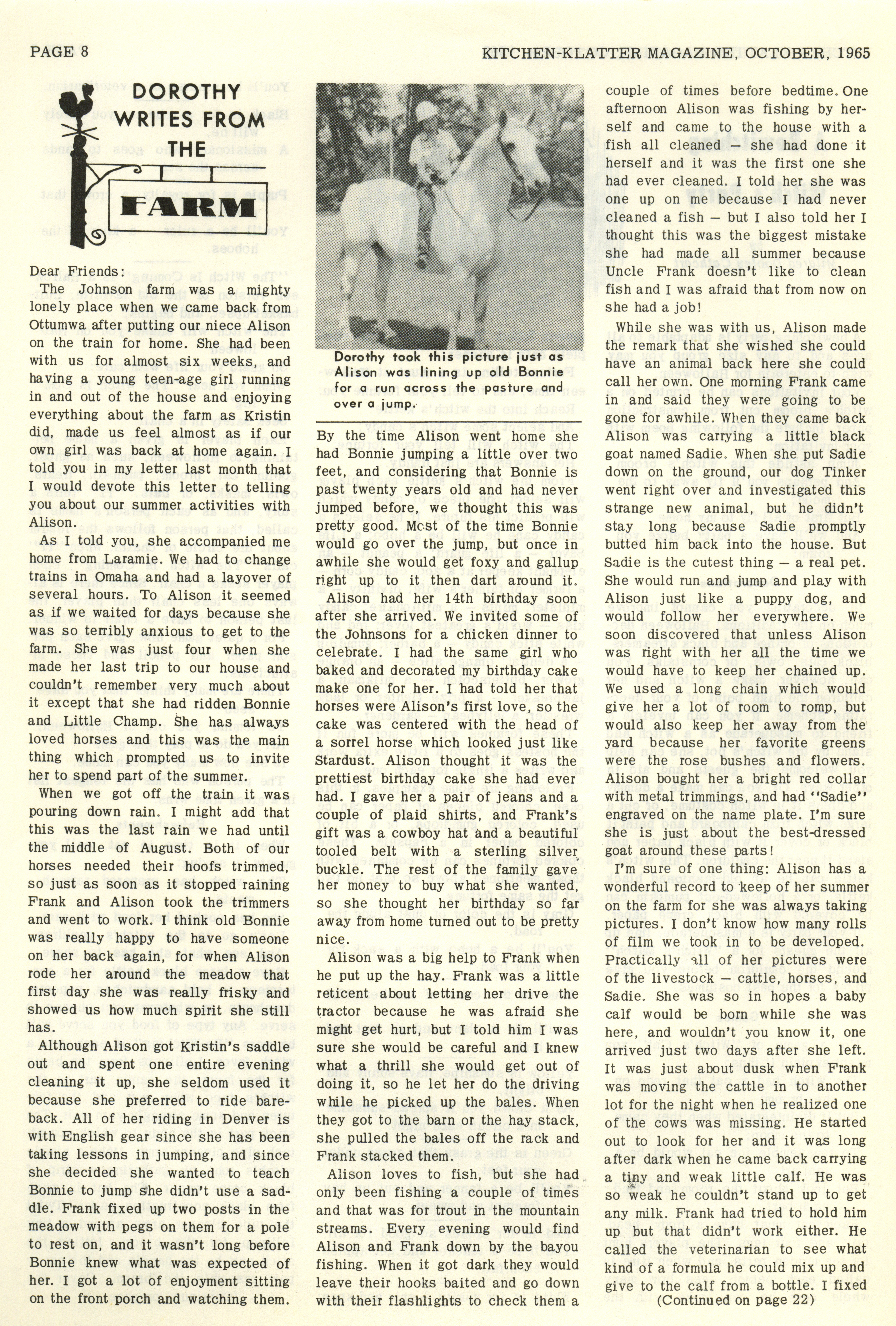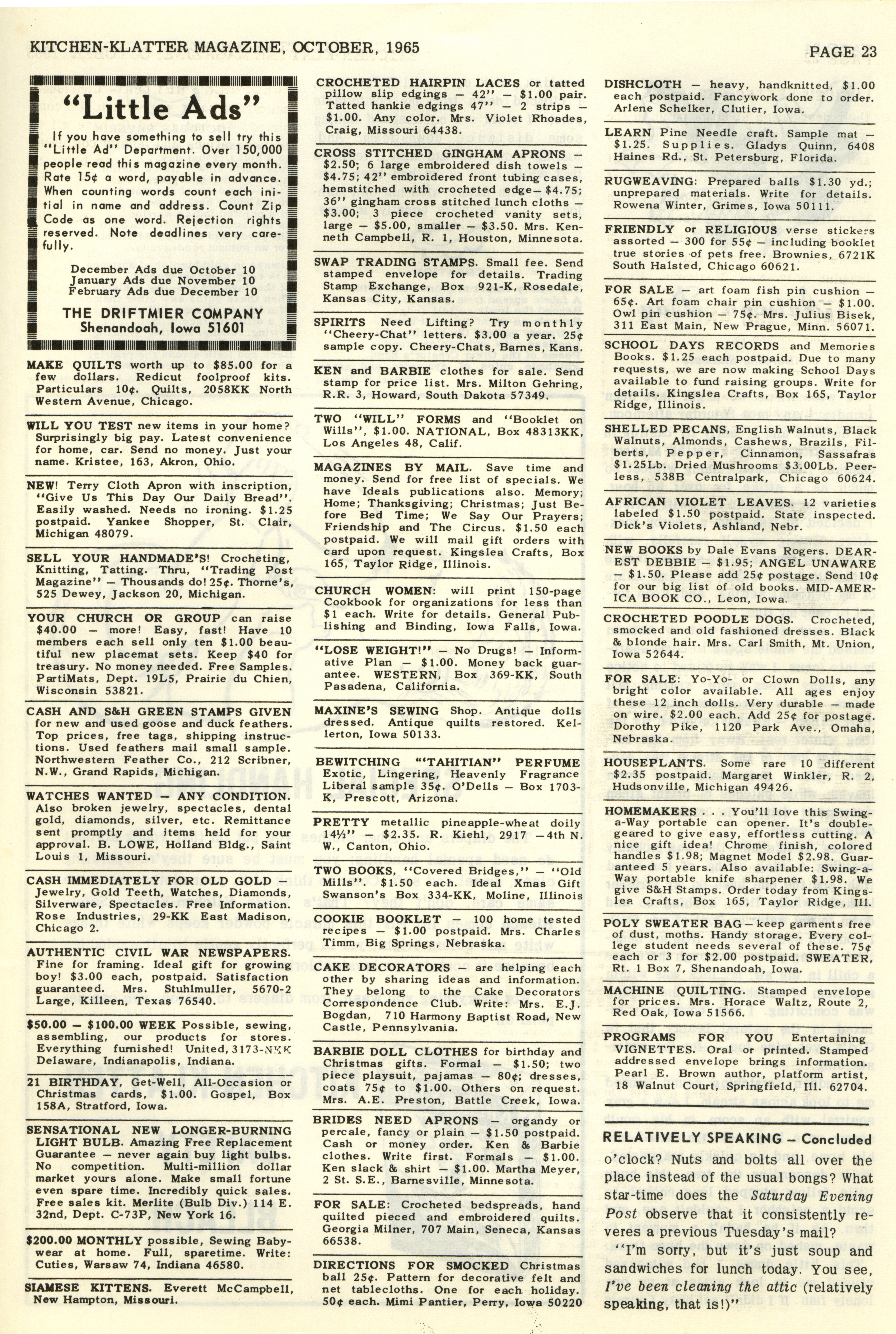 - "Kitchen-Klatter v. 29, n. 10, 1965", Kitchen-Klatter Magazine Issues, Iowa State University Library Digital Collections