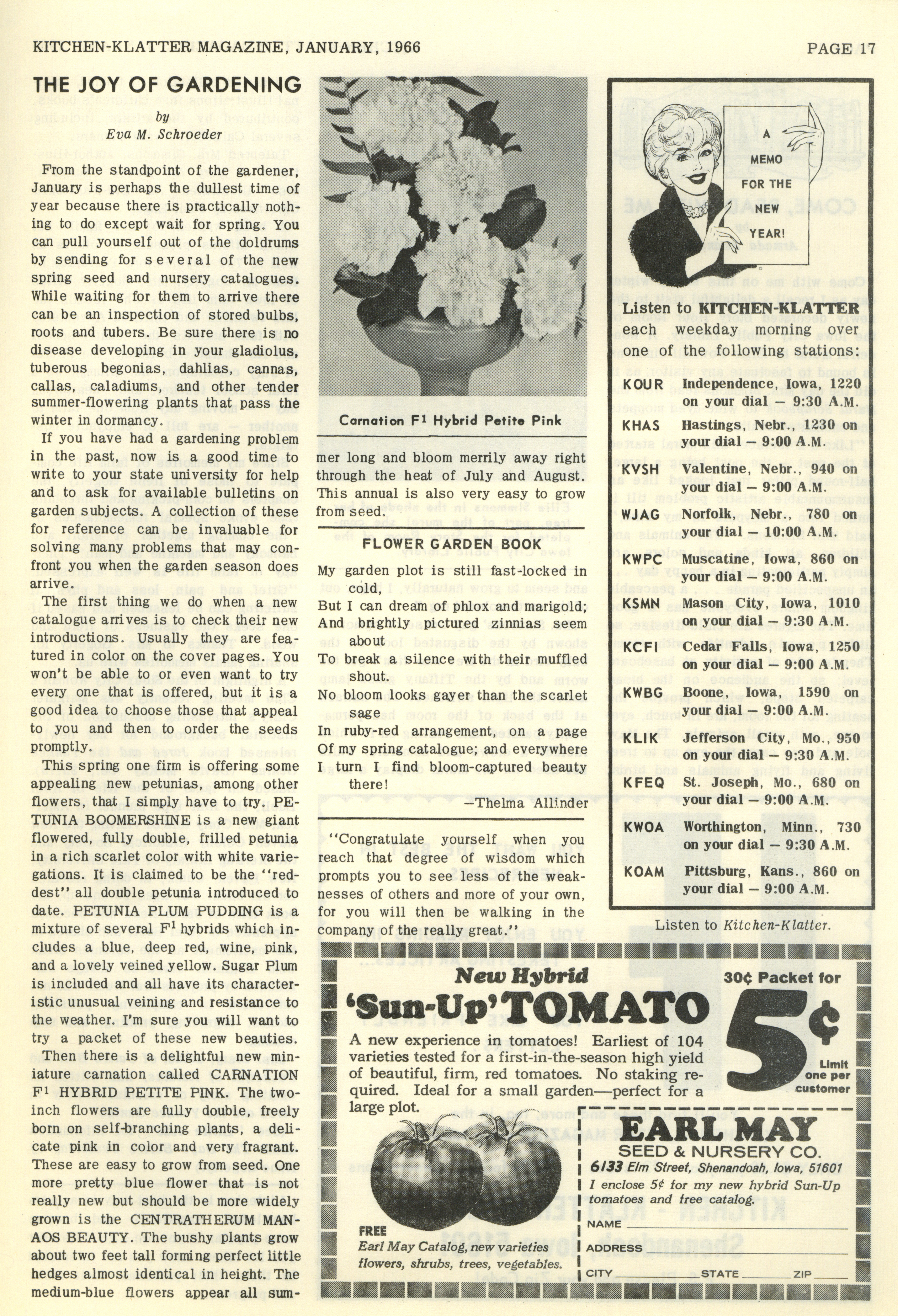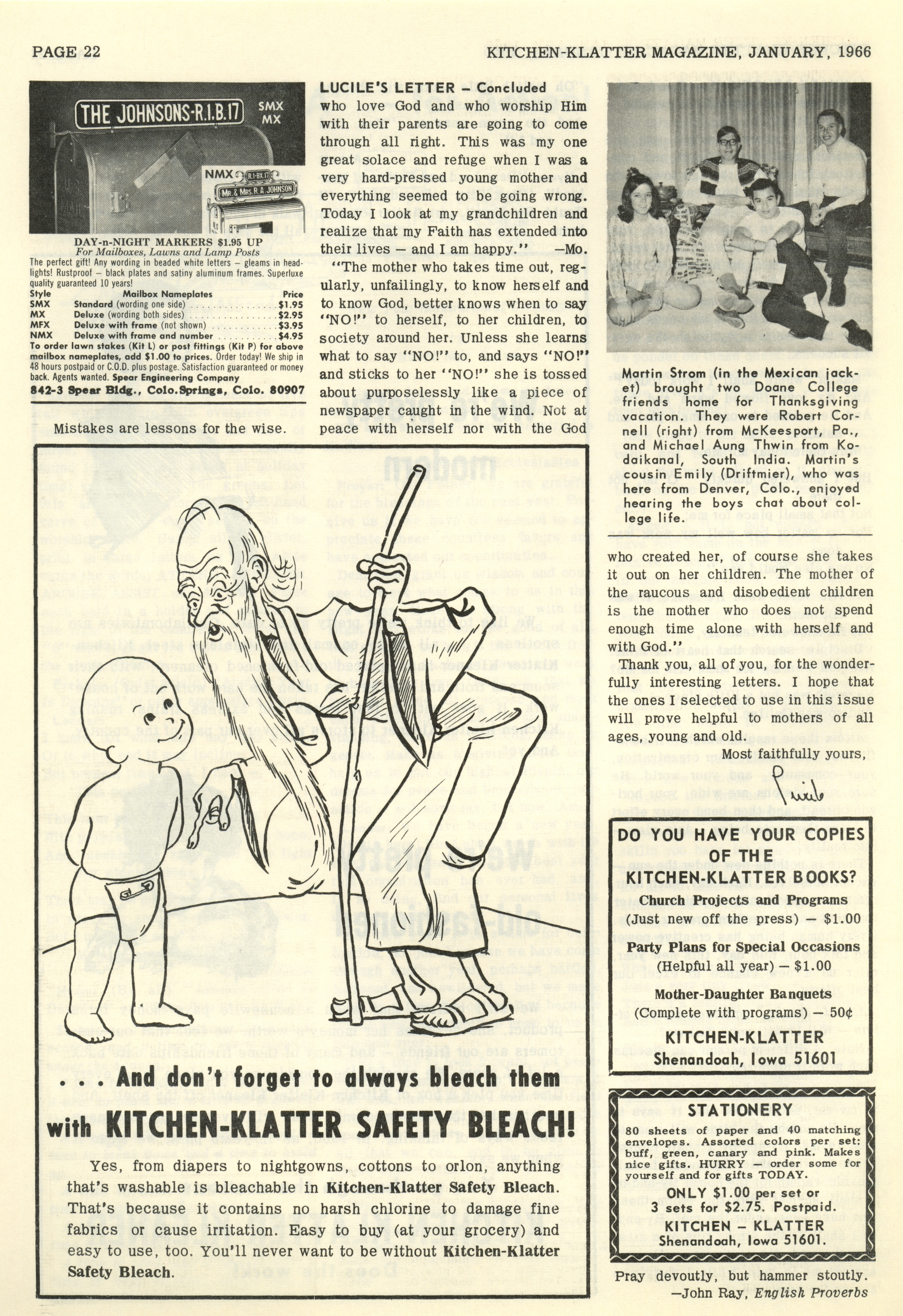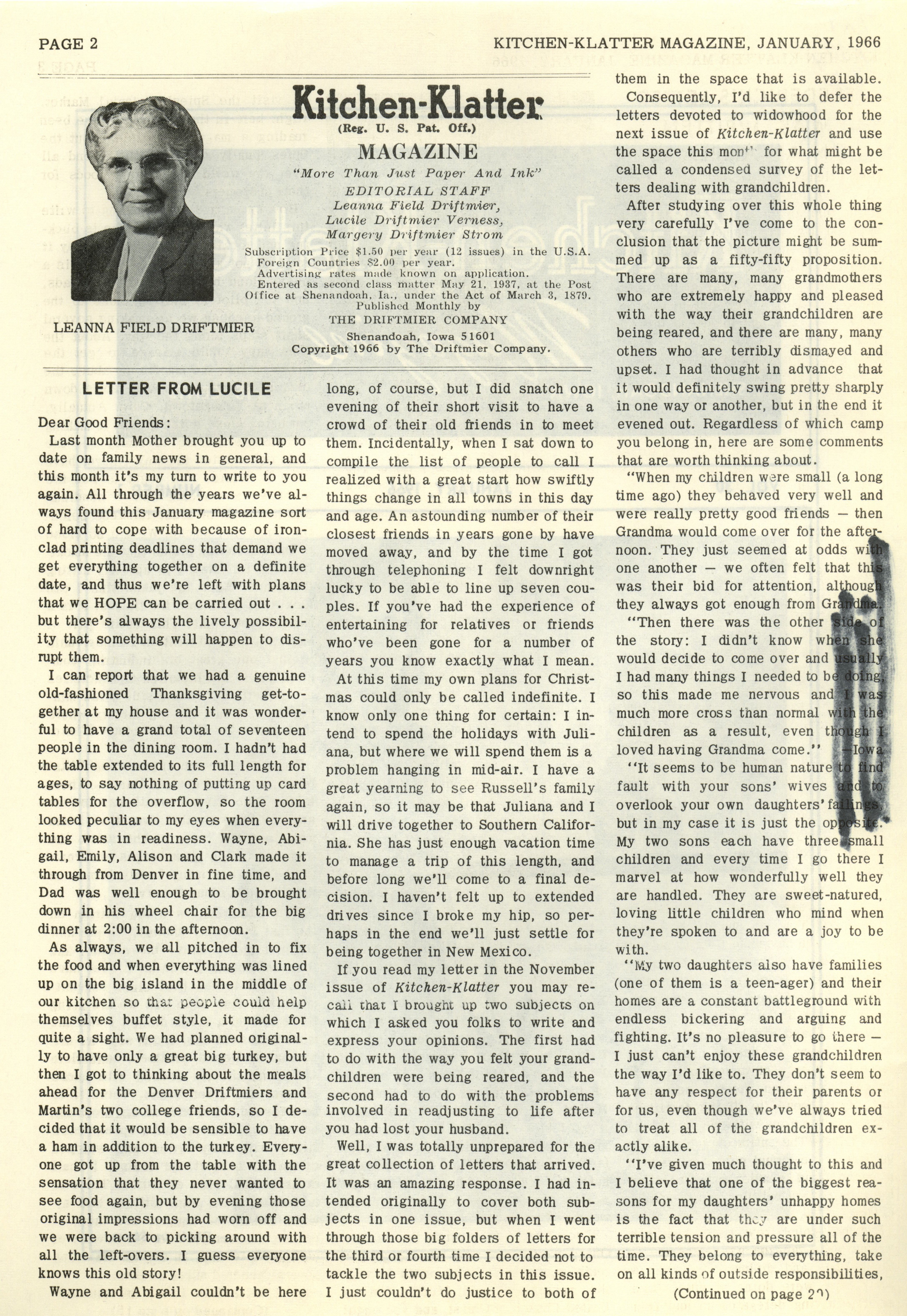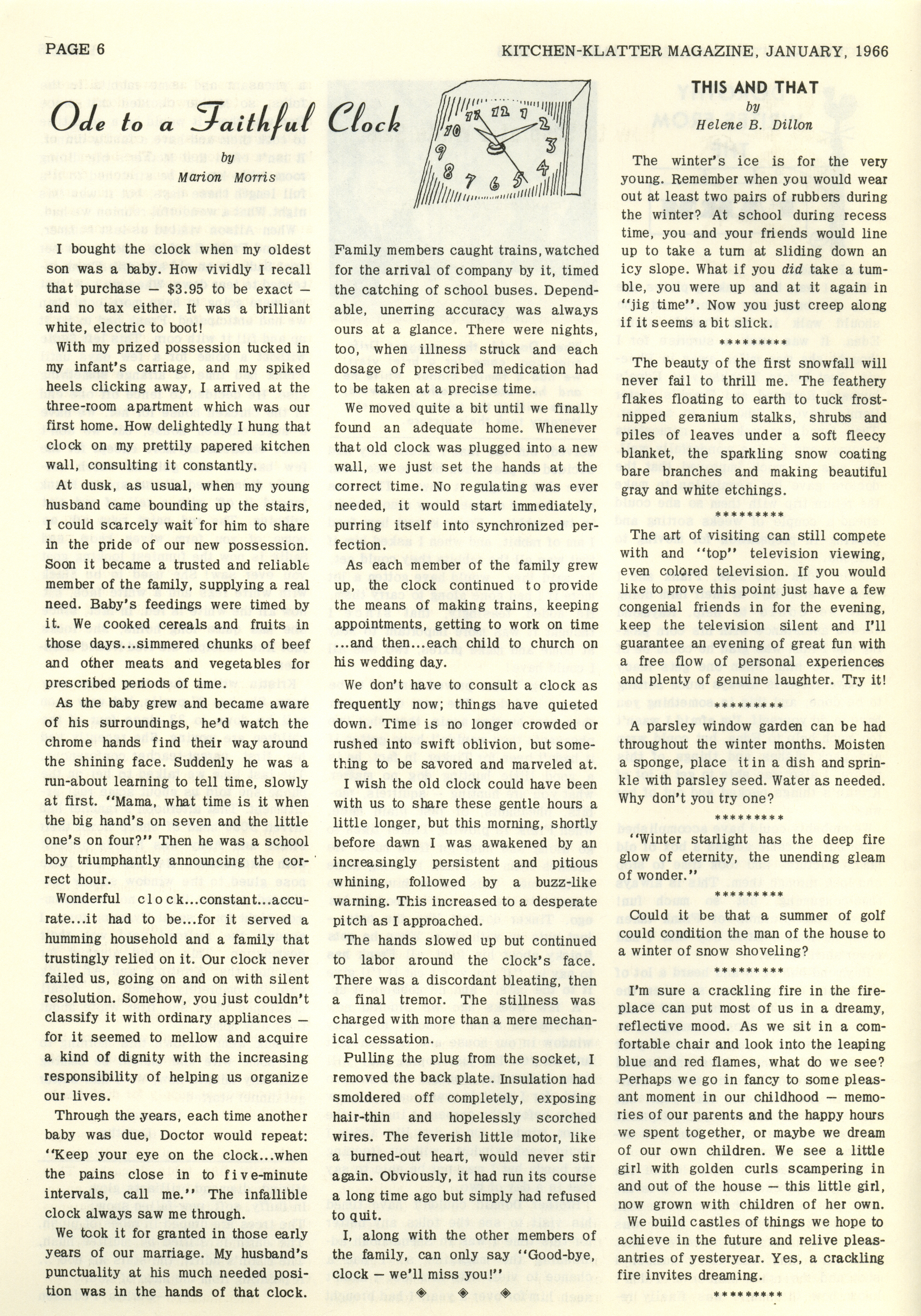 - "Kitchen-Klatter v. 30, n. 01, 1966", Kitchen-Klatter Magazine Issues, Iowa State University Library Digital Collections