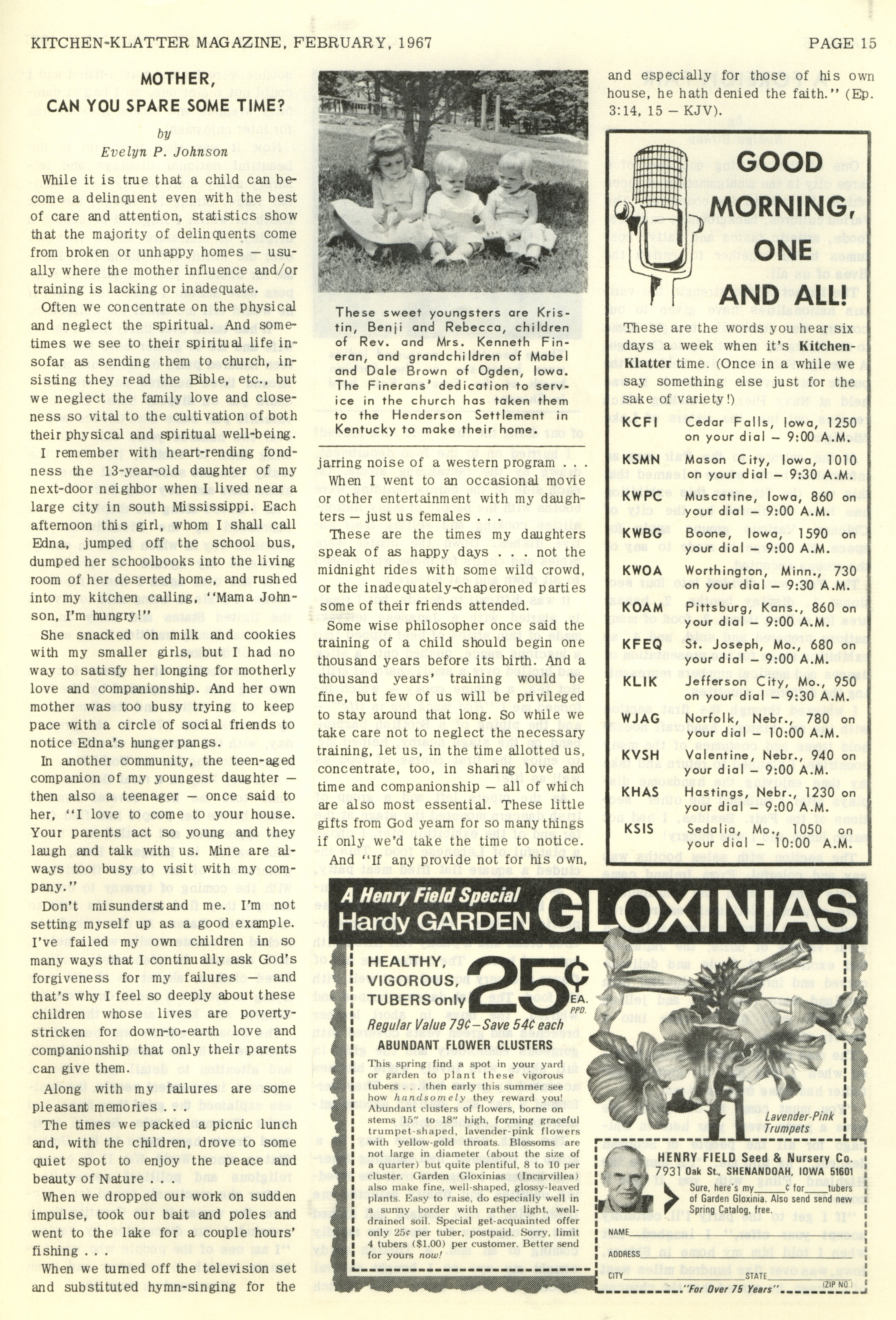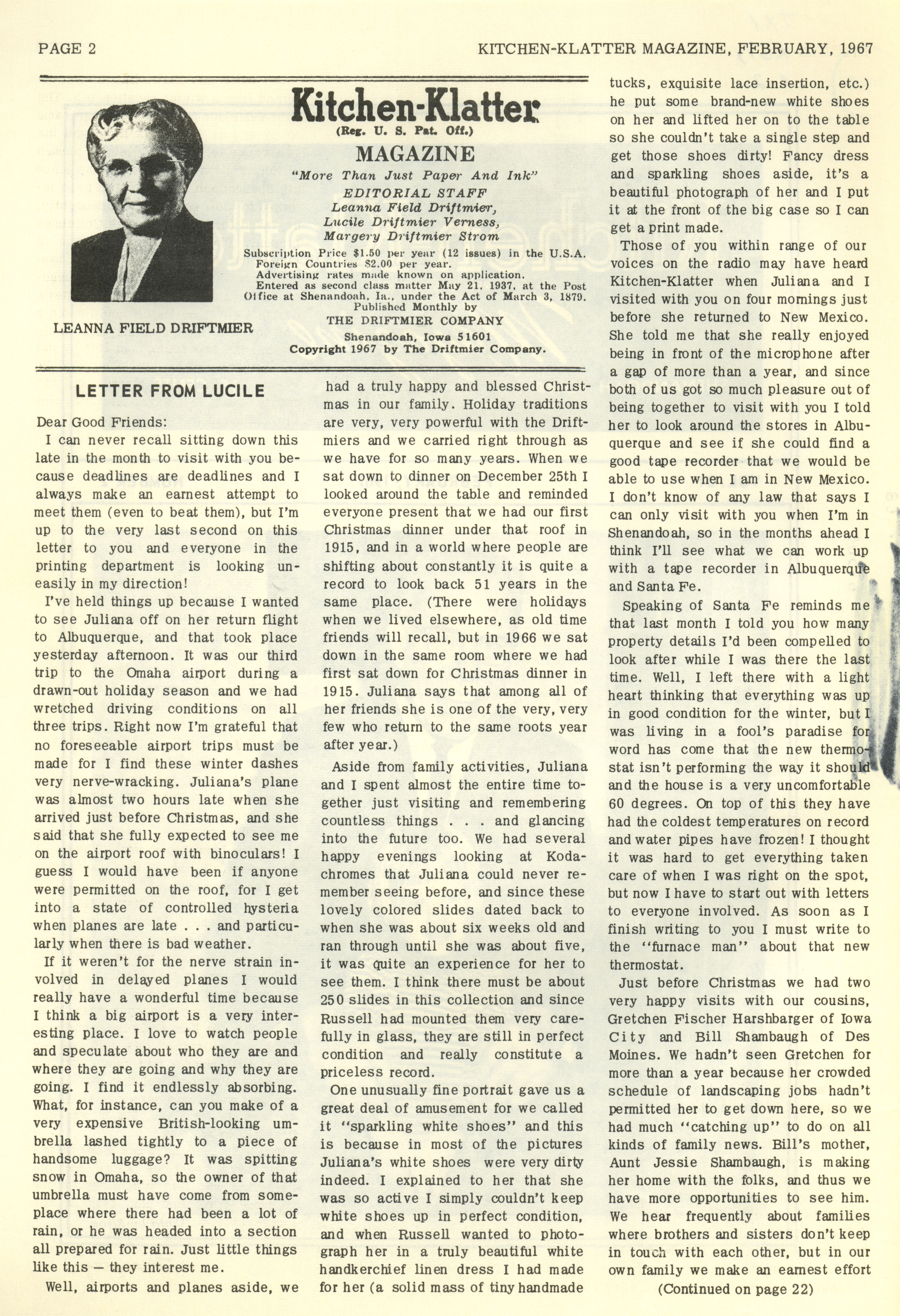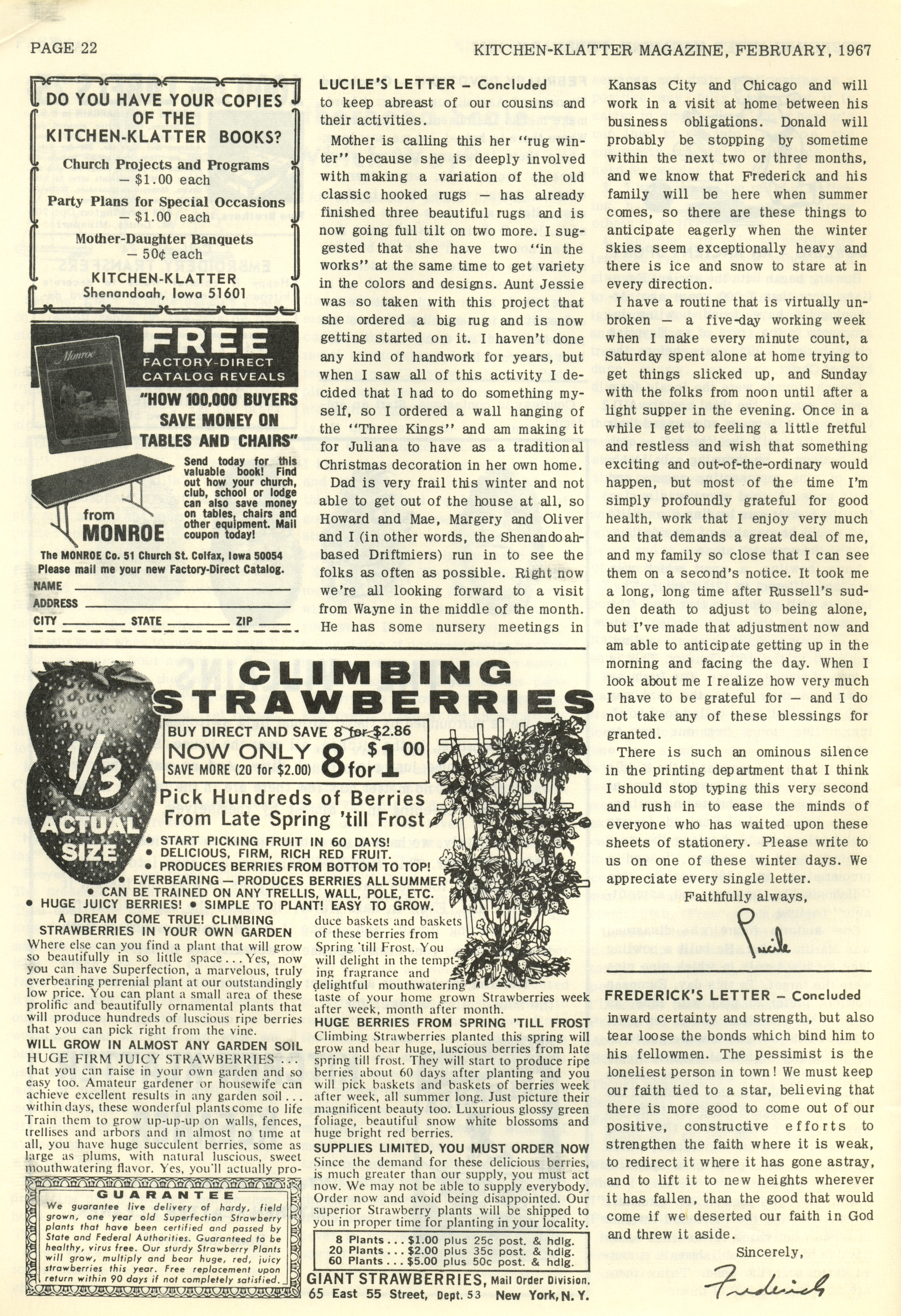 - "Kitchen-Klatter v. 31, n. 02, 1967", Kitchen-Klatter Magazine Issues, Iowa State University Library Digital Collections