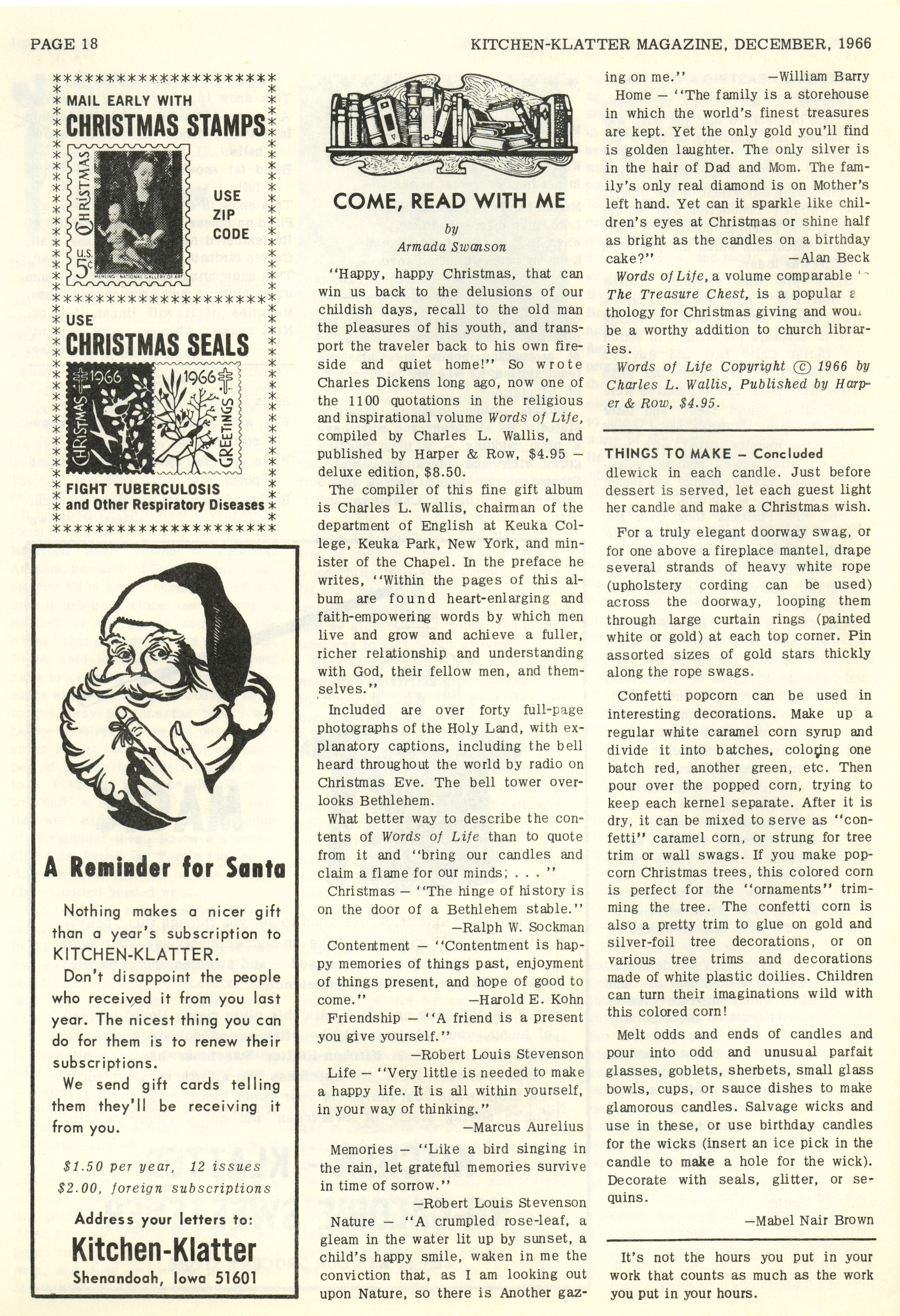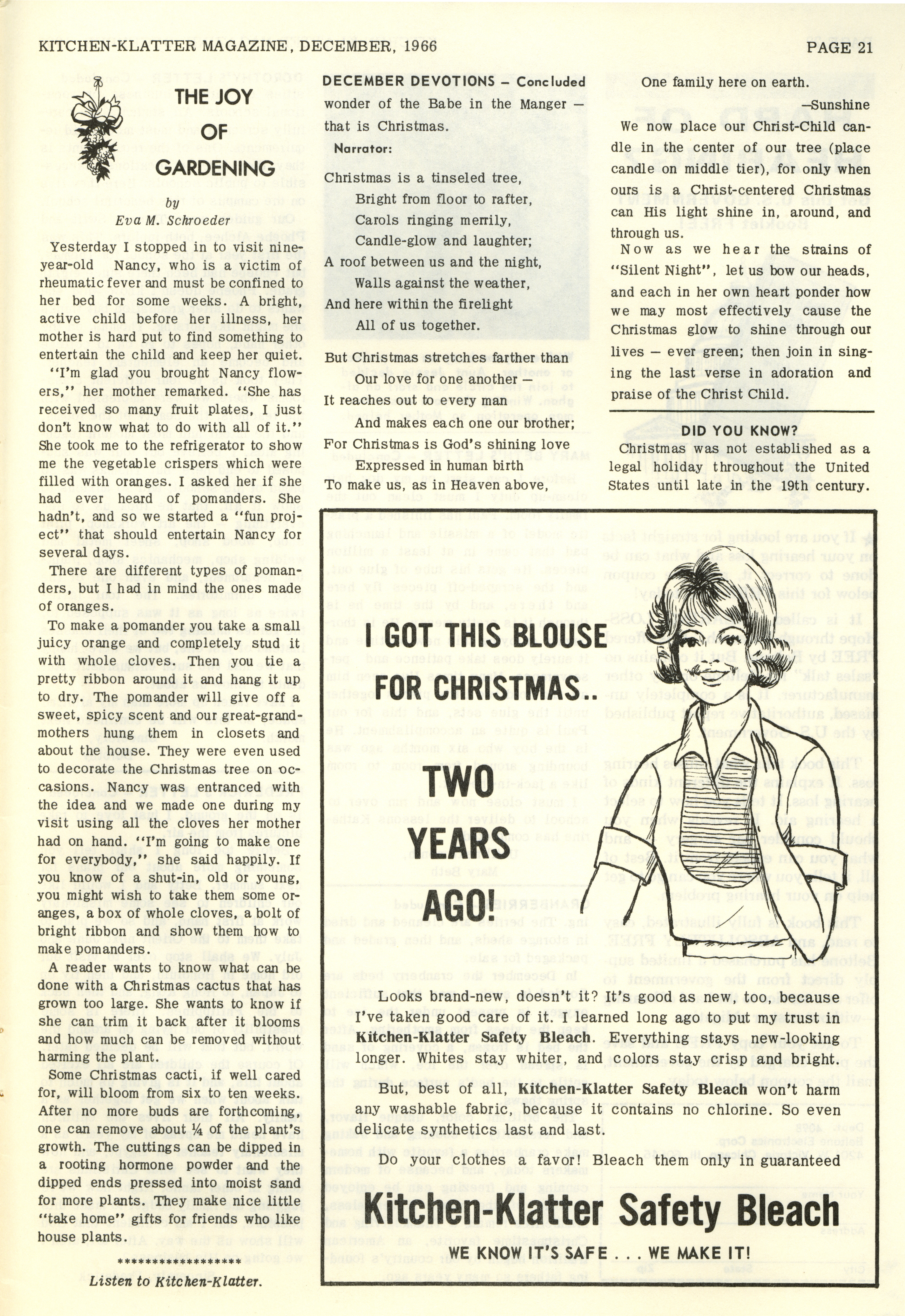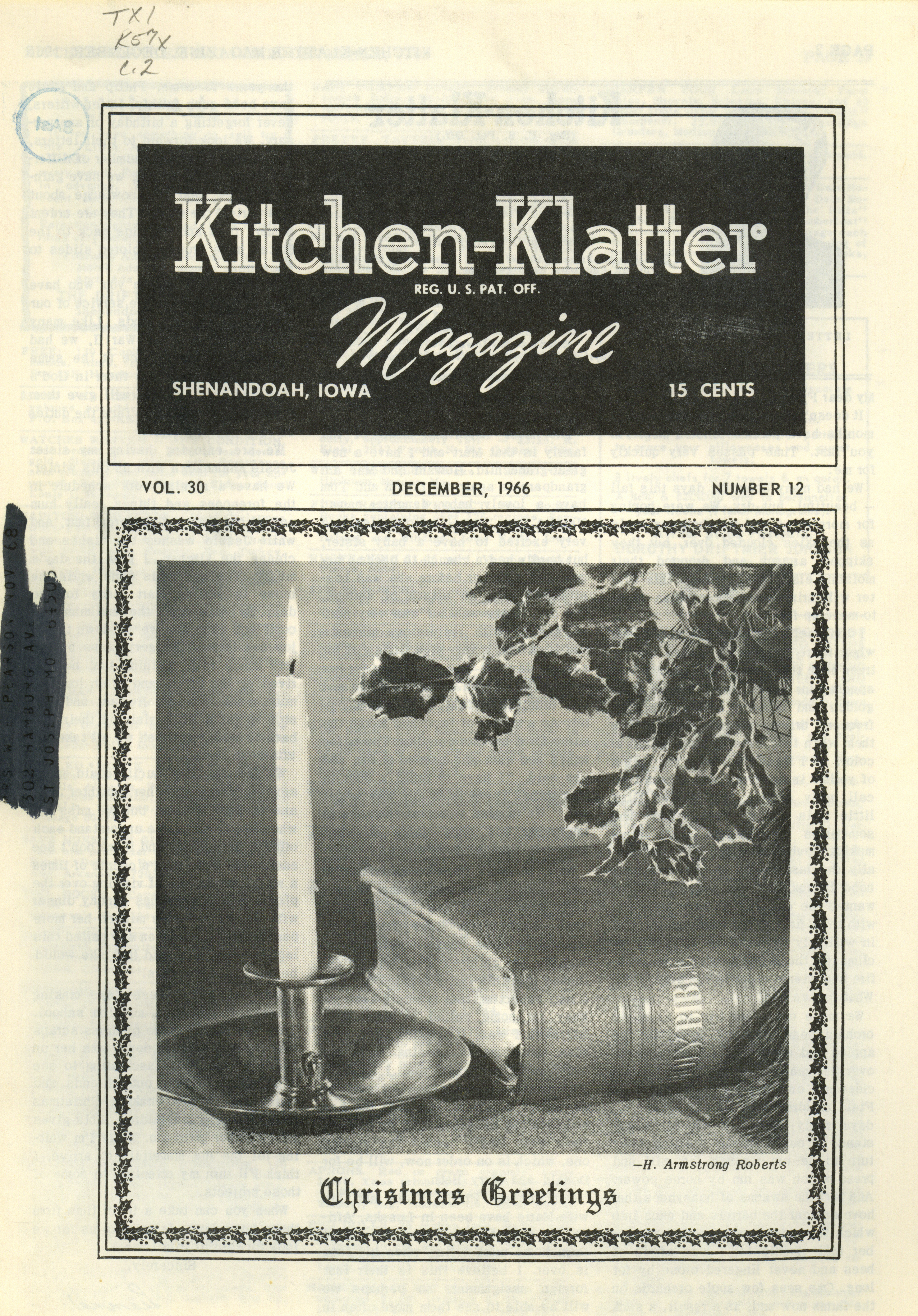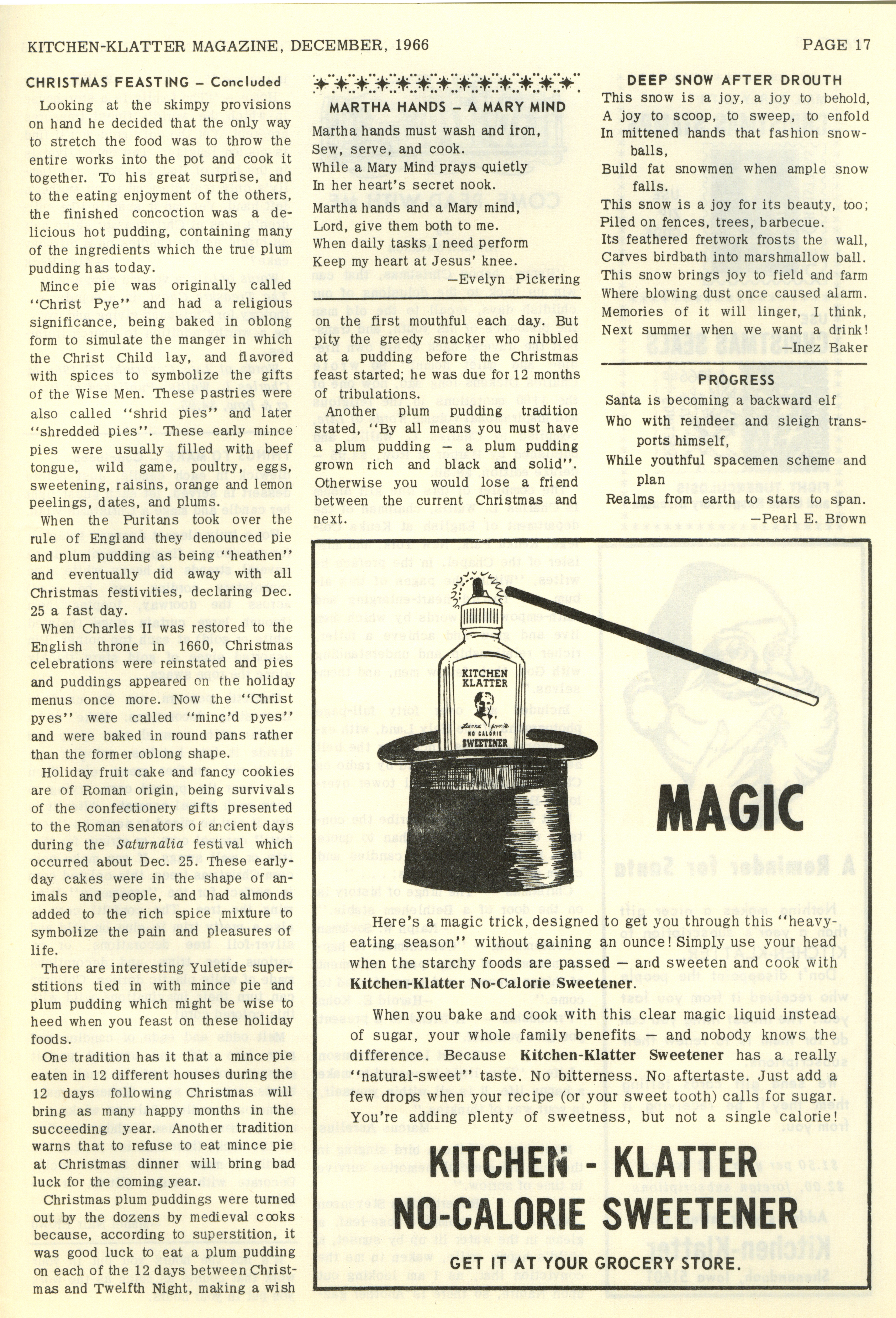 - "Kitchen-Klatter v. 30, n. 12, 1966", Kitchen-Klatter Magazine Issues, Iowa State University Library Digital Collections