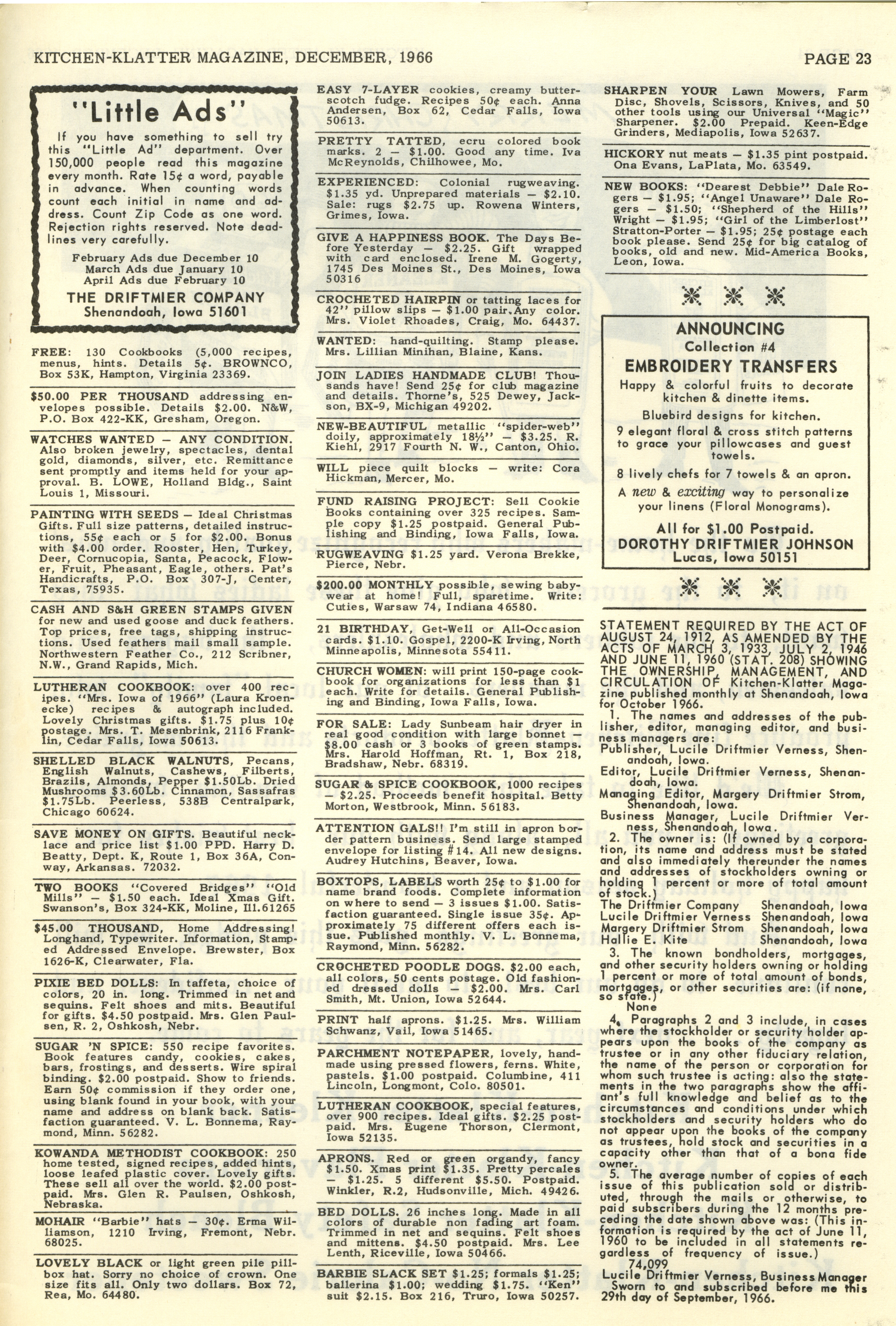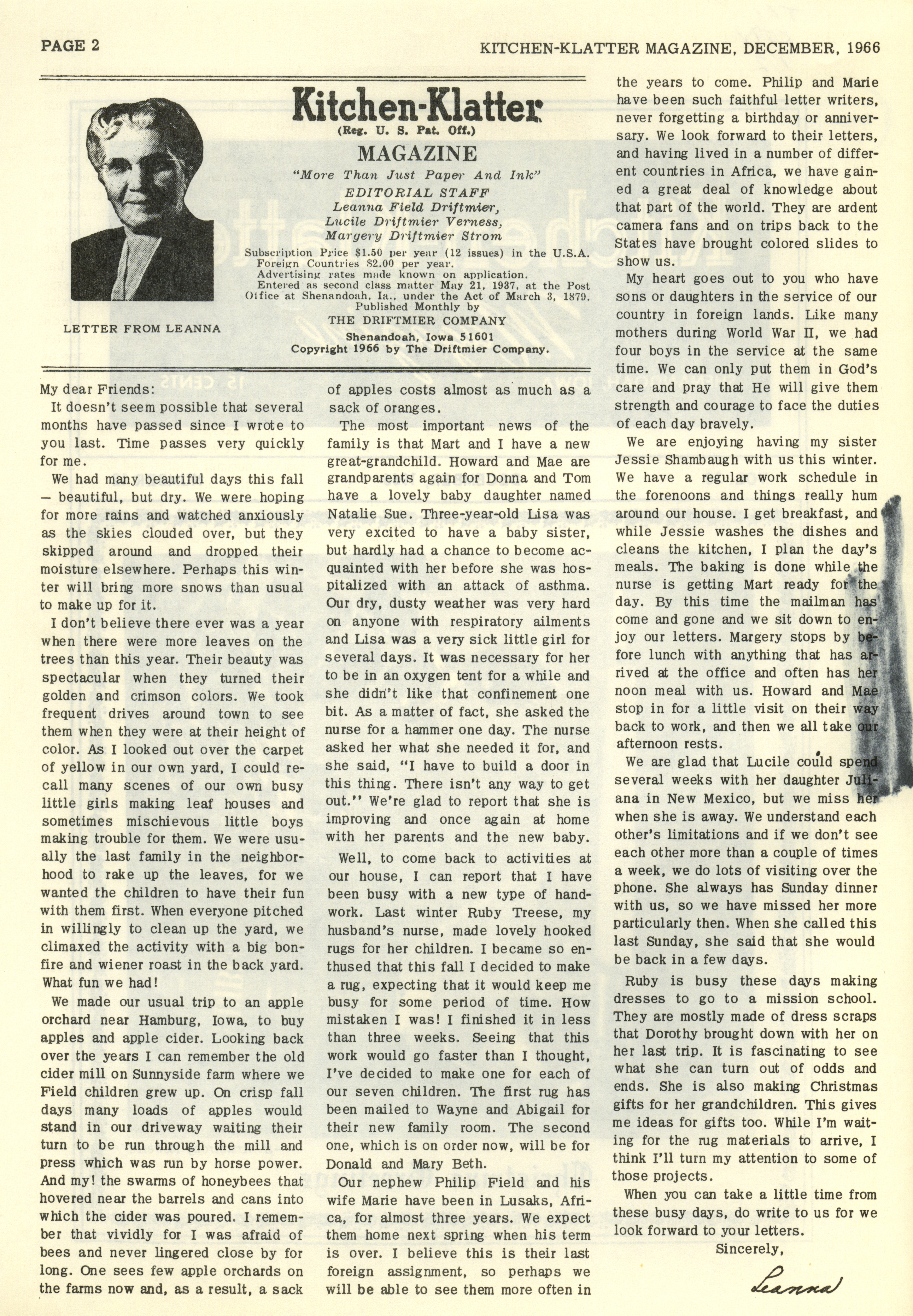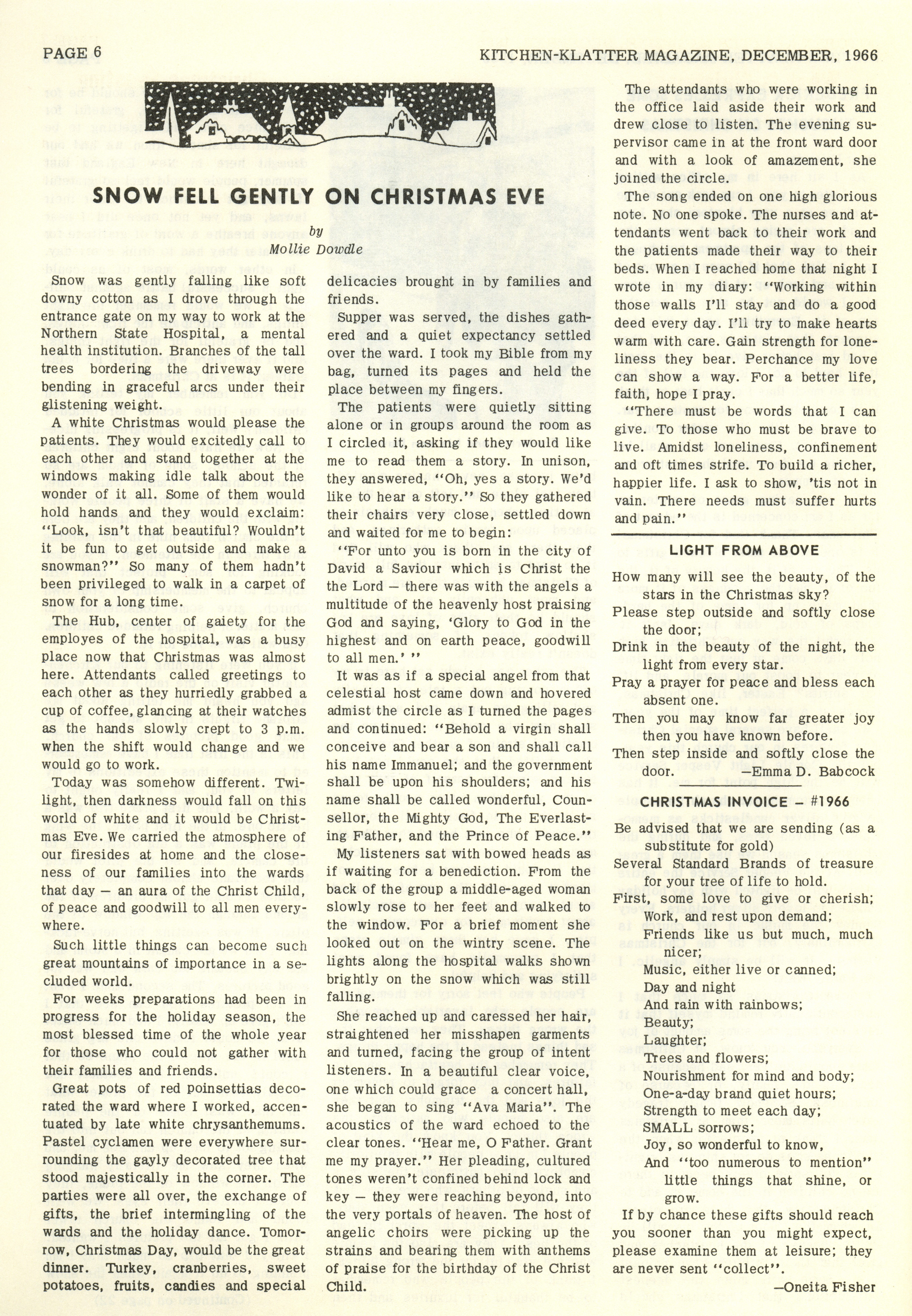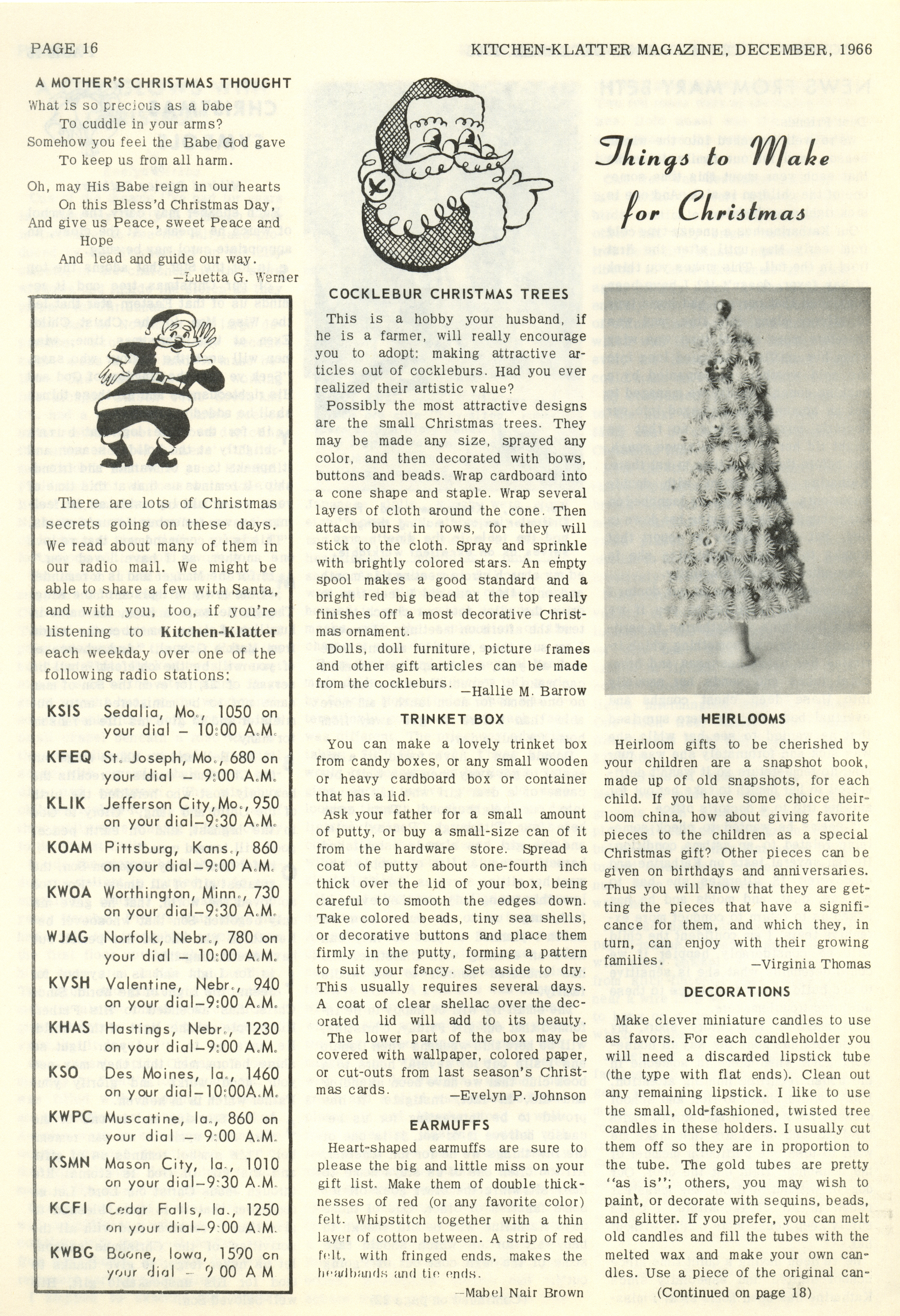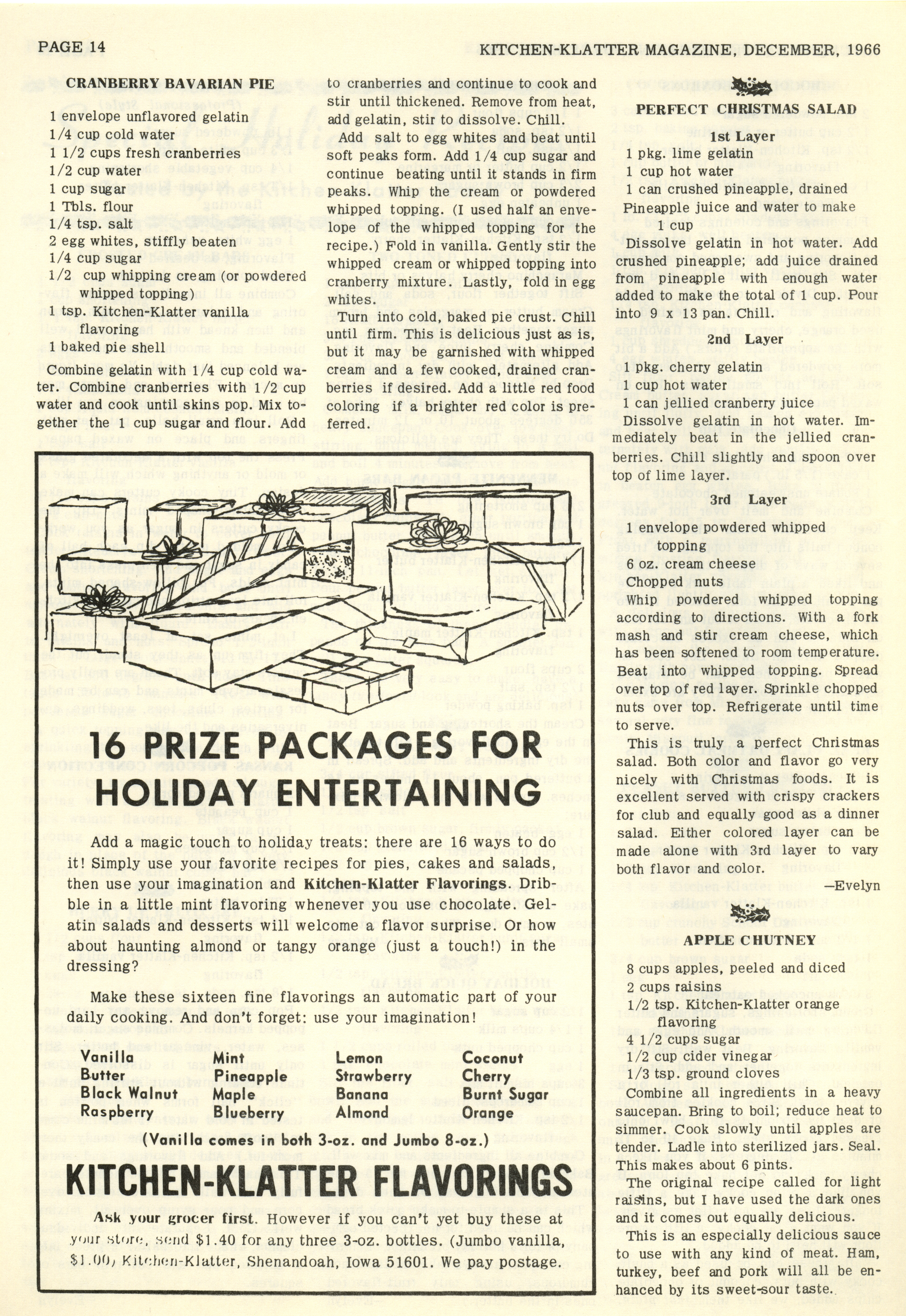 - "Kitchen-Klatter v. 30, n. 12, 1966", Kitchen-Klatter Magazine Issues, Iowa State University Library Digital Collections