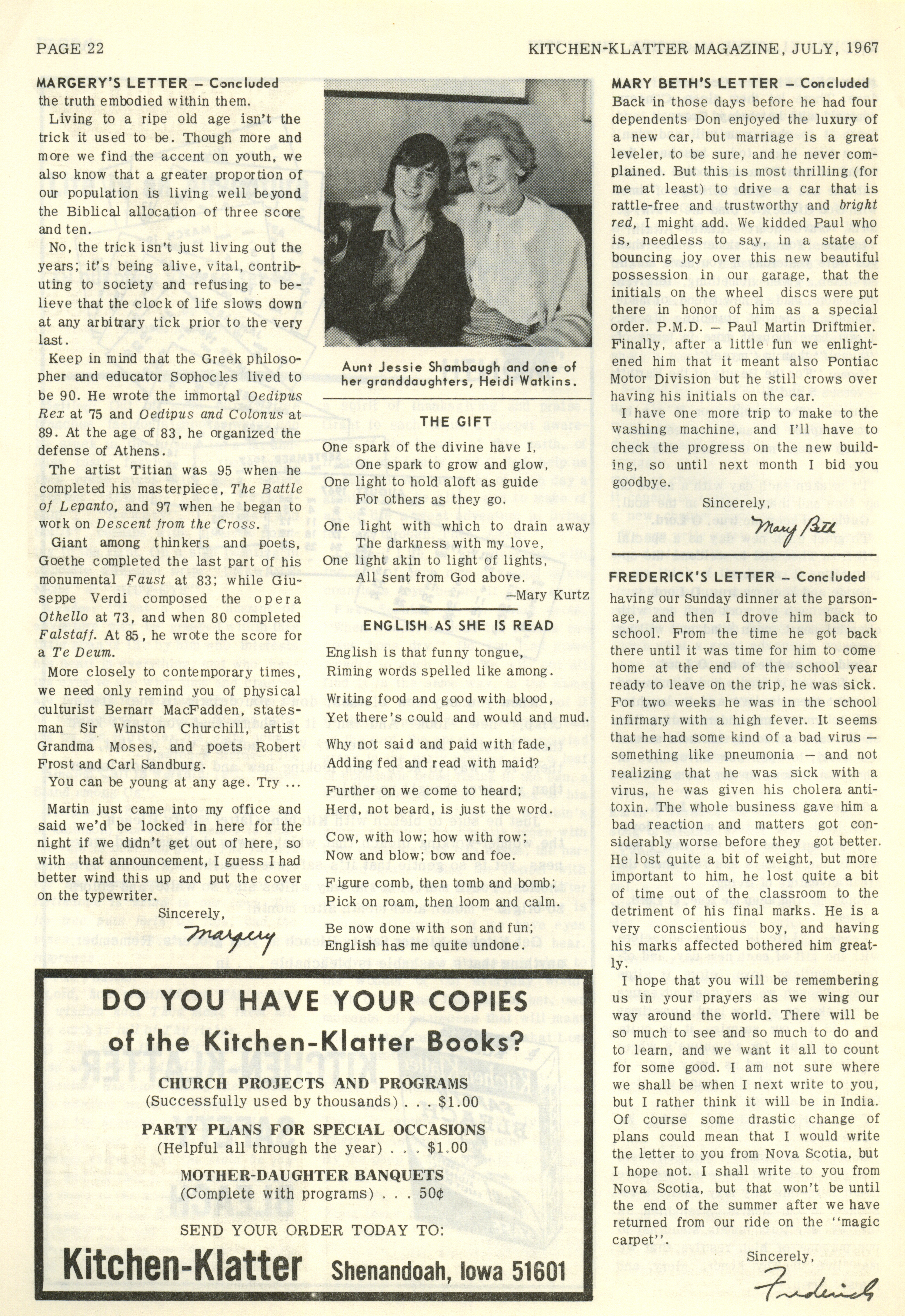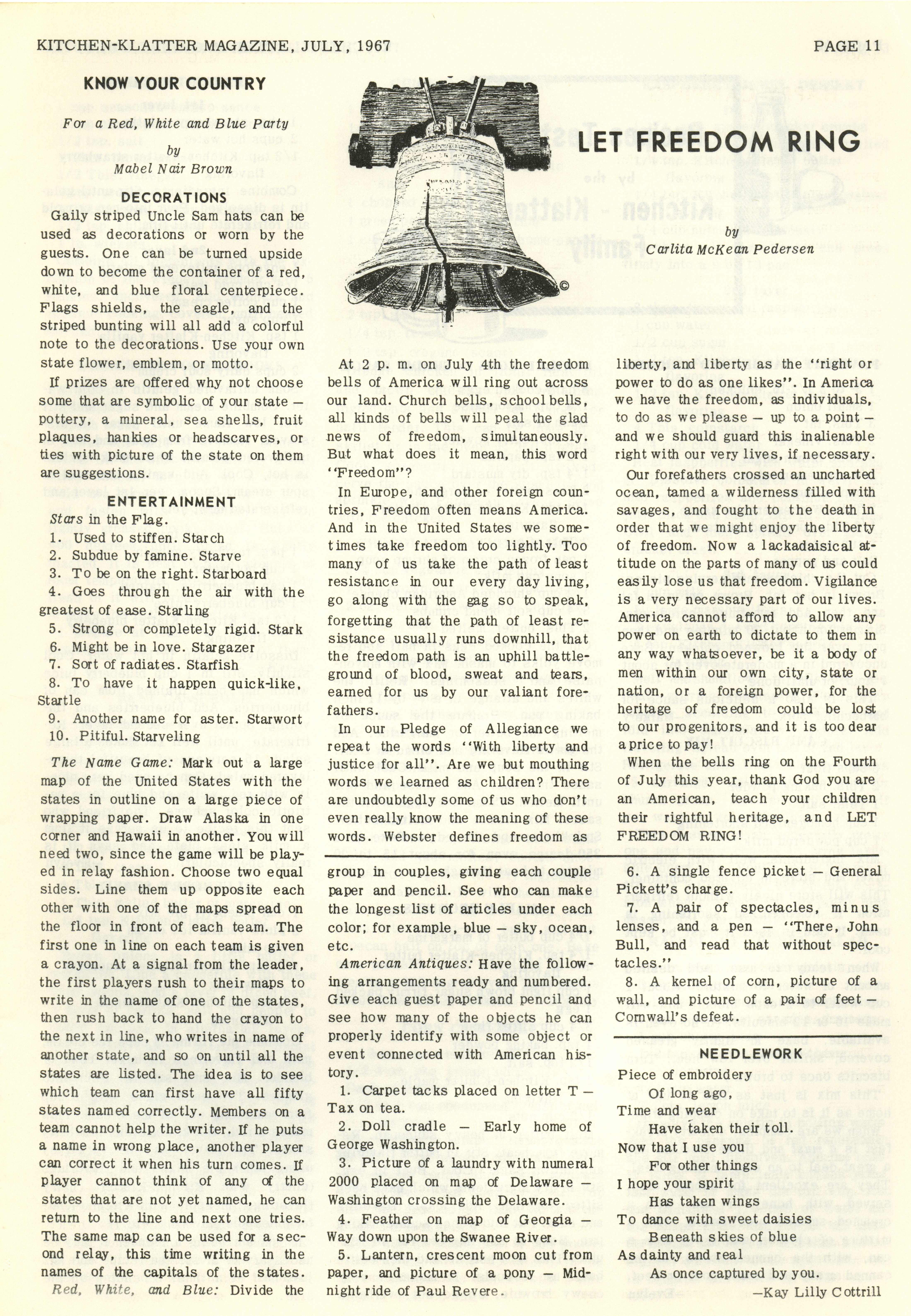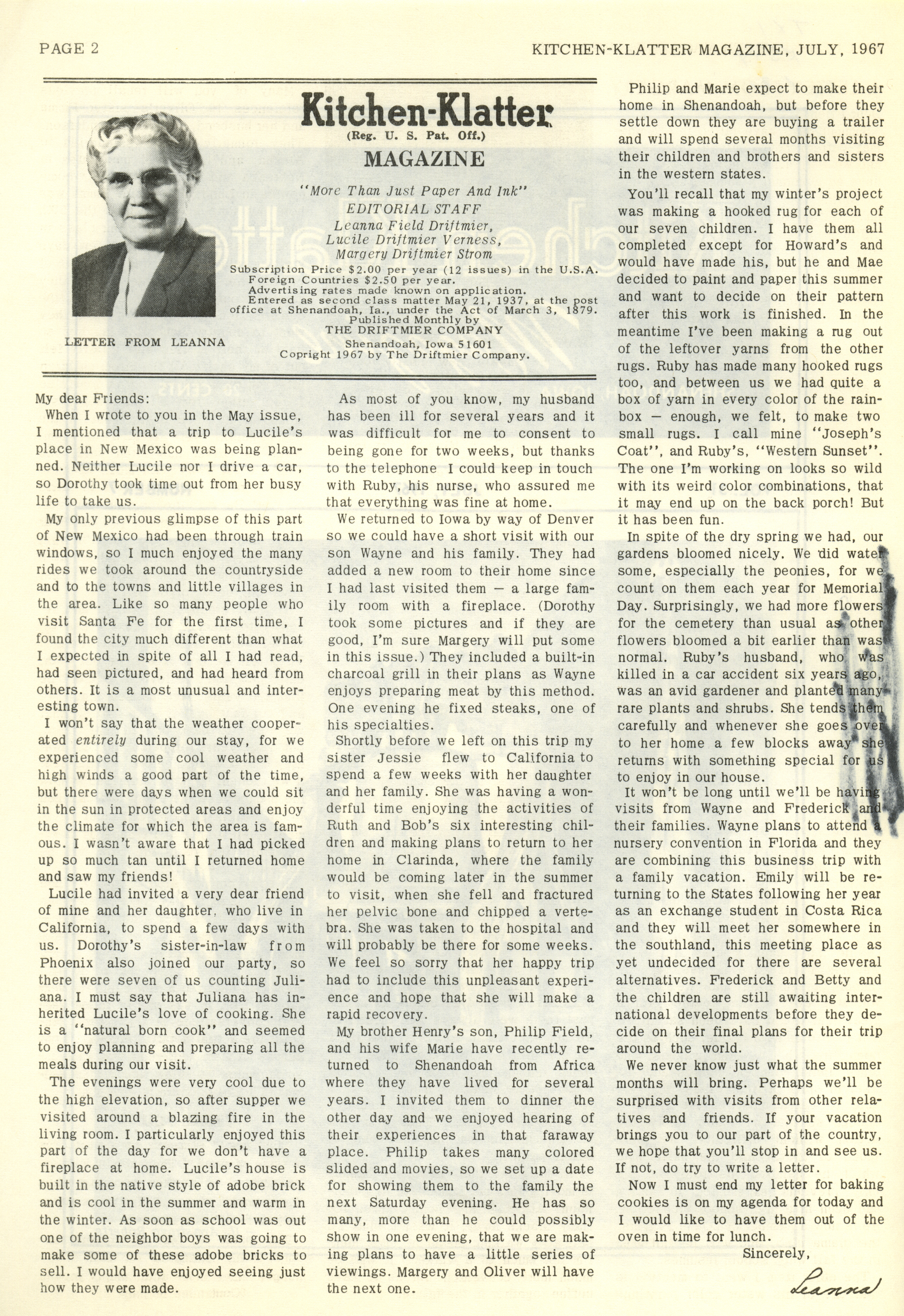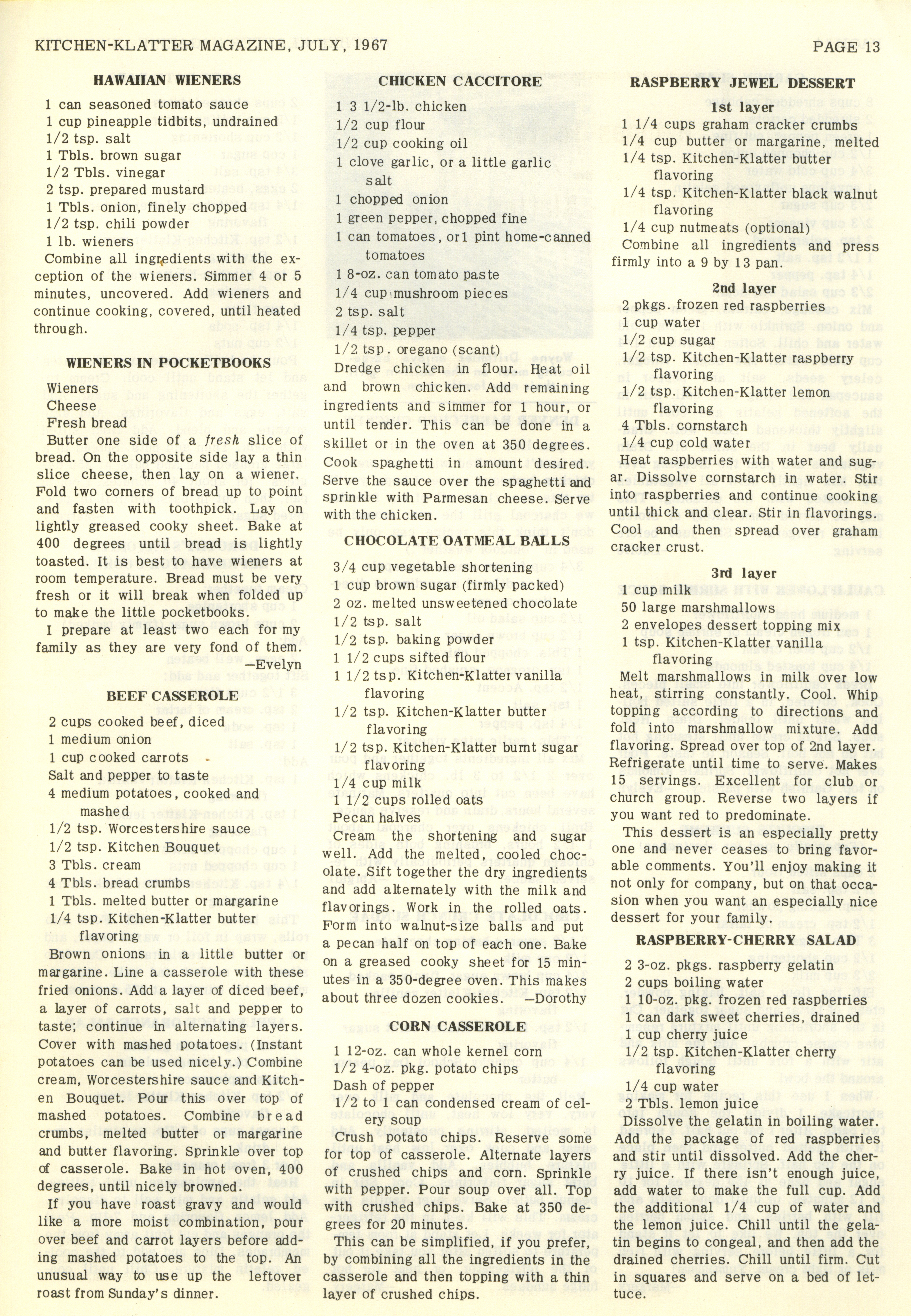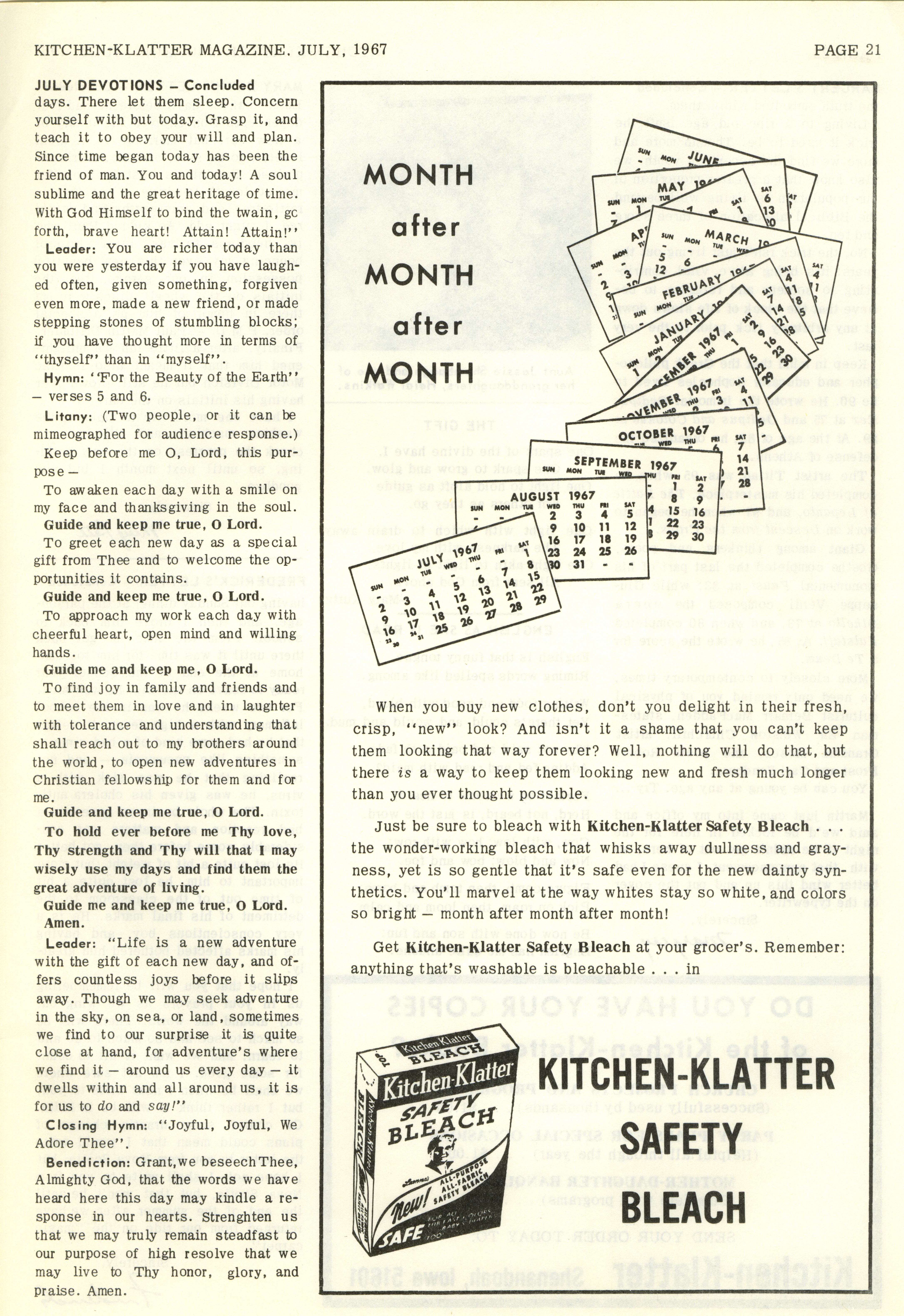 - "Kitchen-Klatter v. 31, n. 07, 1967", Kitchen-Klatter Magazine Issues, Iowa State University Library Digital Collections