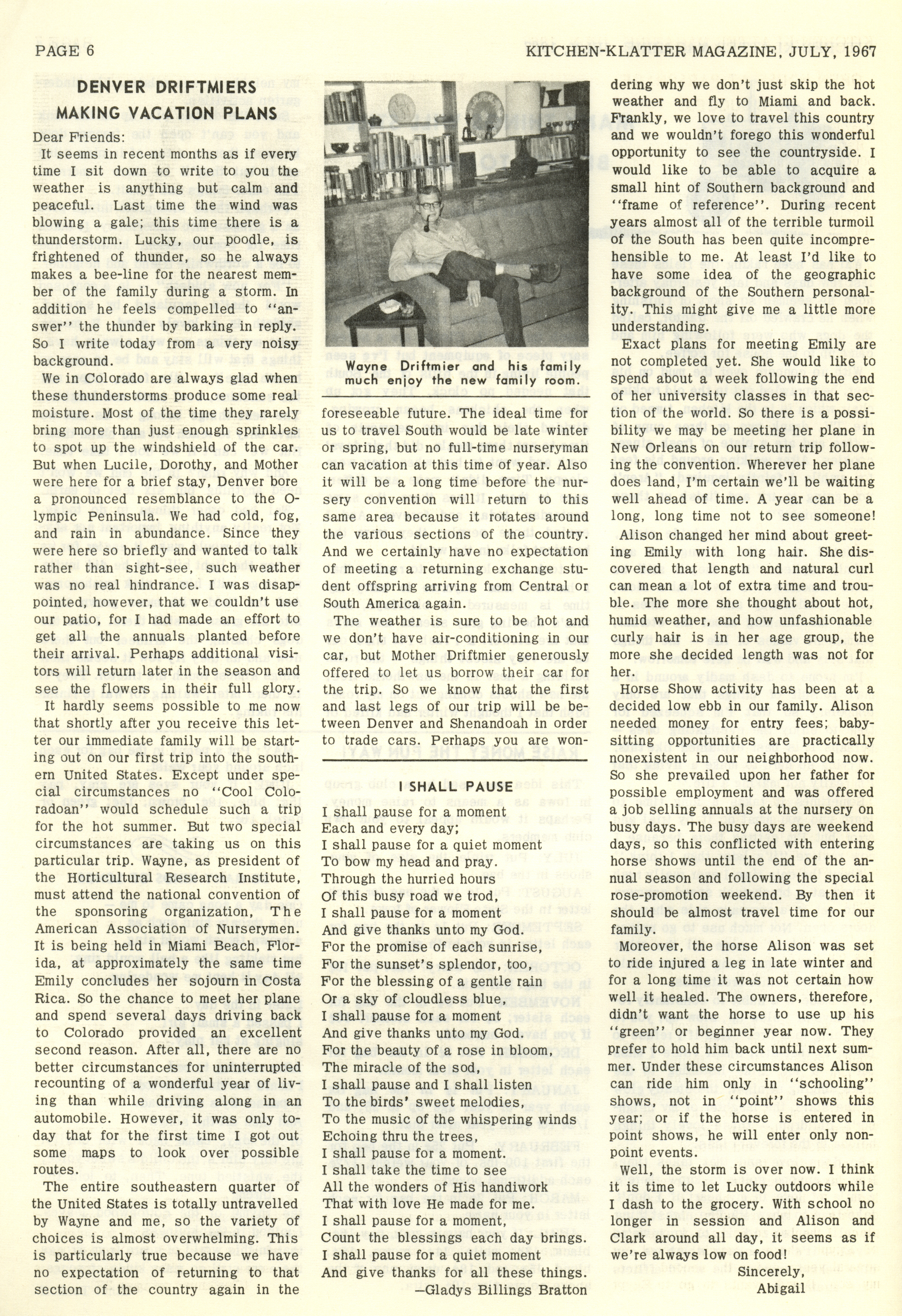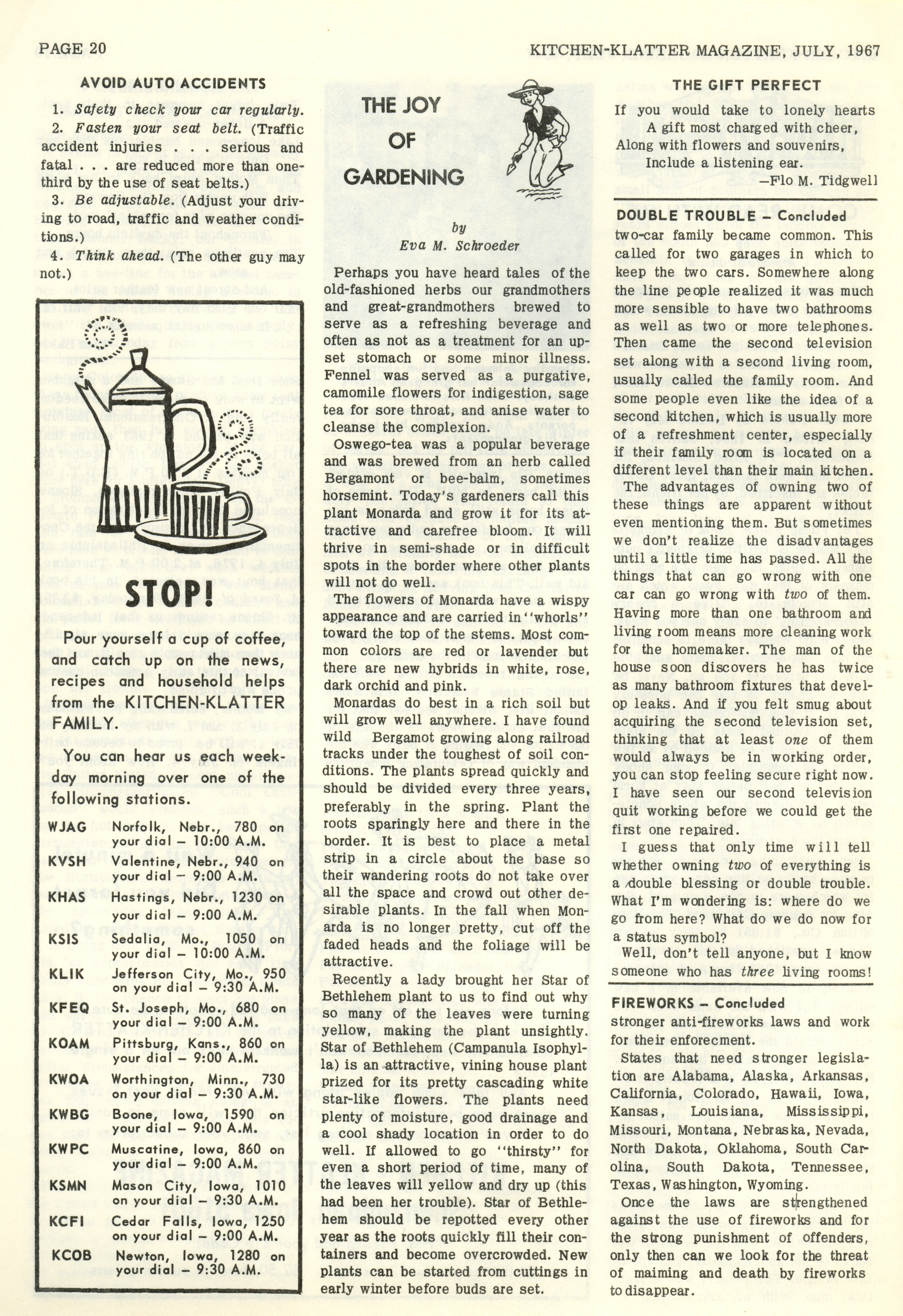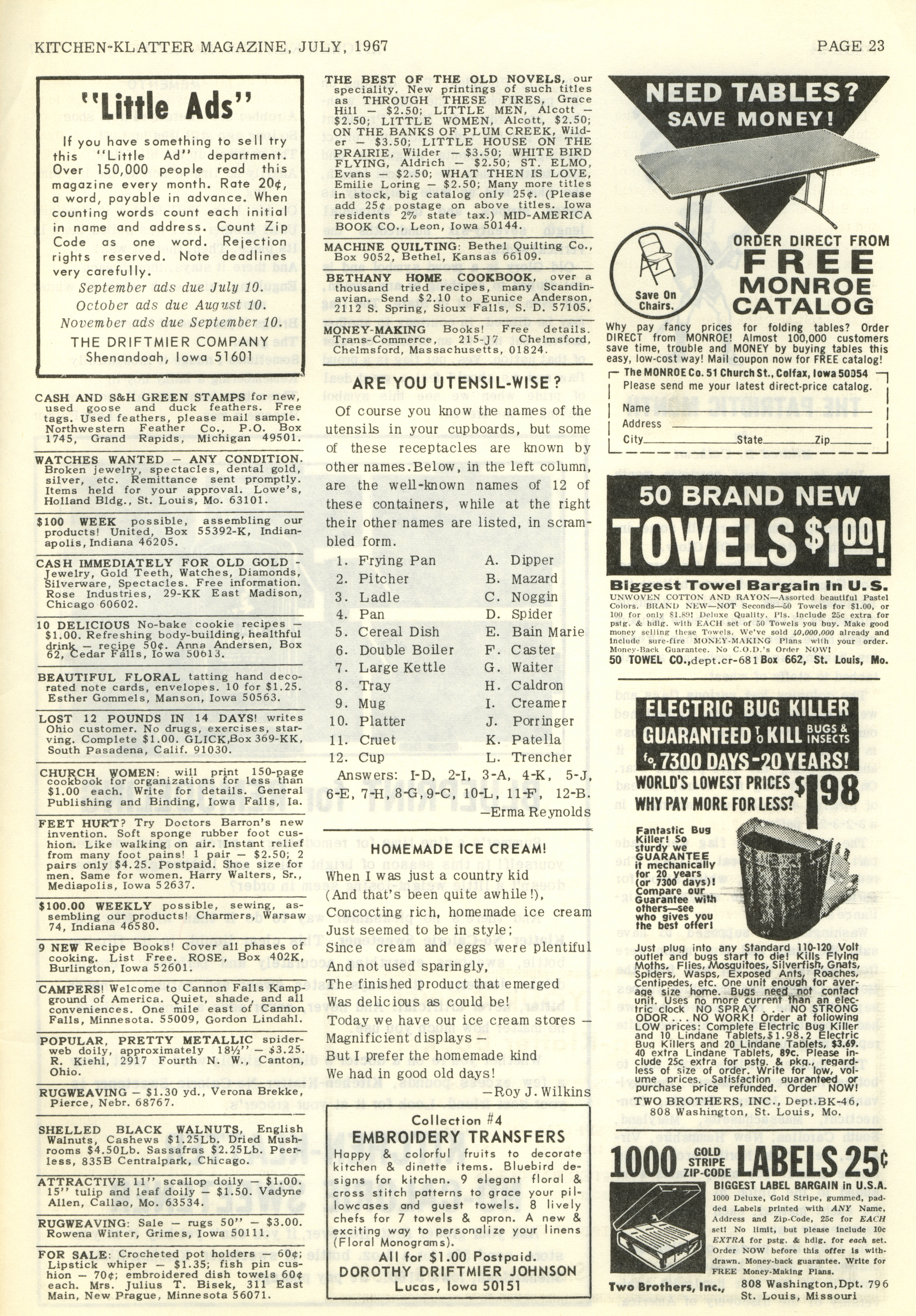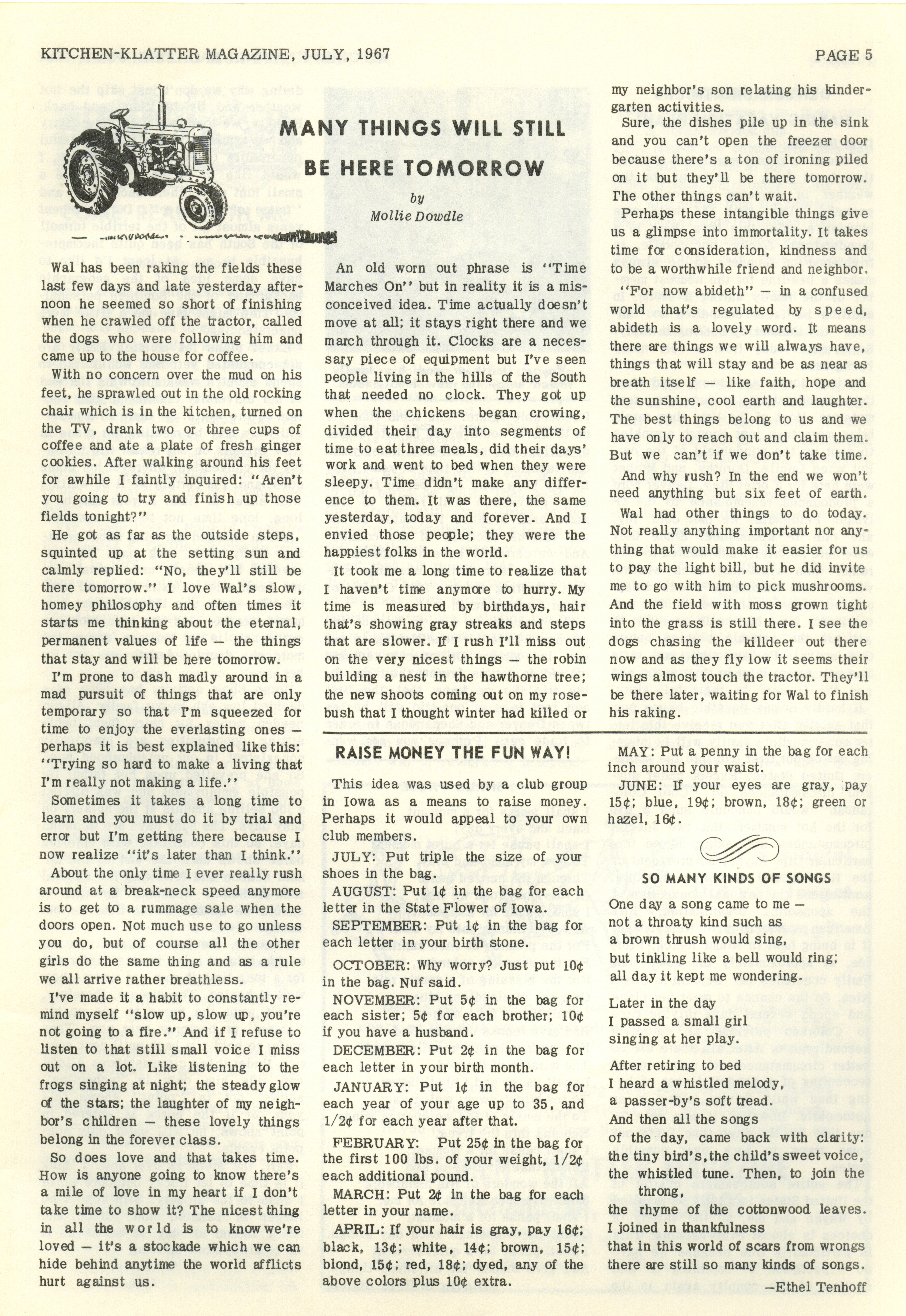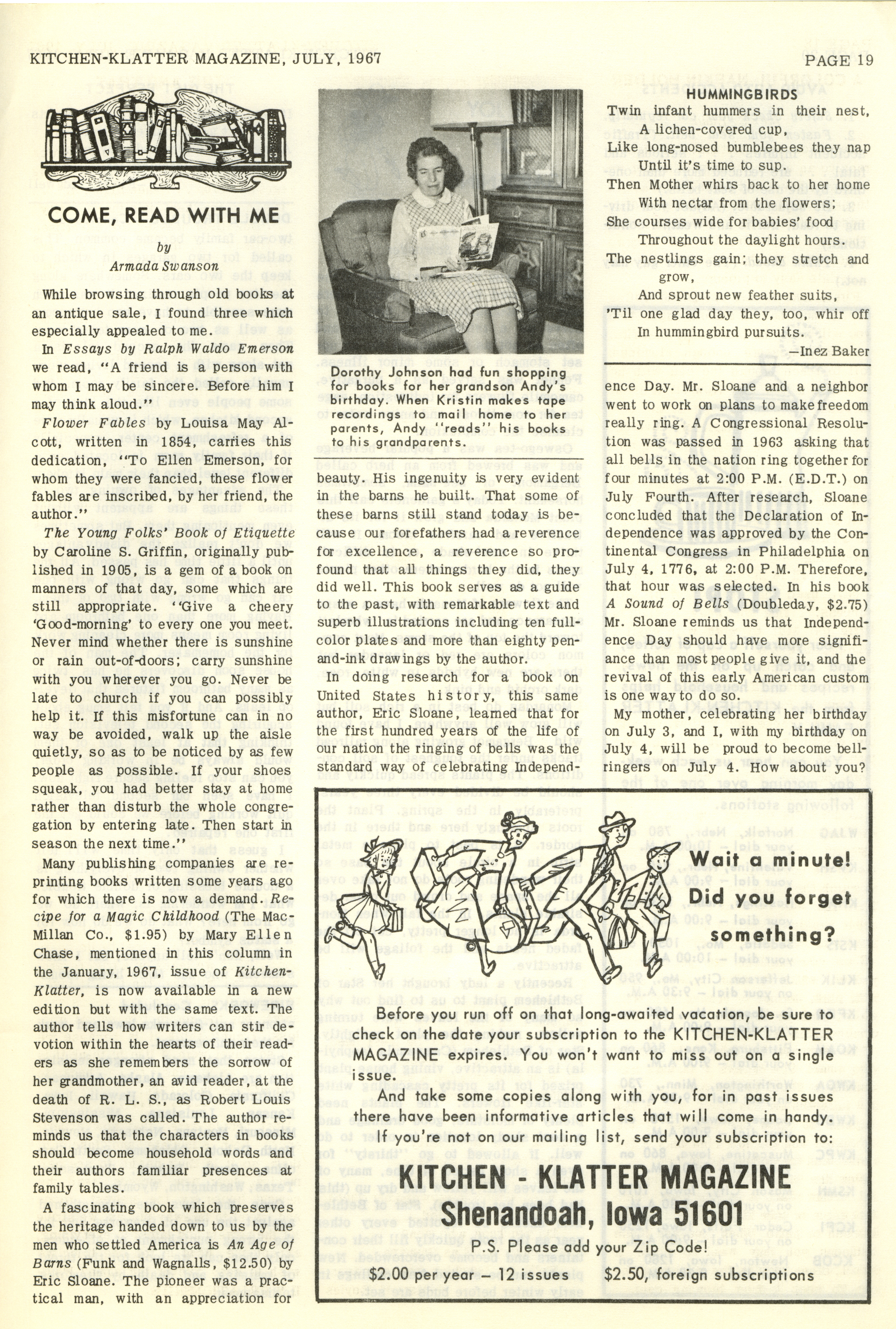 - "Kitchen-Klatter v. 31, n. 07, 1967", Kitchen-Klatter Magazine Issues, Iowa State University Library Digital Collections