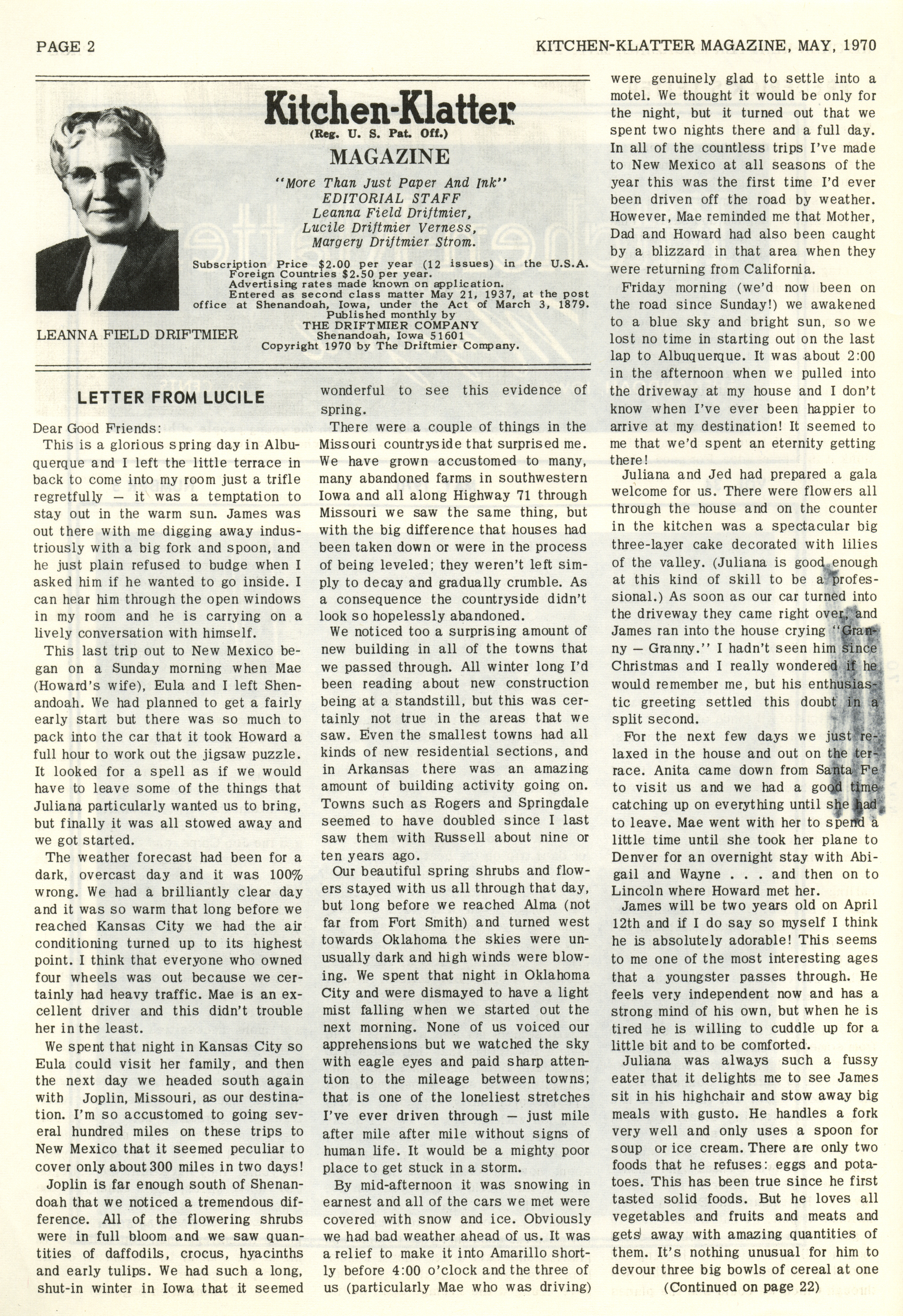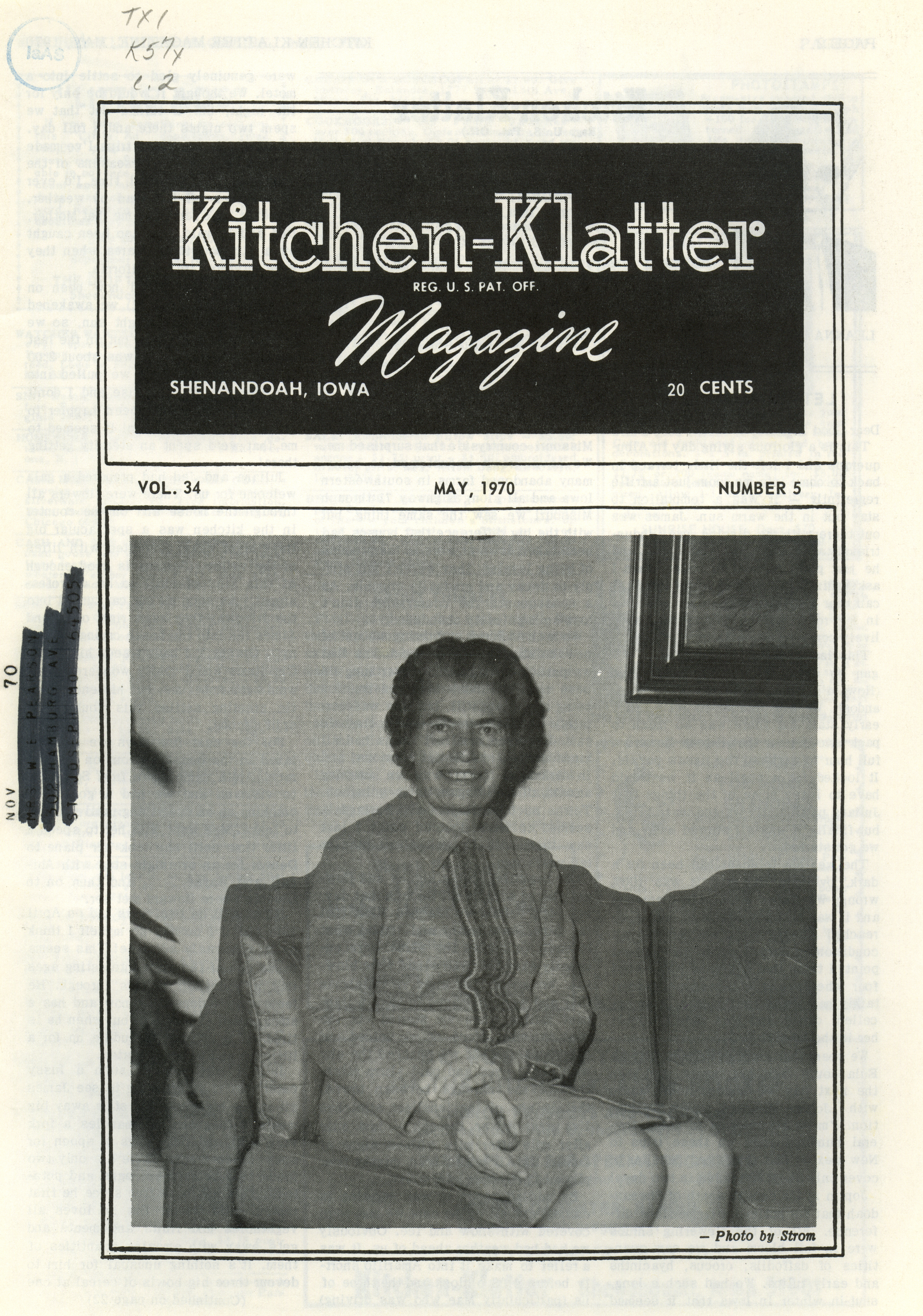 - "Kitchen-Klatter v. 34, n. 05, 1970", Kitchen-Klatter Magazine Issues, Iowa State University Library Digital Collections