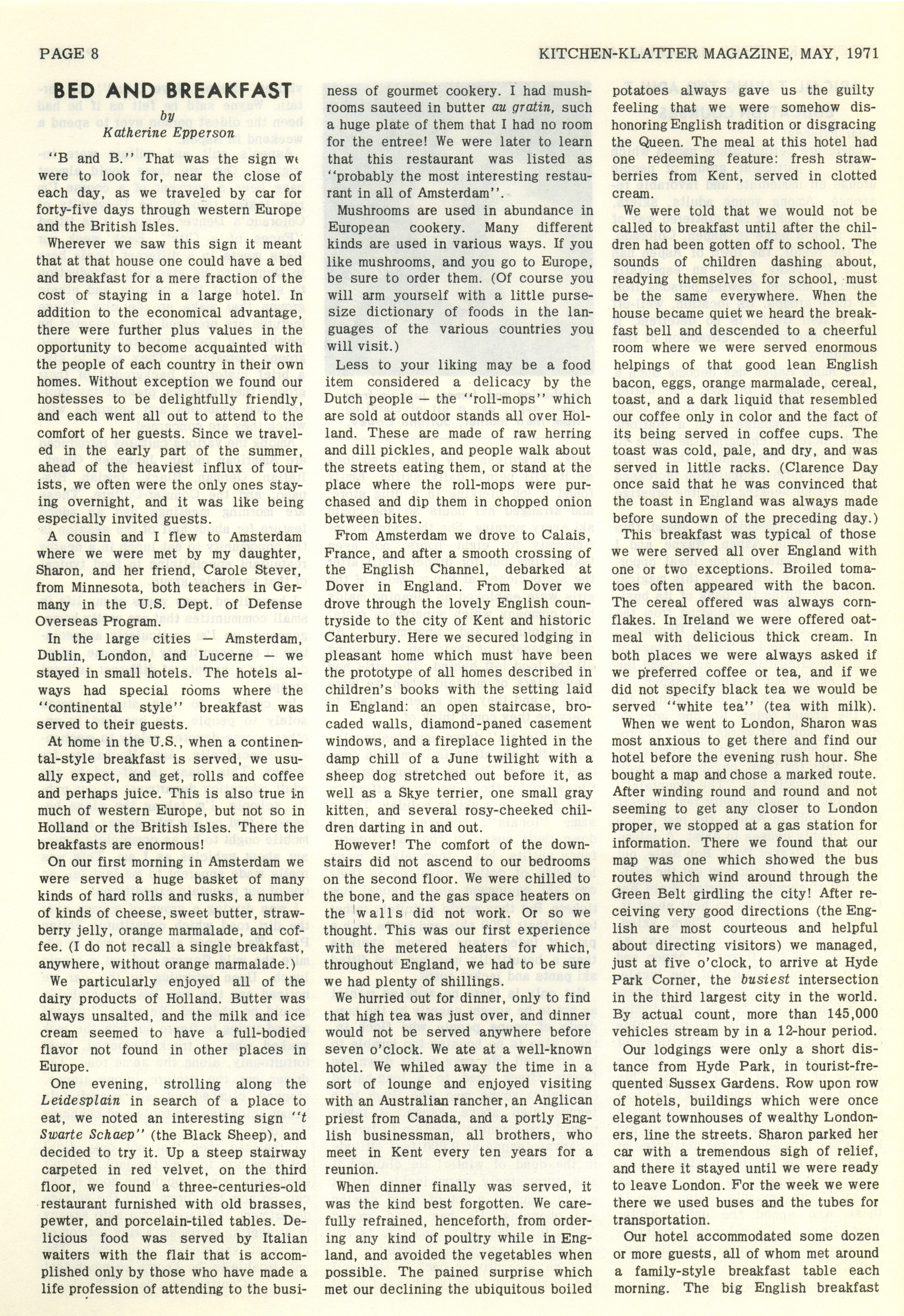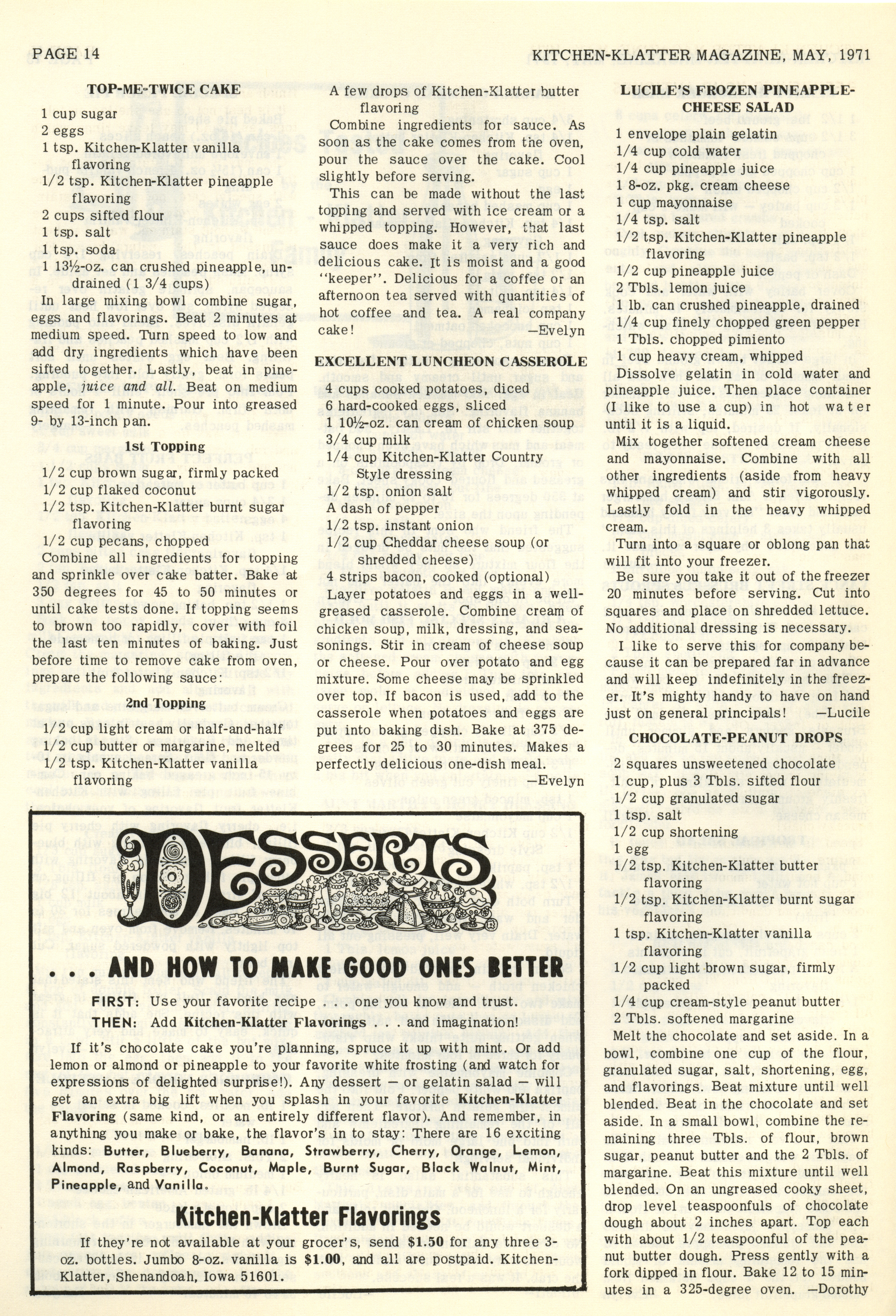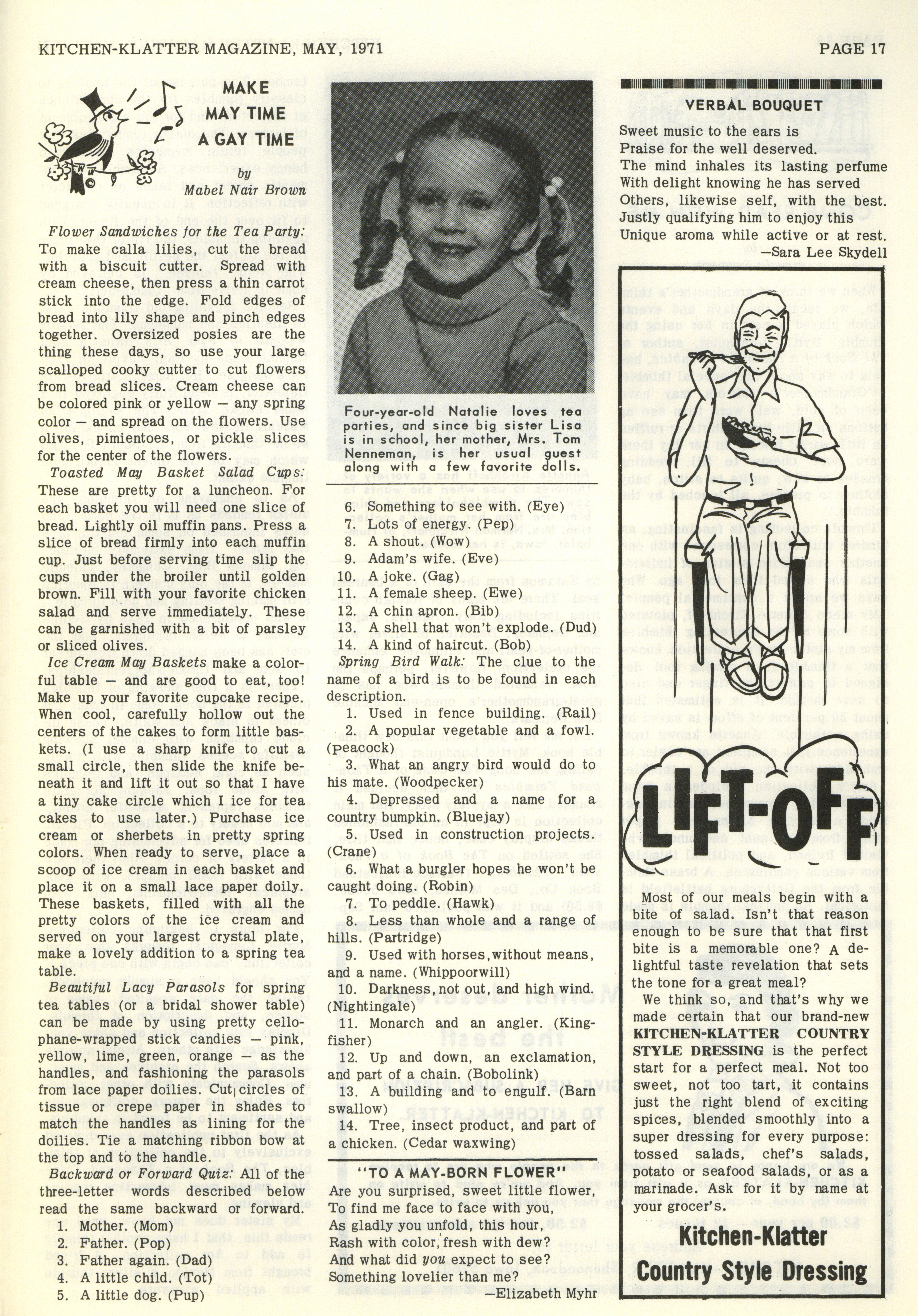 - "Kitchen-Klatter v. 35, n. 05, 1971", Kitchen-Klatter Magazine Issues, Iowa State University Library Digital Collections