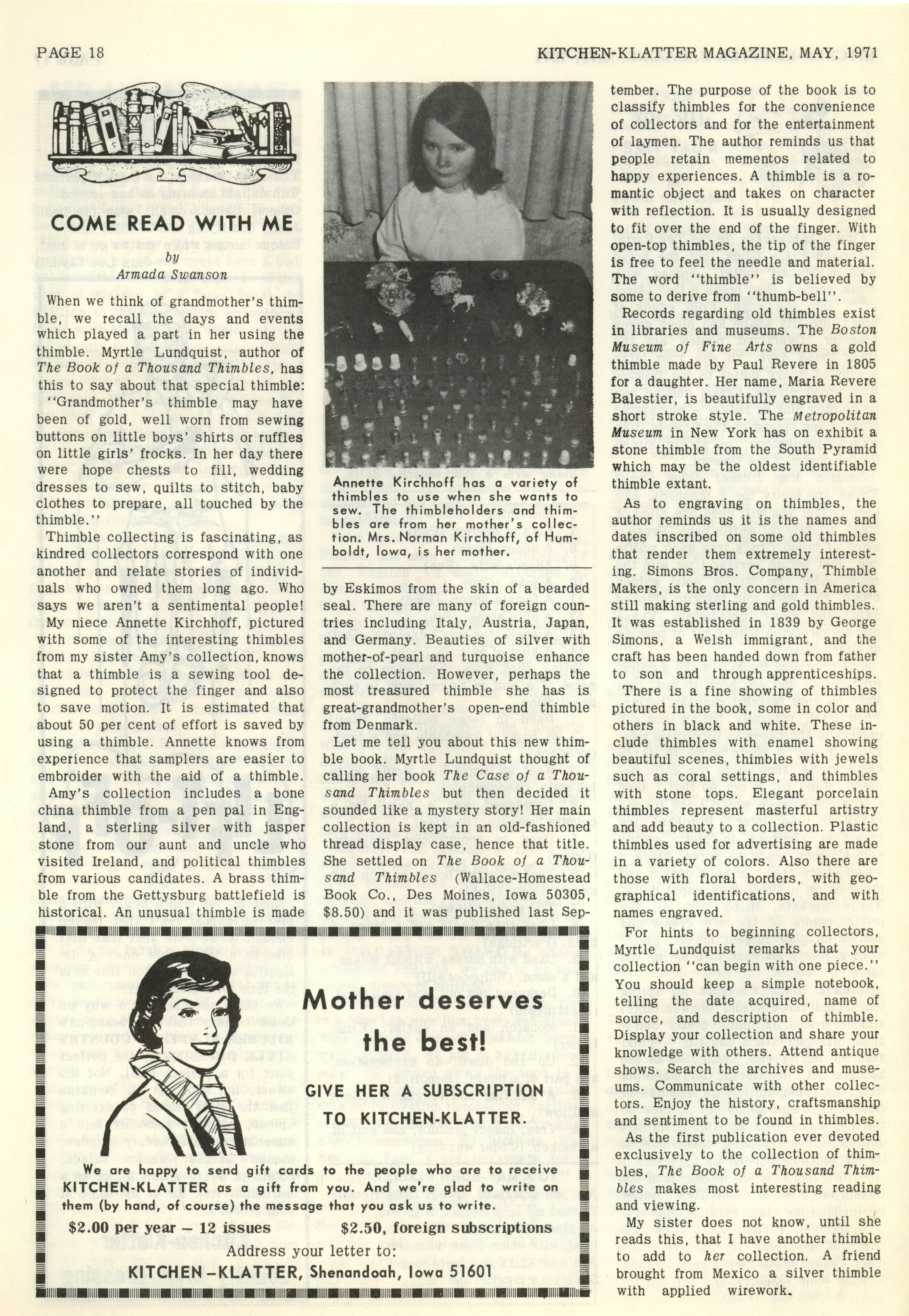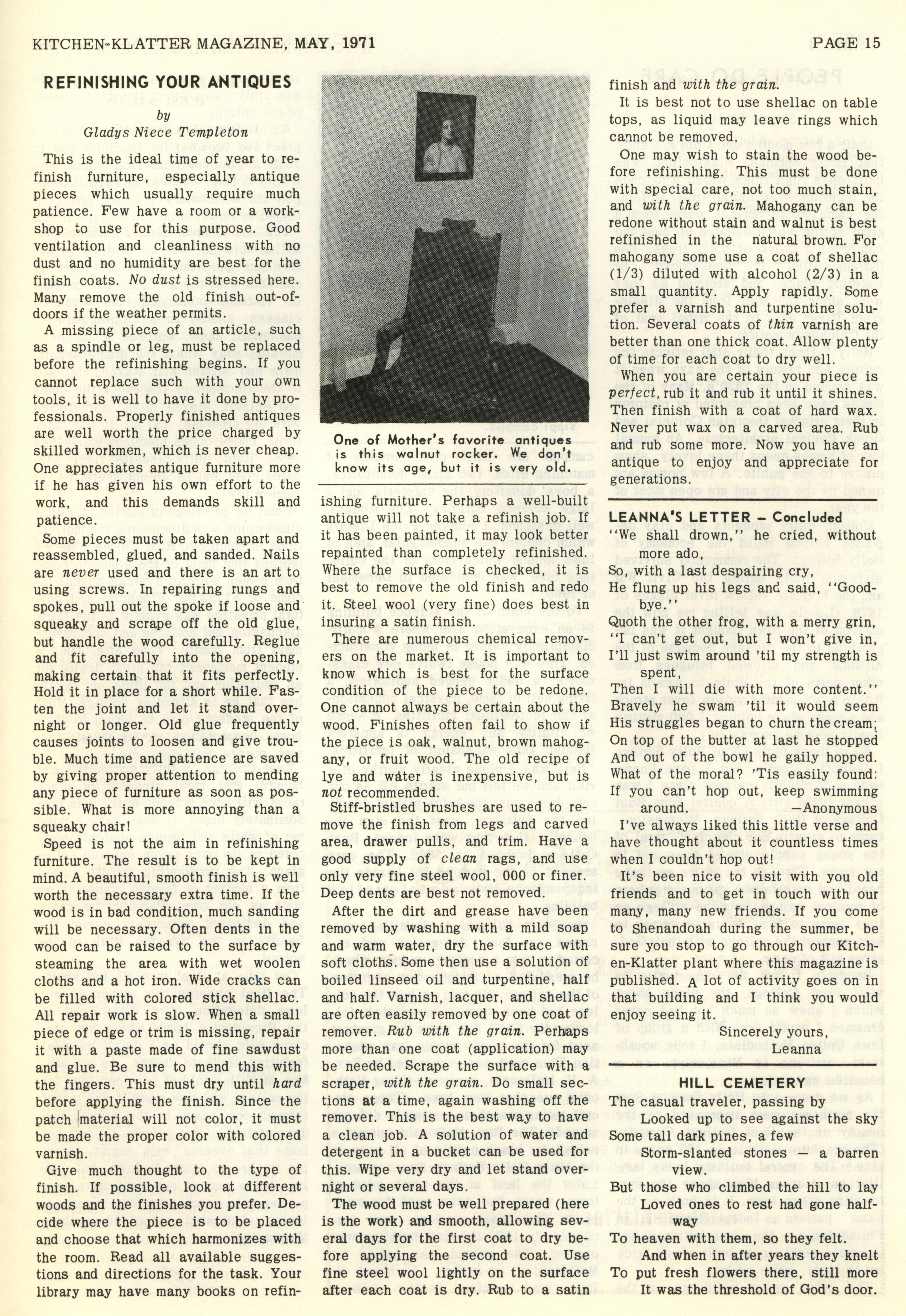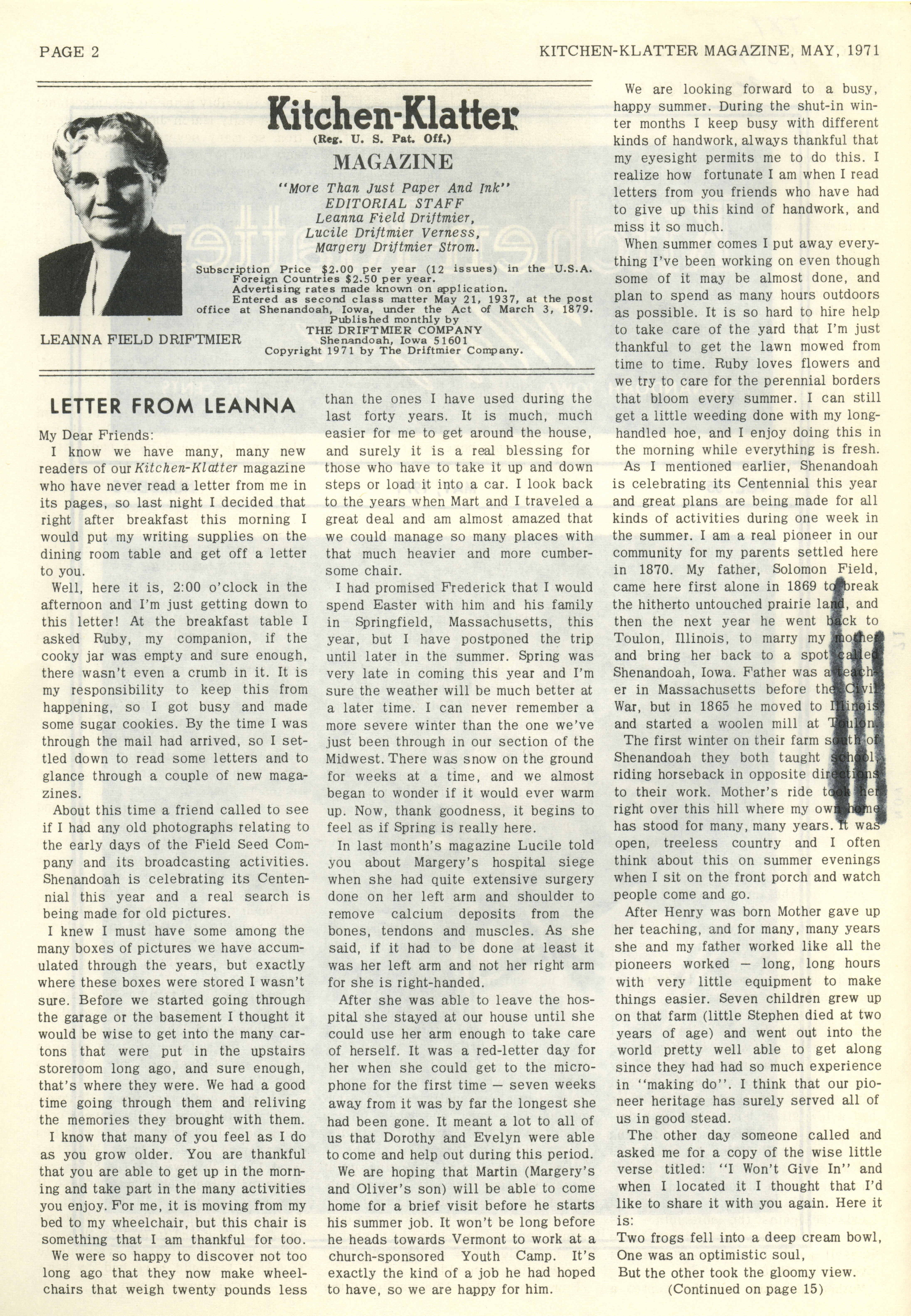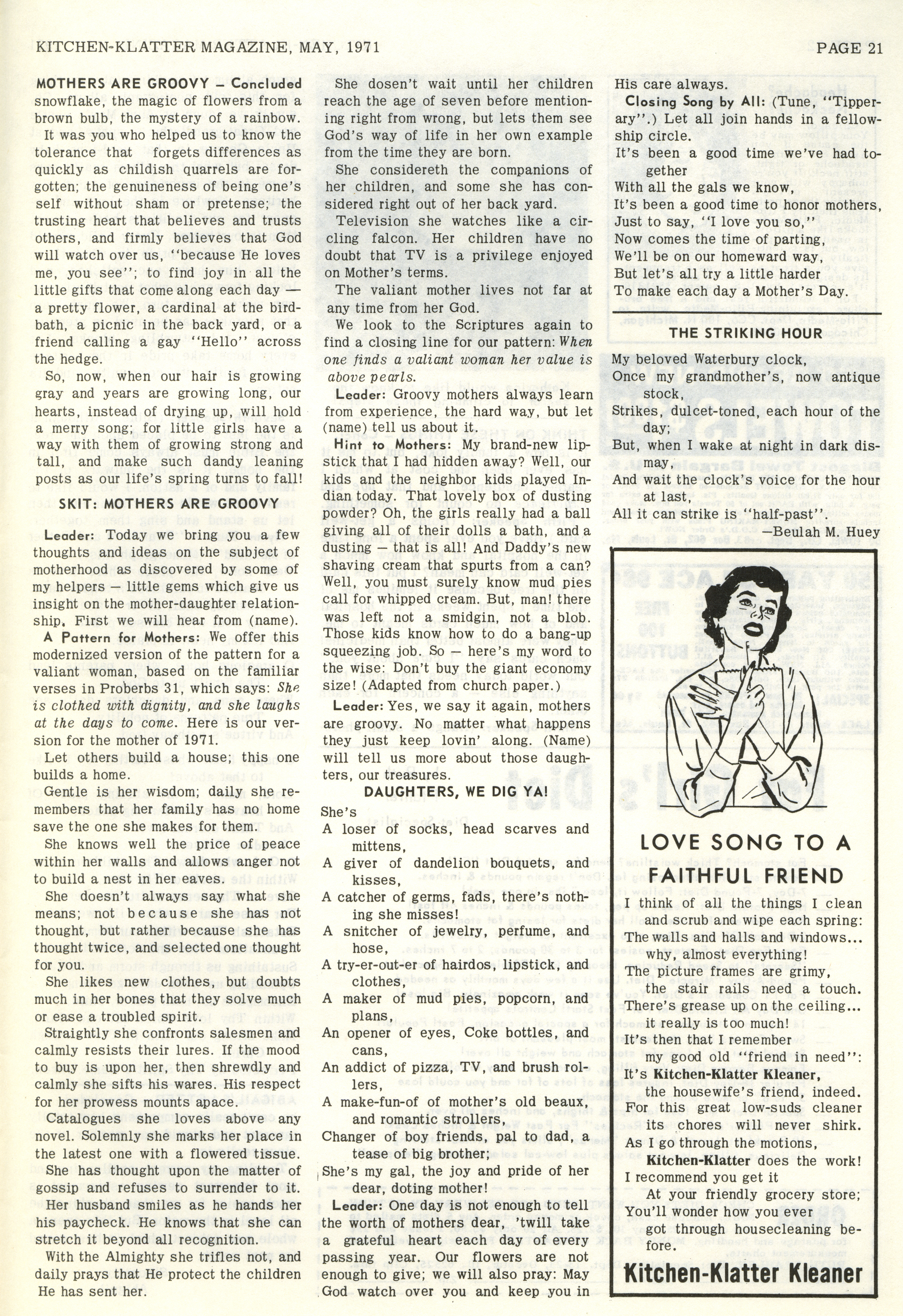 - "Kitchen-Klatter v. 35, n. 05, 1971", Kitchen-Klatter Magazine Issues, Iowa State University Library Digital Collections