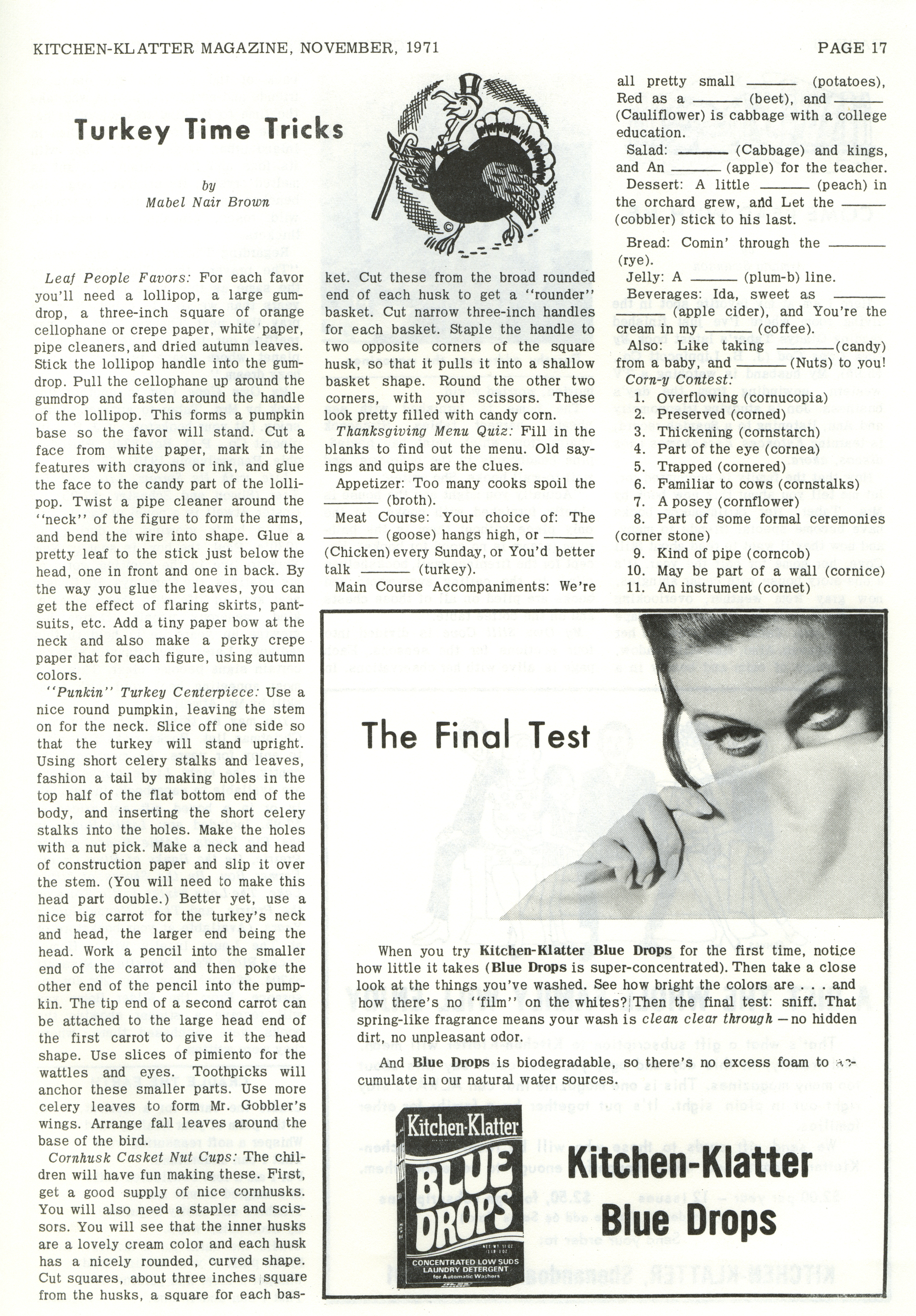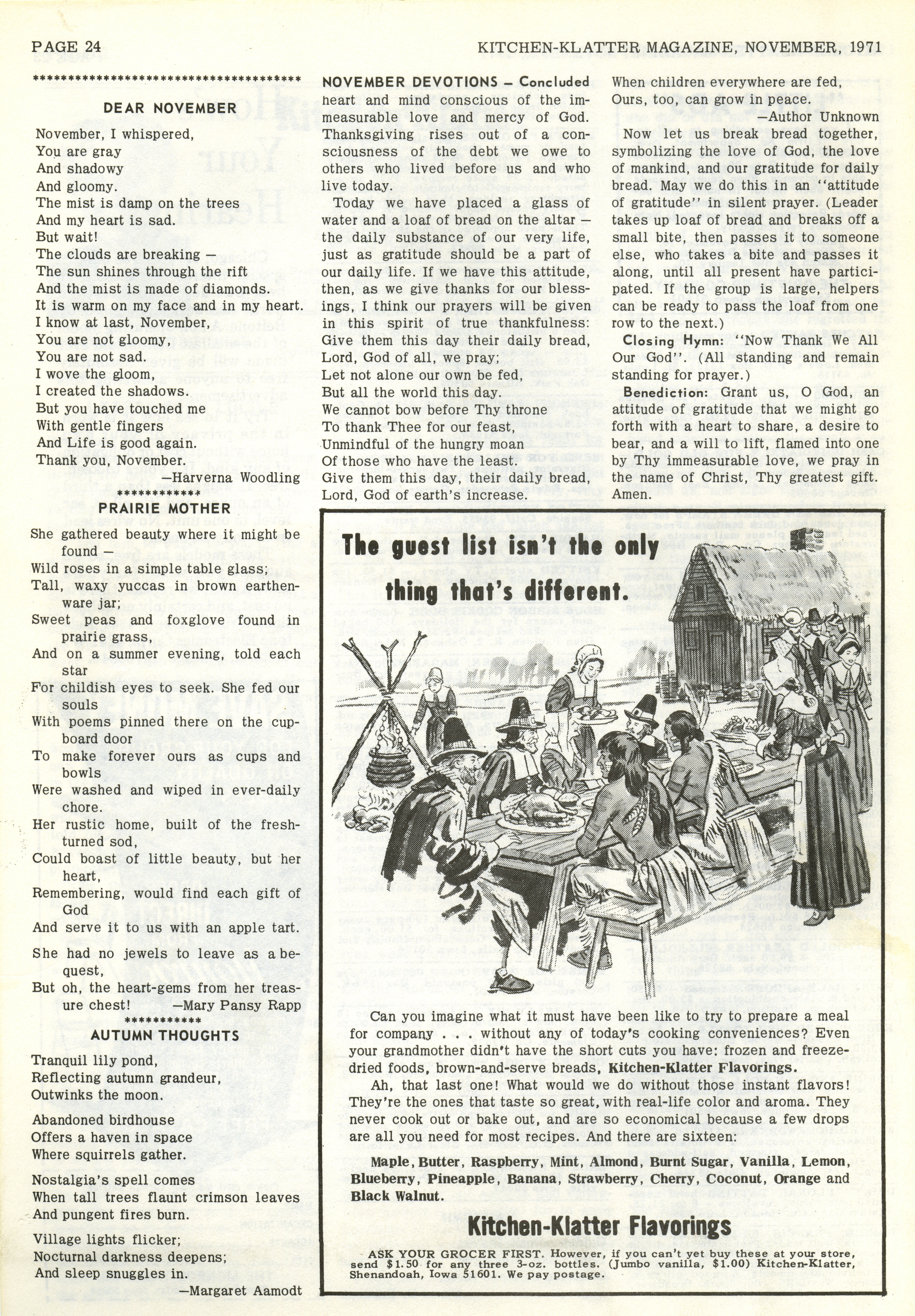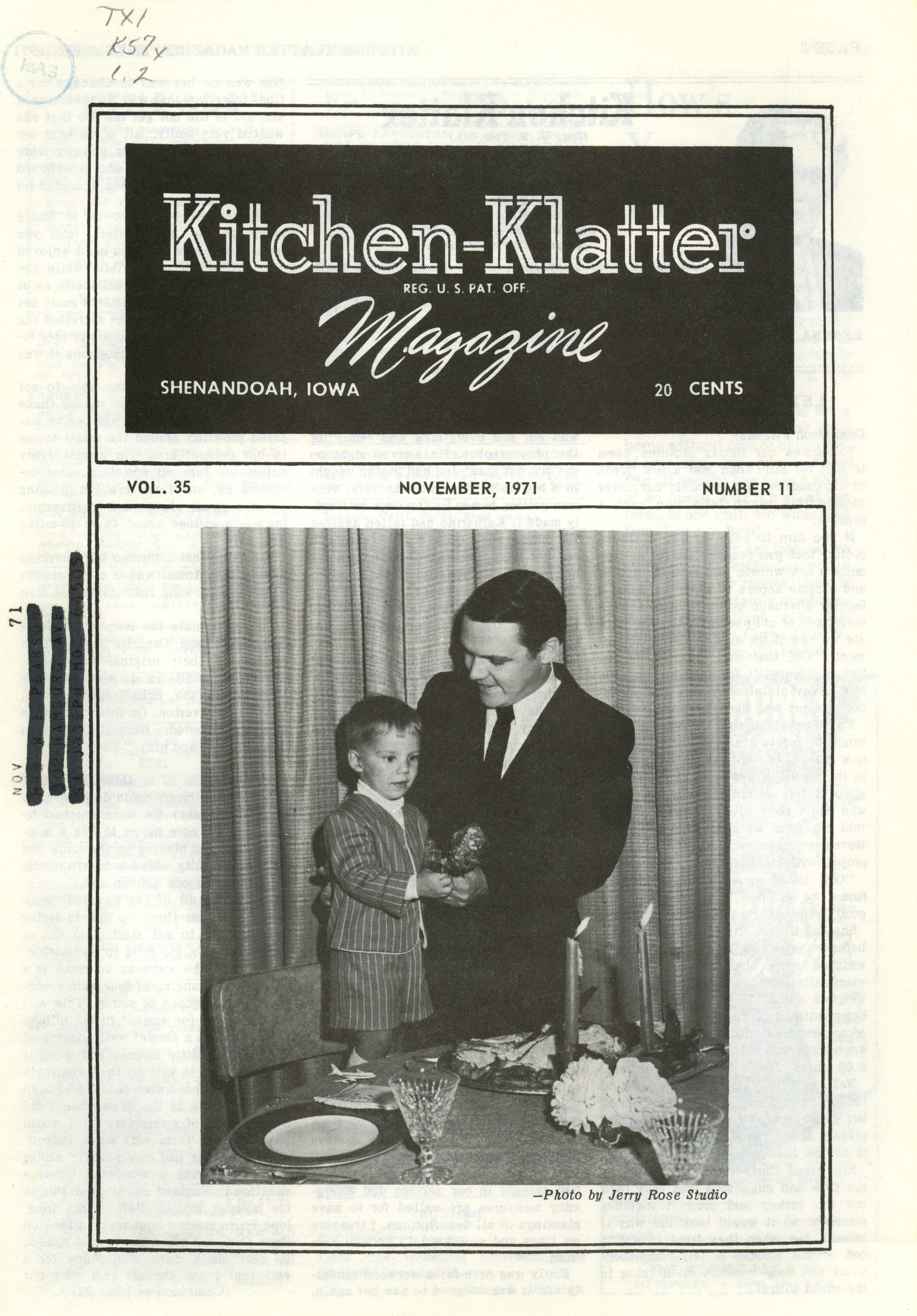 - "Kitchen-Klatter v. 35, n. 11, 1971", Kitchen-Klatter Magazine Issues, Iowa State University Library Digital Collections