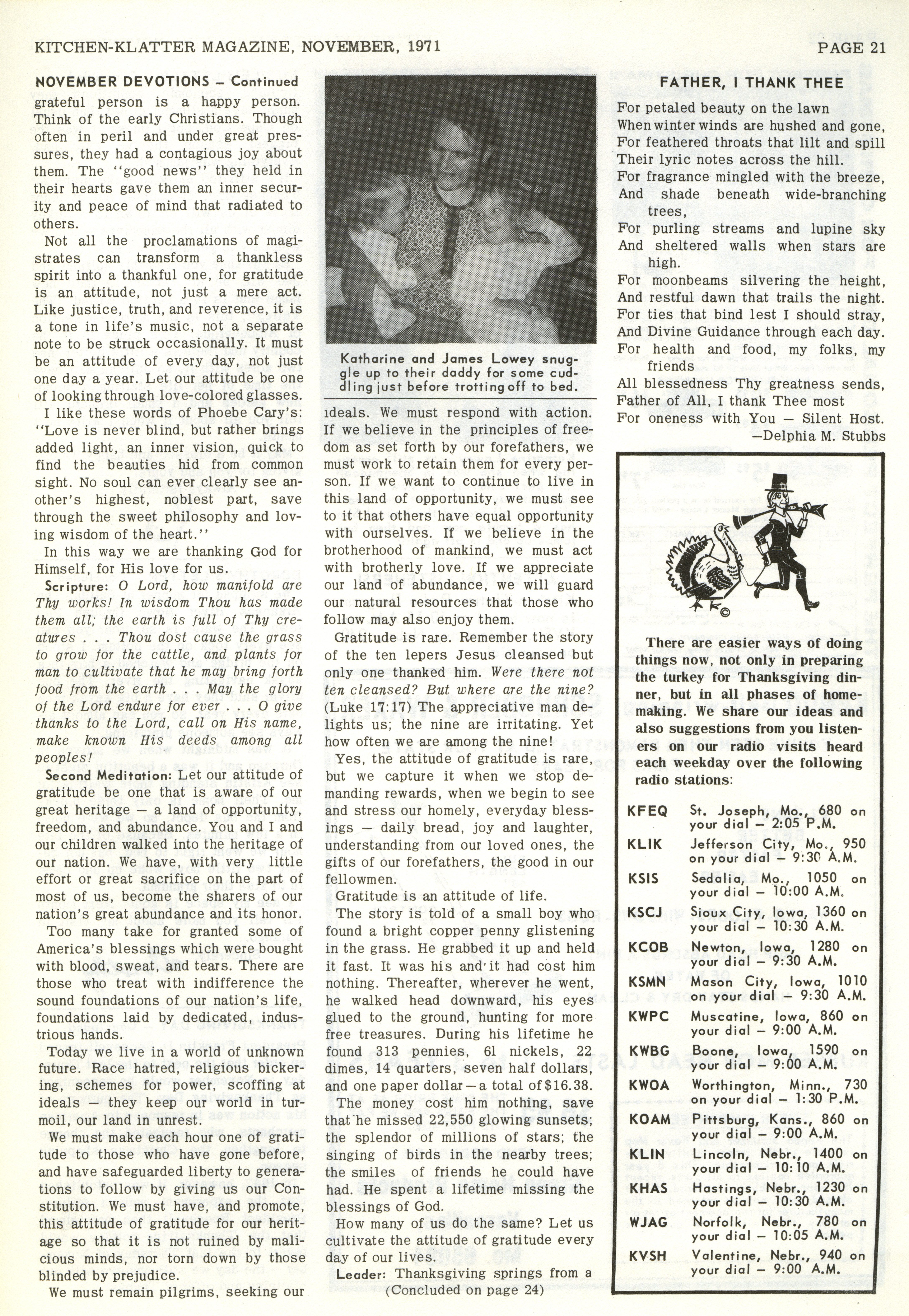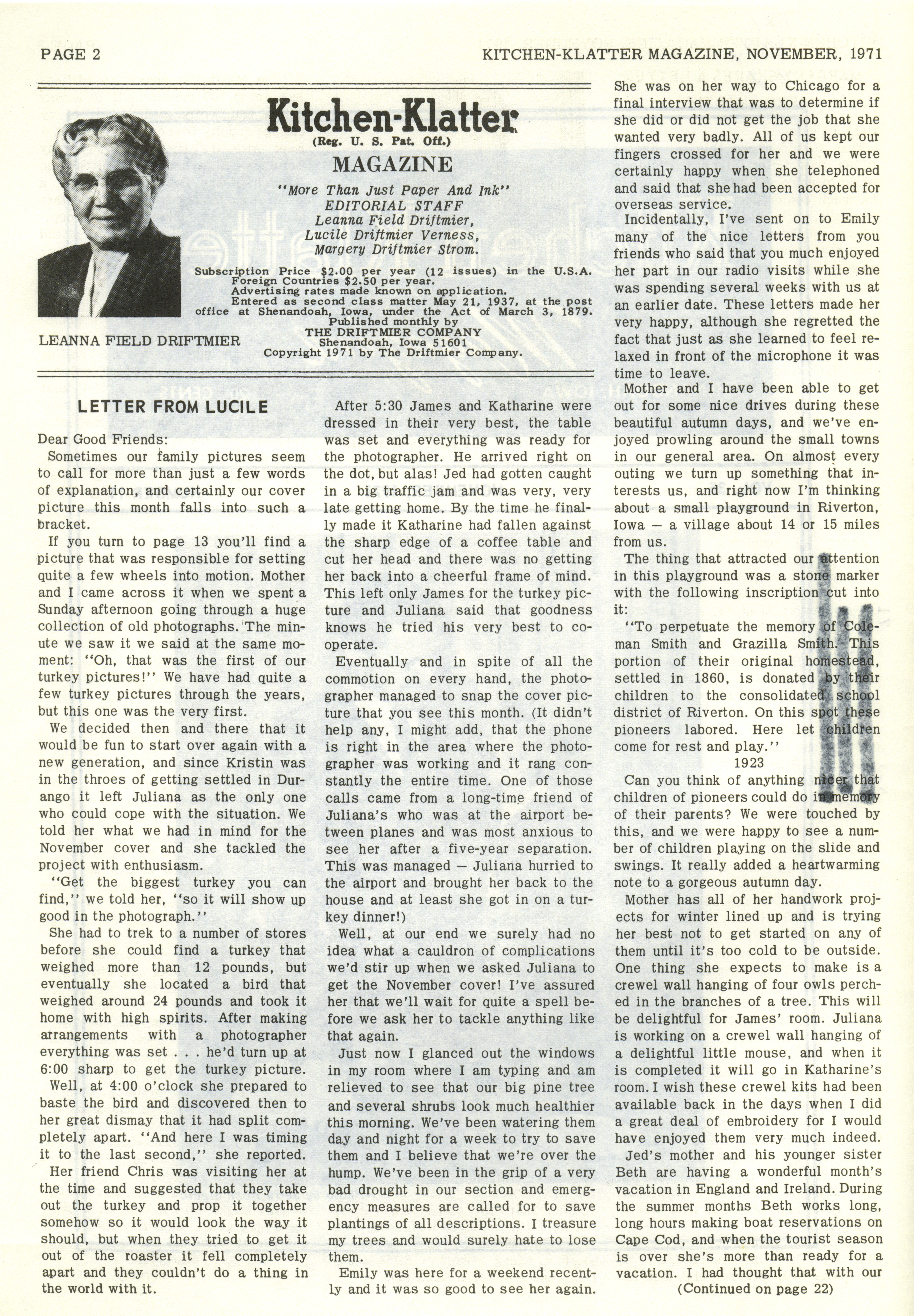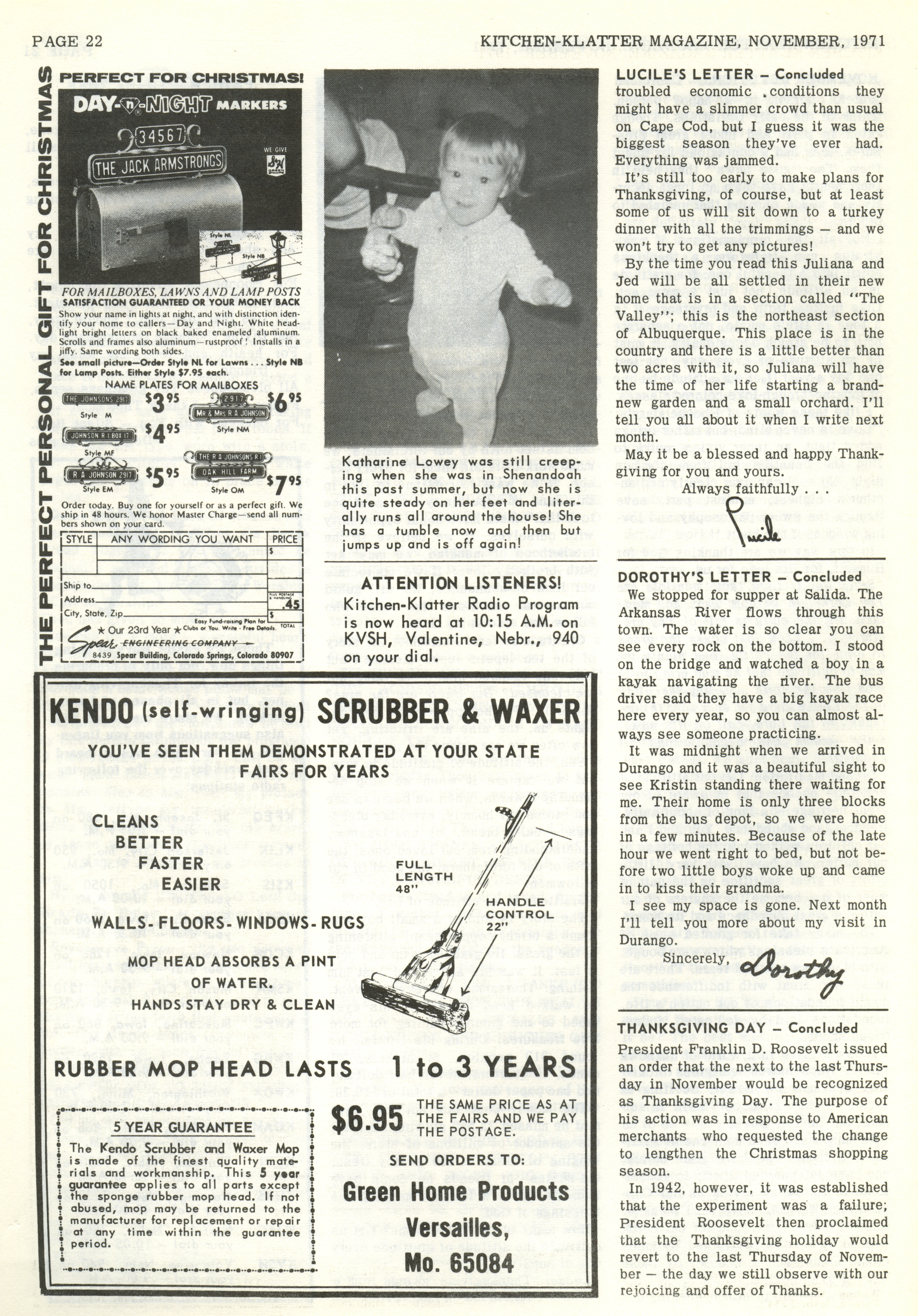 - "Kitchen-Klatter v. 35, n. 11, 1971", Kitchen-Klatter Magazine Issues, Iowa State University Library Digital Collections