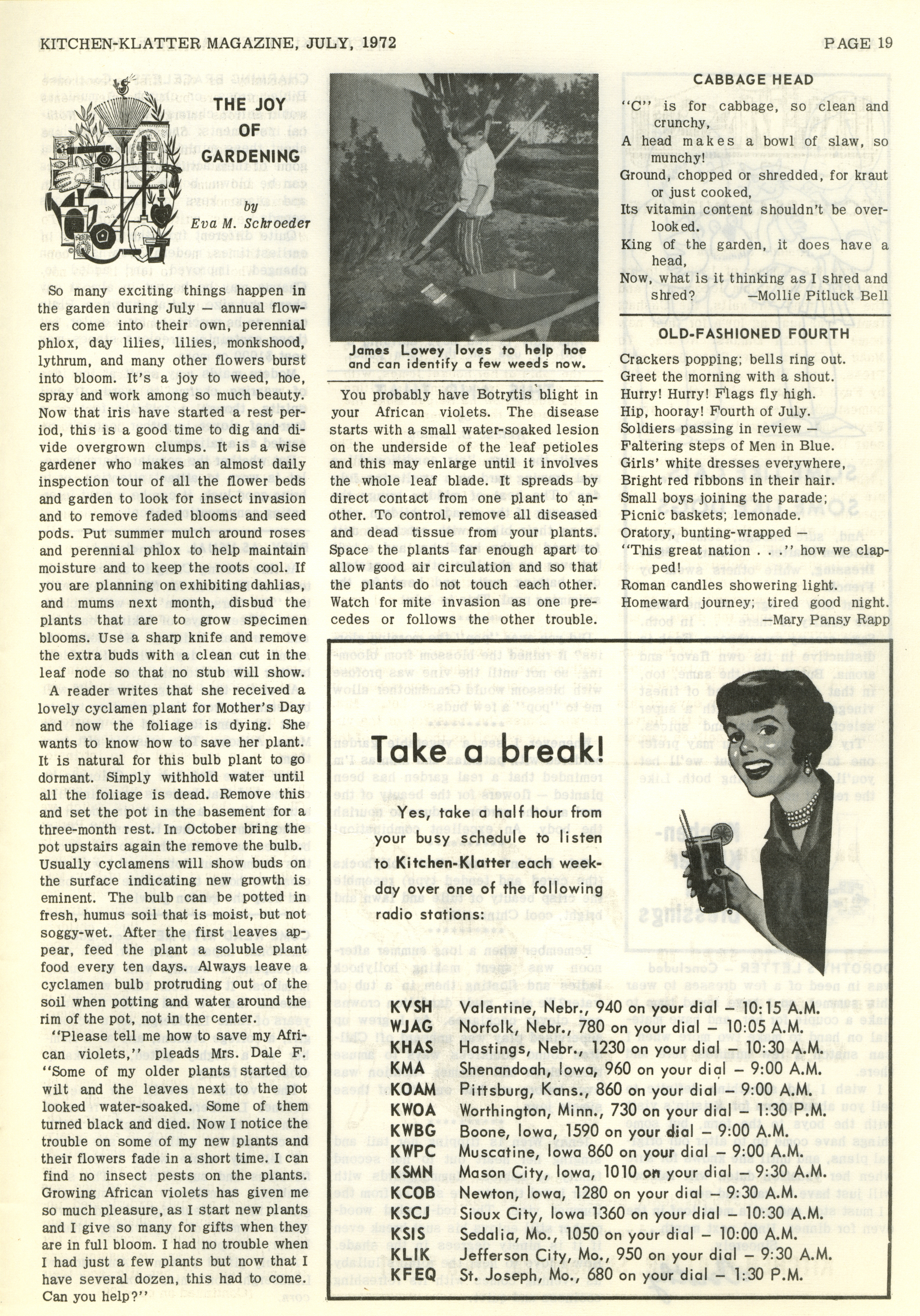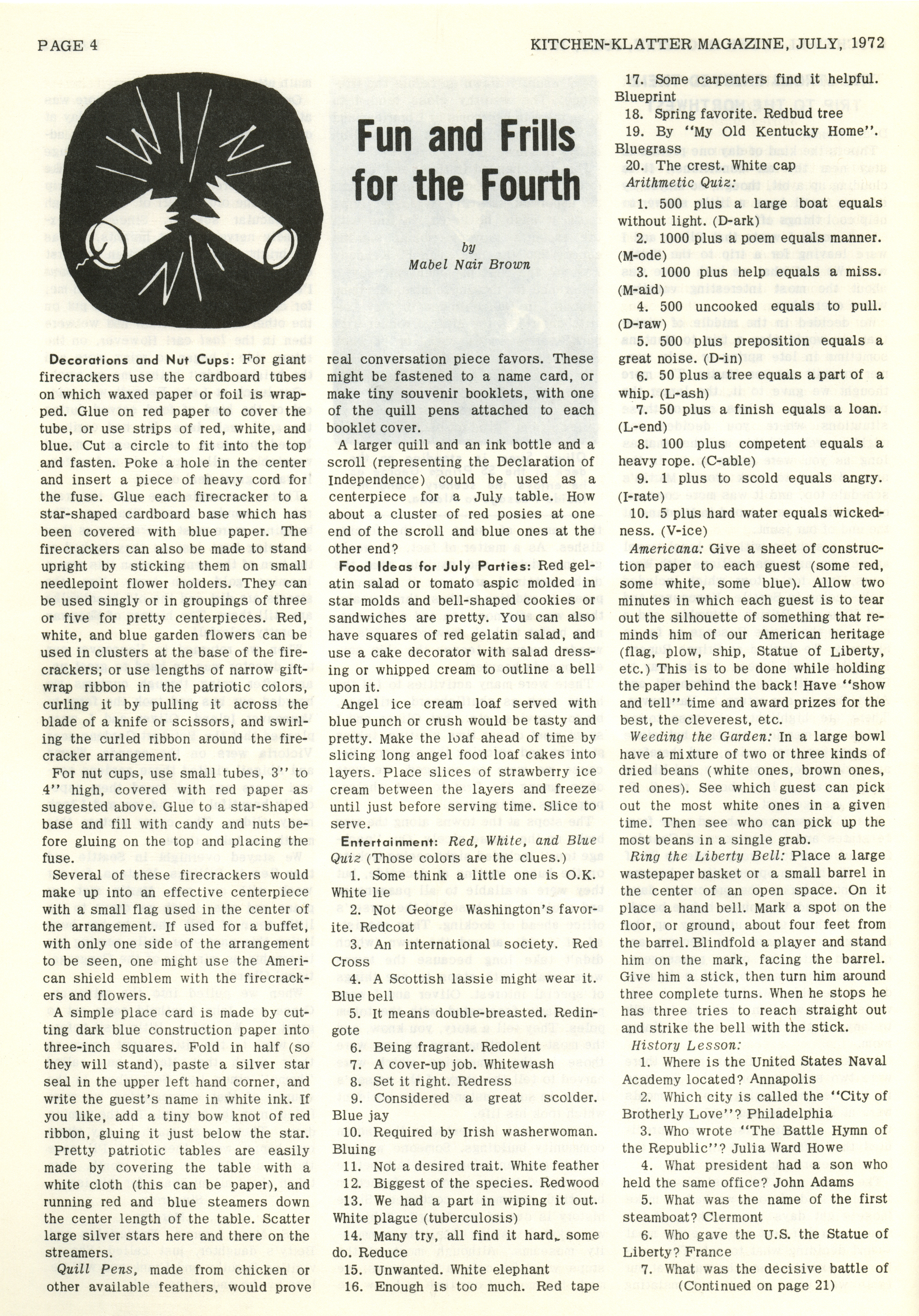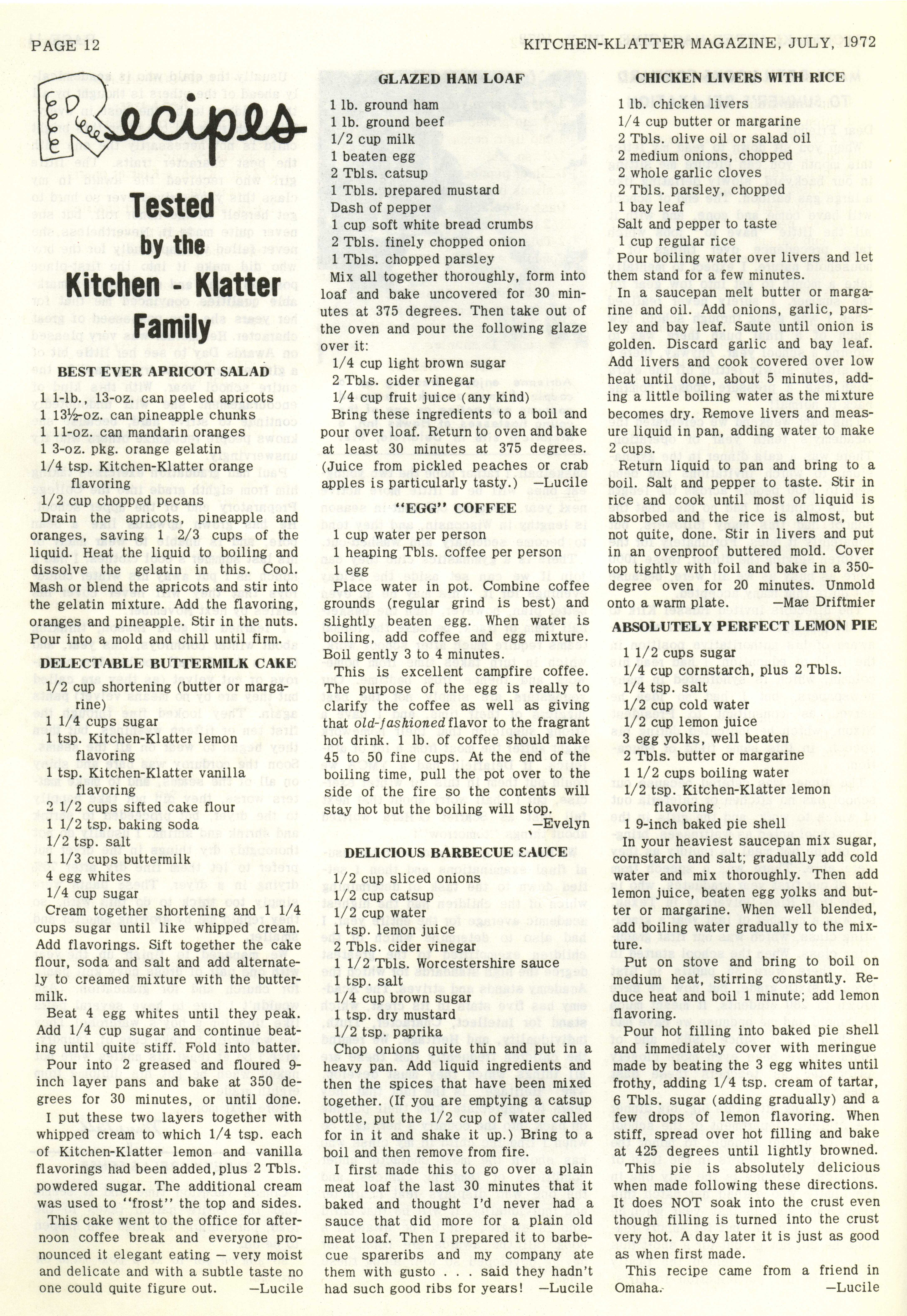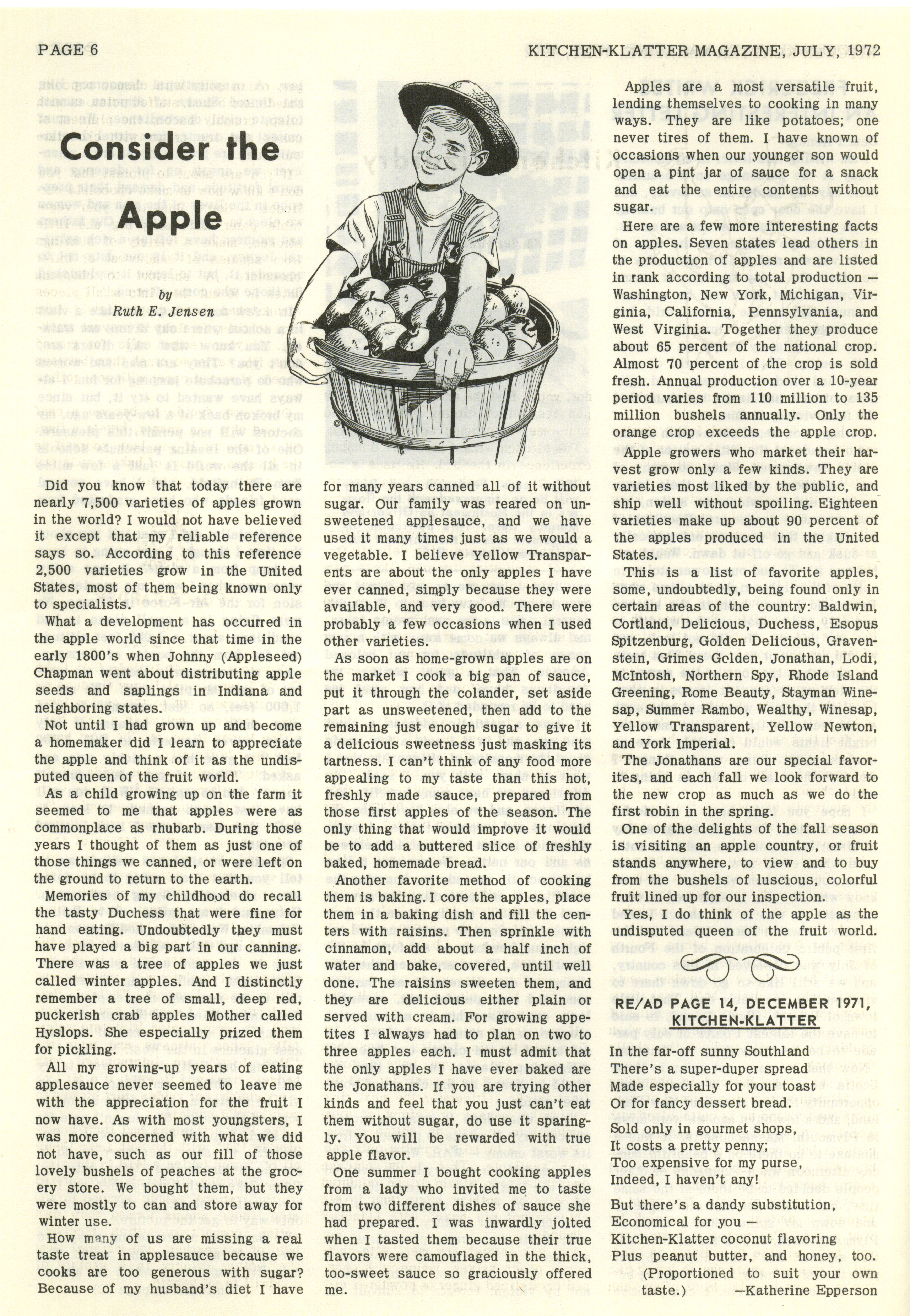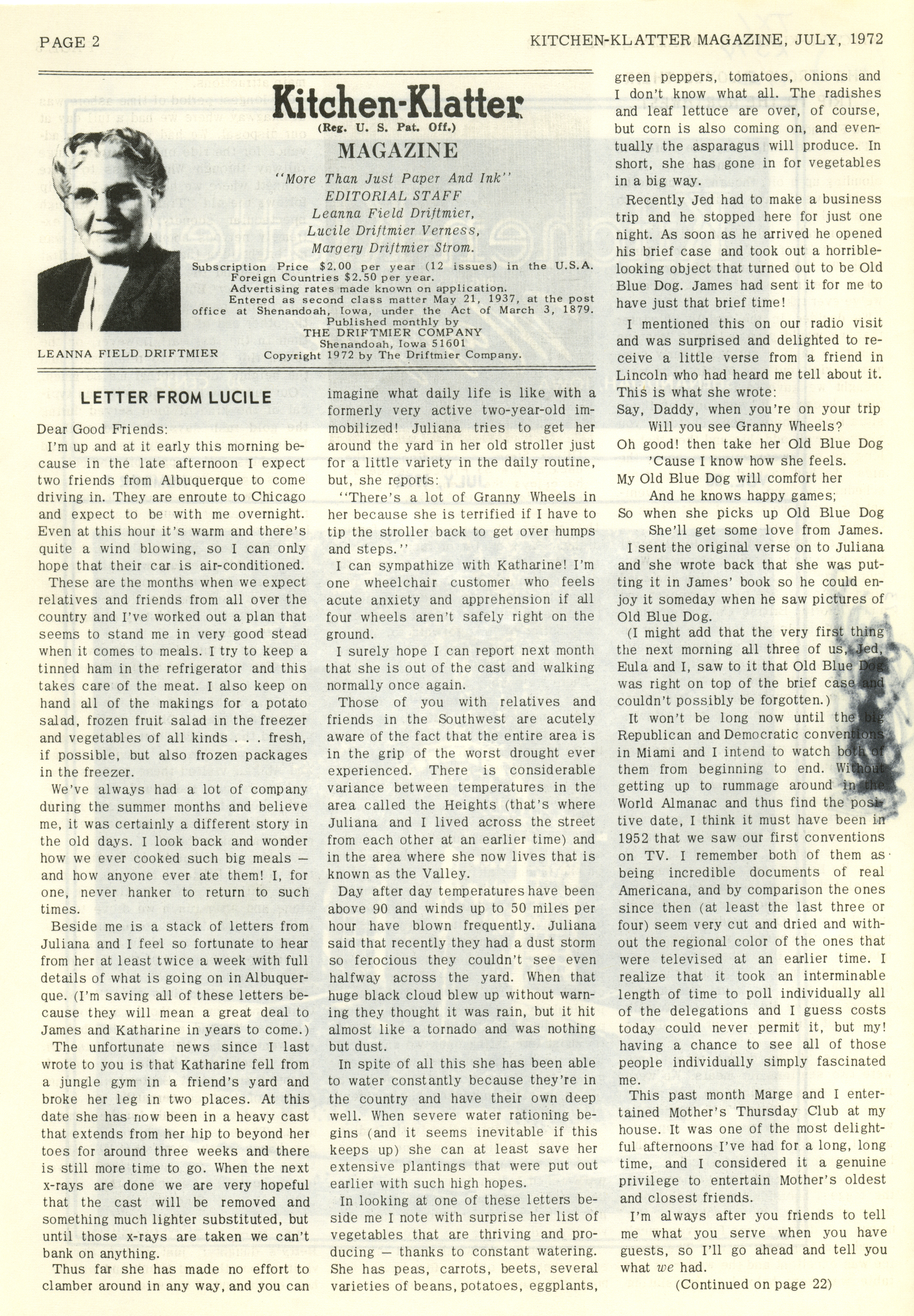 - "Kitchen-Klatter v. 36, n. 07, 1972", Kitchen-Klatter Magazine Issues, Iowa State University Library Digital Collections