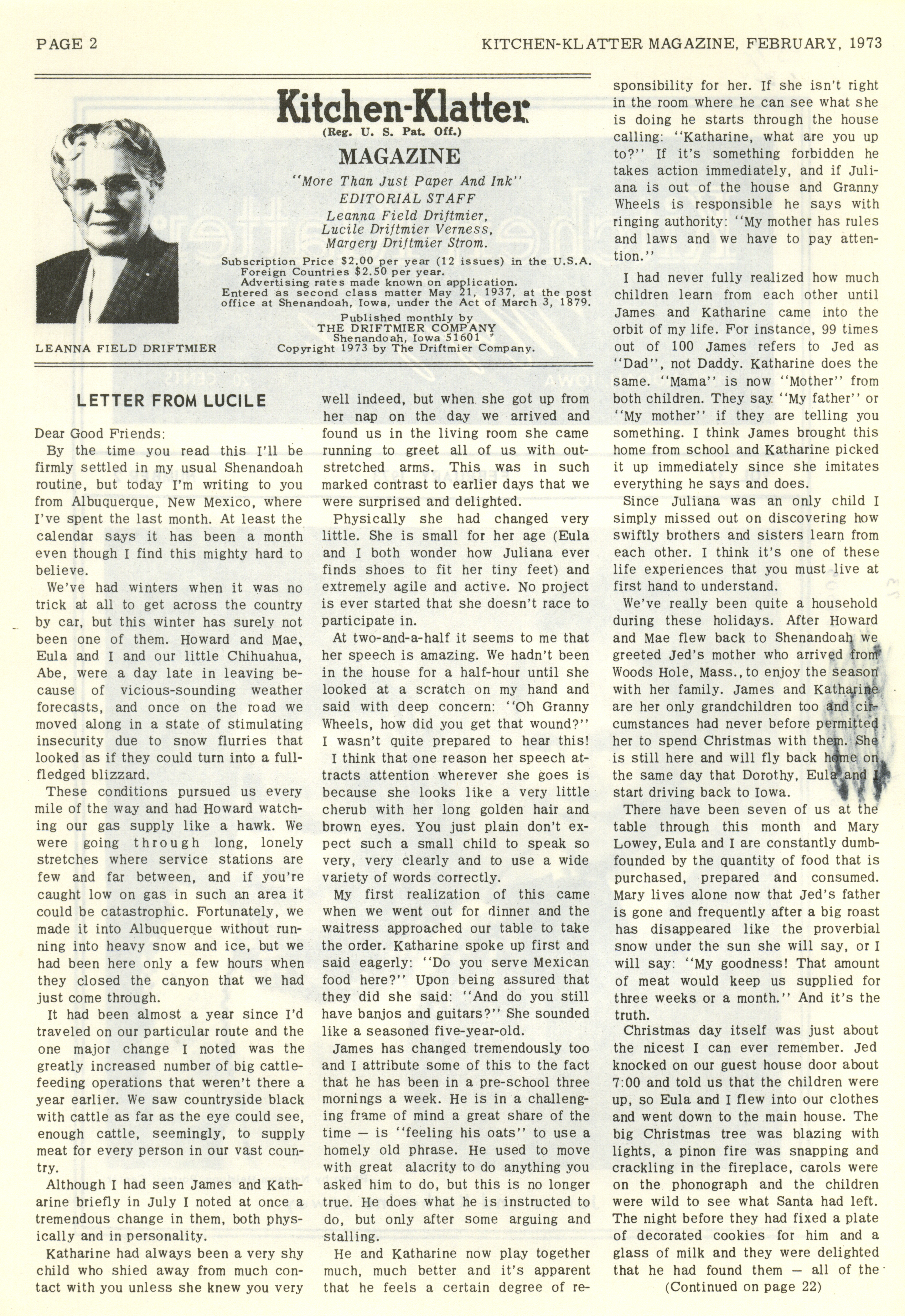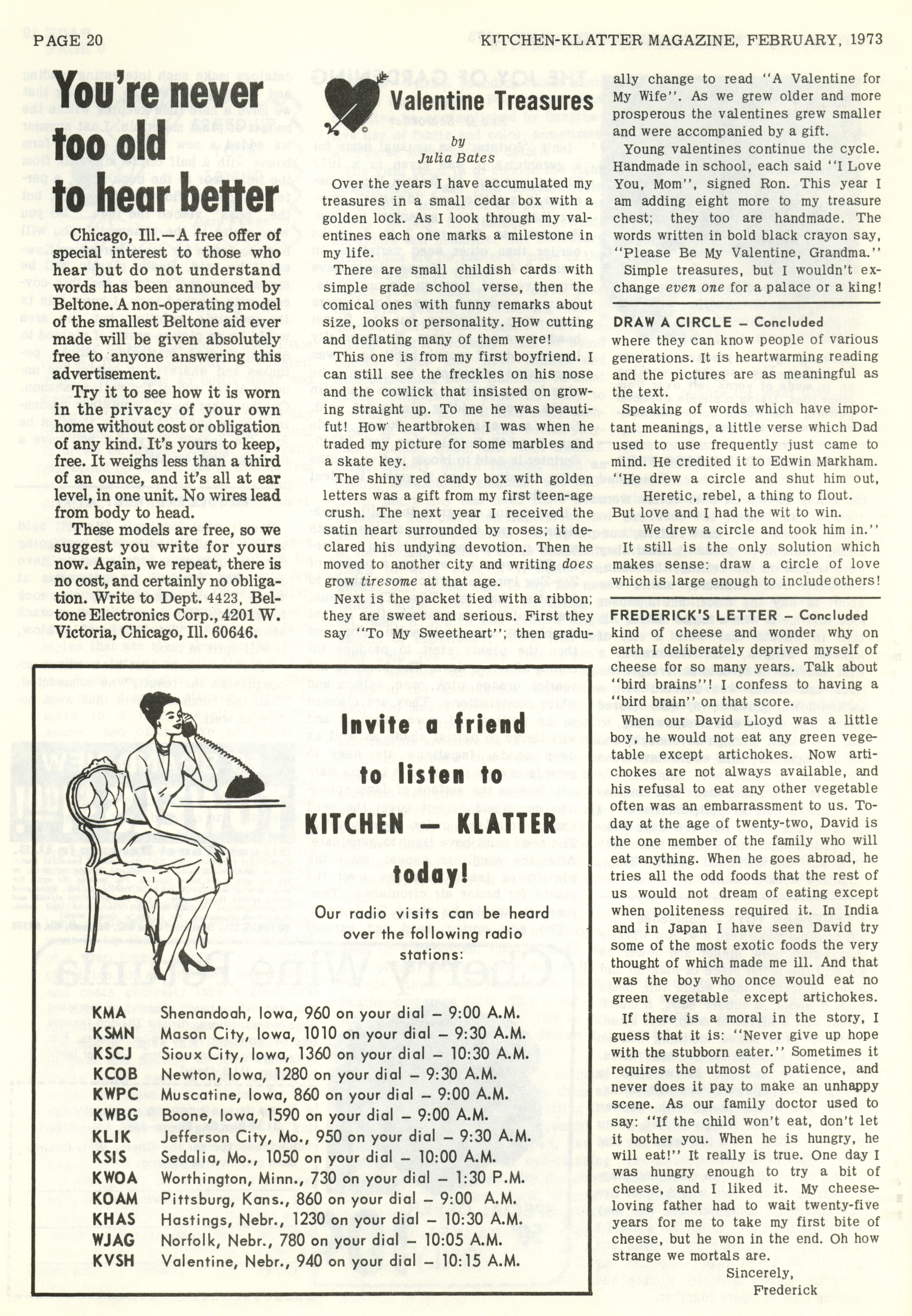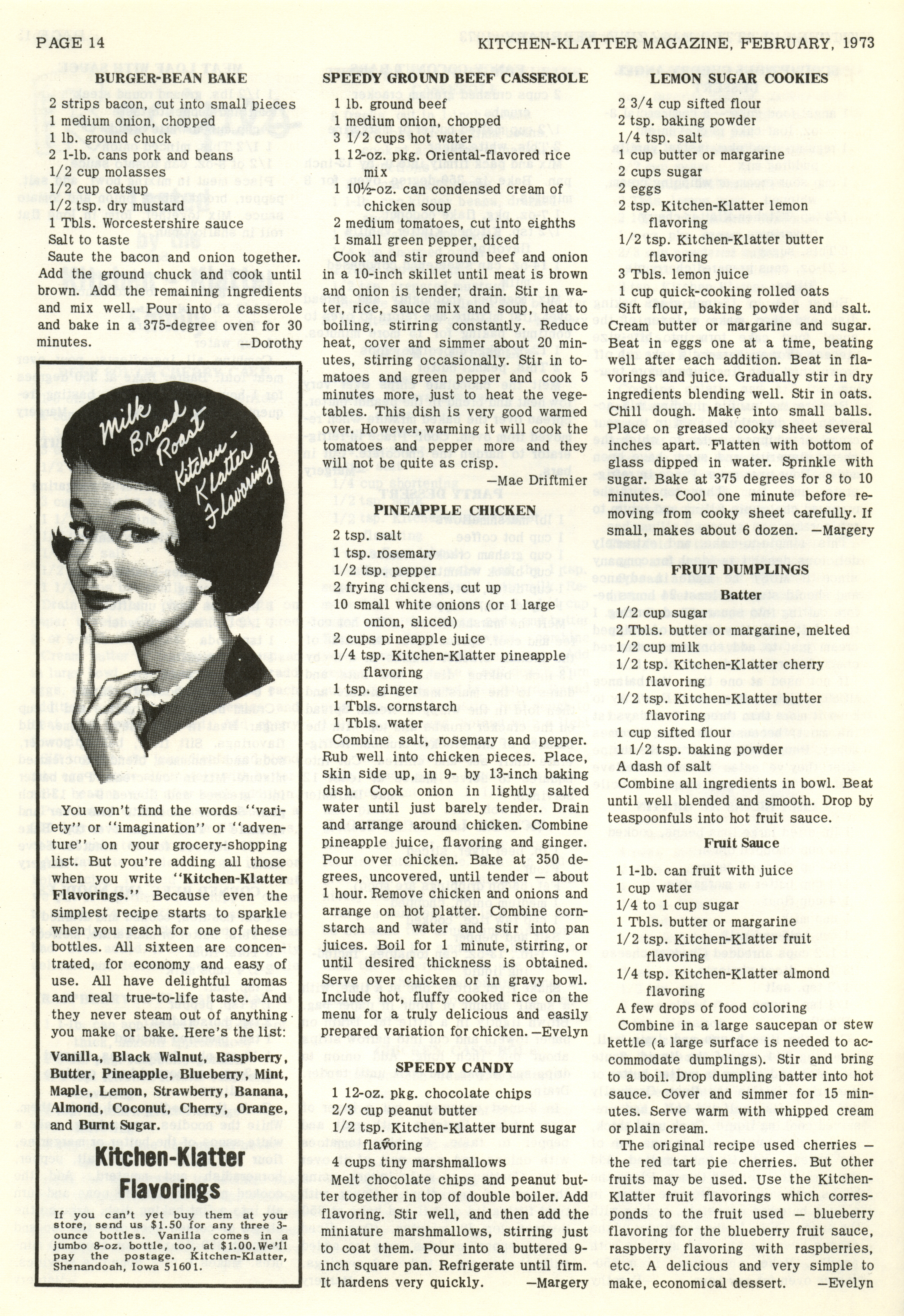 - "Kitchen-Klatter v. 37, n. 02, 1973", Kitchen-Klatter Magazine Issues, Iowa State University Library Digital Collections