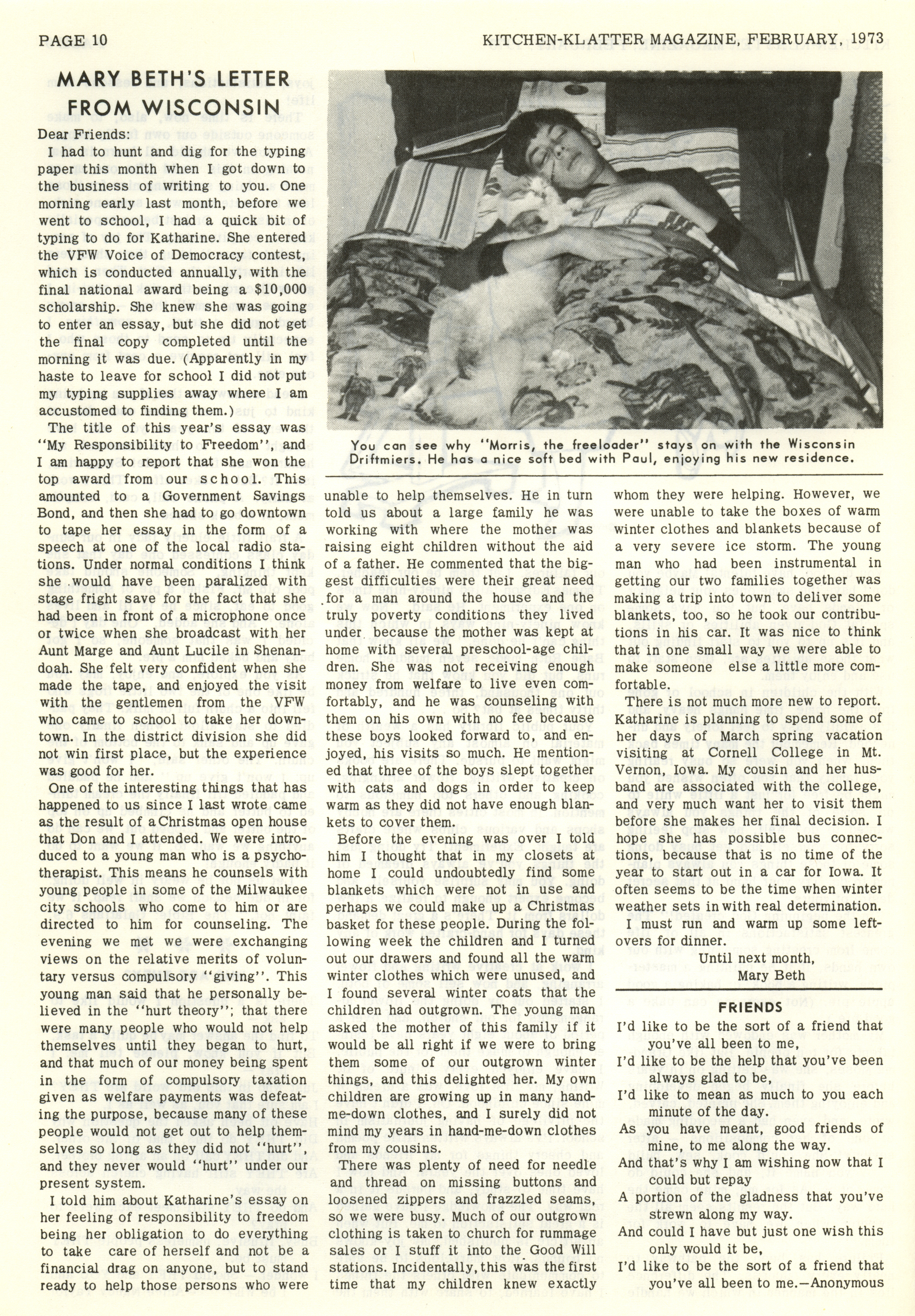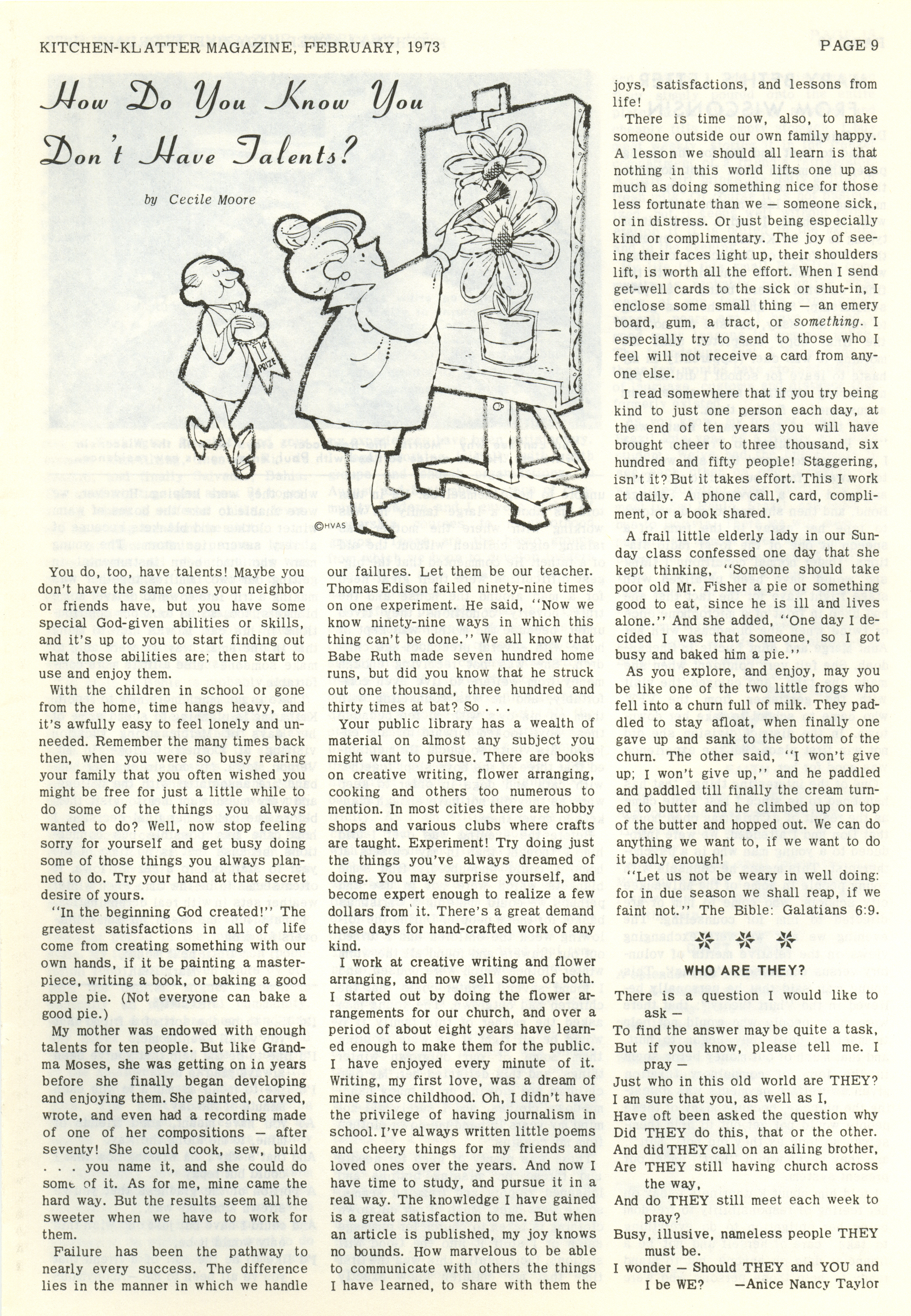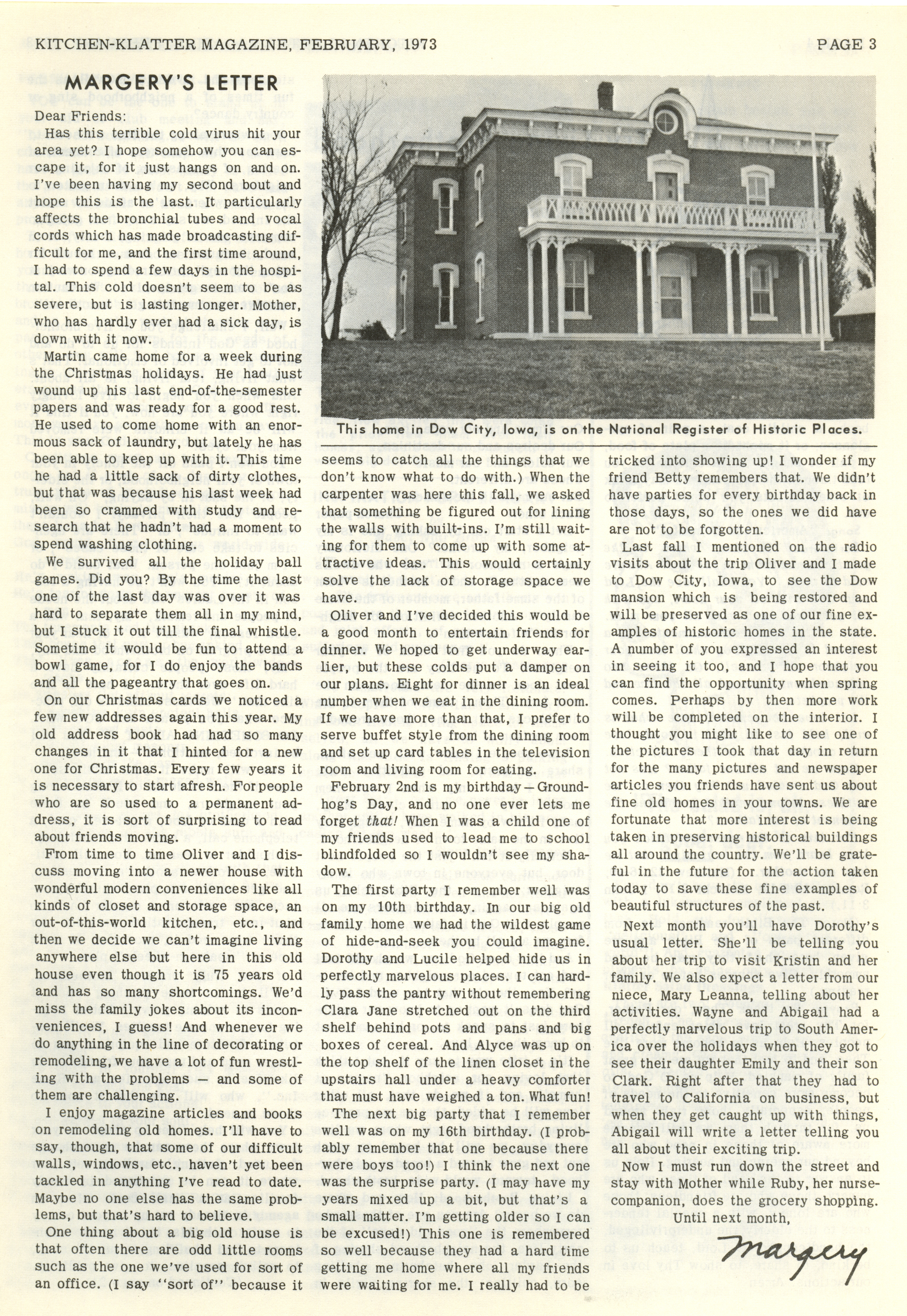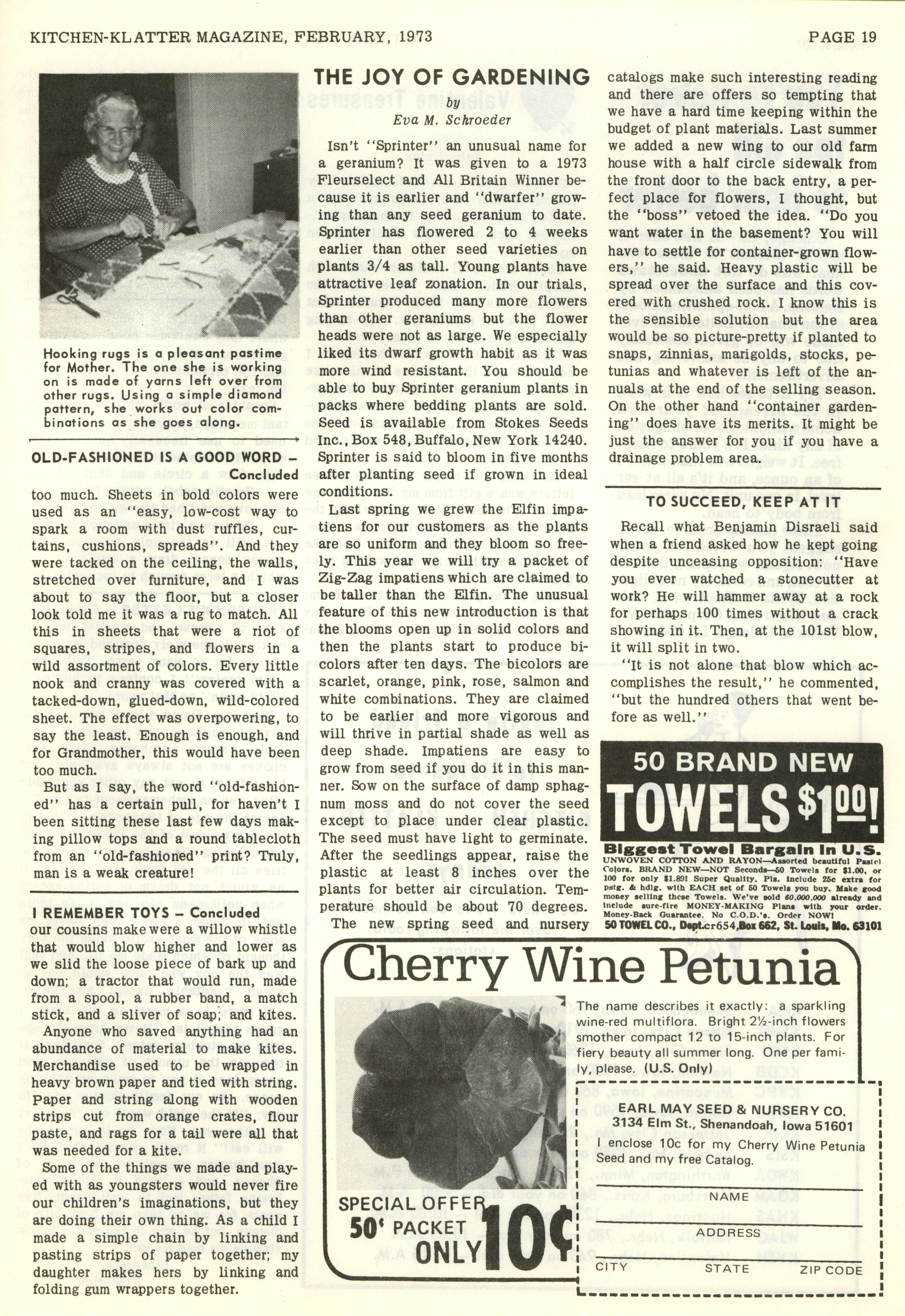 - "Kitchen-Klatter v. 37, n. 02, 1973", Kitchen-Klatter Magazine Issues, Iowa State University Library Digital Collections