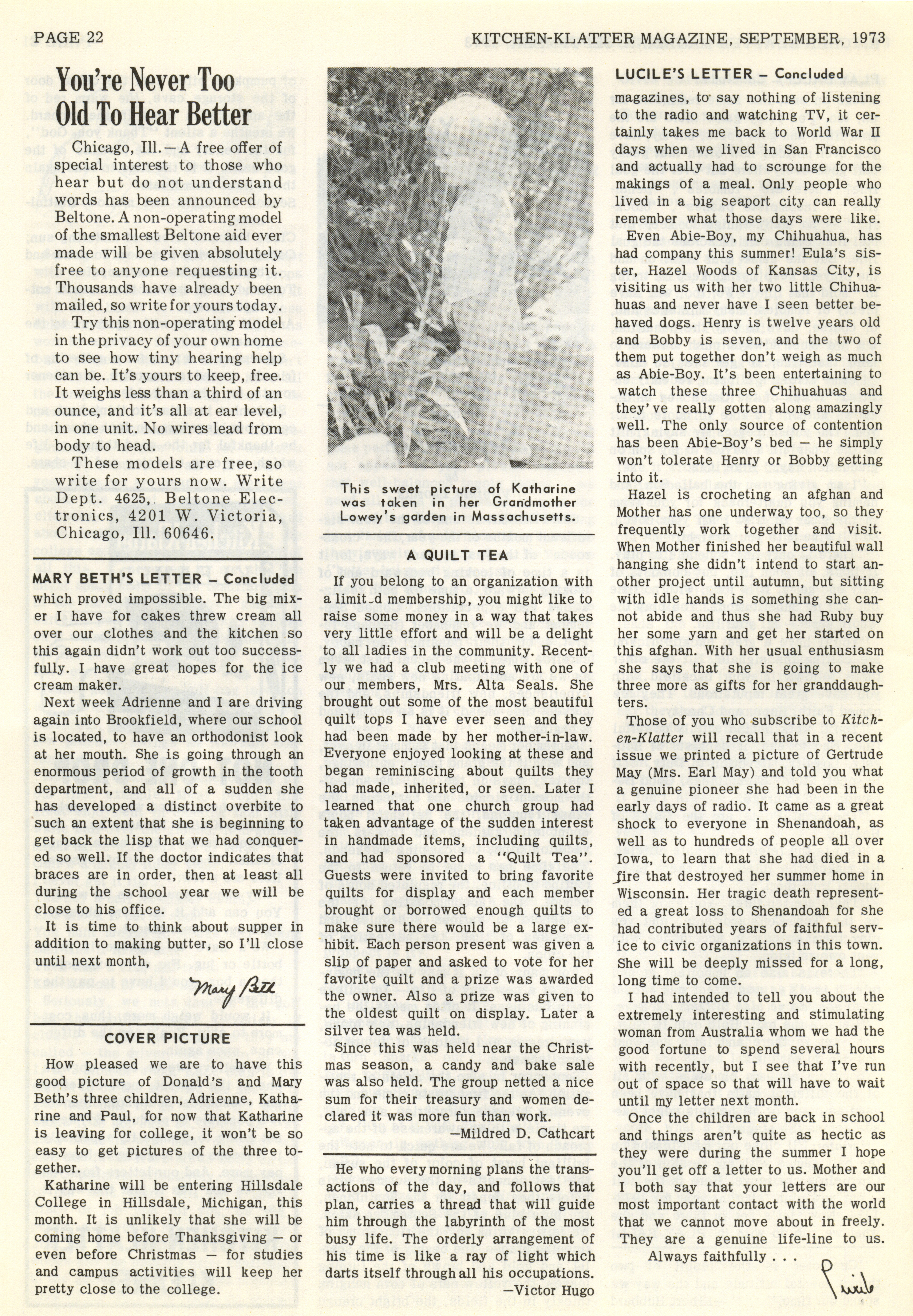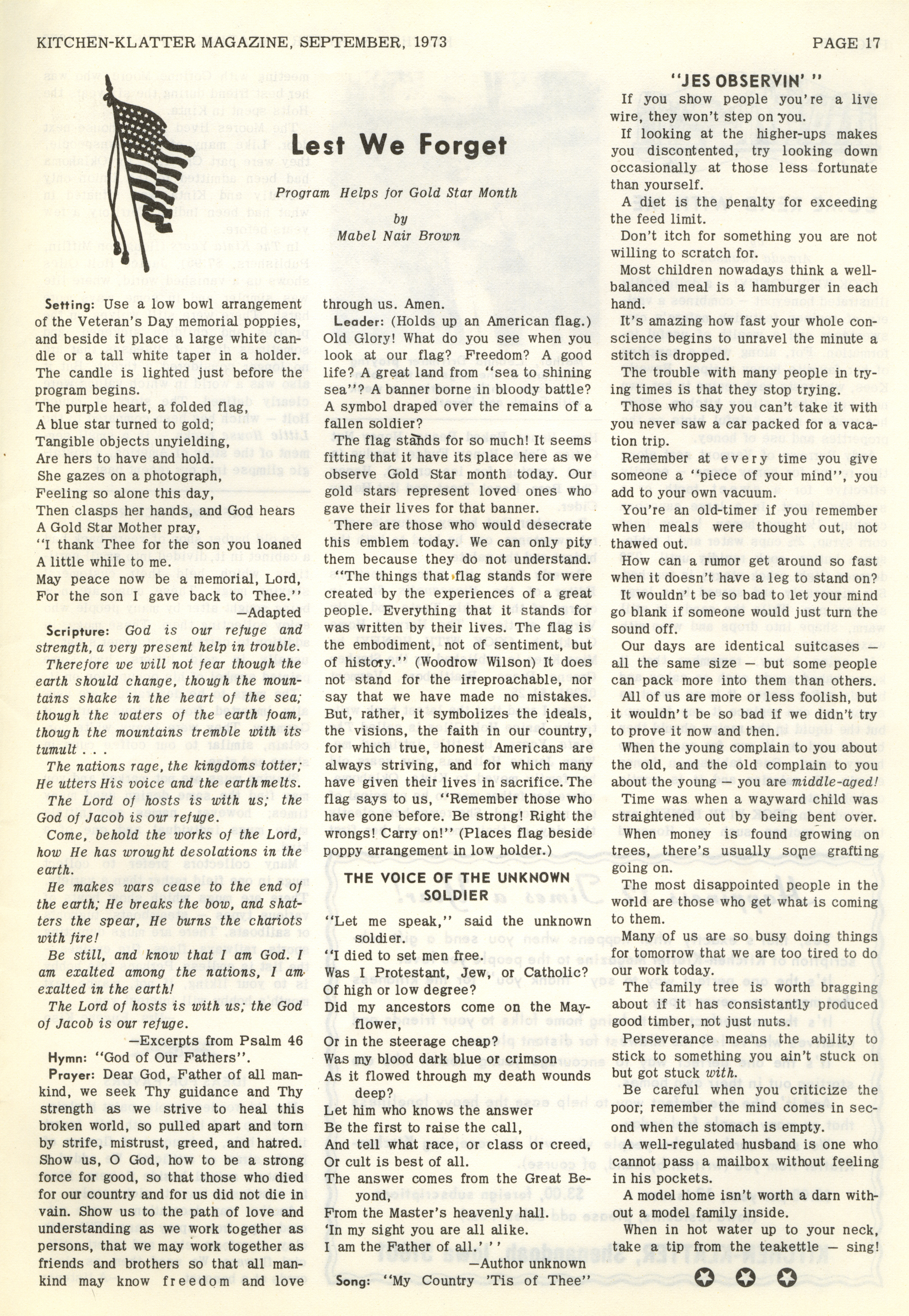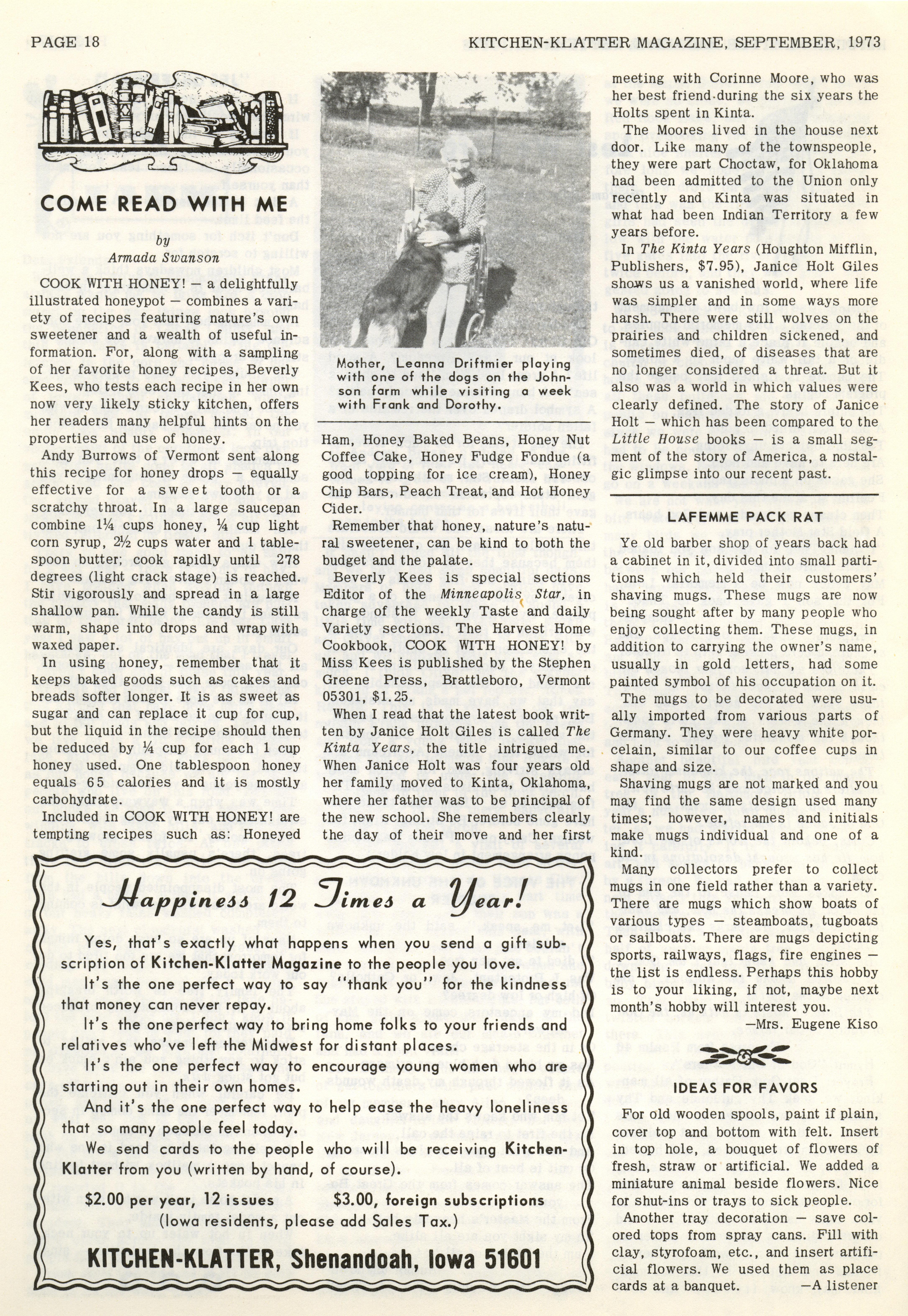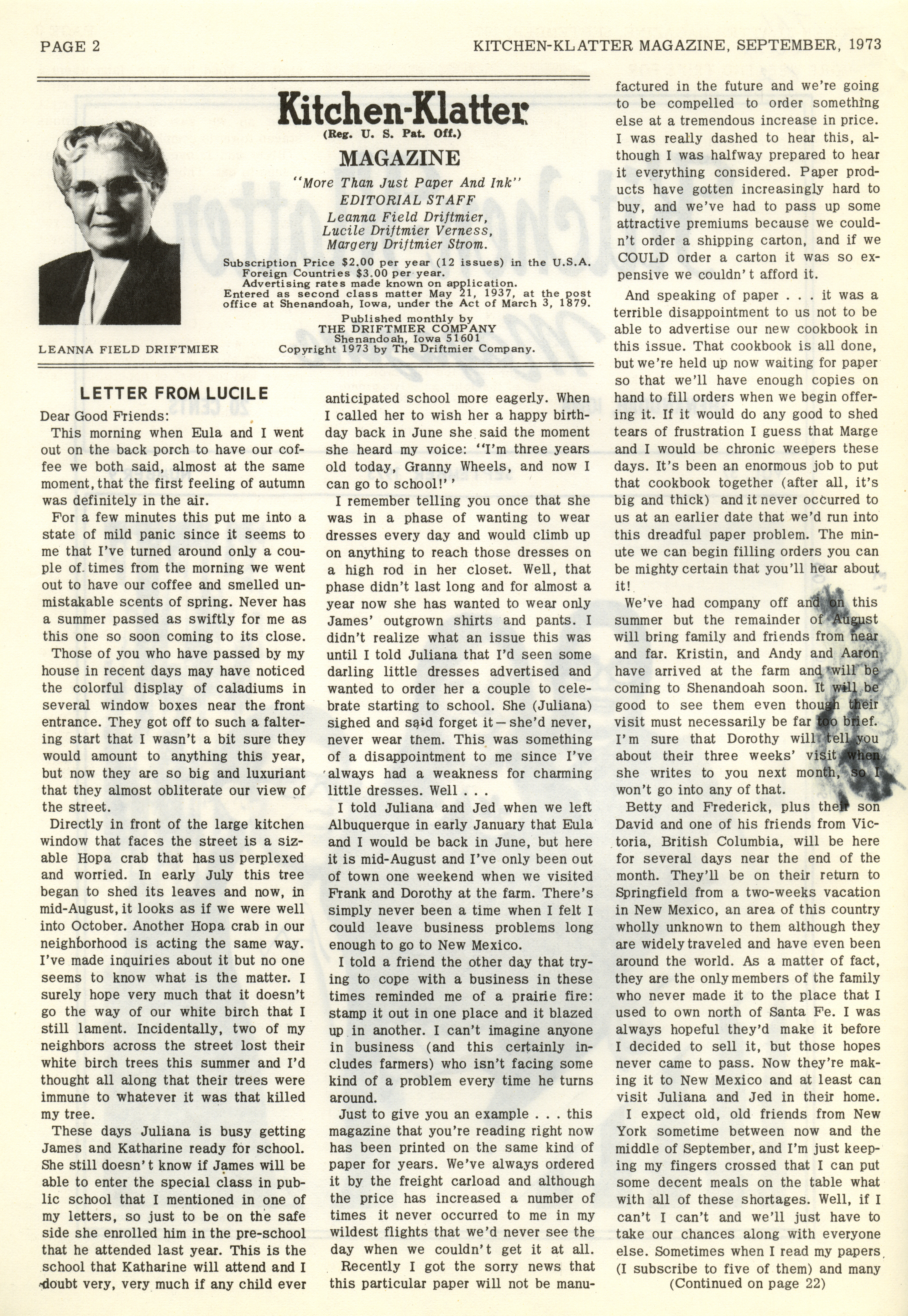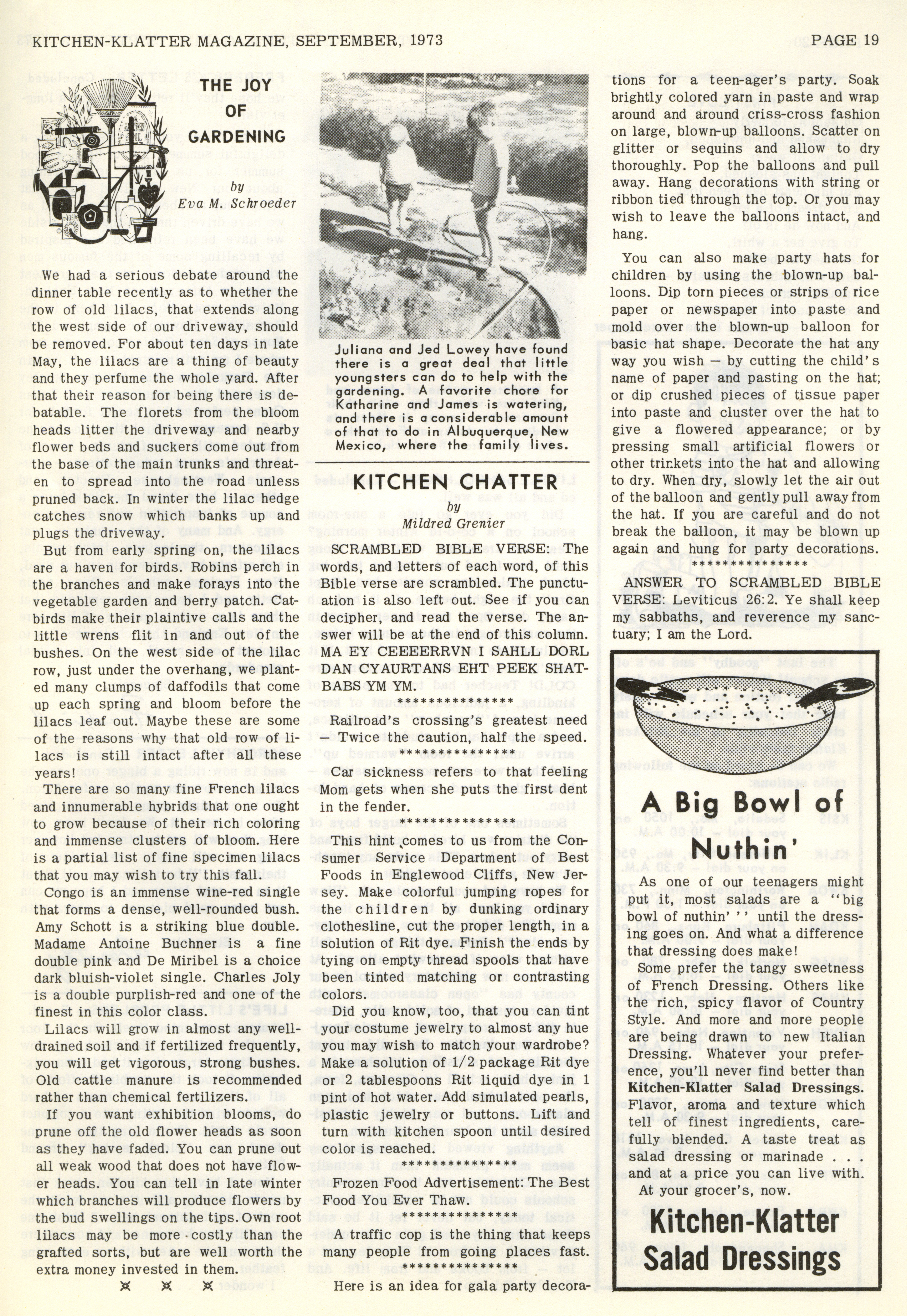 - "Kitchen-Klatter v. 37, n. 09, 1973", Kitchen-Klatter Magazine Issues, Iowa State University Library Digital Collections