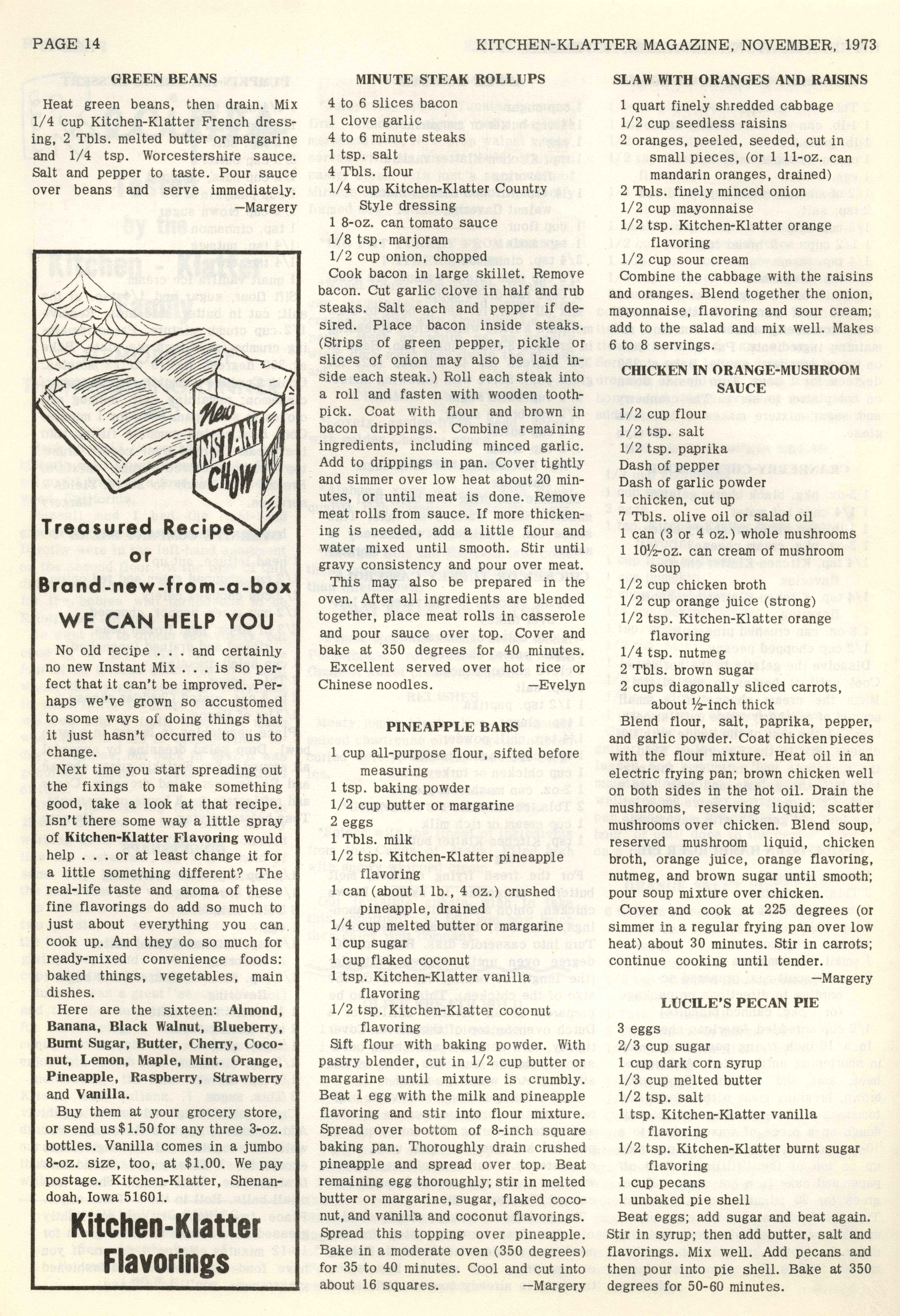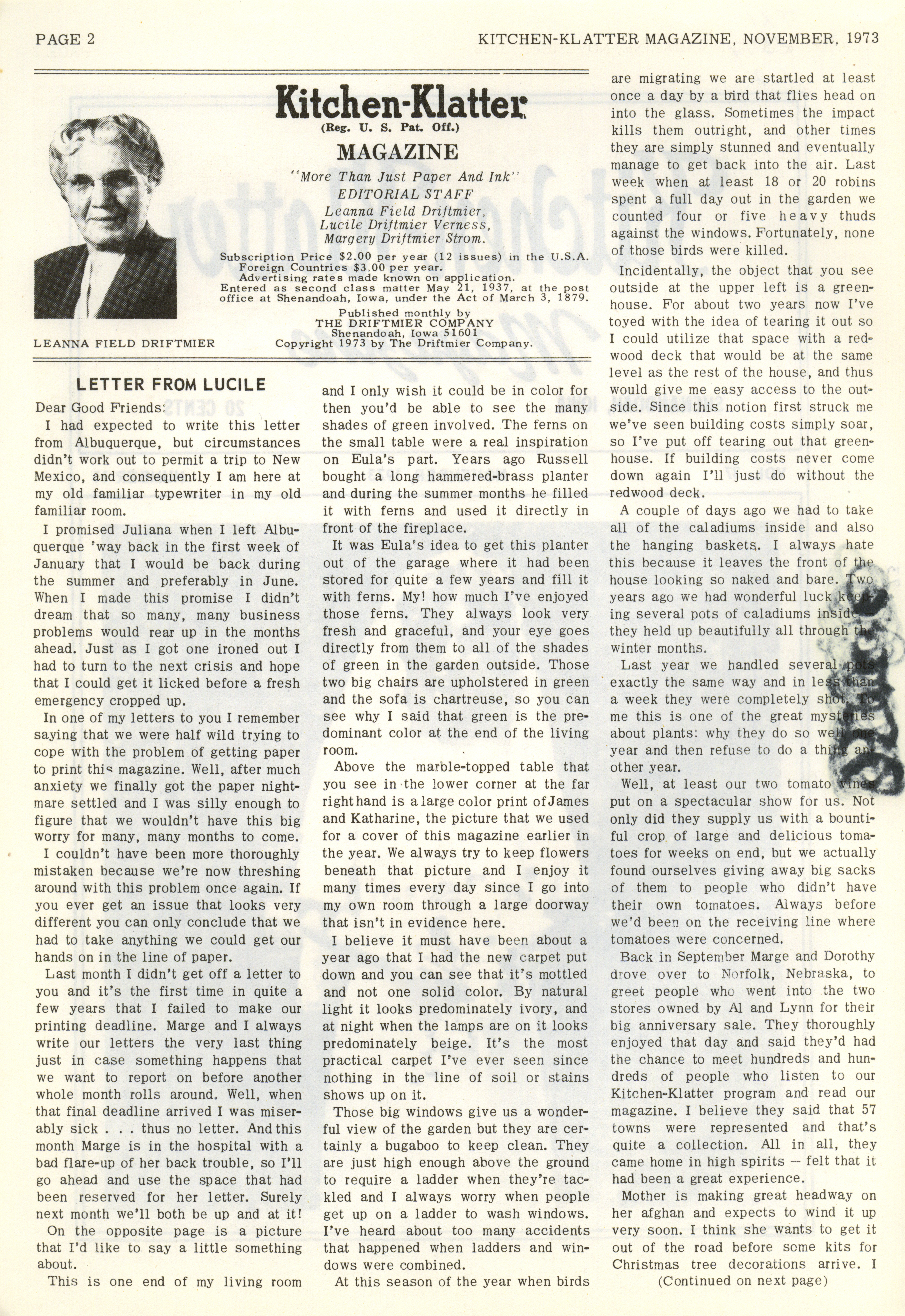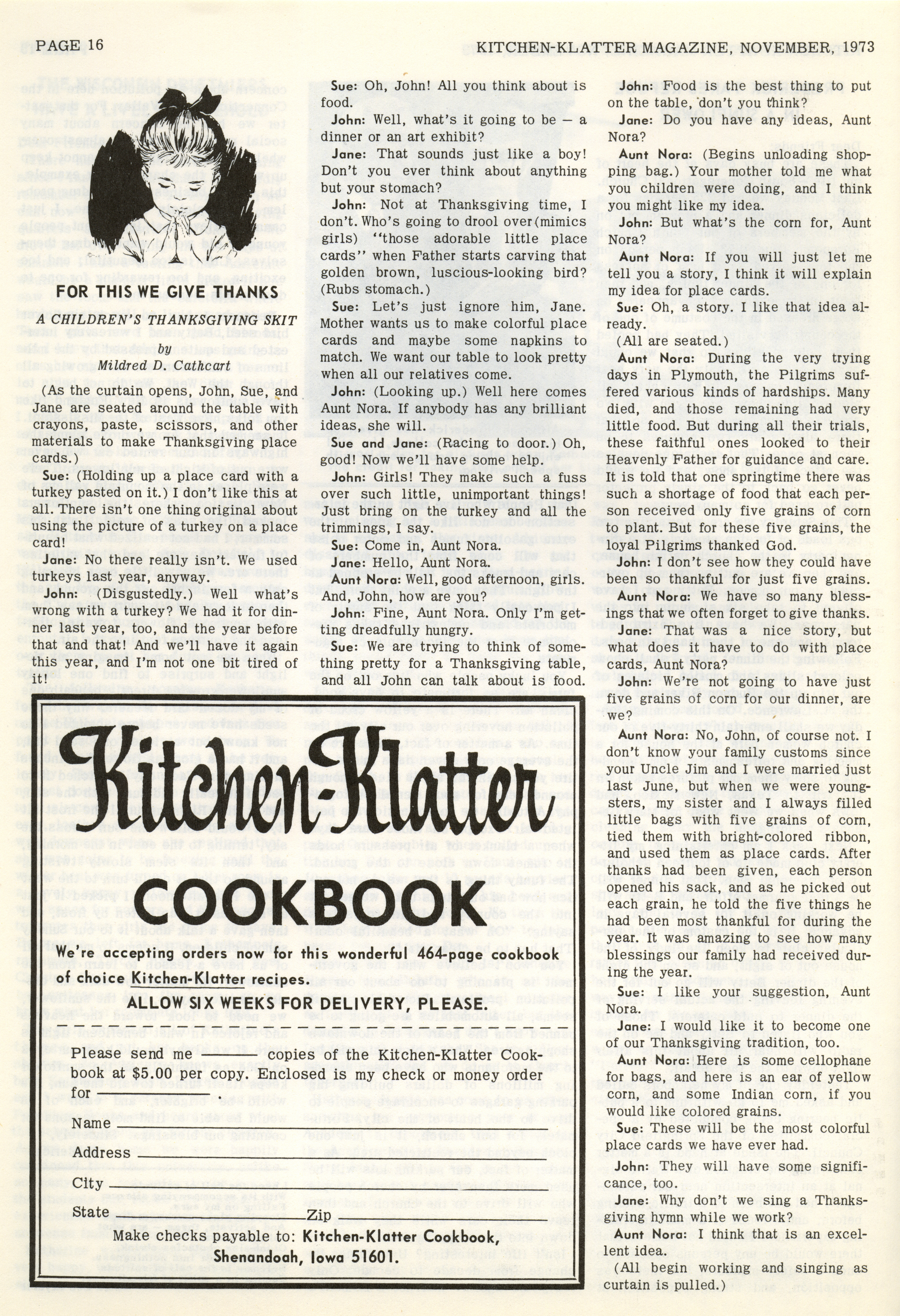 - "Kitchen-Klatter v. 37, n. 11, 1973", Kitchen-Klatter Magazine Issues, Iowa State University Library Digital Collections