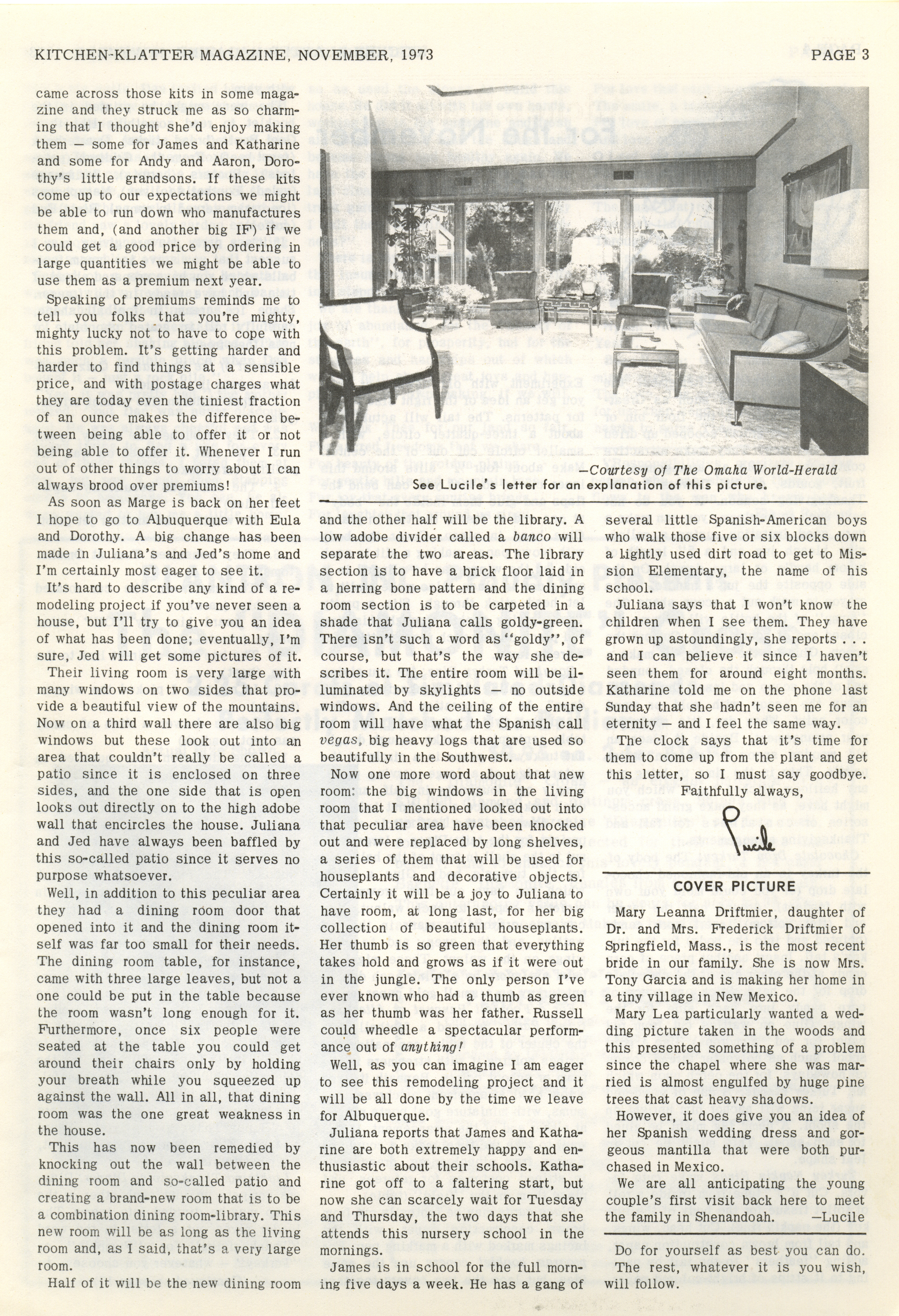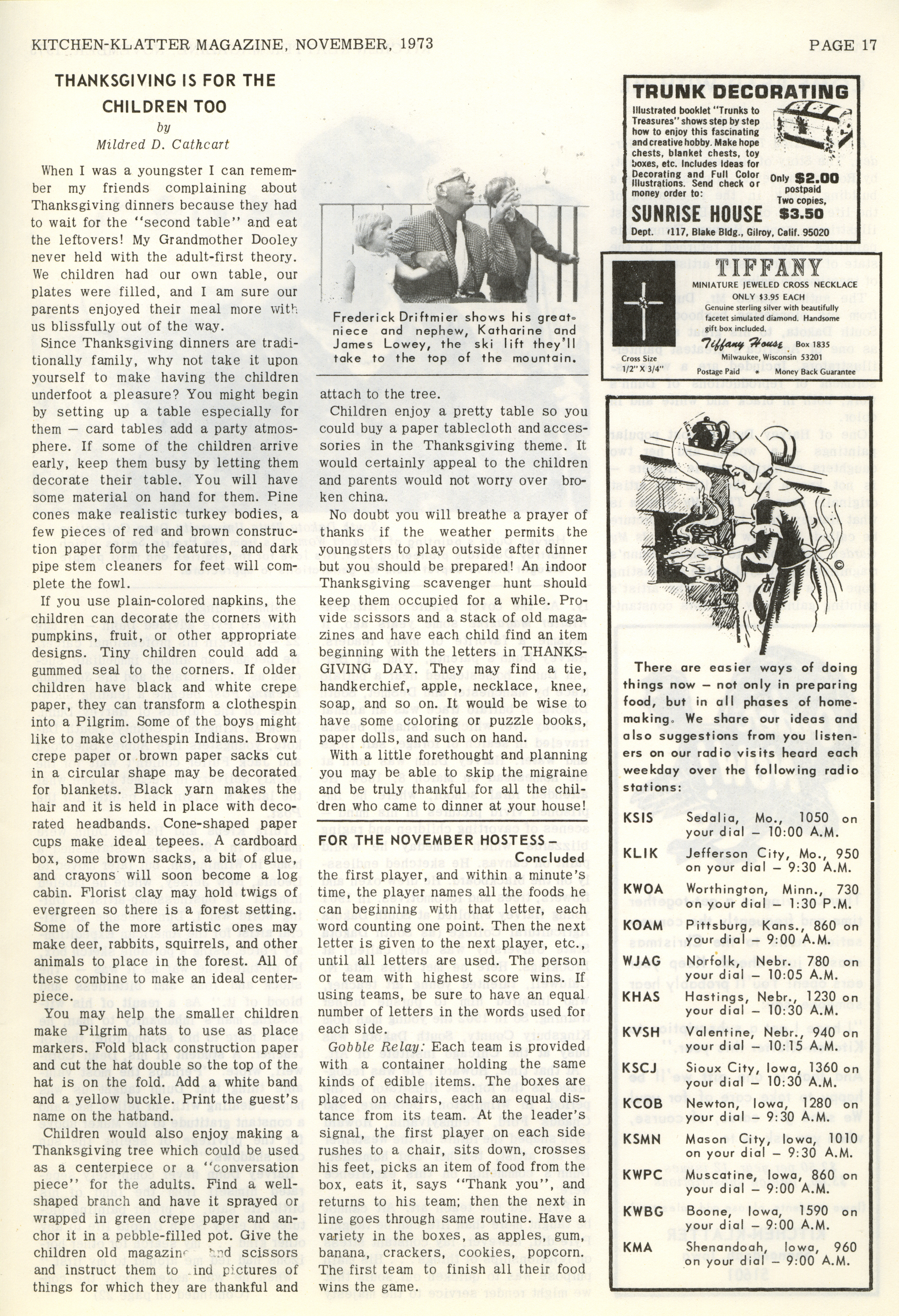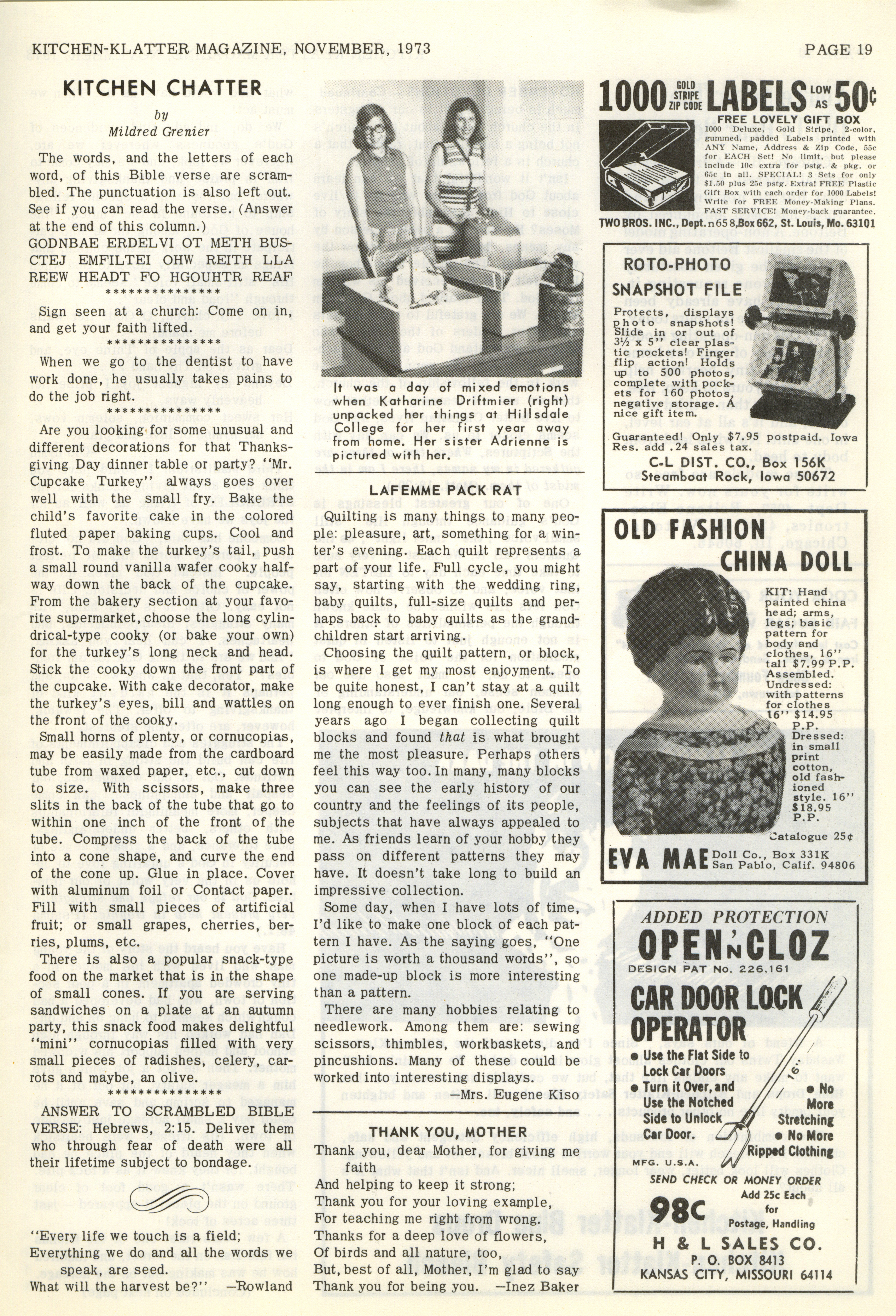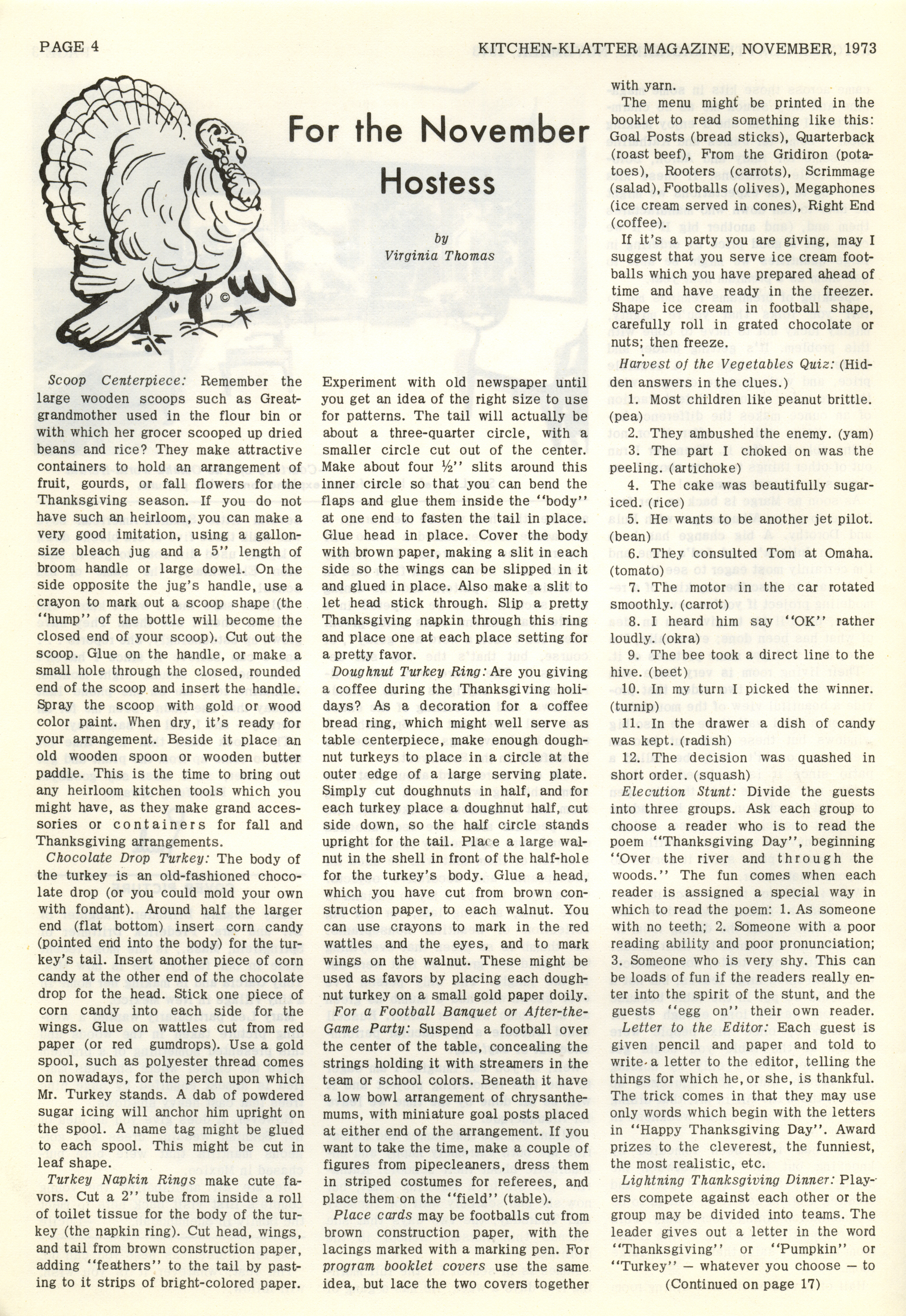 - "Kitchen-Klatter v. 37, n. 11, 1973", Kitchen-Klatter Magazine Issues, Iowa State University Library Digital Collections