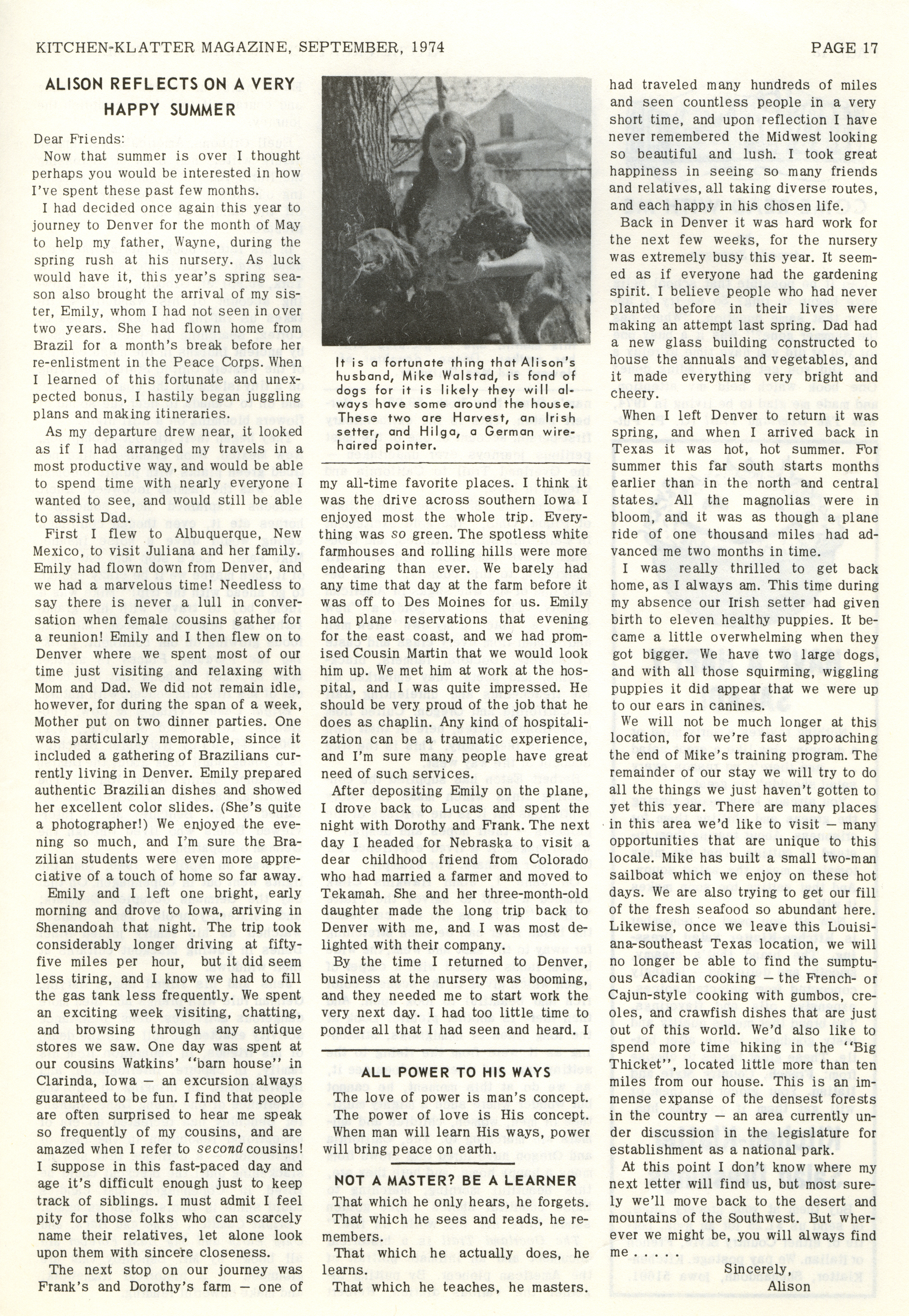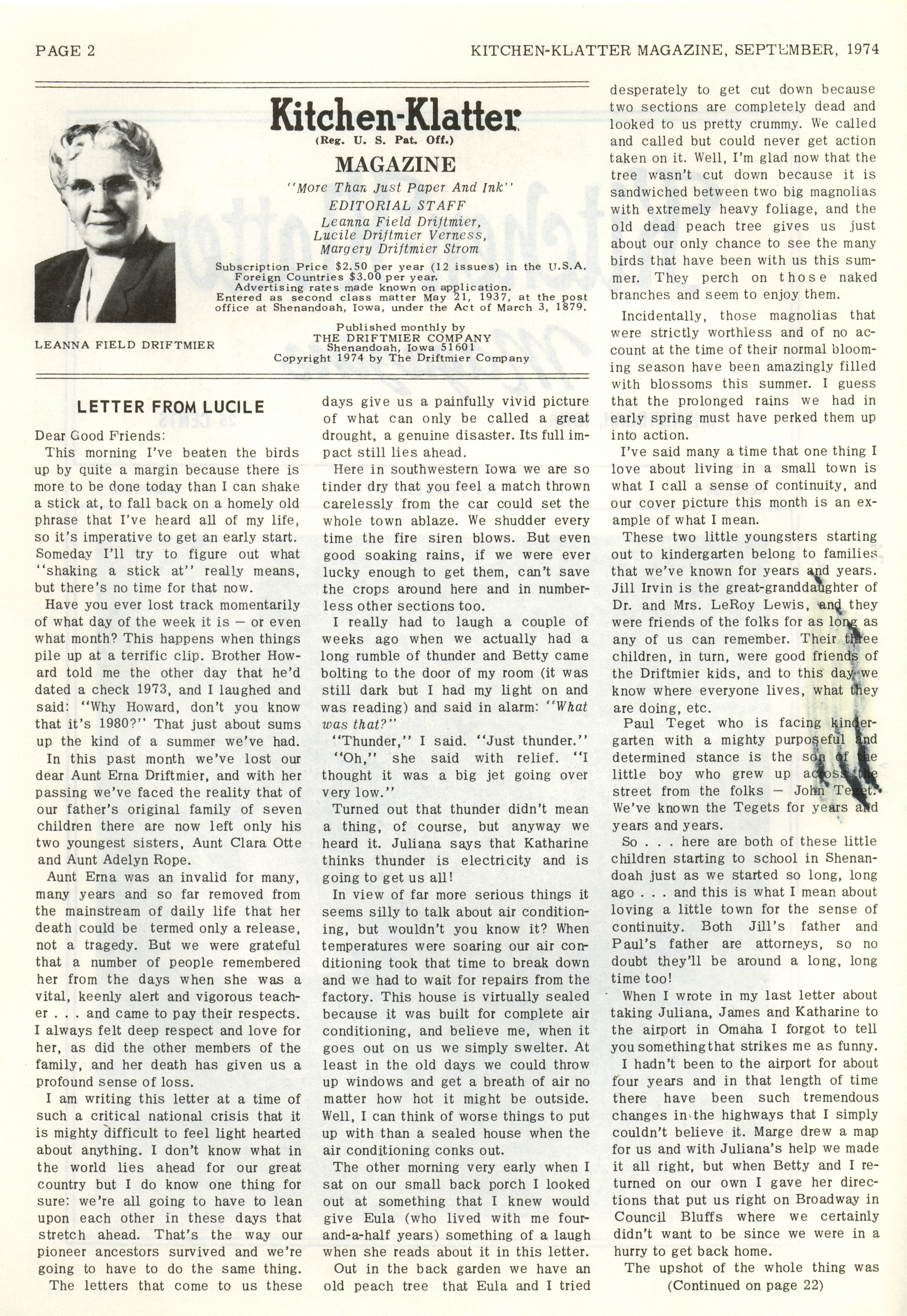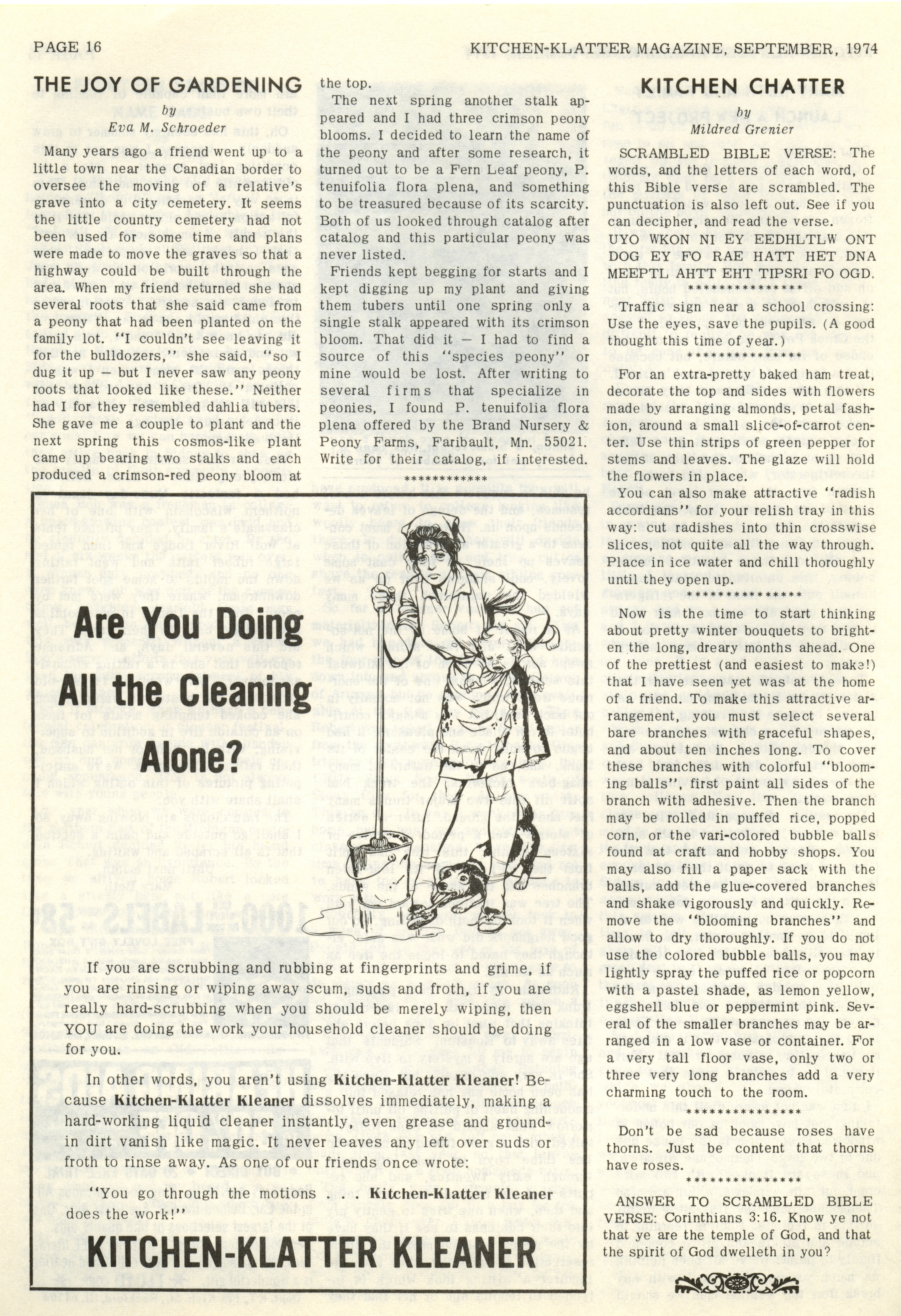 - "Kitchen-Klatter v. 38, n. 09, 1974", Kitchen-Klatter Magazine Issues, Iowa State University Library Digital Collections