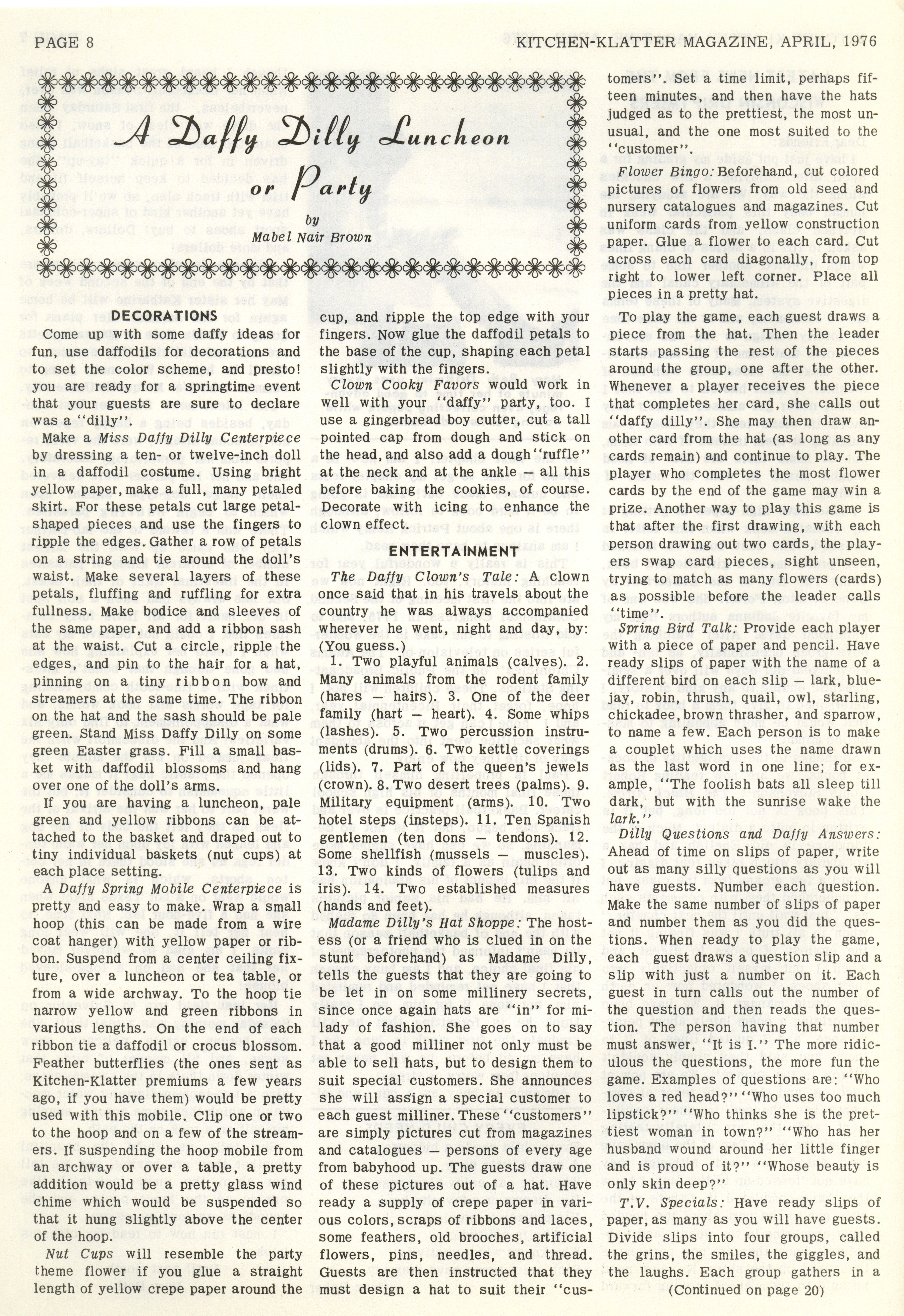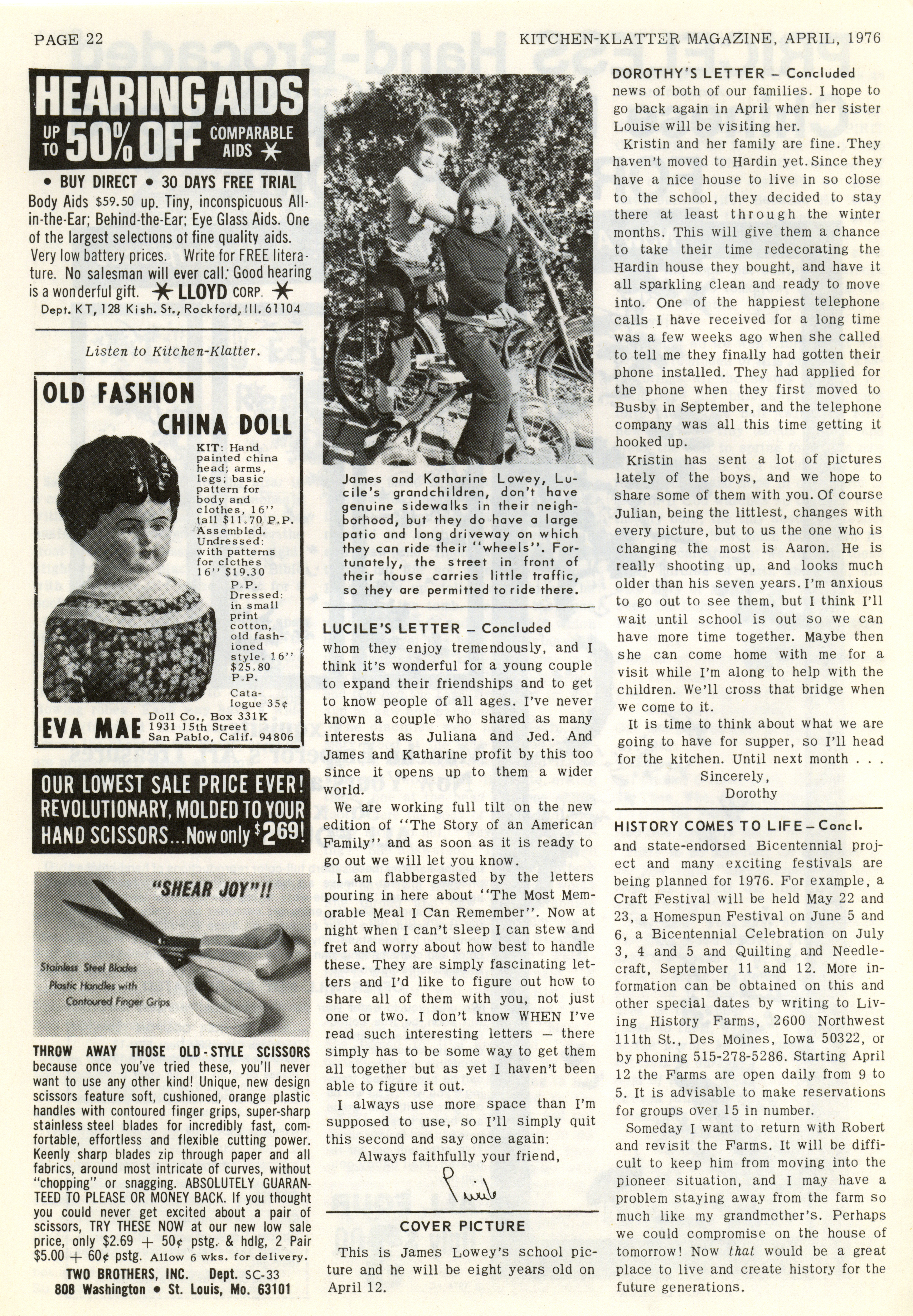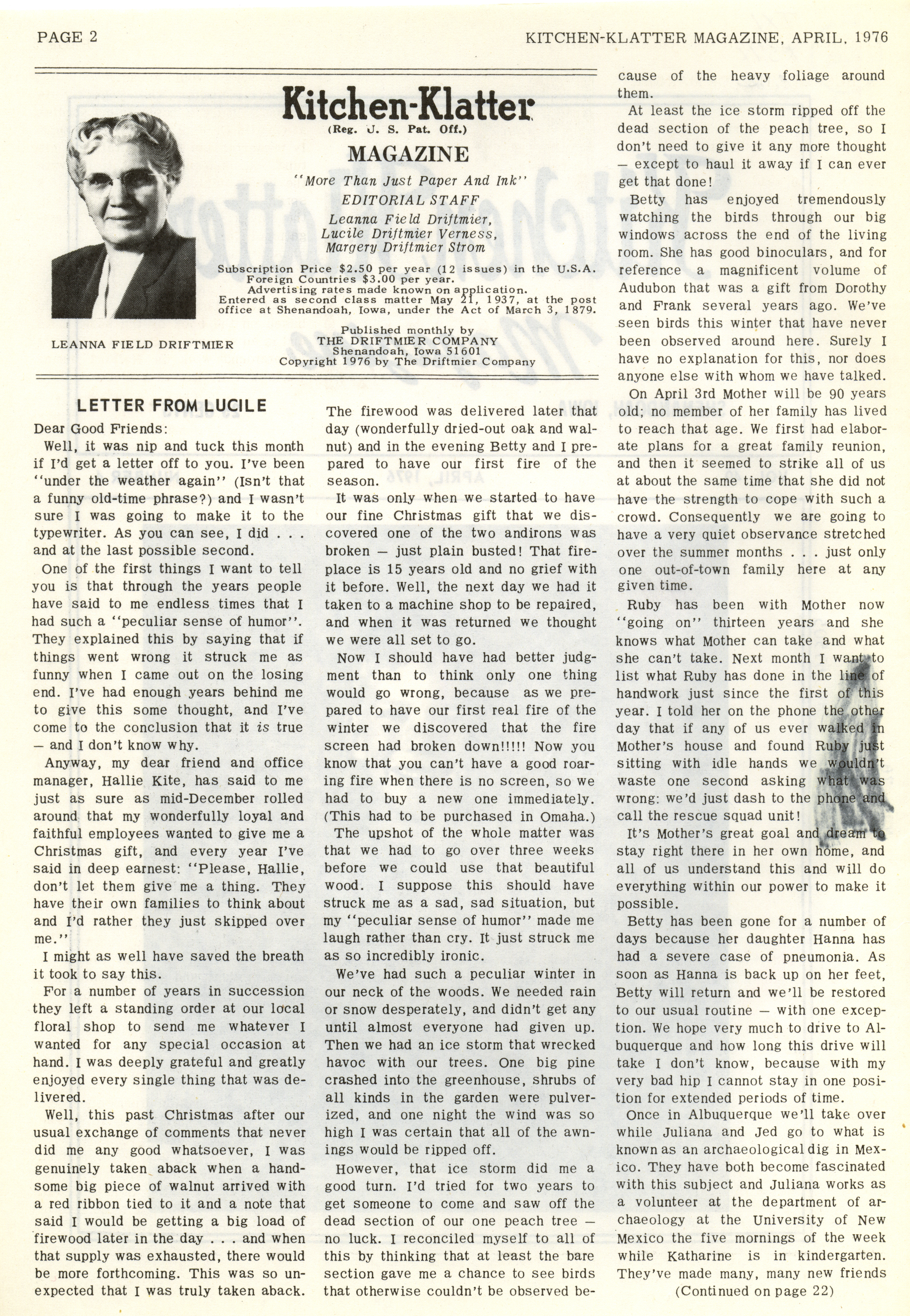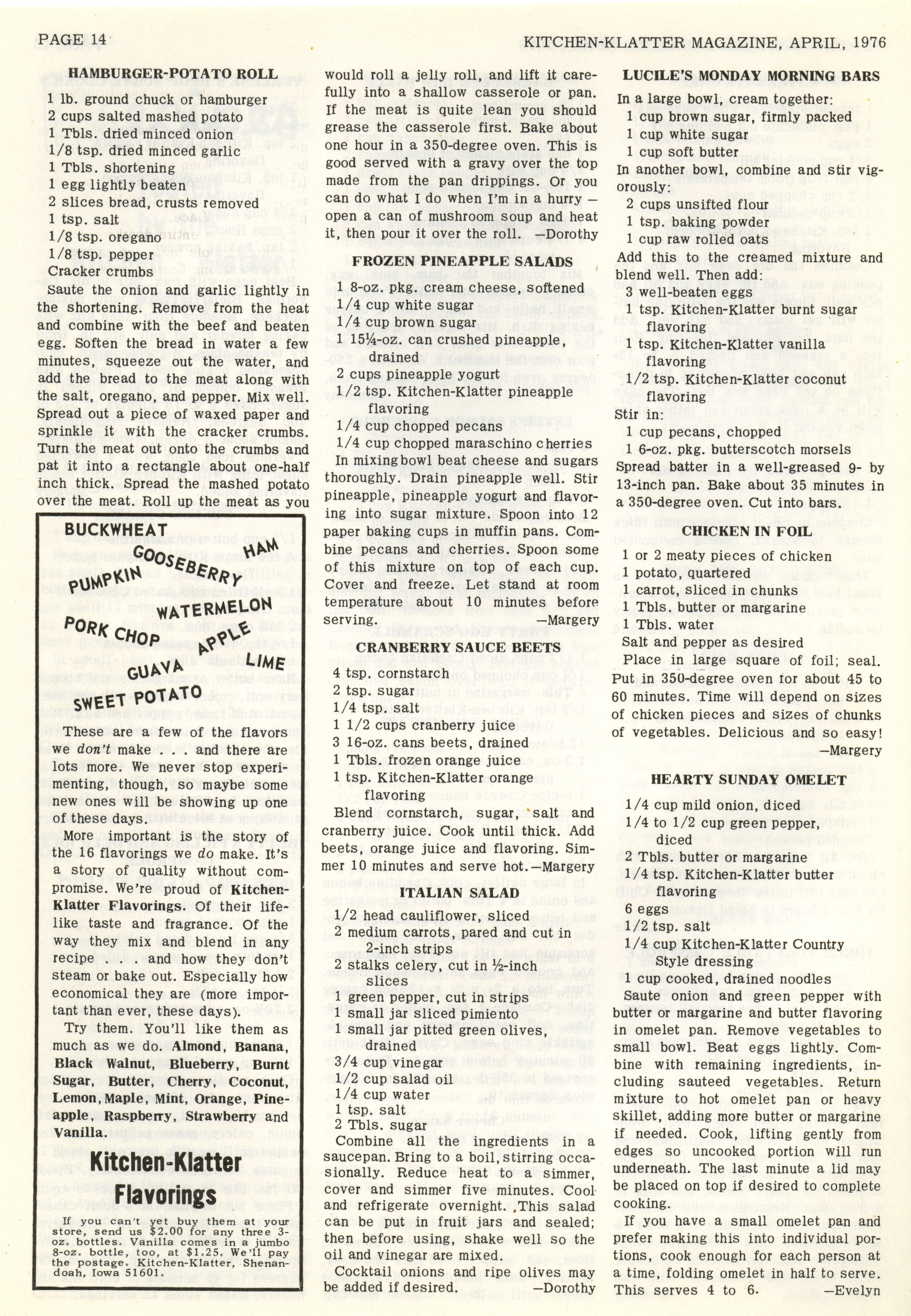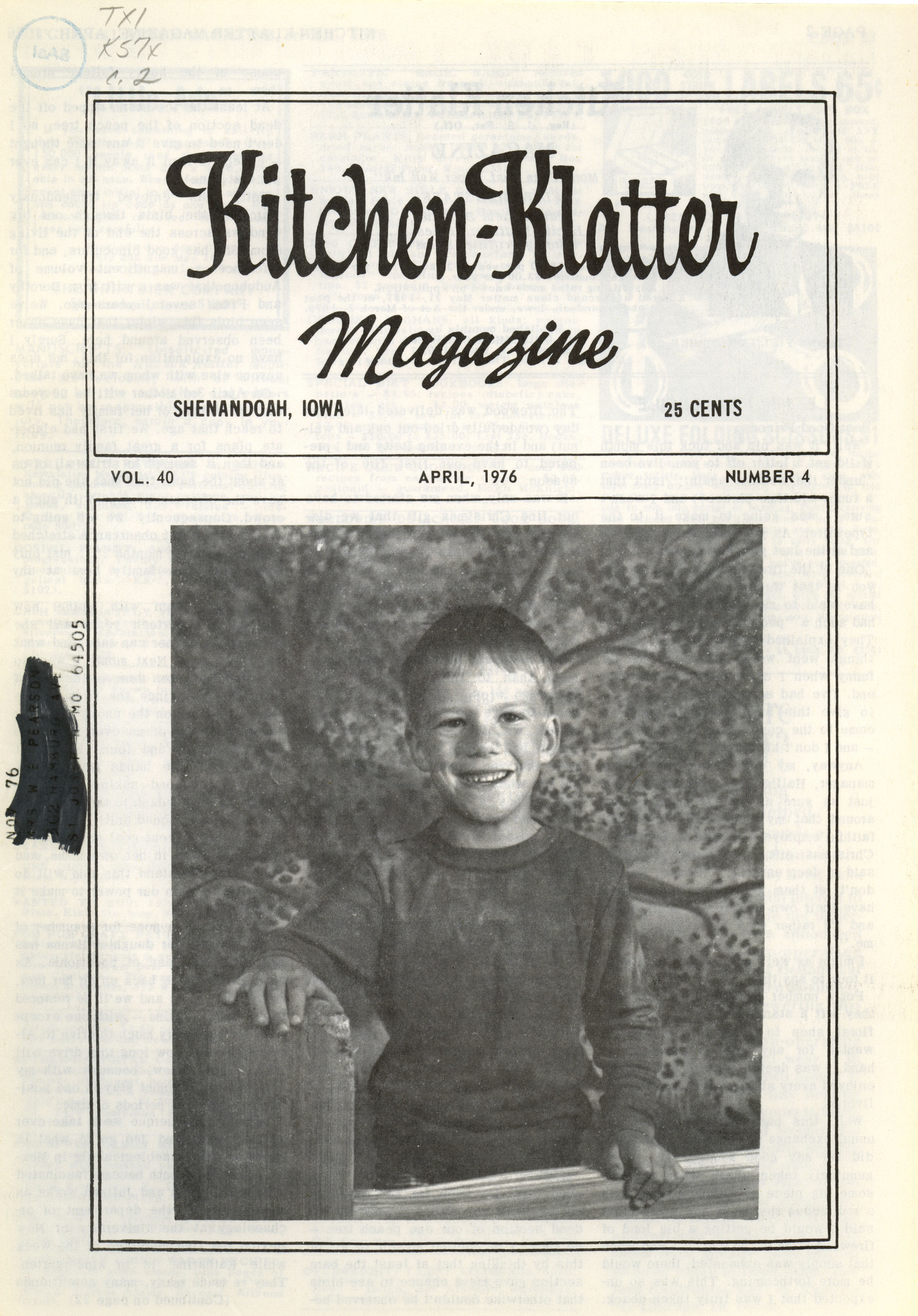 - "Kitchen-Klatter v. 40, n. 04, 1976", Kitchen-Klatter Magazine Issues, Iowa State University Library Digital Collections