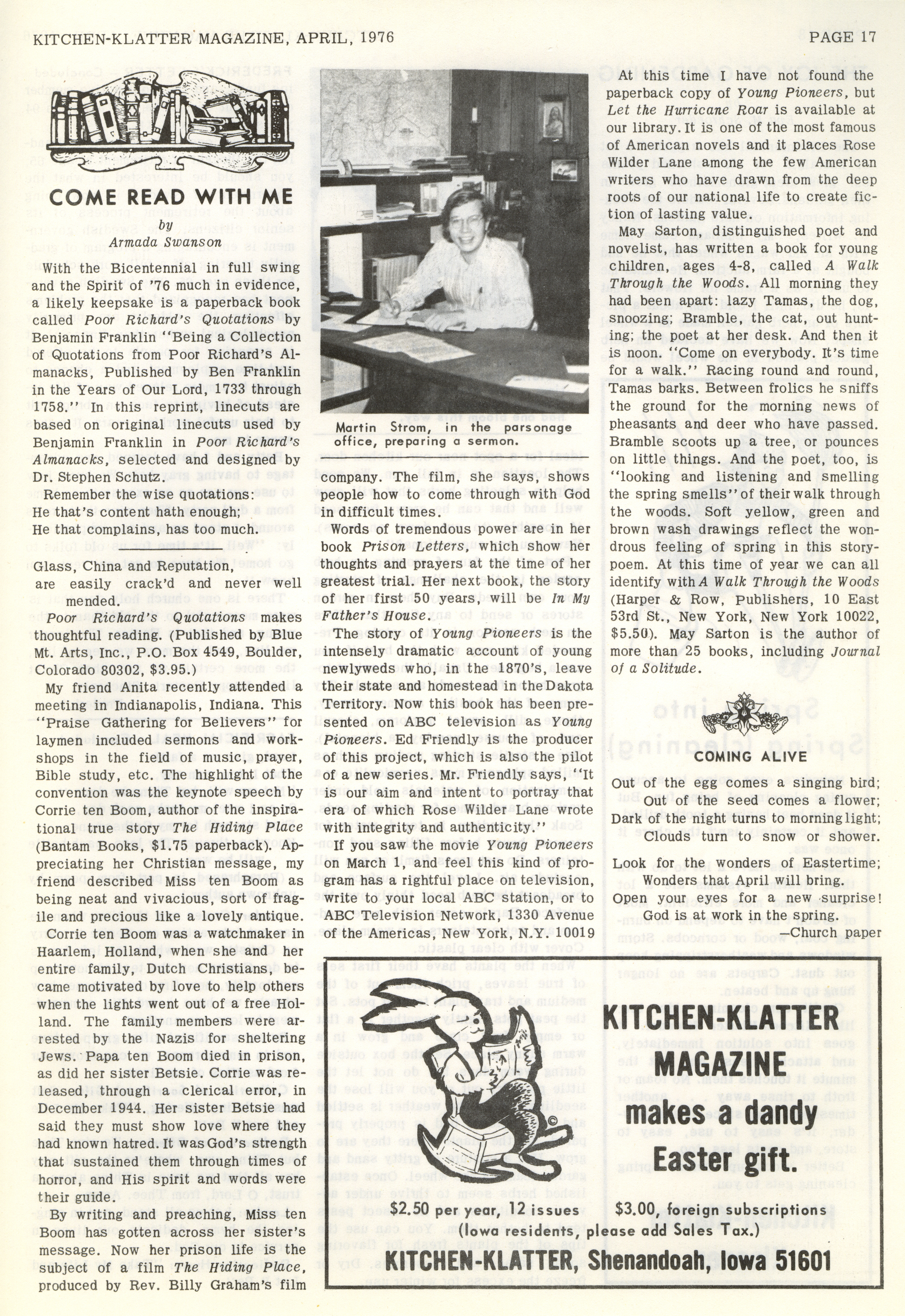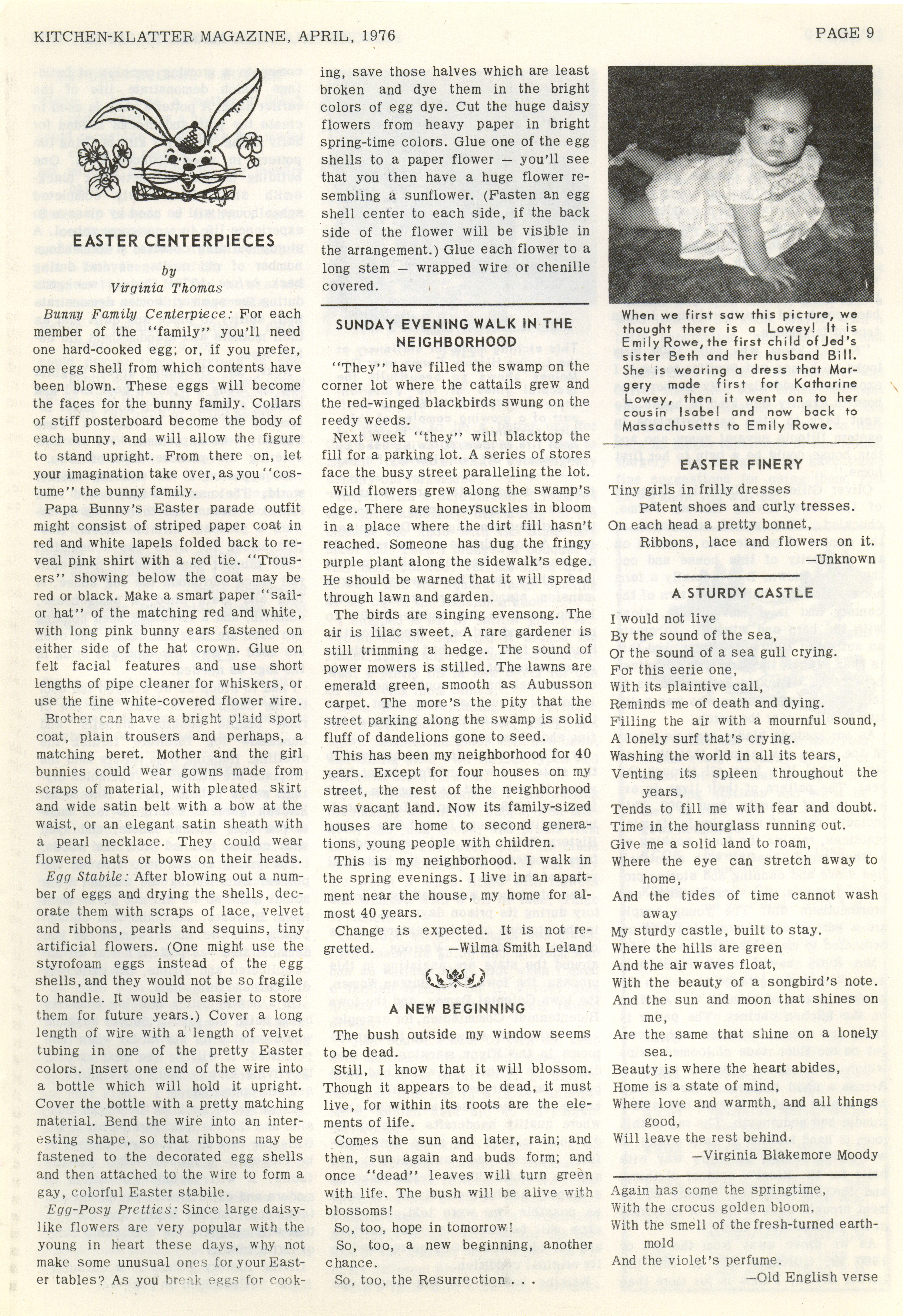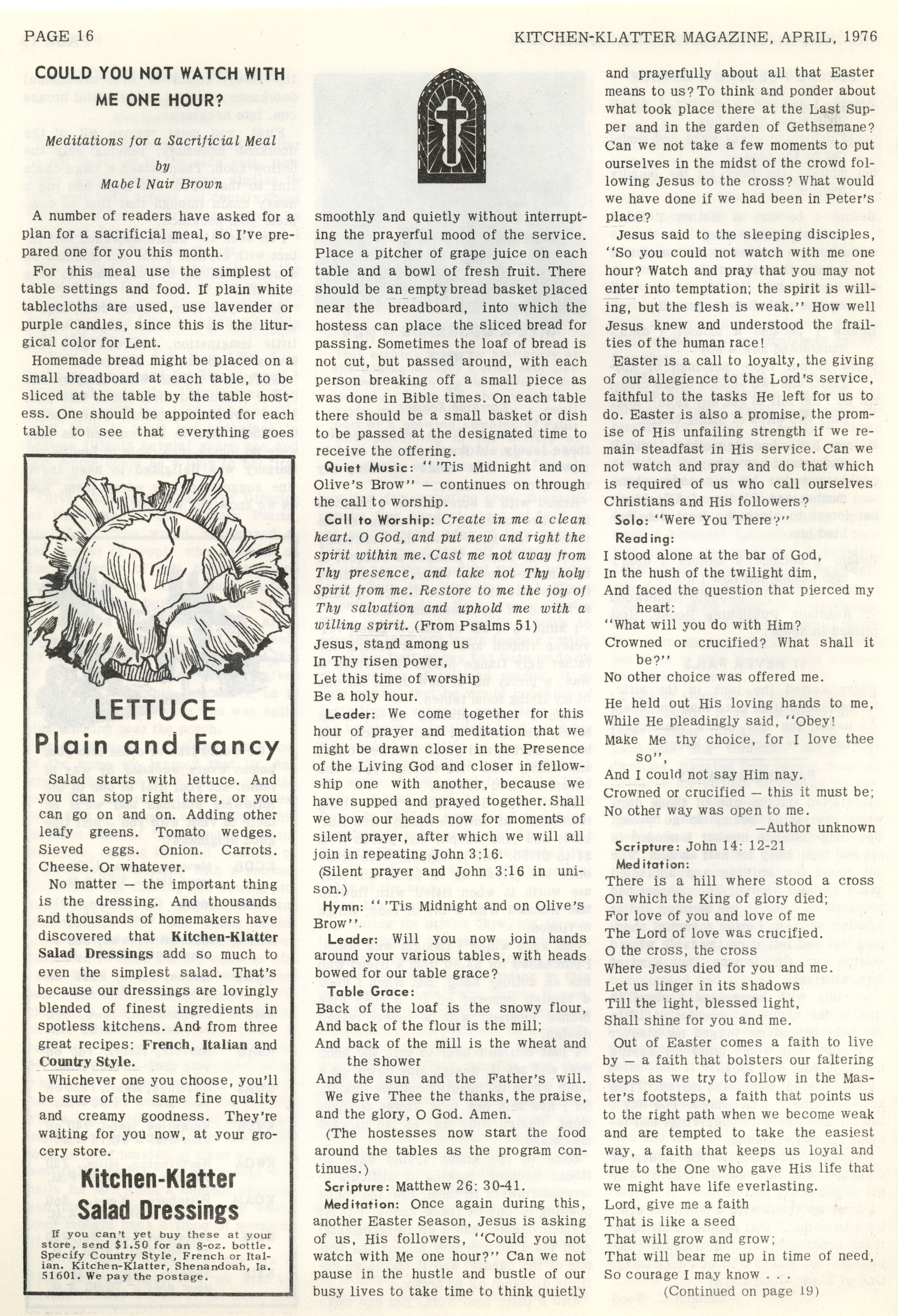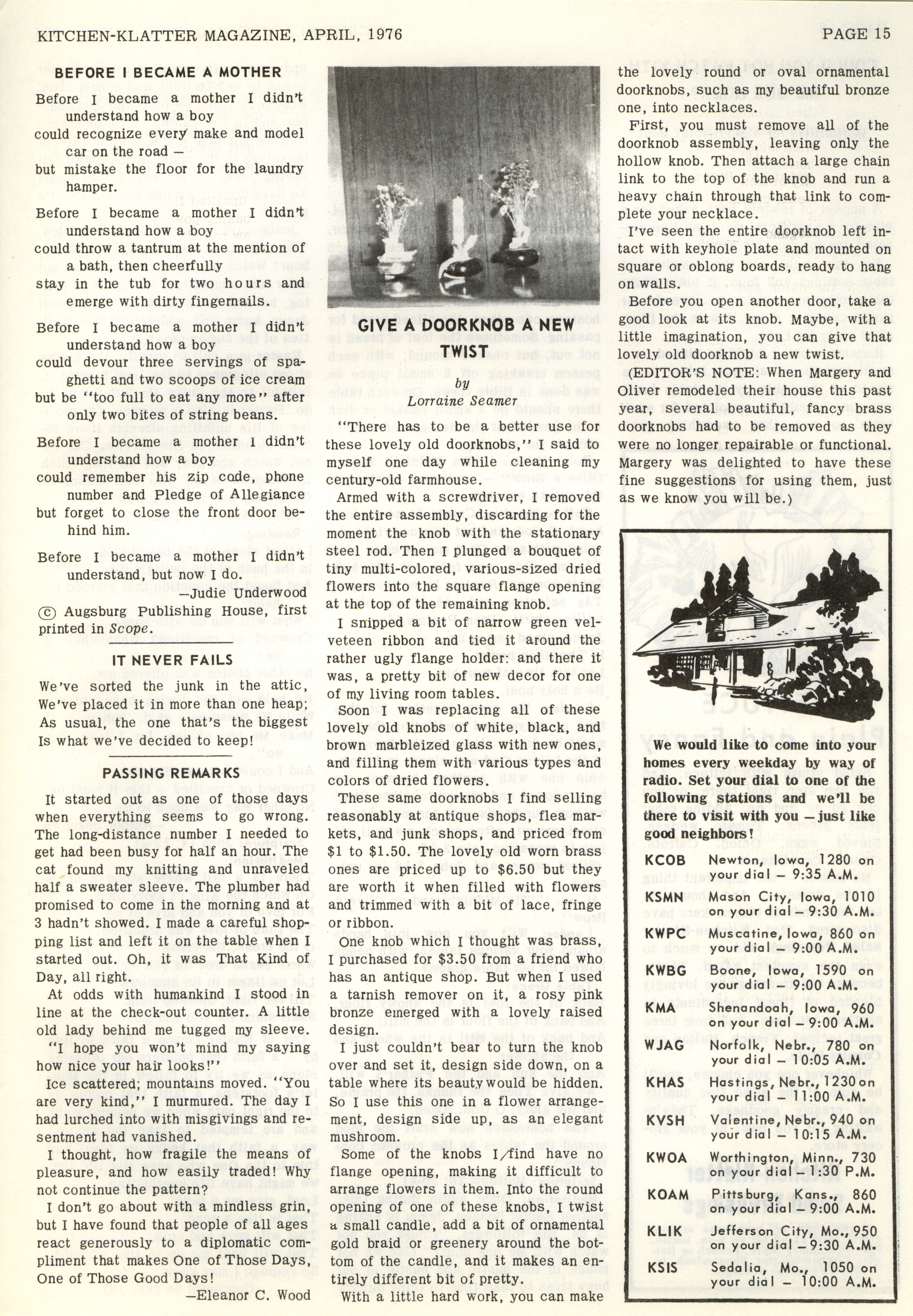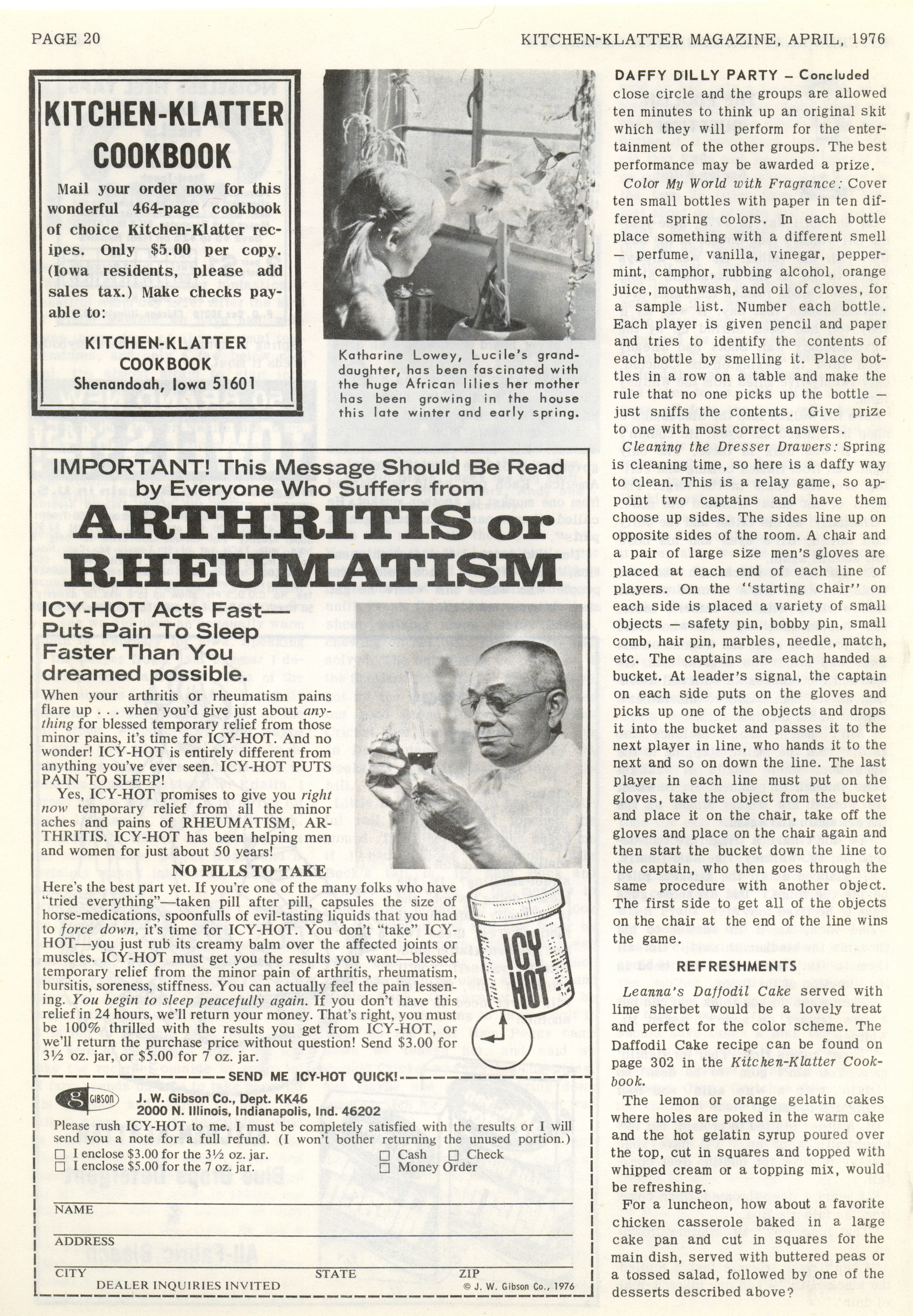 - "Kitchen-Klatter v. 40, n. 04, 1976", Kitchen-Klatter Magazine Issues, Iowa State University Library Digital Collections