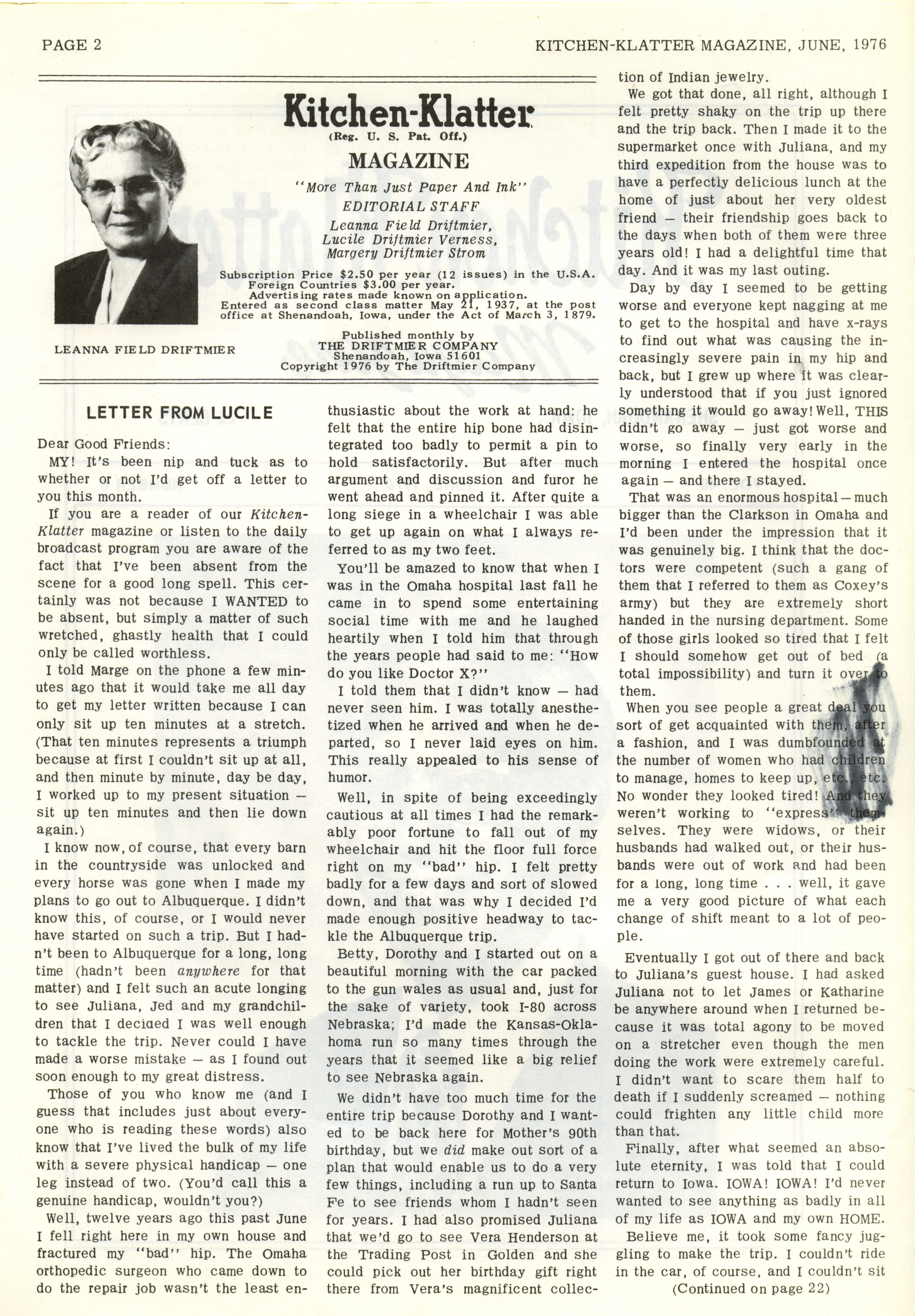 - "Kitchen-Klatter v. 40, n. 06, 1976", Kitchen-Klatter Magazine Issues, Iowa State University Library Digital Collections