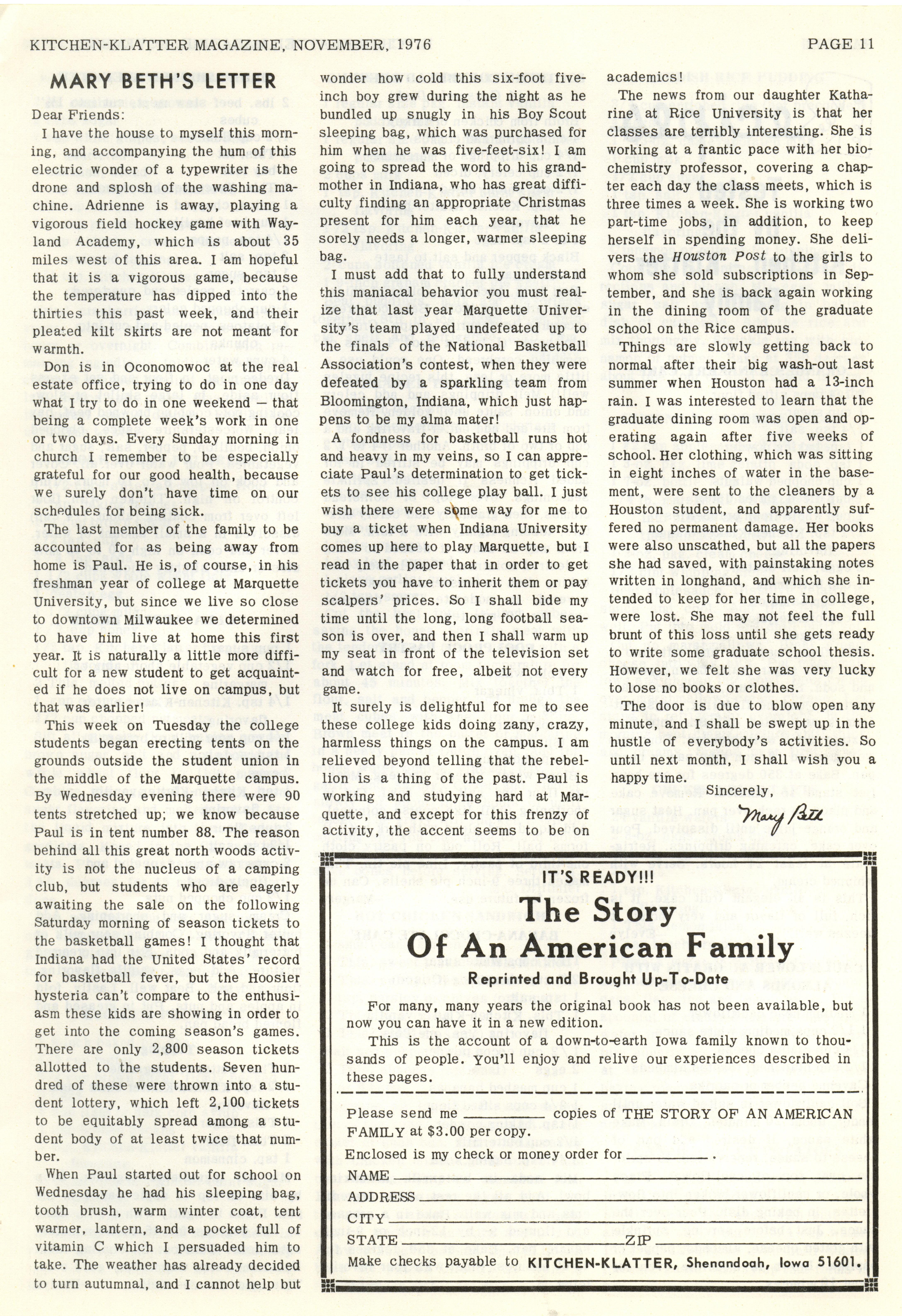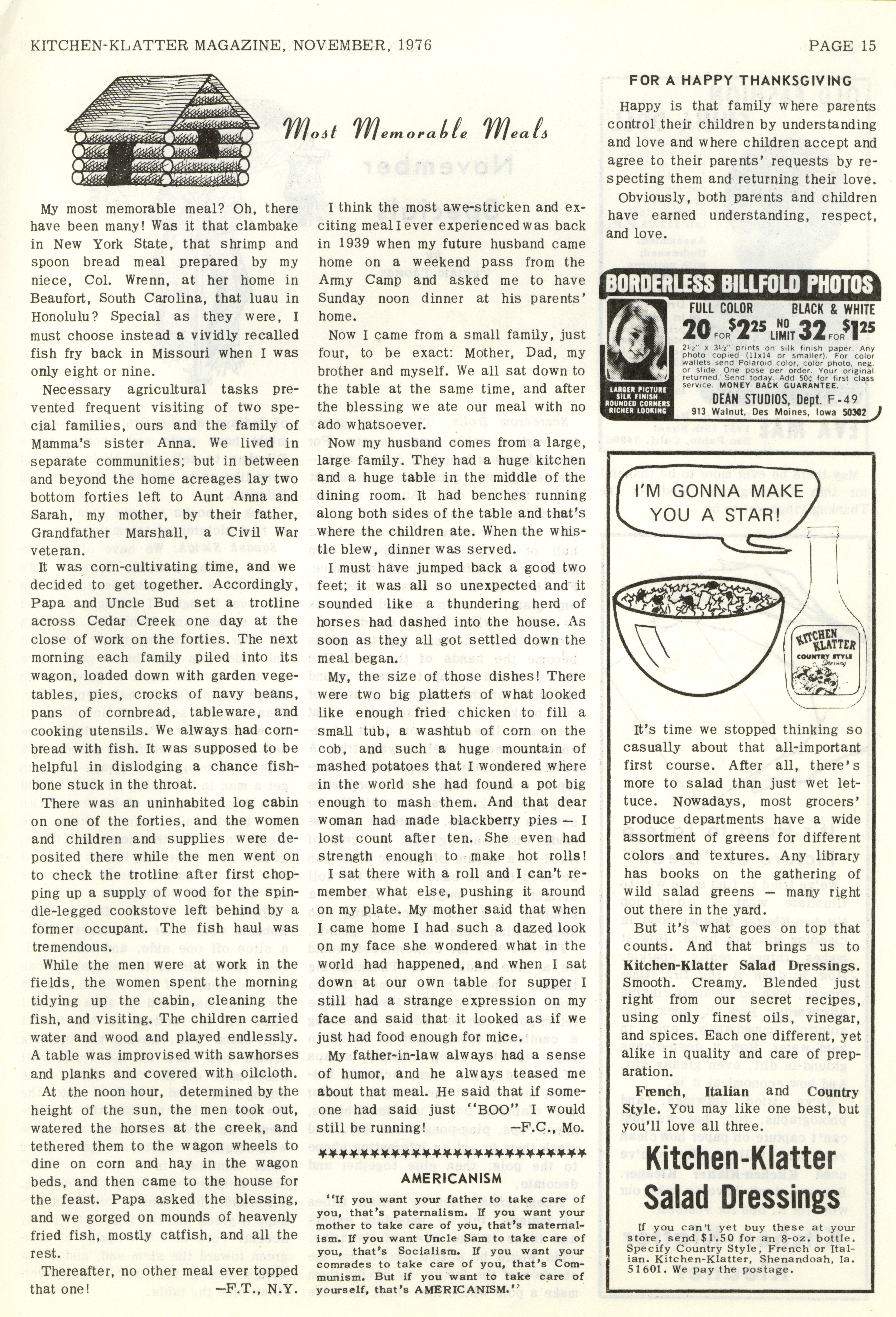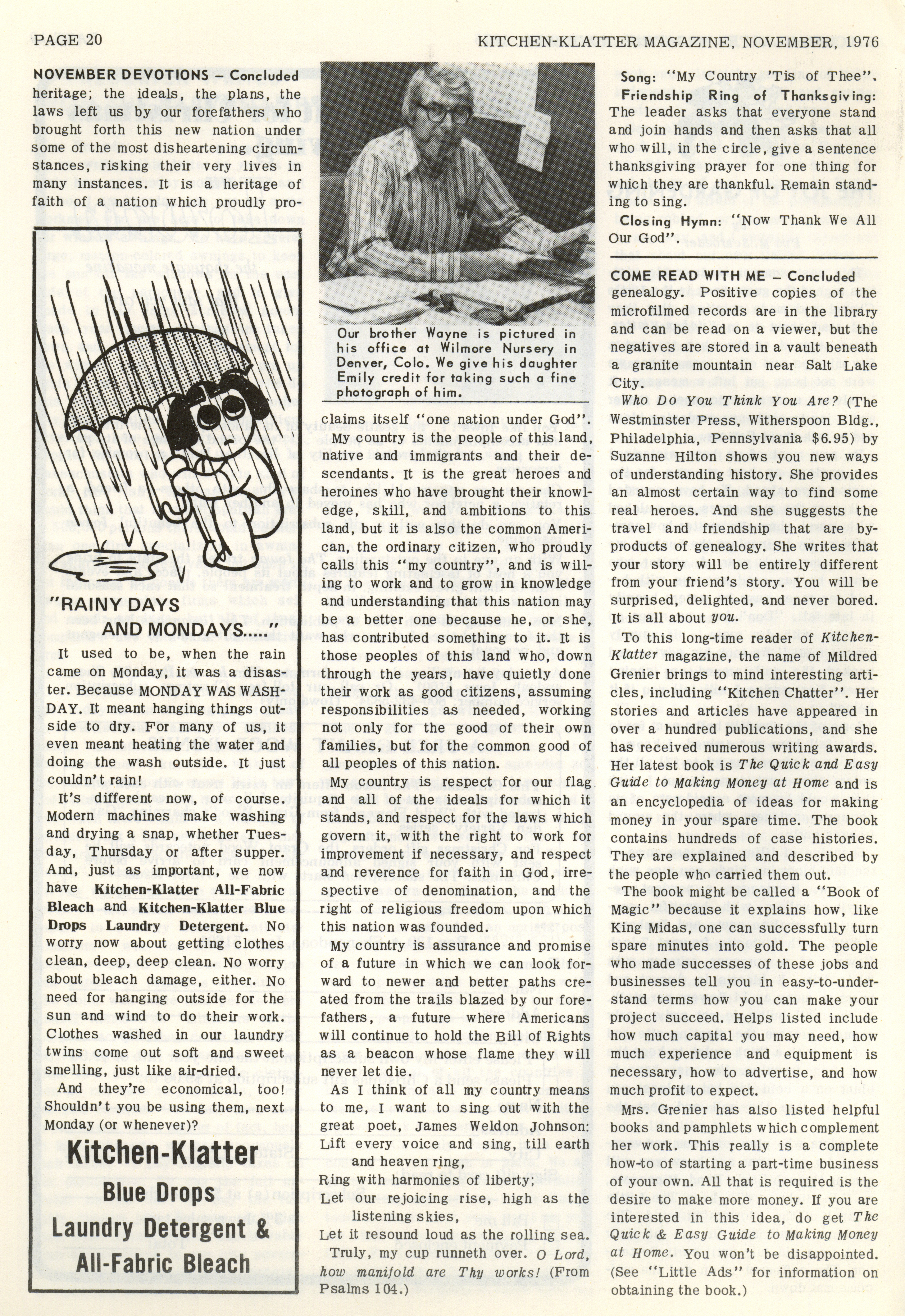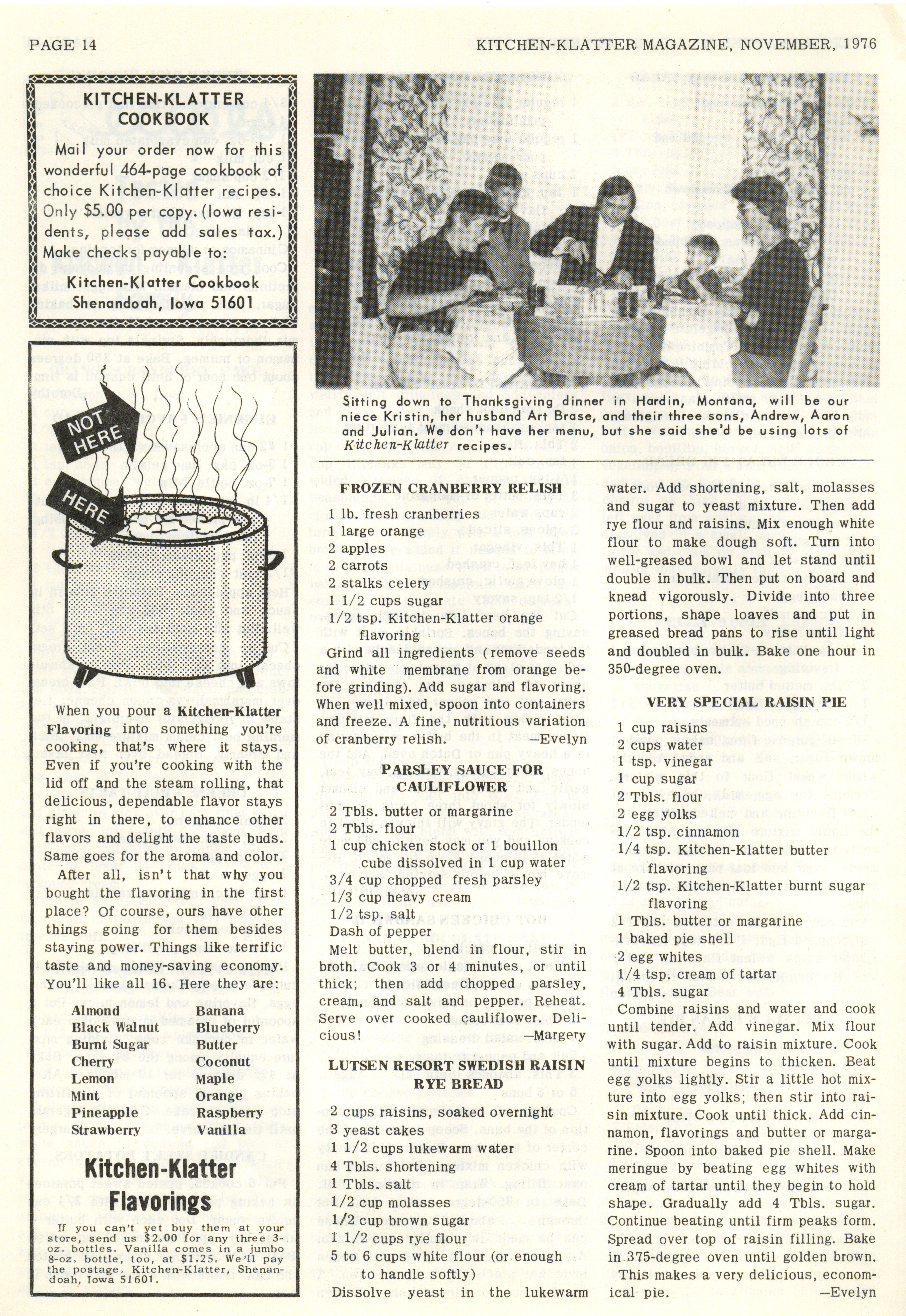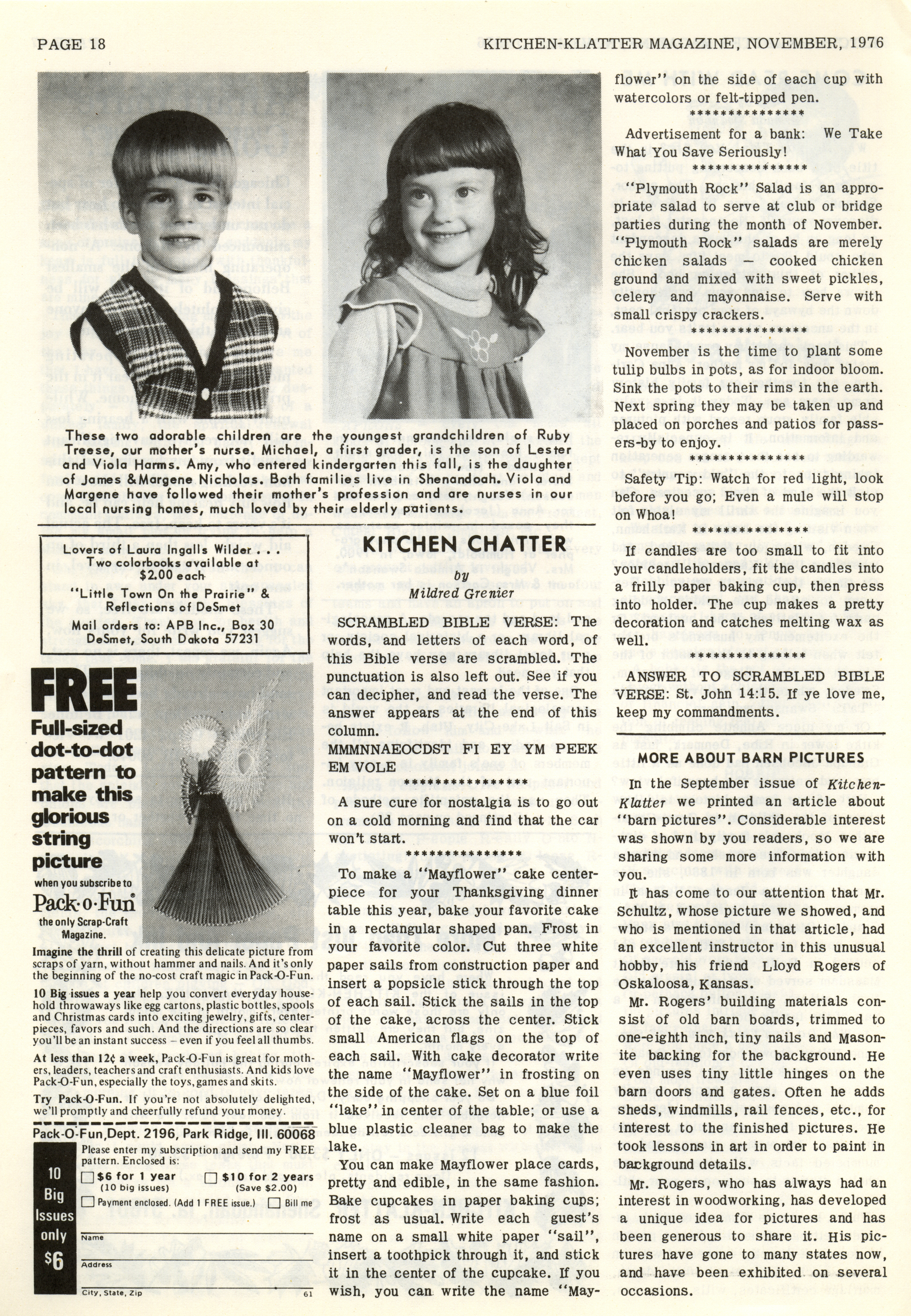 - "Kitchen-Klatter v. 40, n. 11, 1976", Kitchen-Klatter Magazine Issues, Iowa State University Library Digital Collections