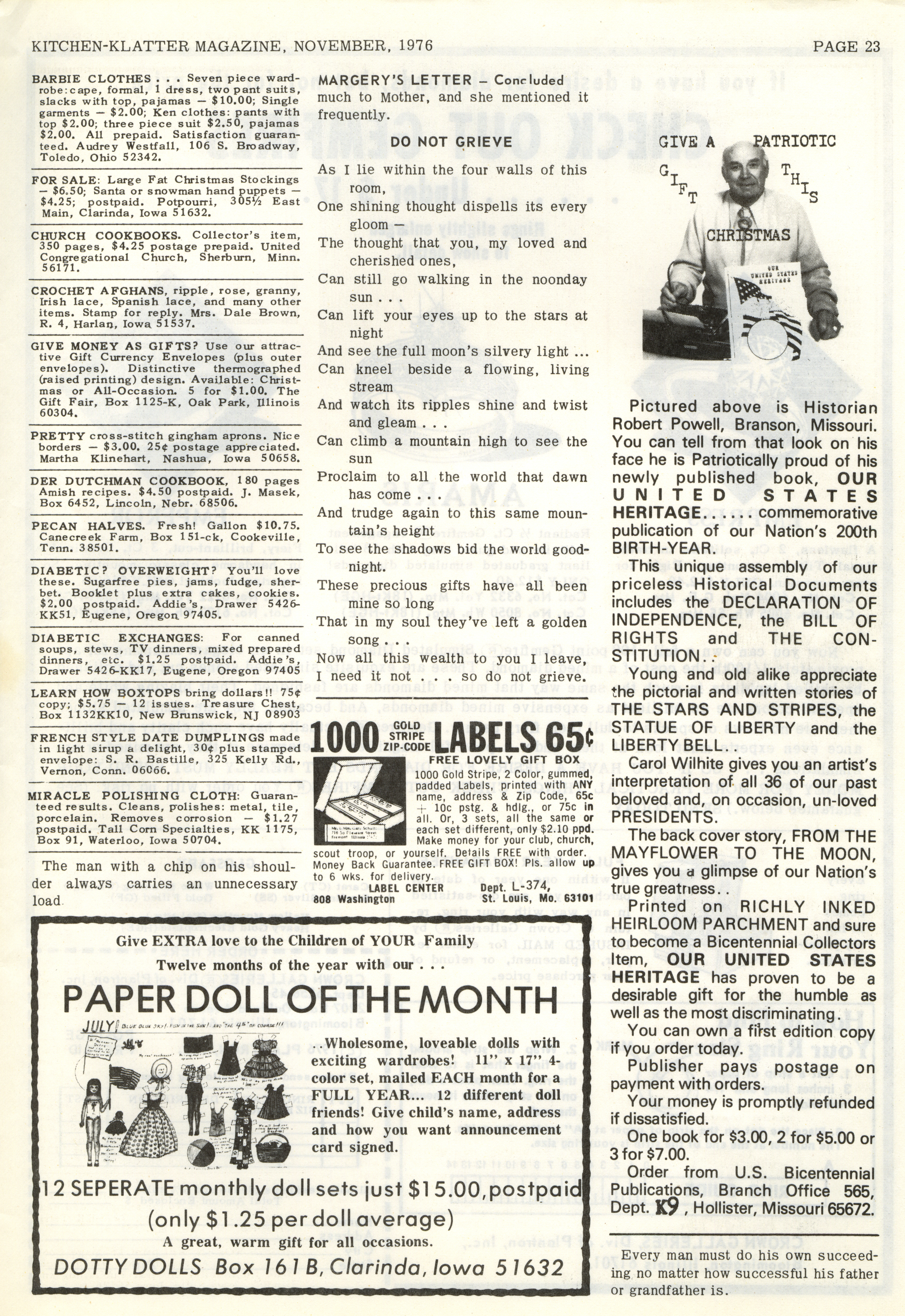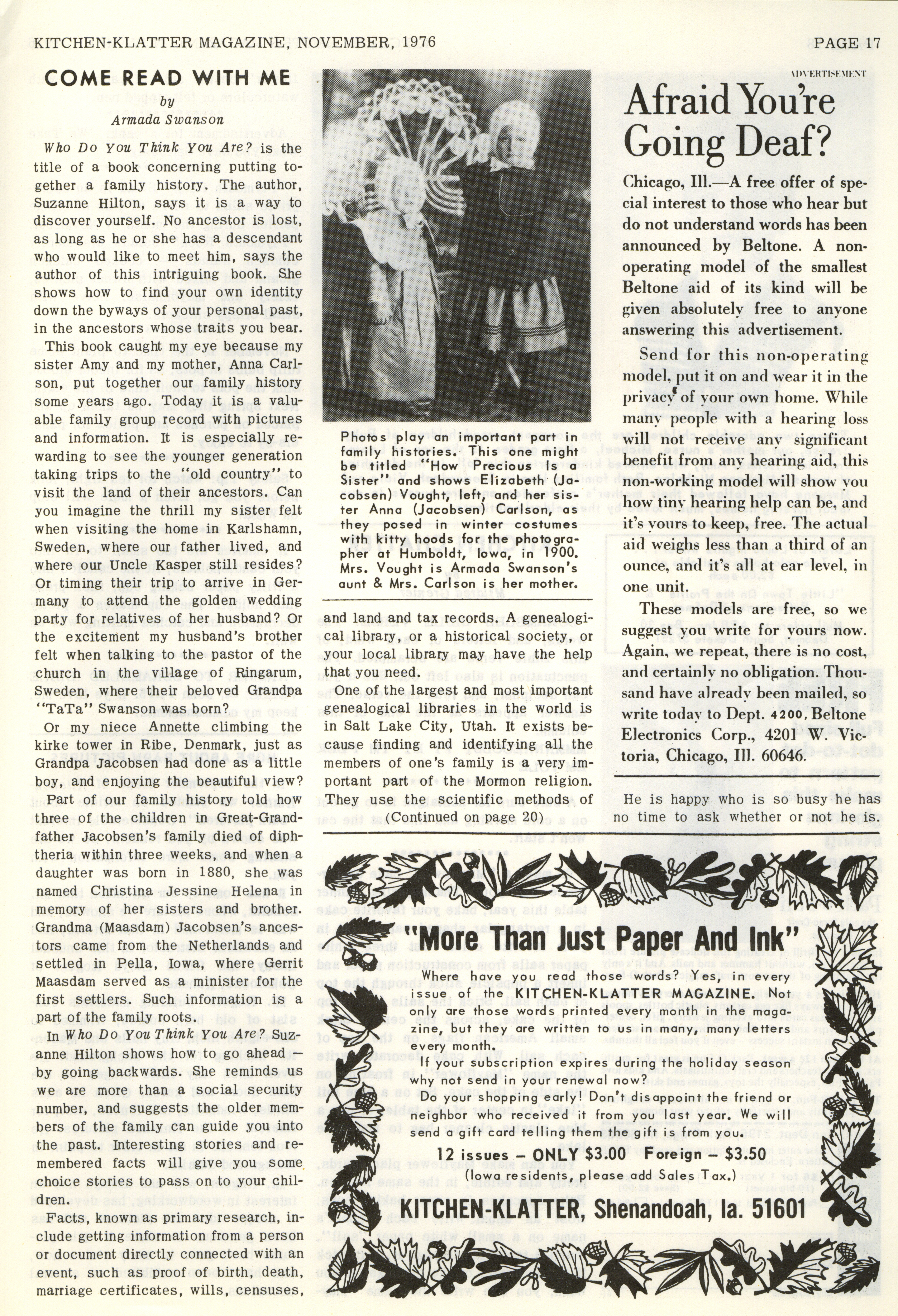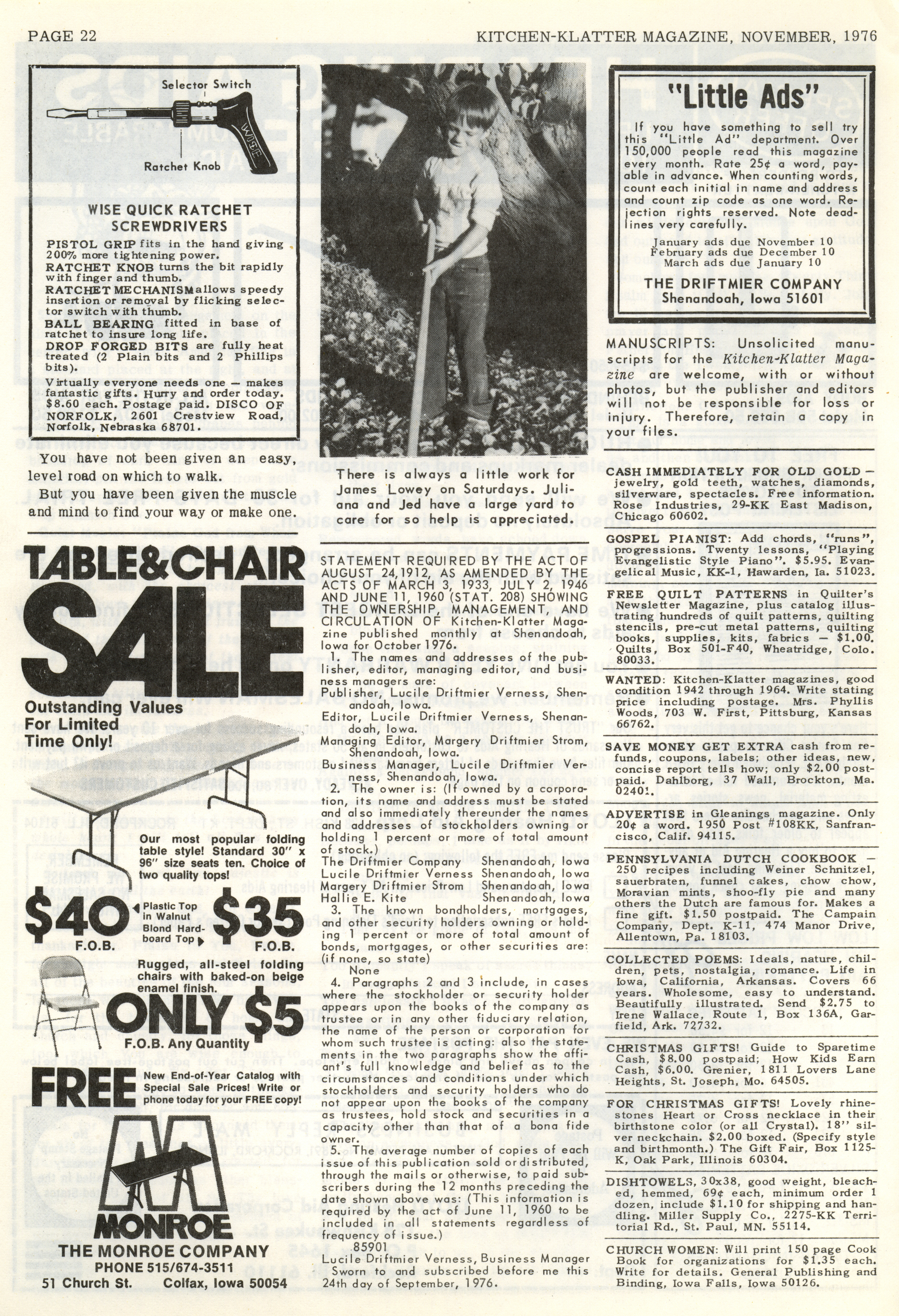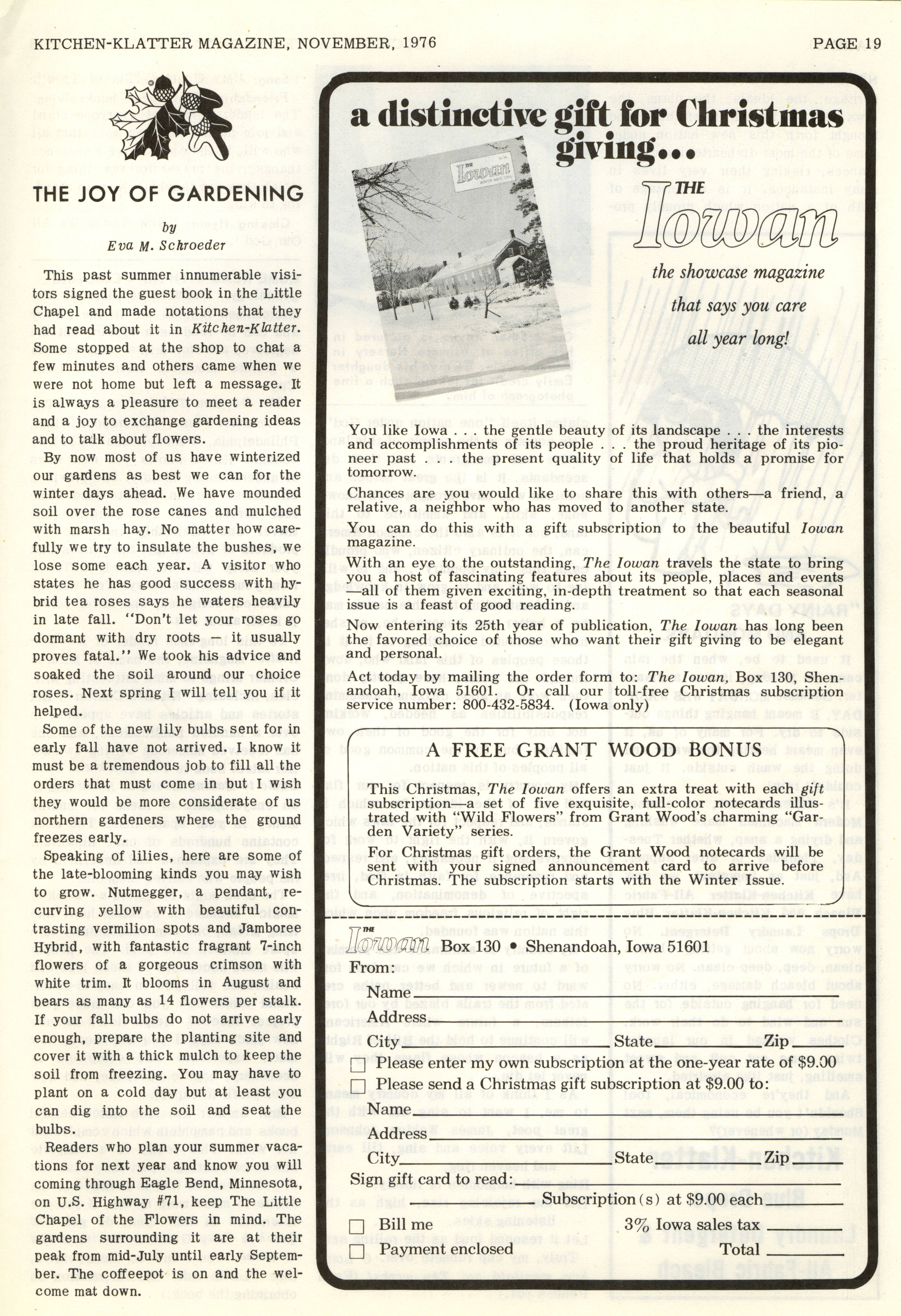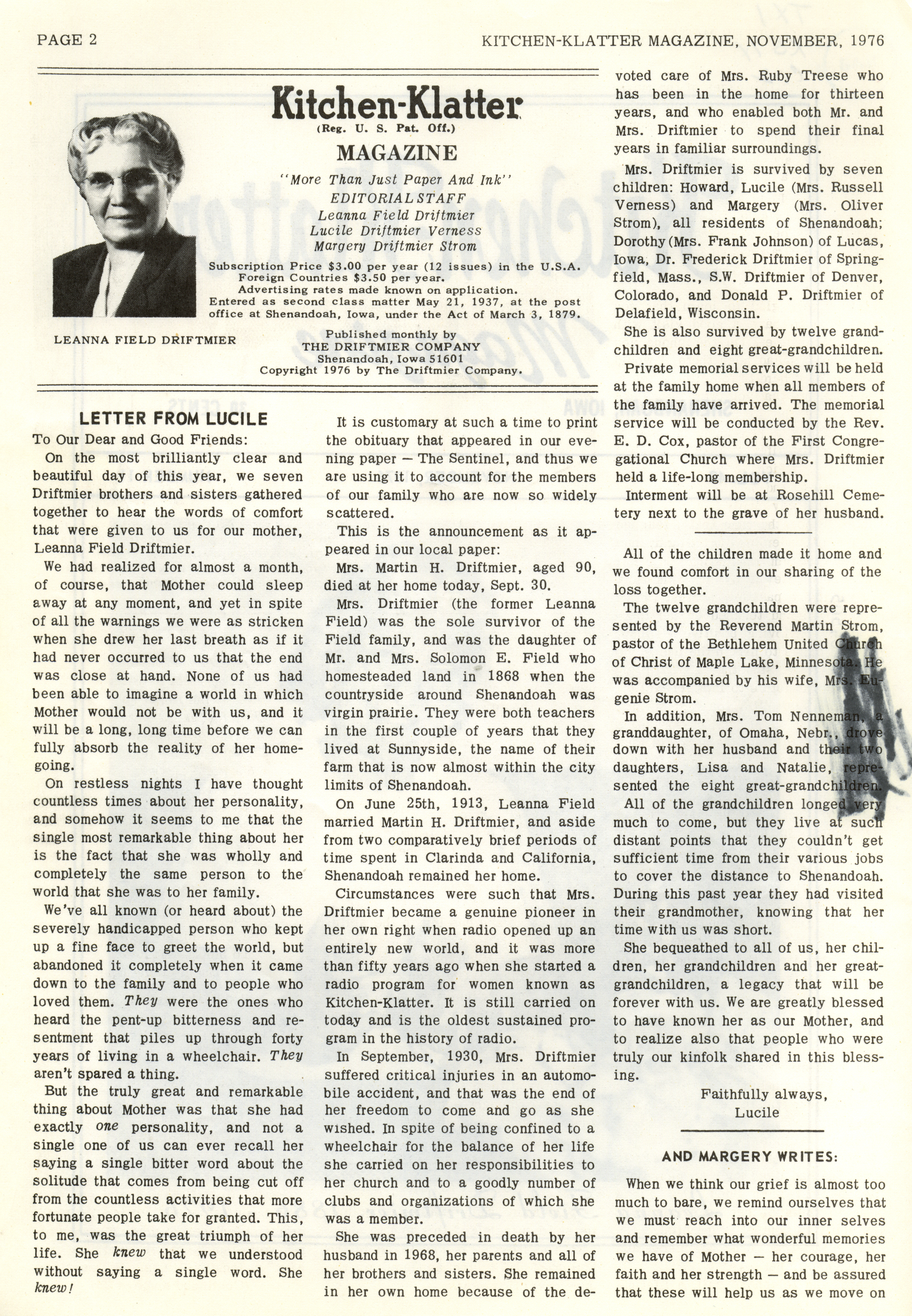 - "Kitchen-Klatter v. 40, n. 11, 1976", Kitchen-Klatter Magazine Issues, Iowa State University Library Digital Collections