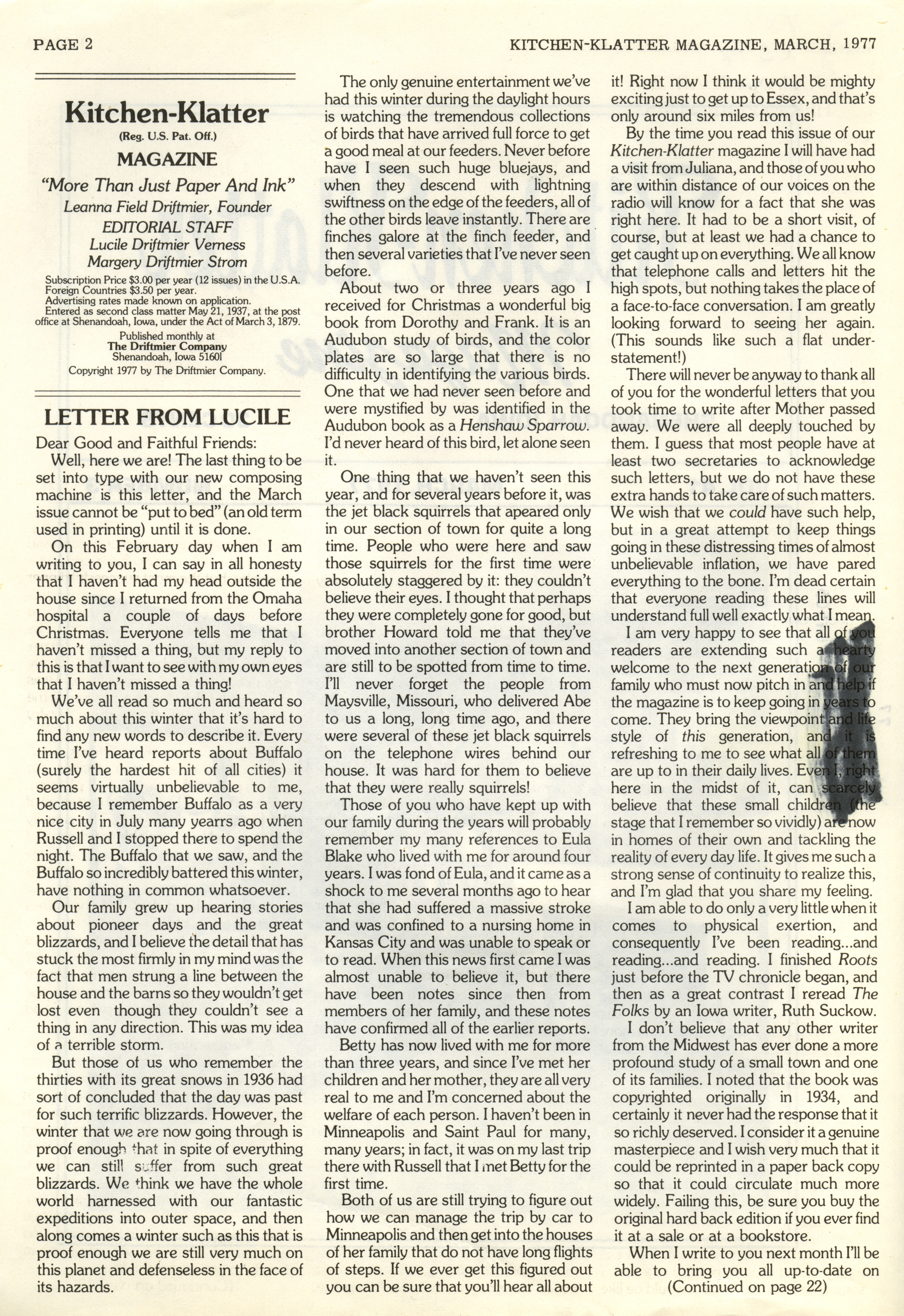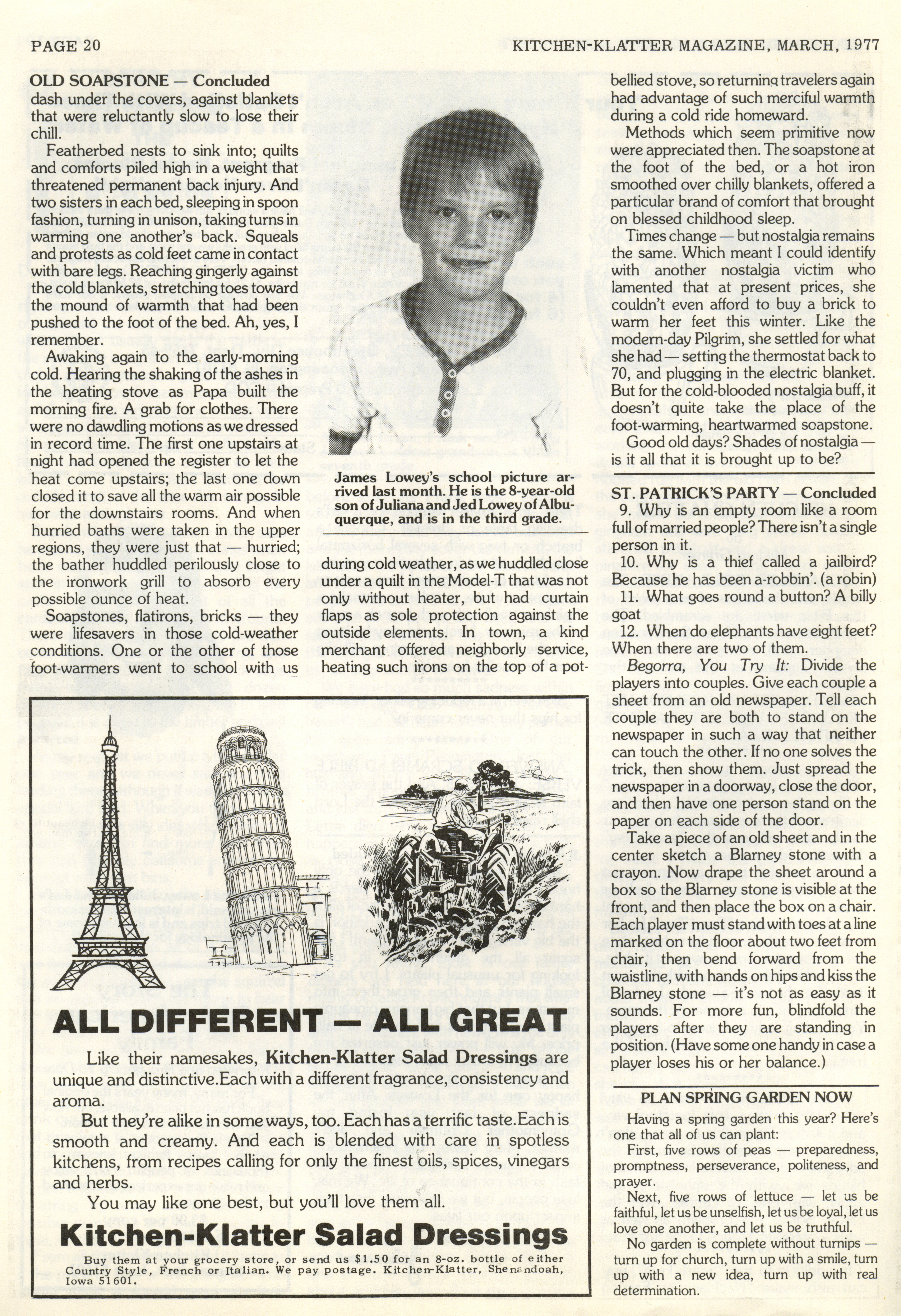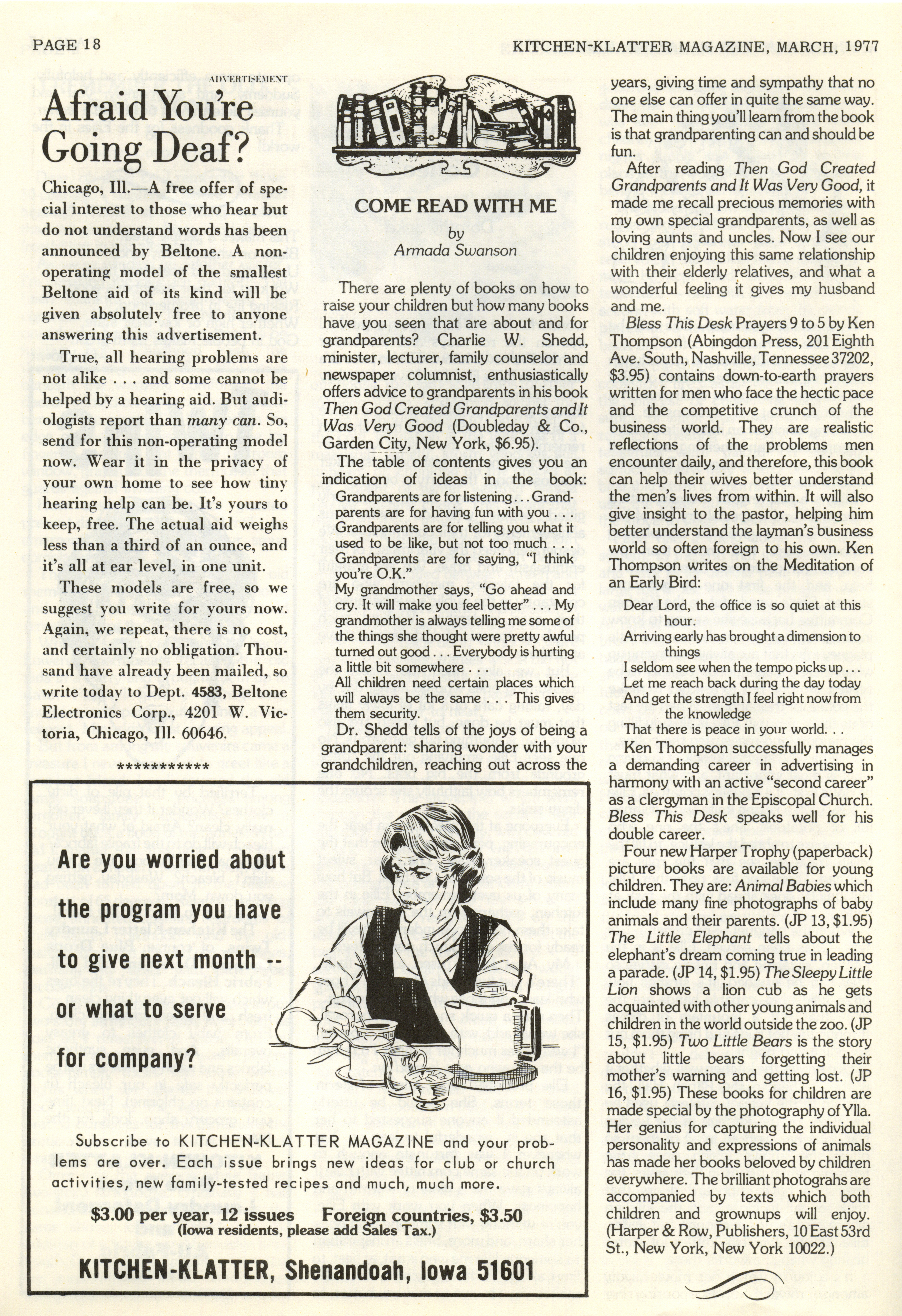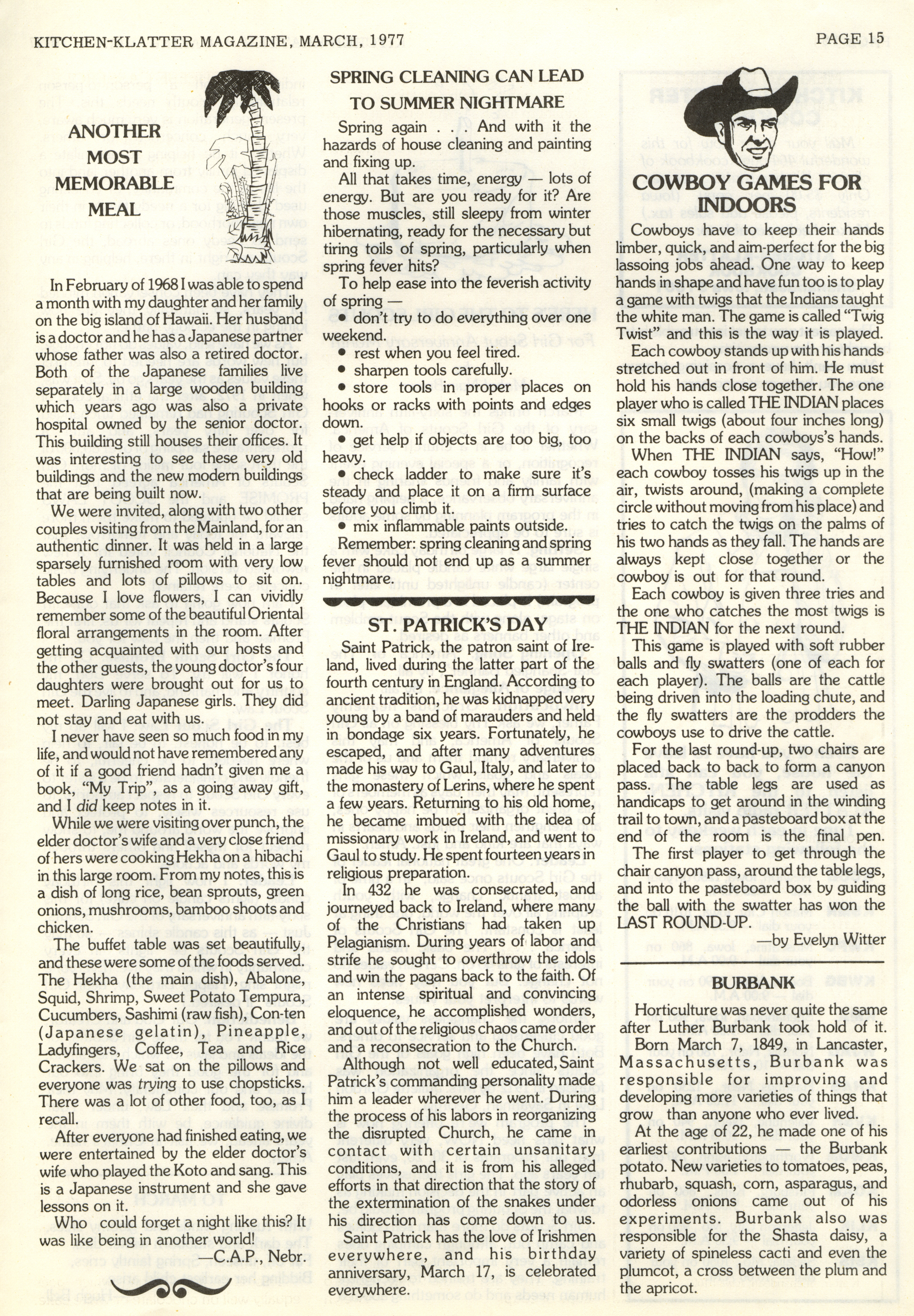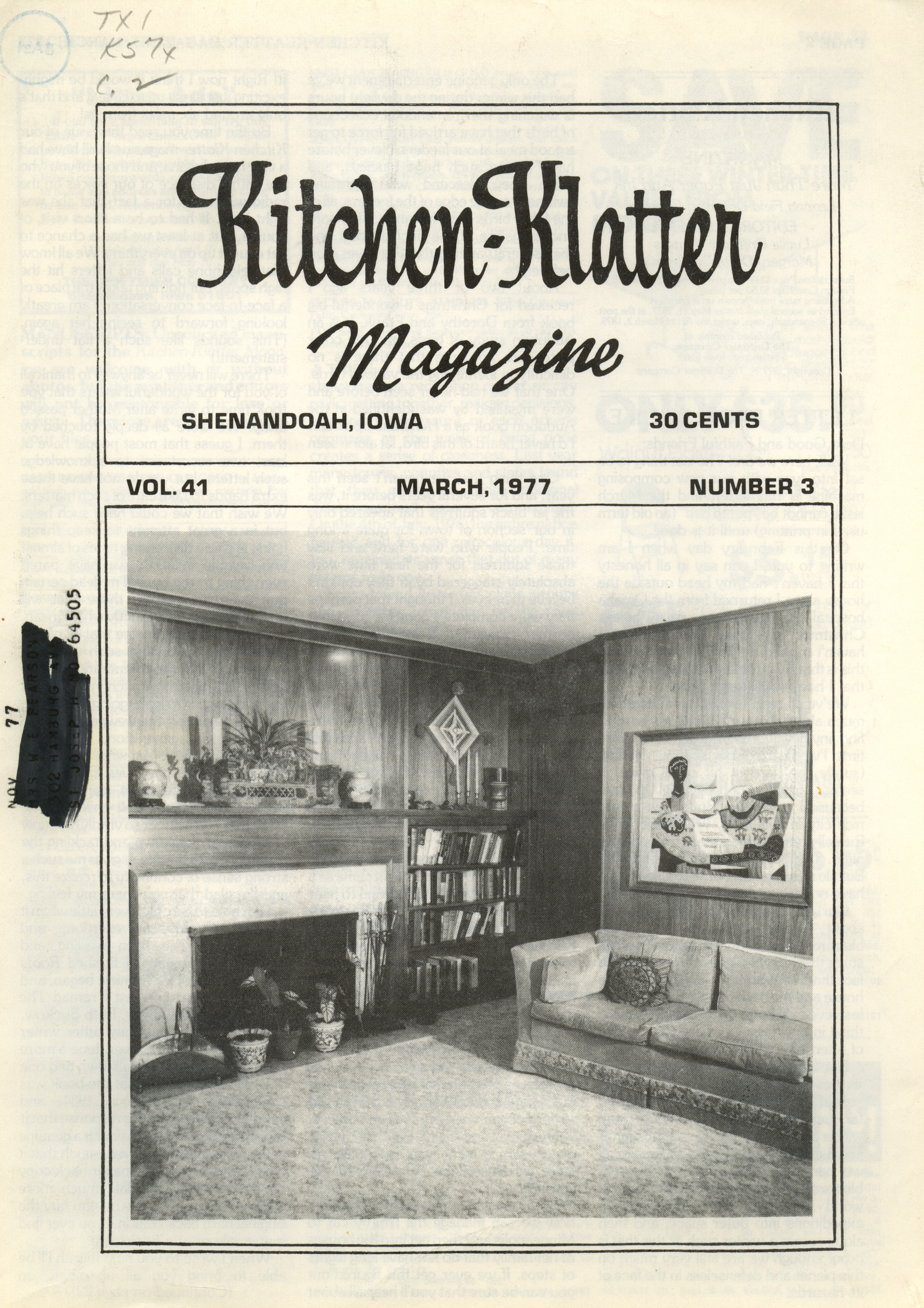 - "Kitchen-Klatter v. 41, n. 03, 1977", Kitchen-Klatter Magazine Issues, Iowa State University Library Digital Collections