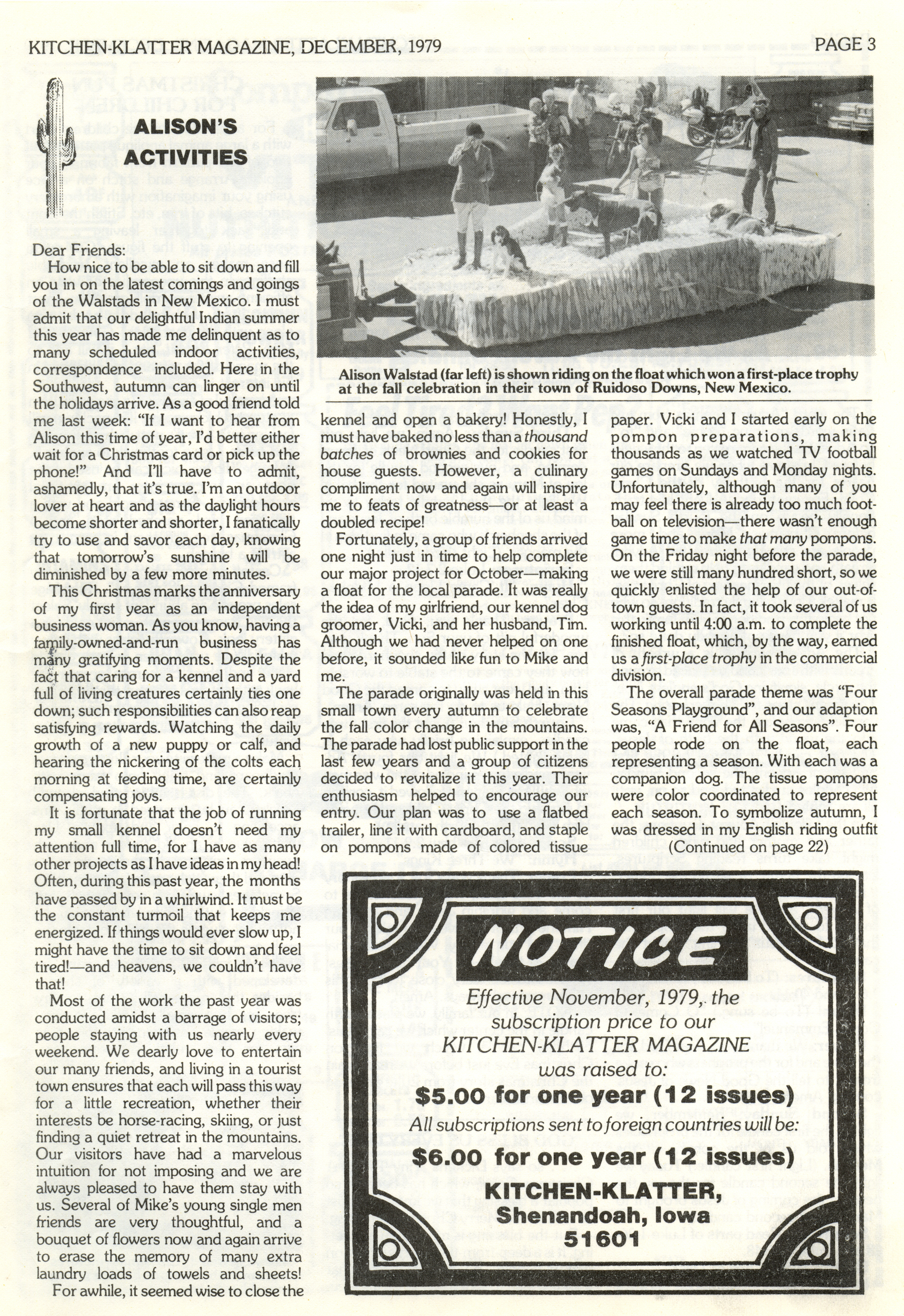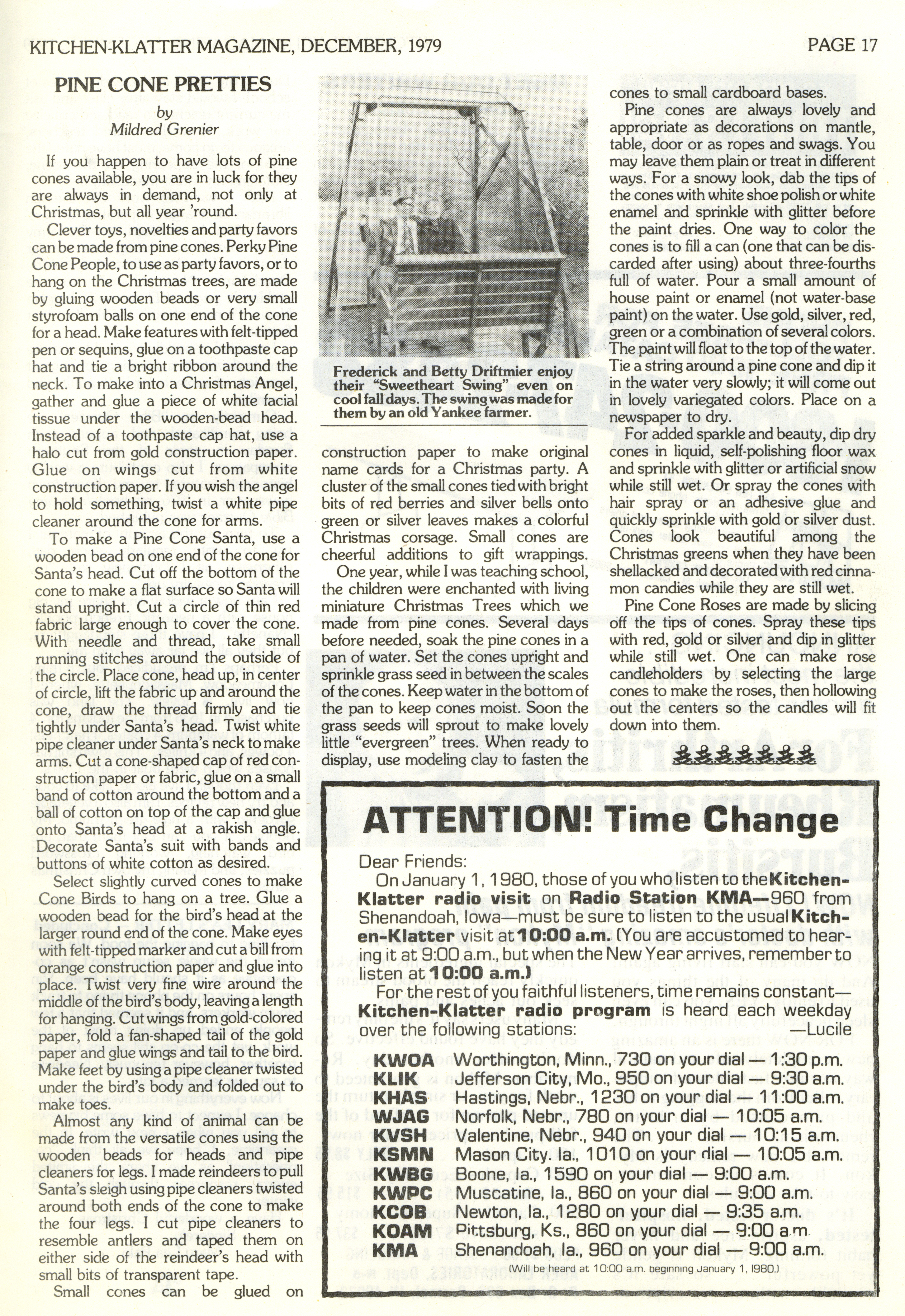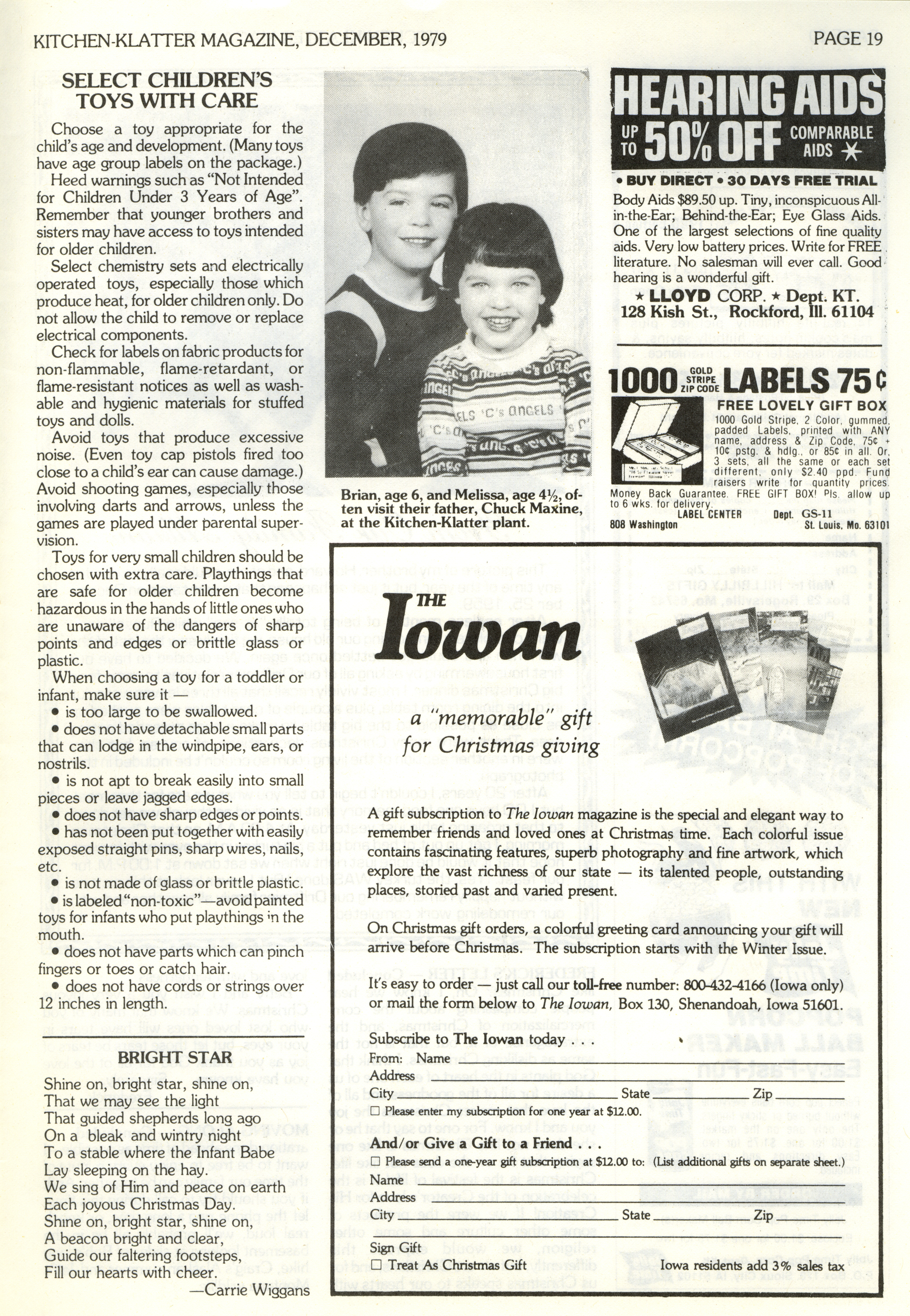 - "Kitchen-Klatter v. 43, n. 12, 1979", Kitchen-Klatter Magazine Issues, Iowa State University Library Digital Collections