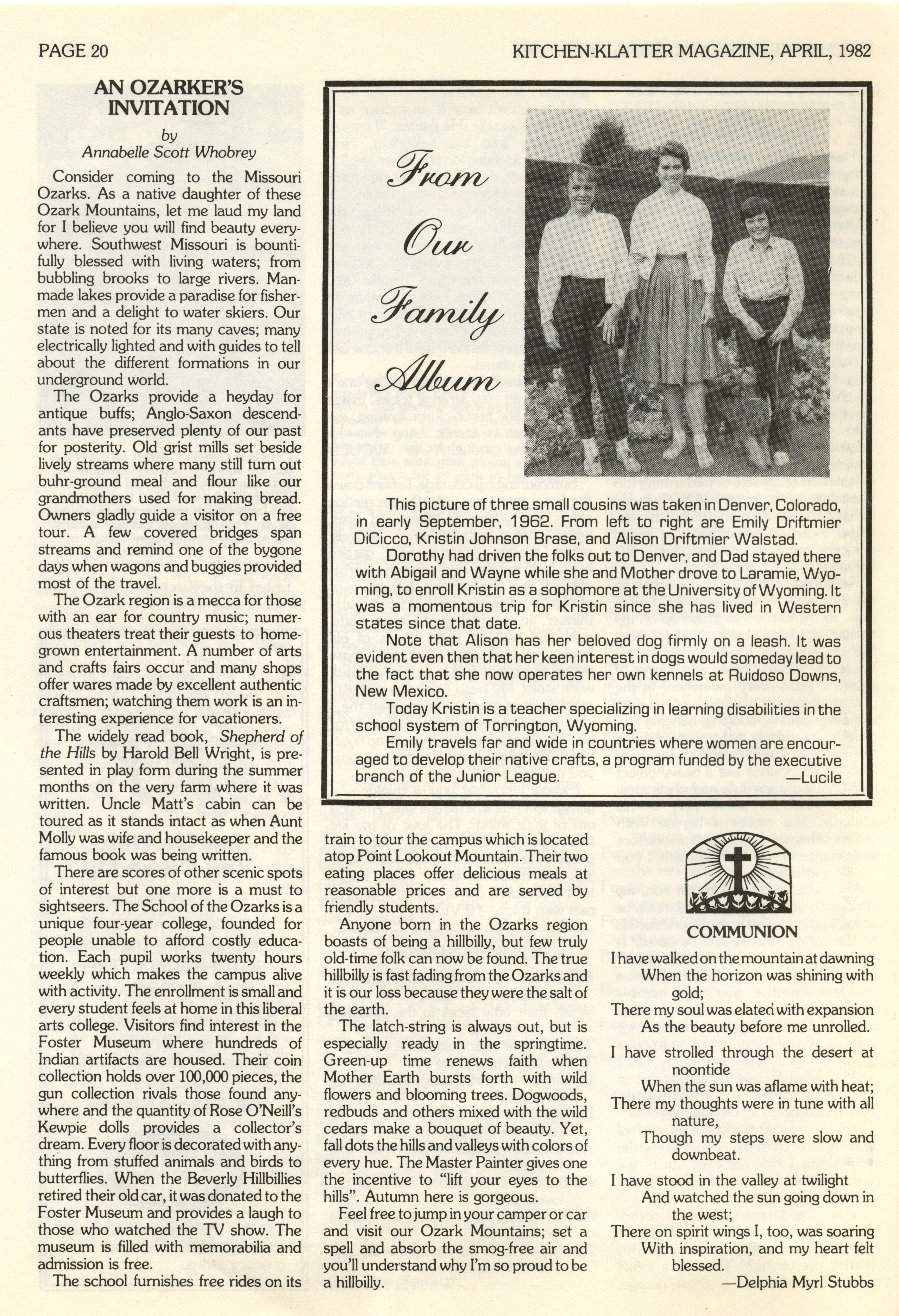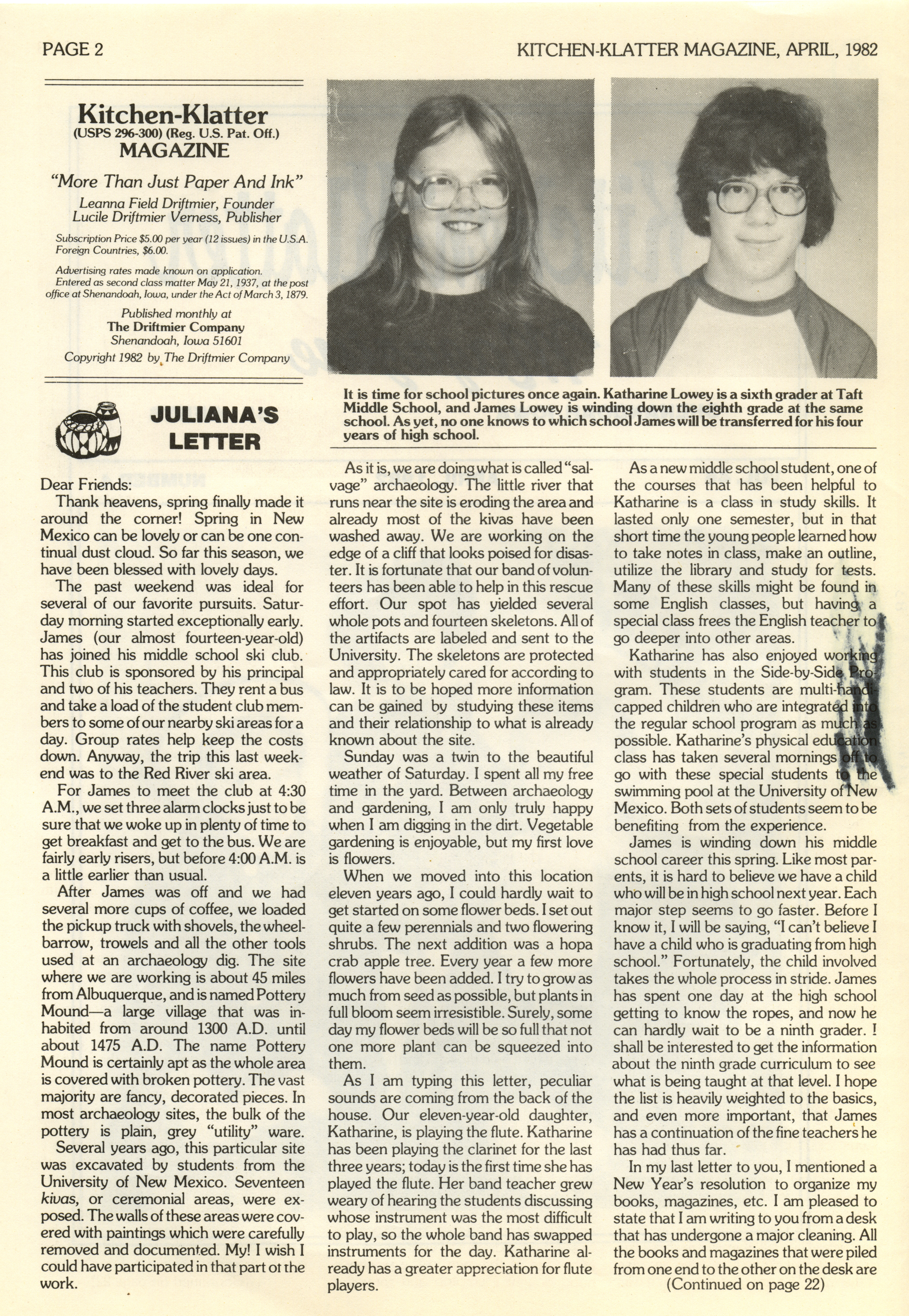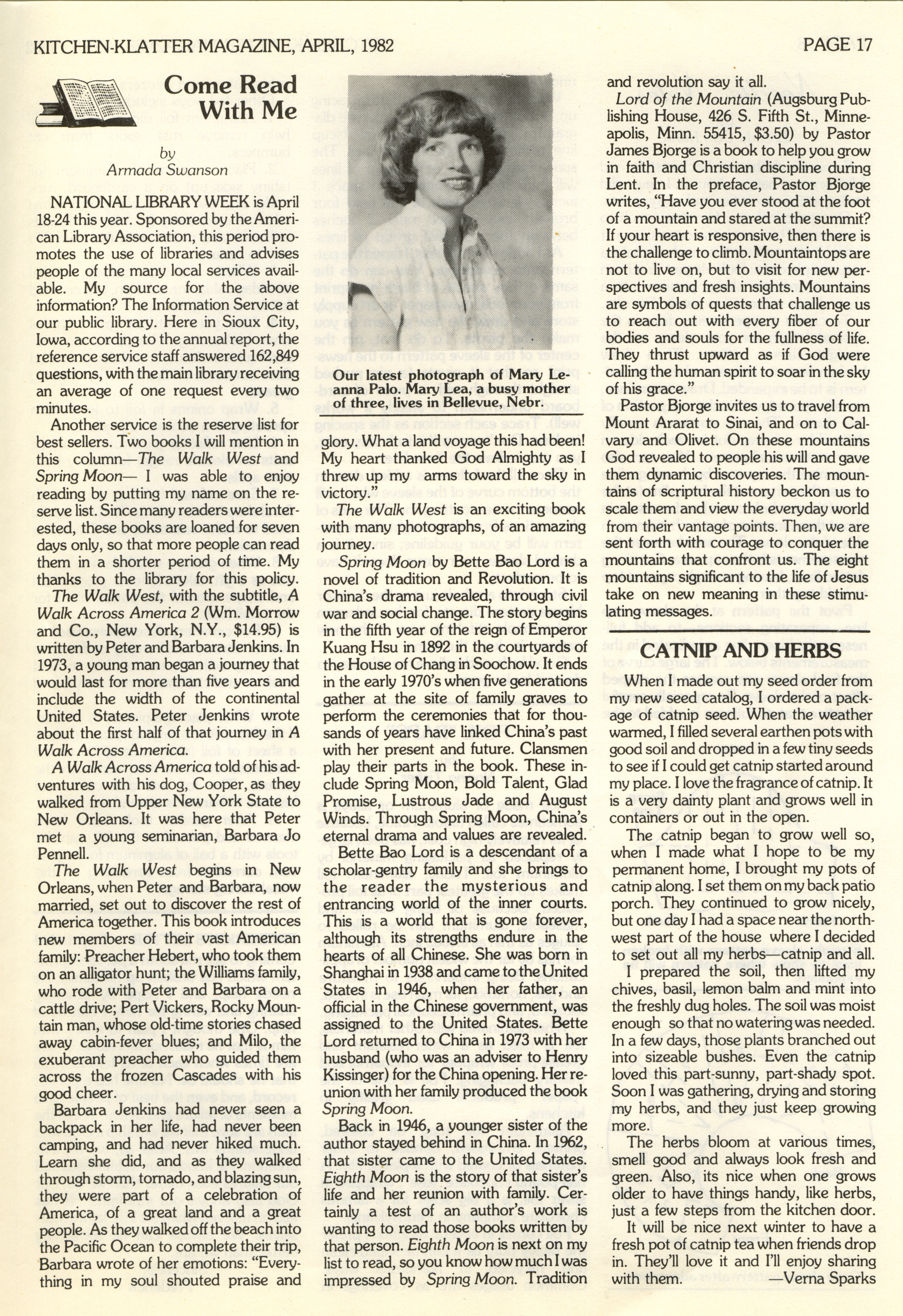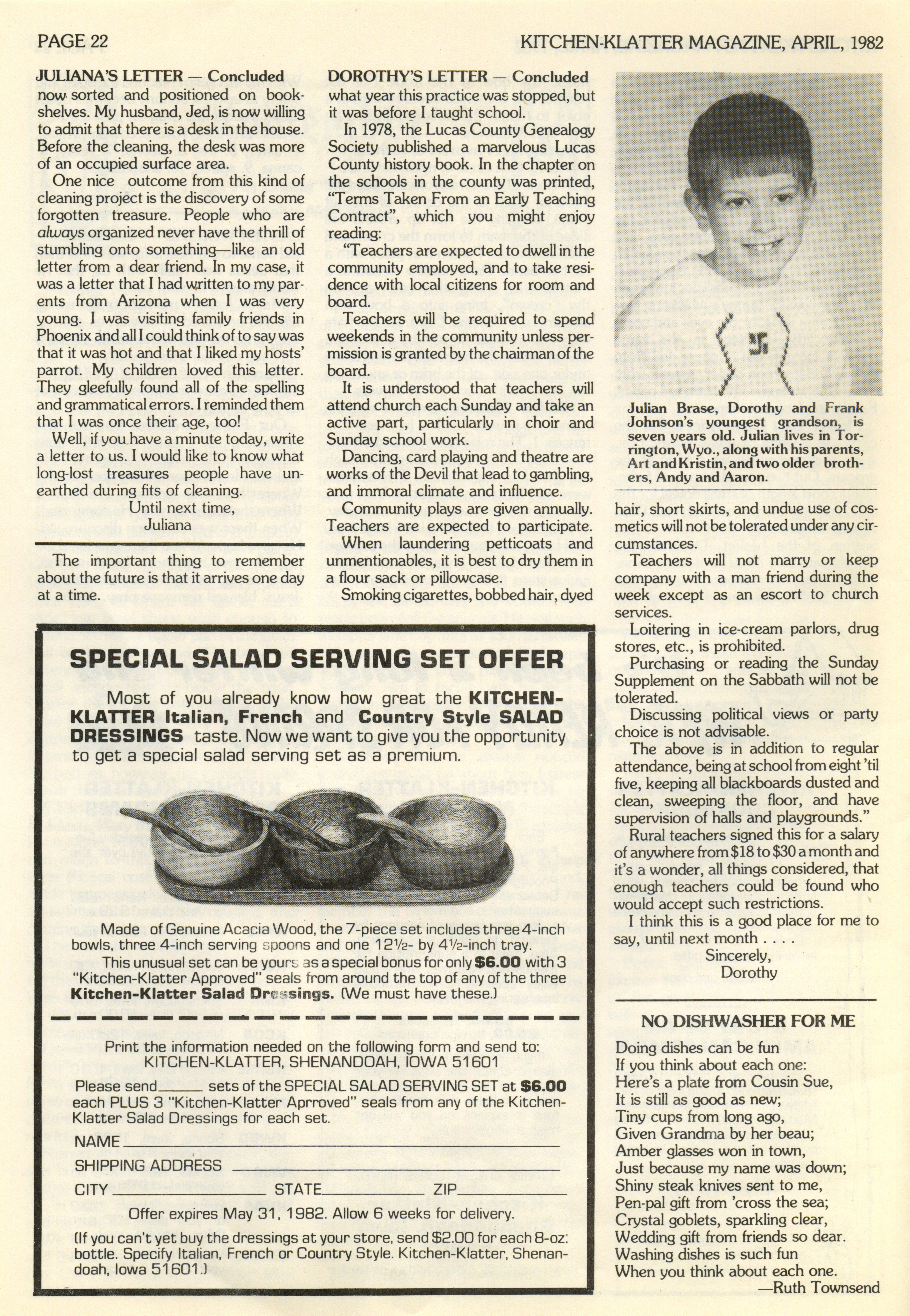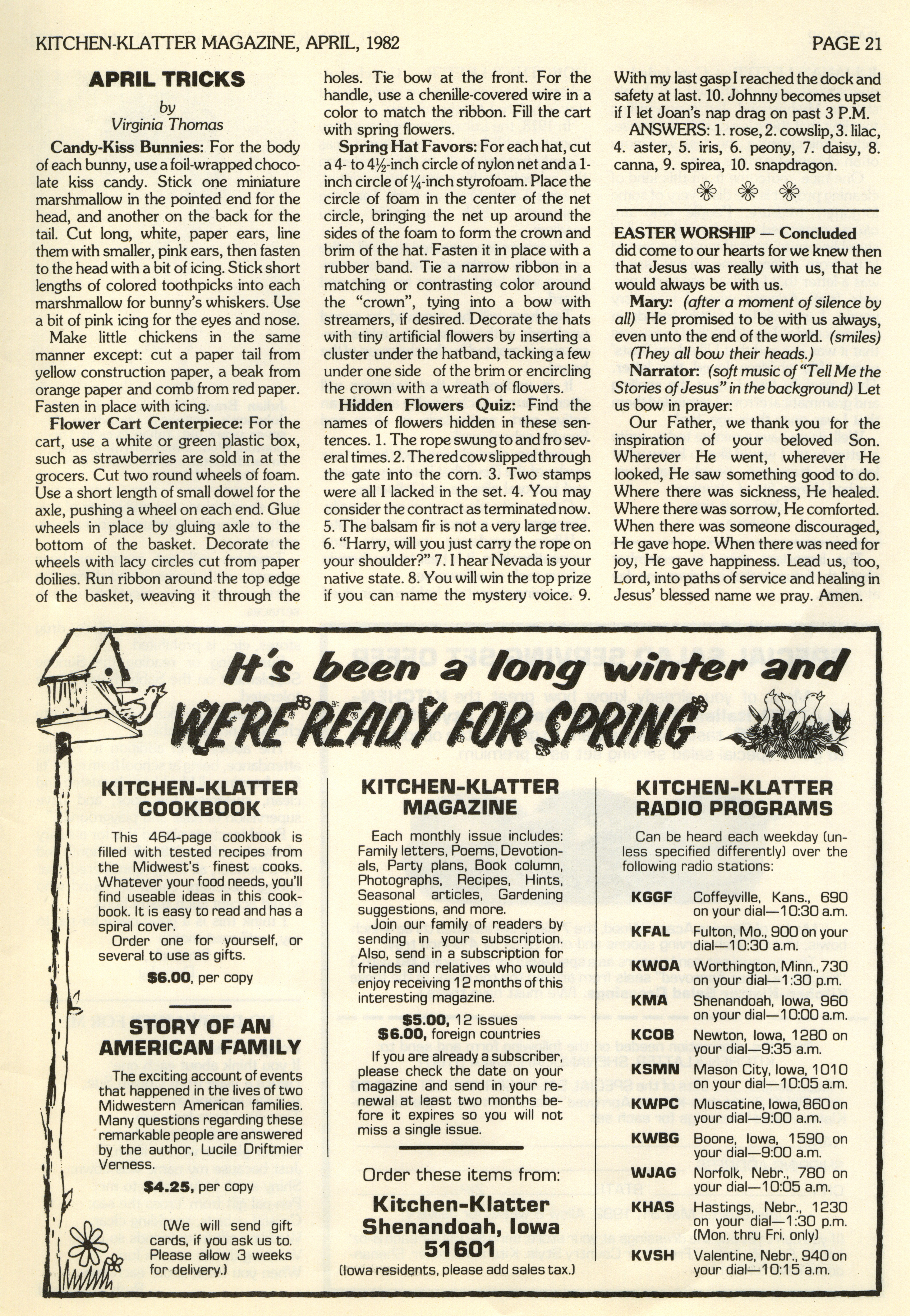 - "Kitchen-Klatter v. 46, n. 04, 1982", Kitchen-Klatter Magazine Issues, Iowa State University Library Digital Collections