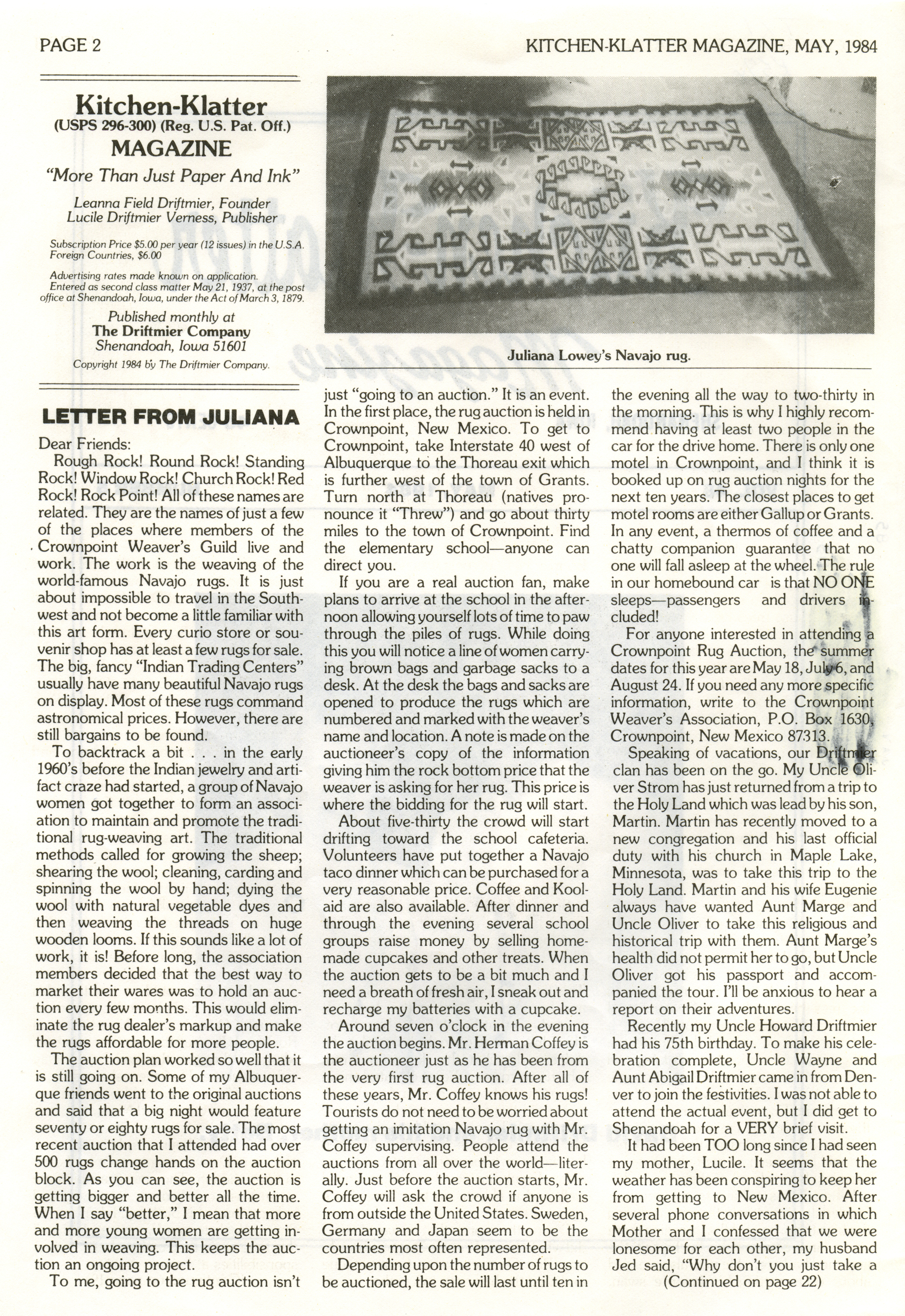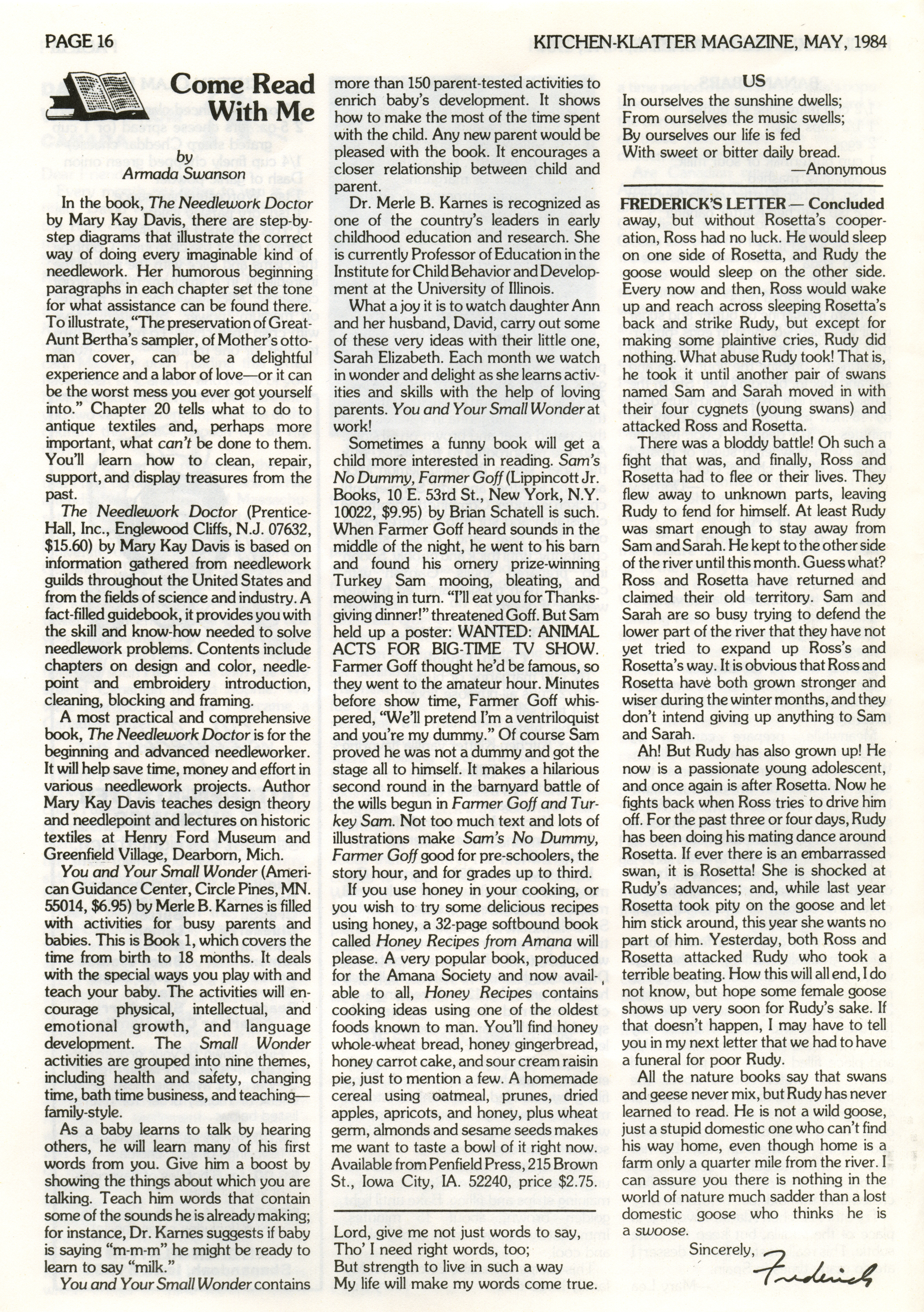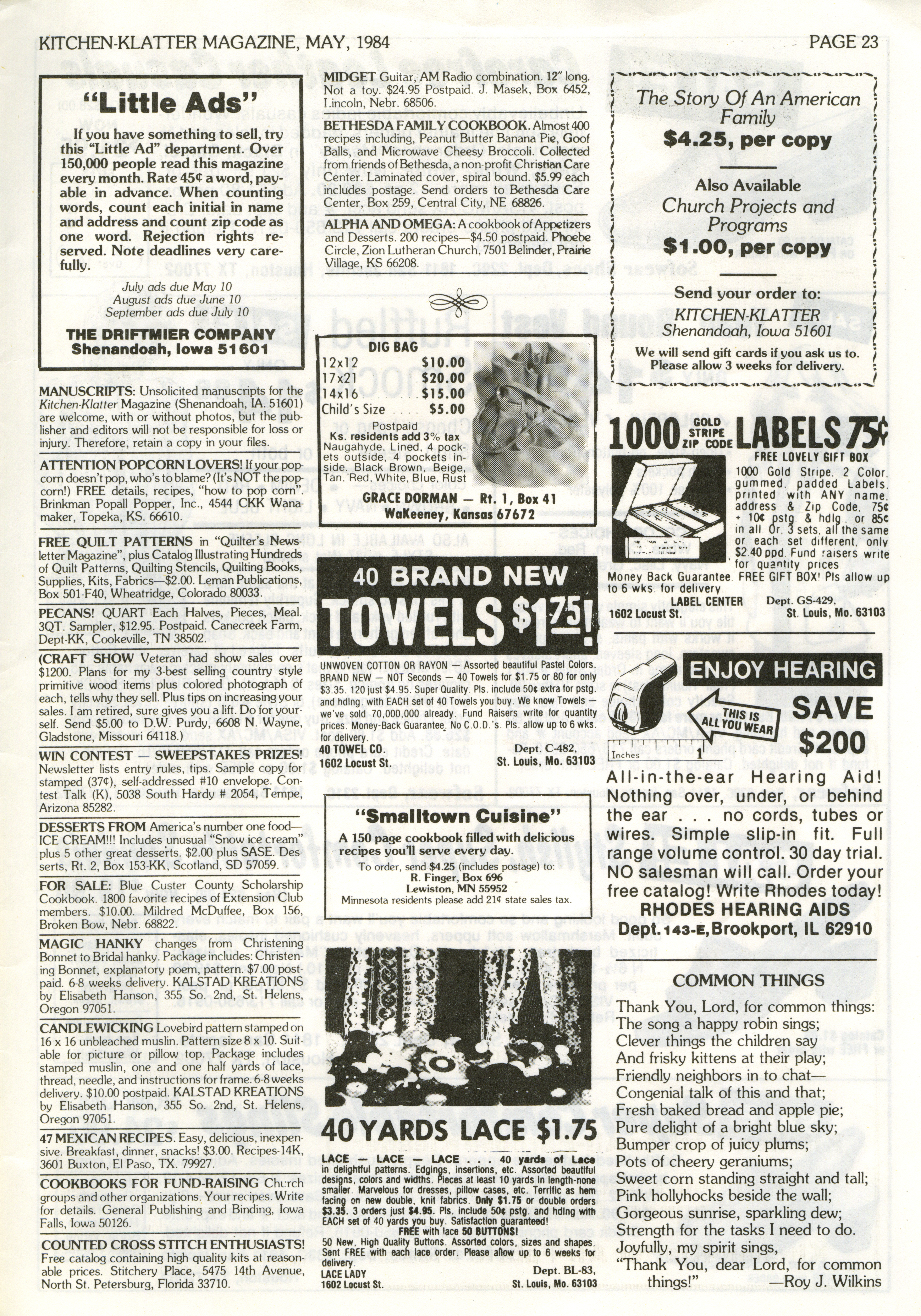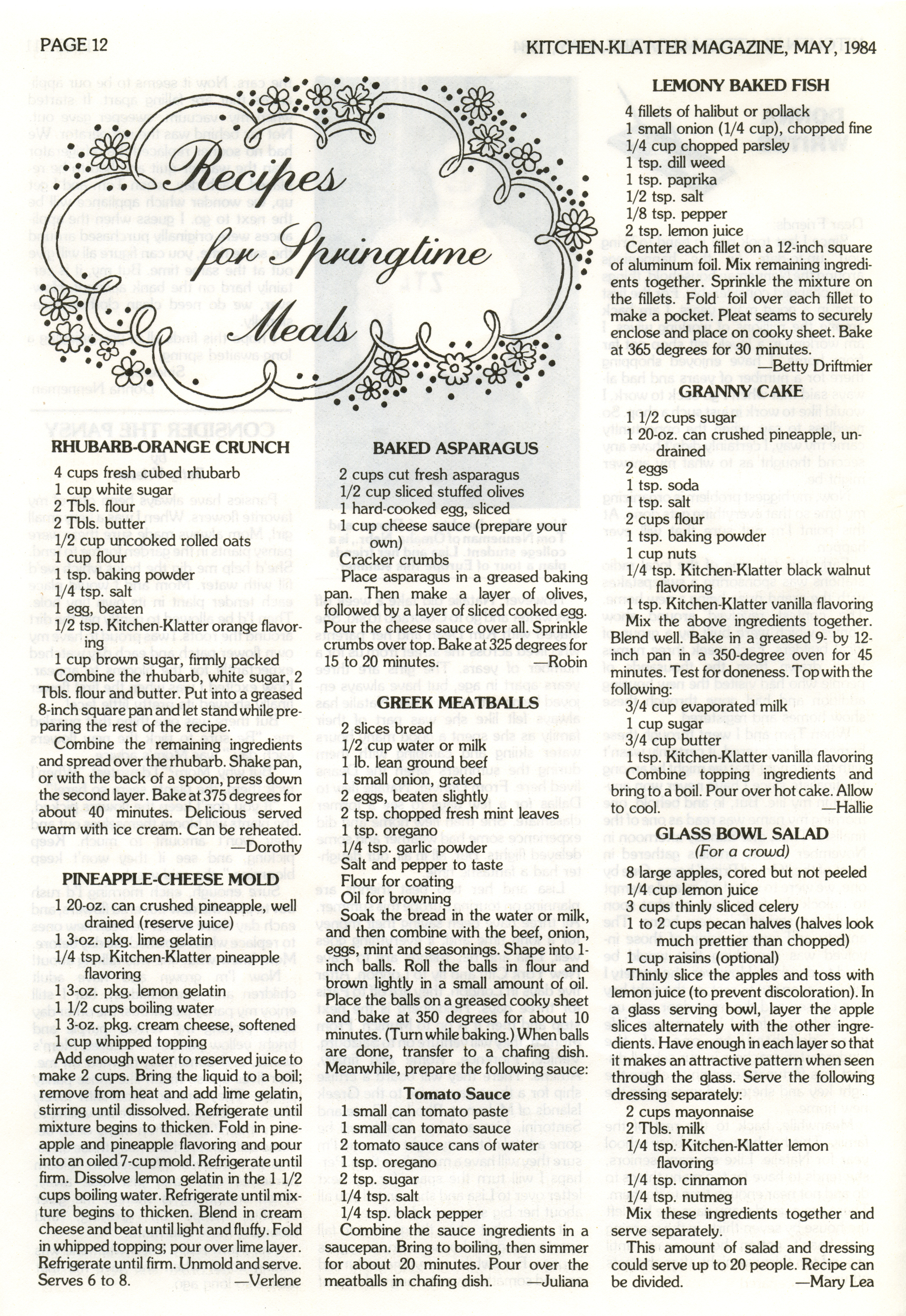 - "Kitchen-Klatter v. 48, n. 05, 1984", Kitchen-Klatter Magazine Issues, Iowa State University Library Digital Collections