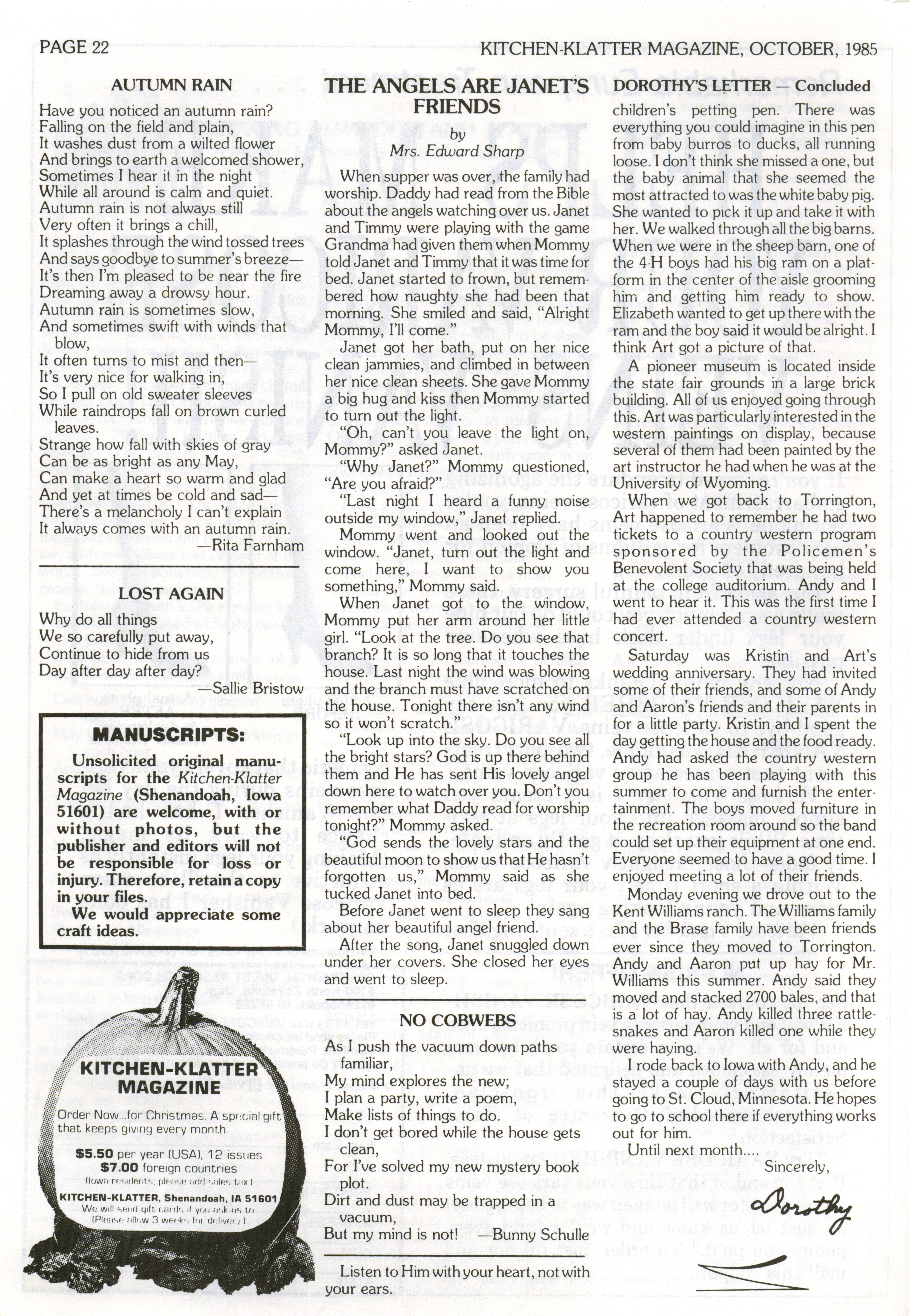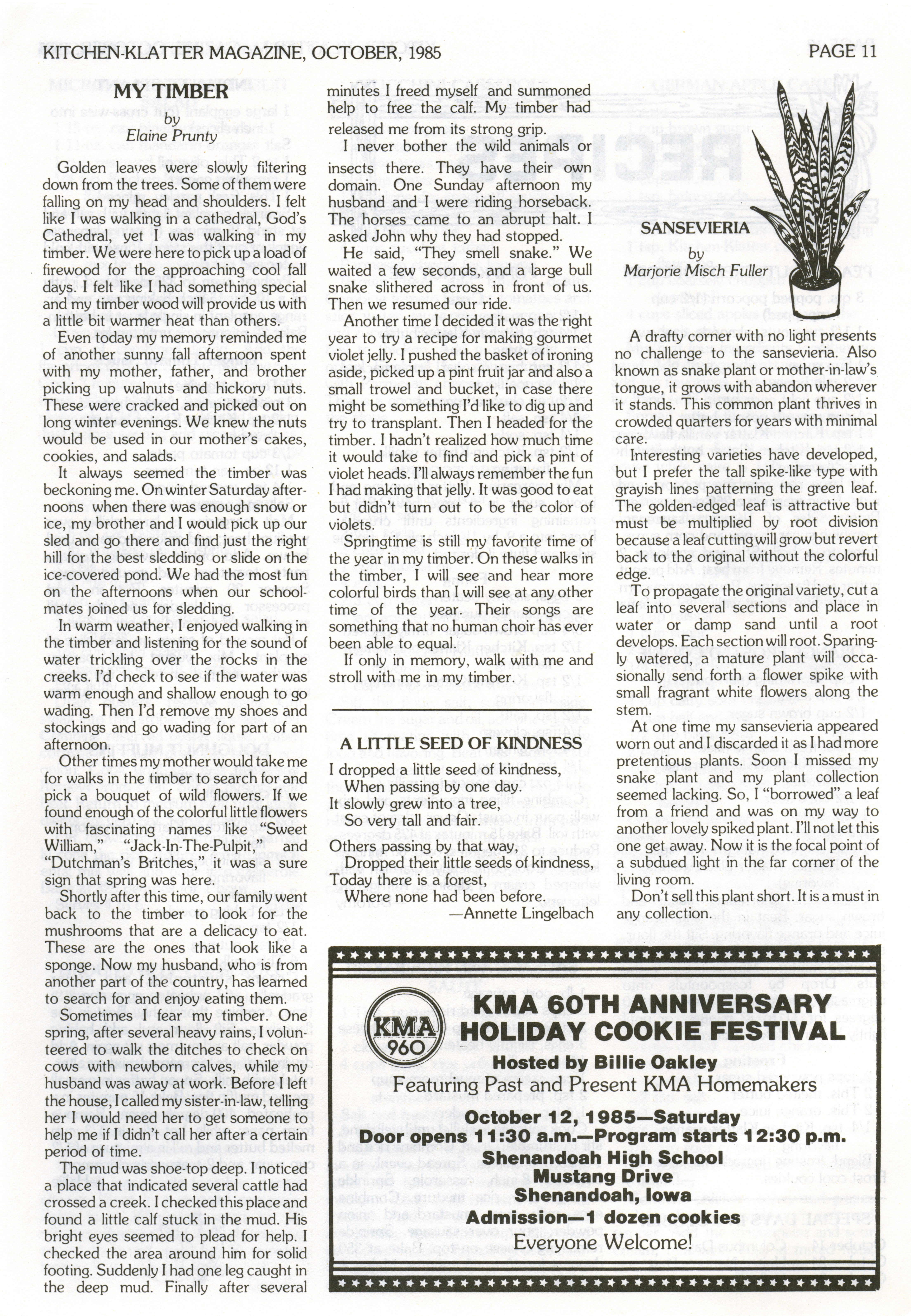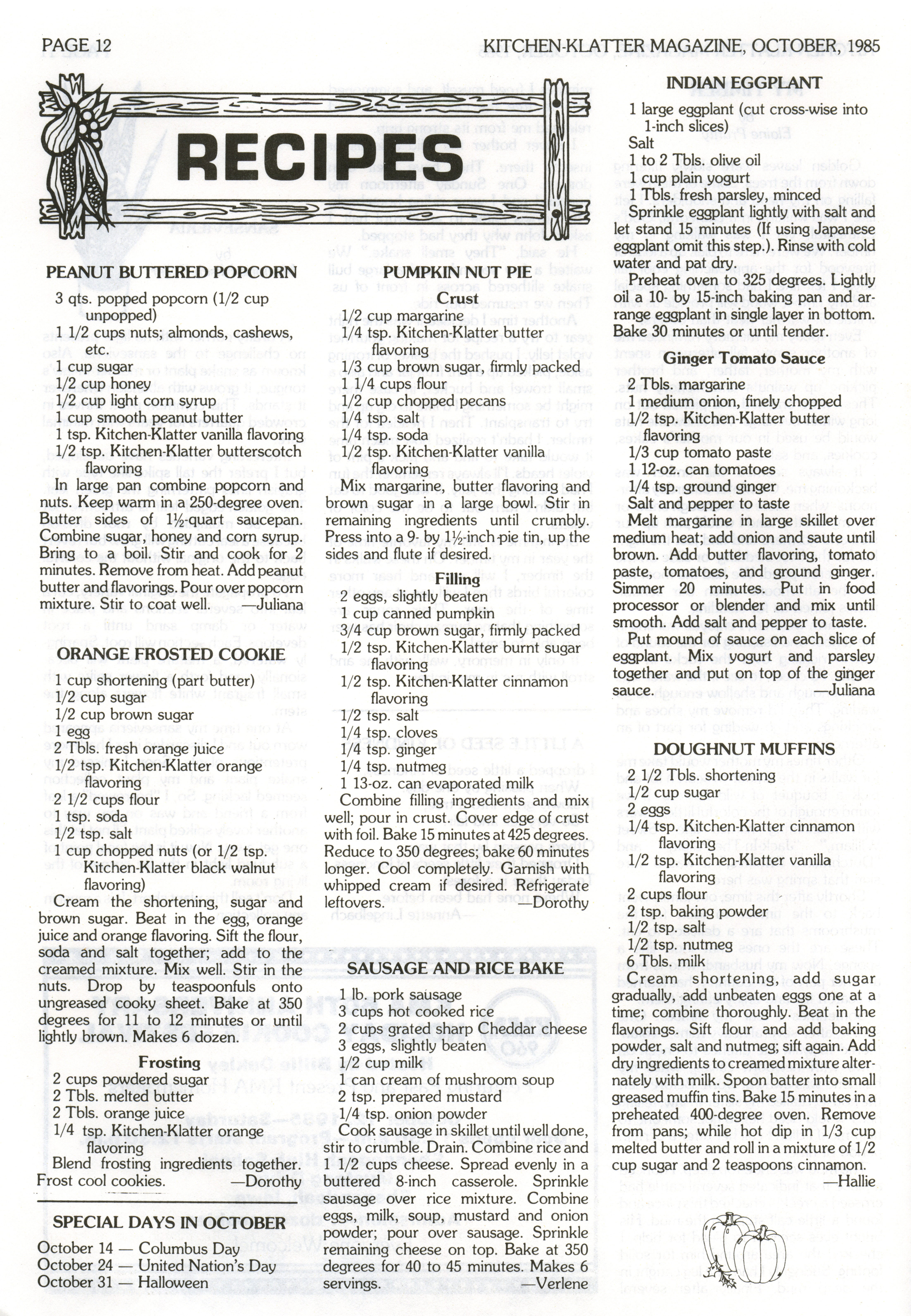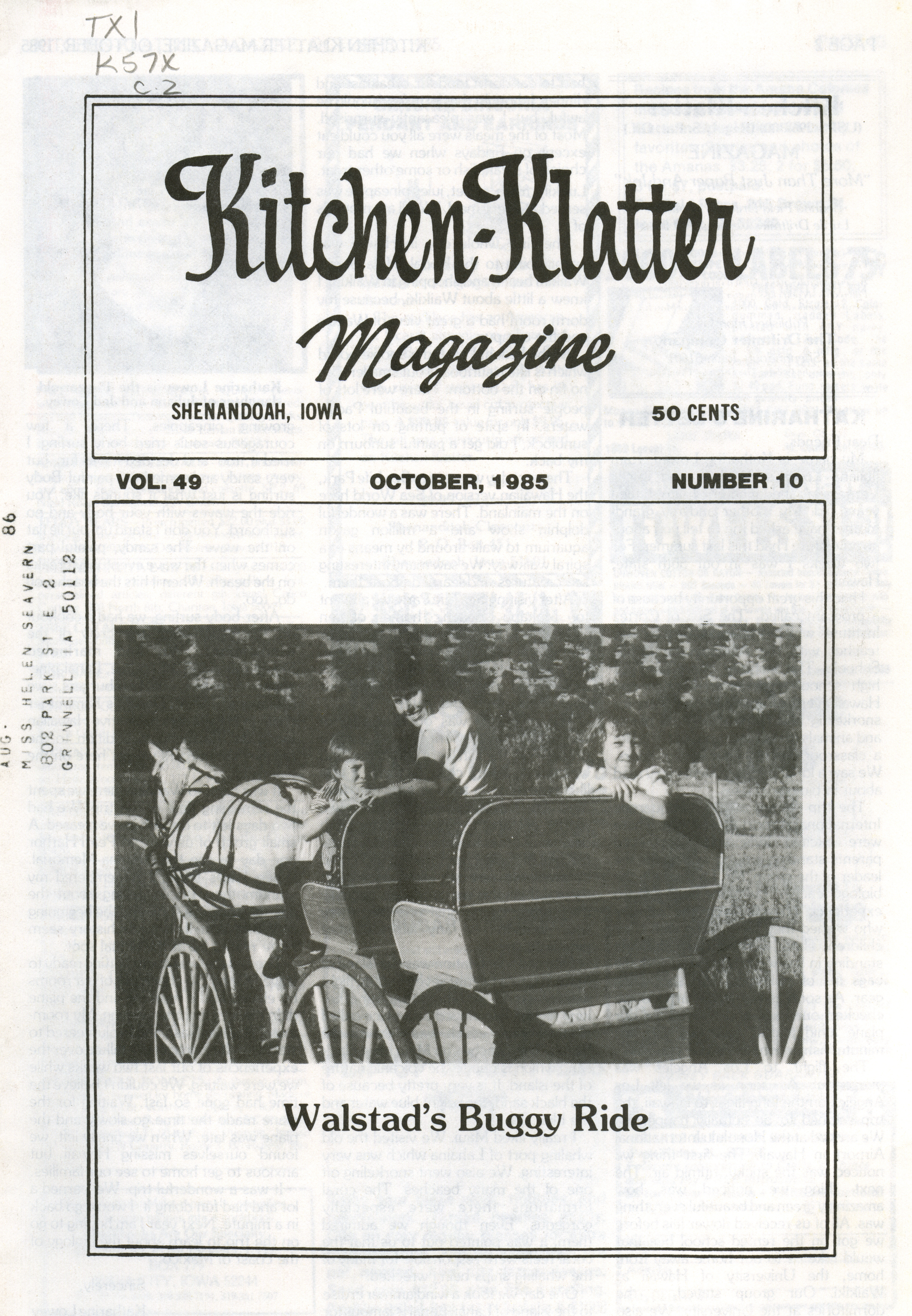 - "Kitchen-Klatter v. 49, n. 10, 1985", Kitchen-Klatter Magazine Issues, Iowa State University Library Digital Collections