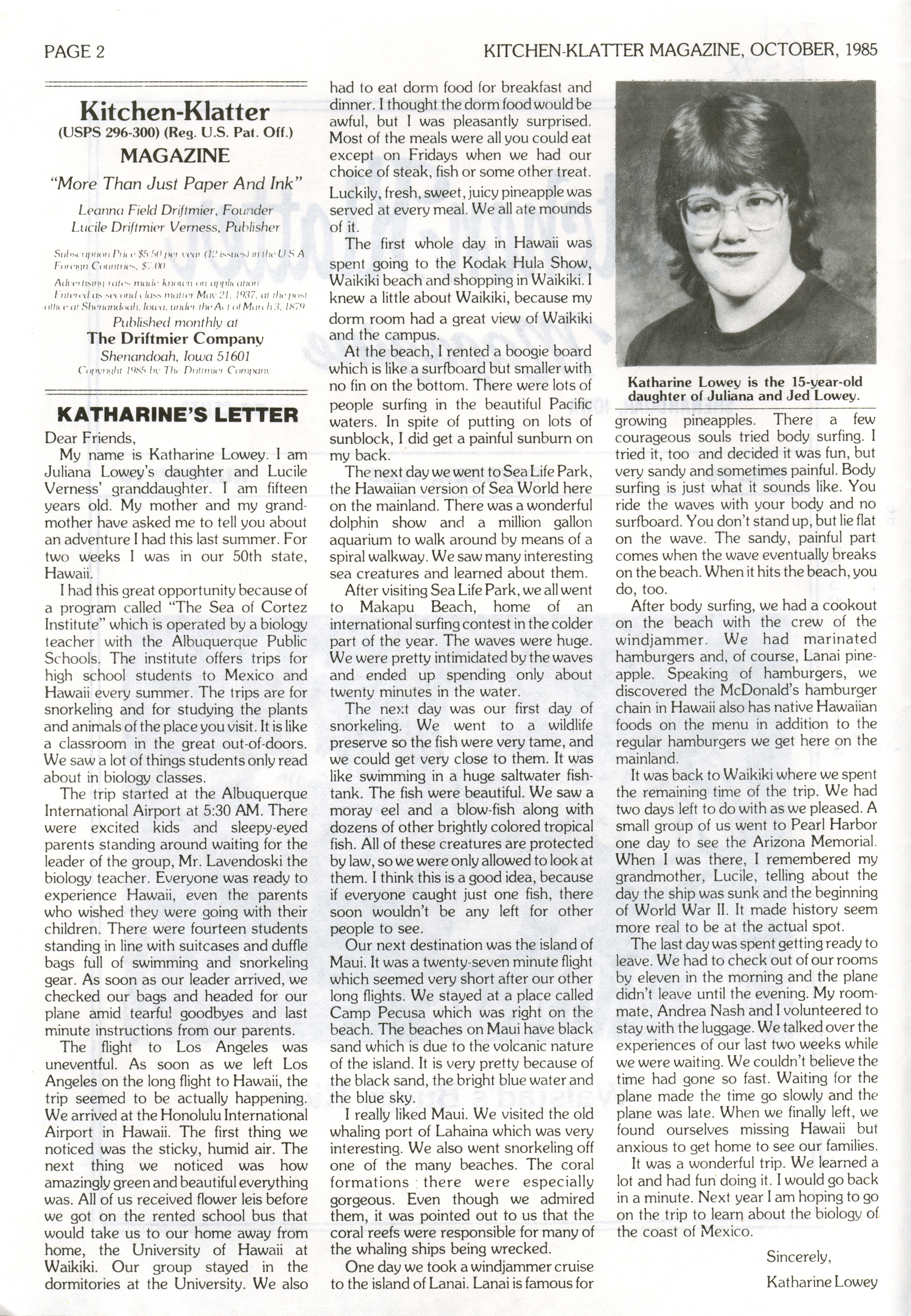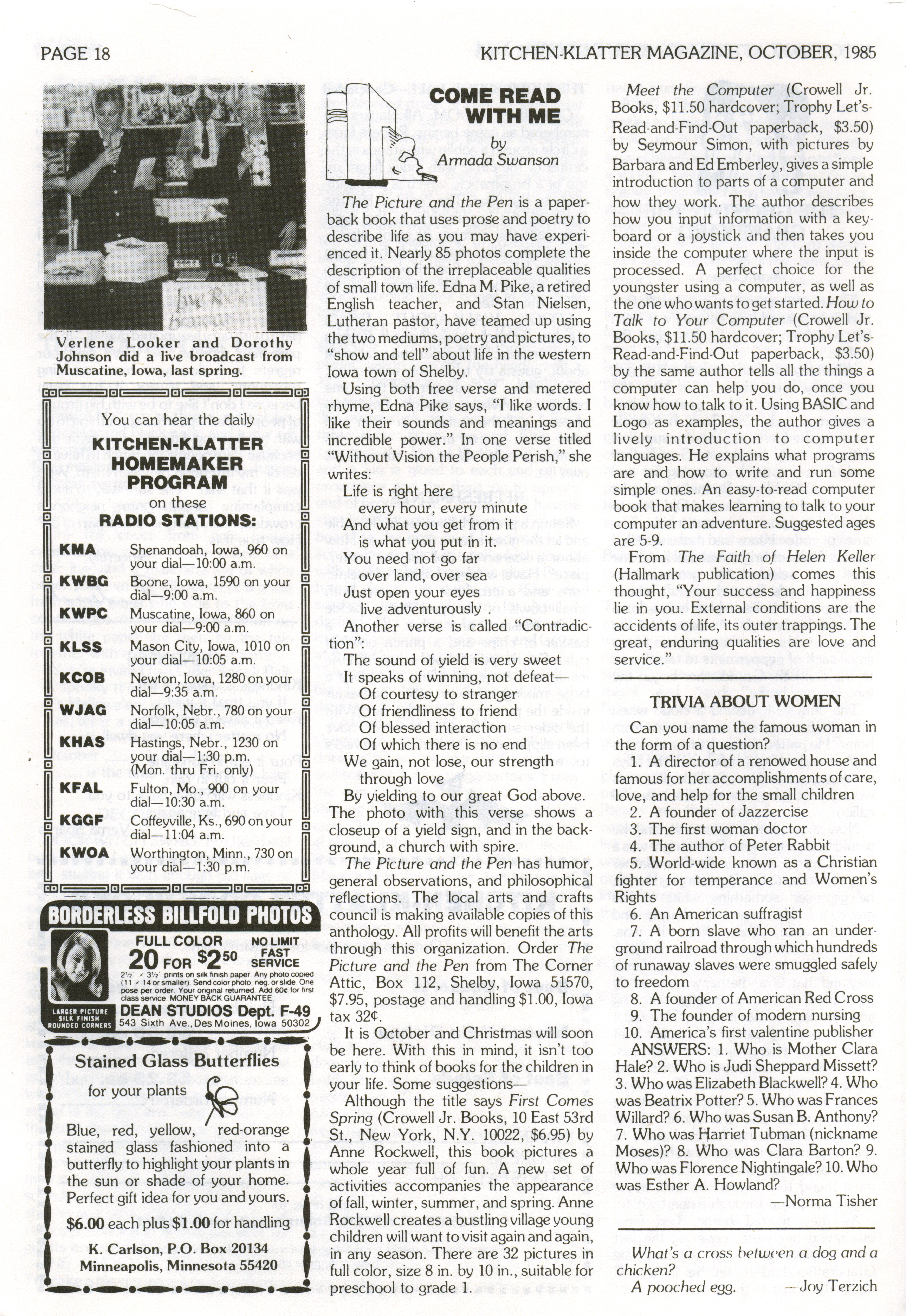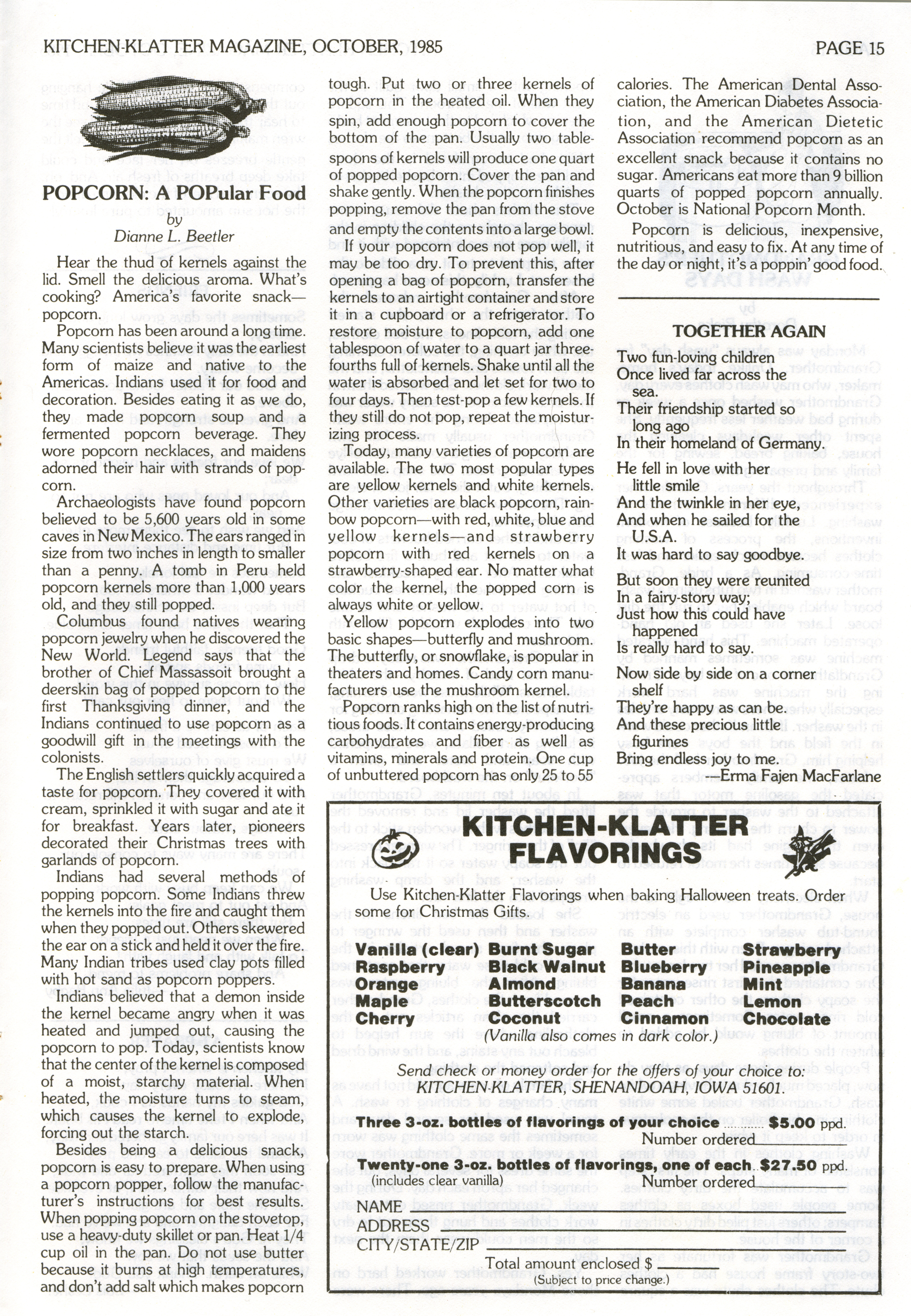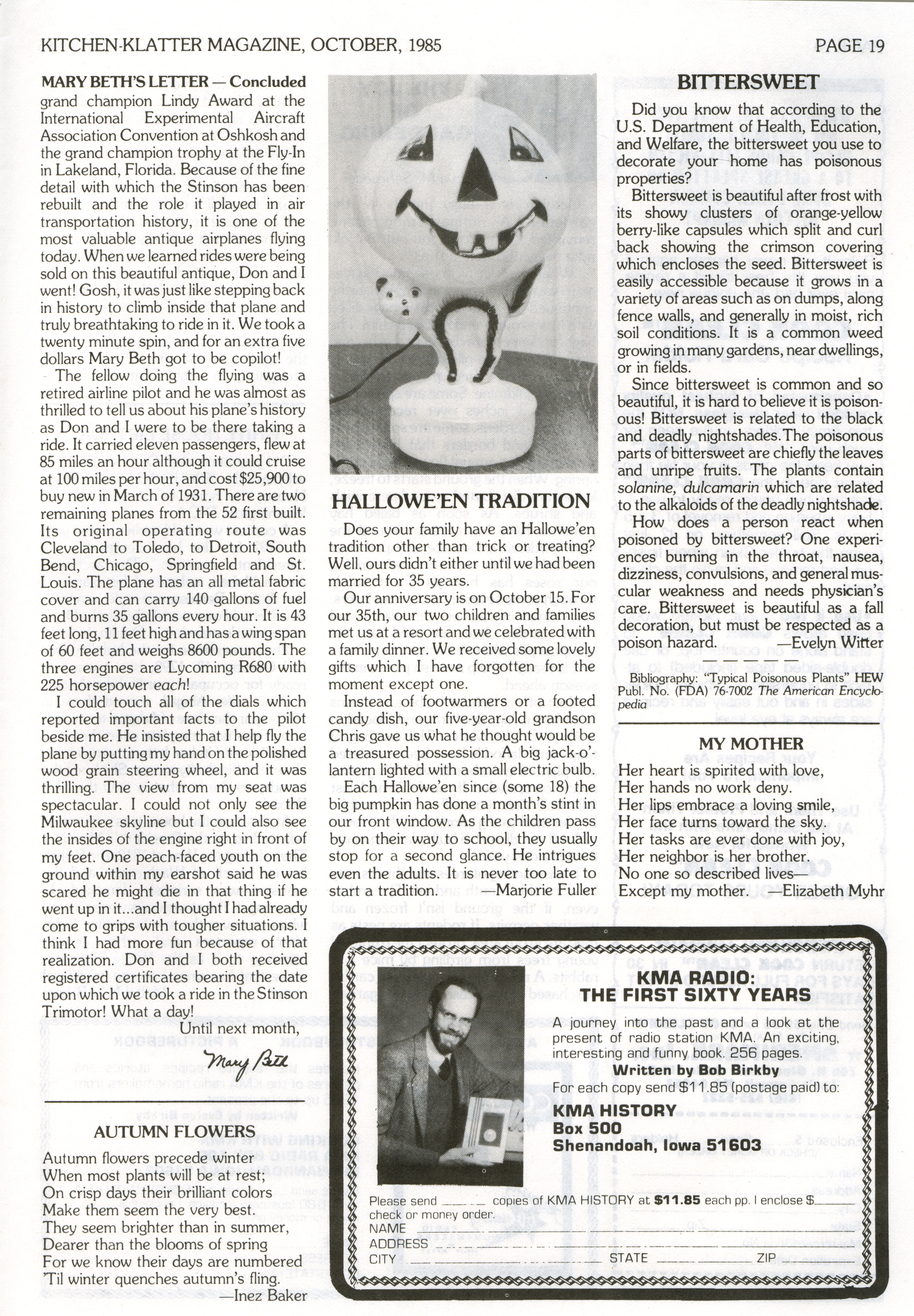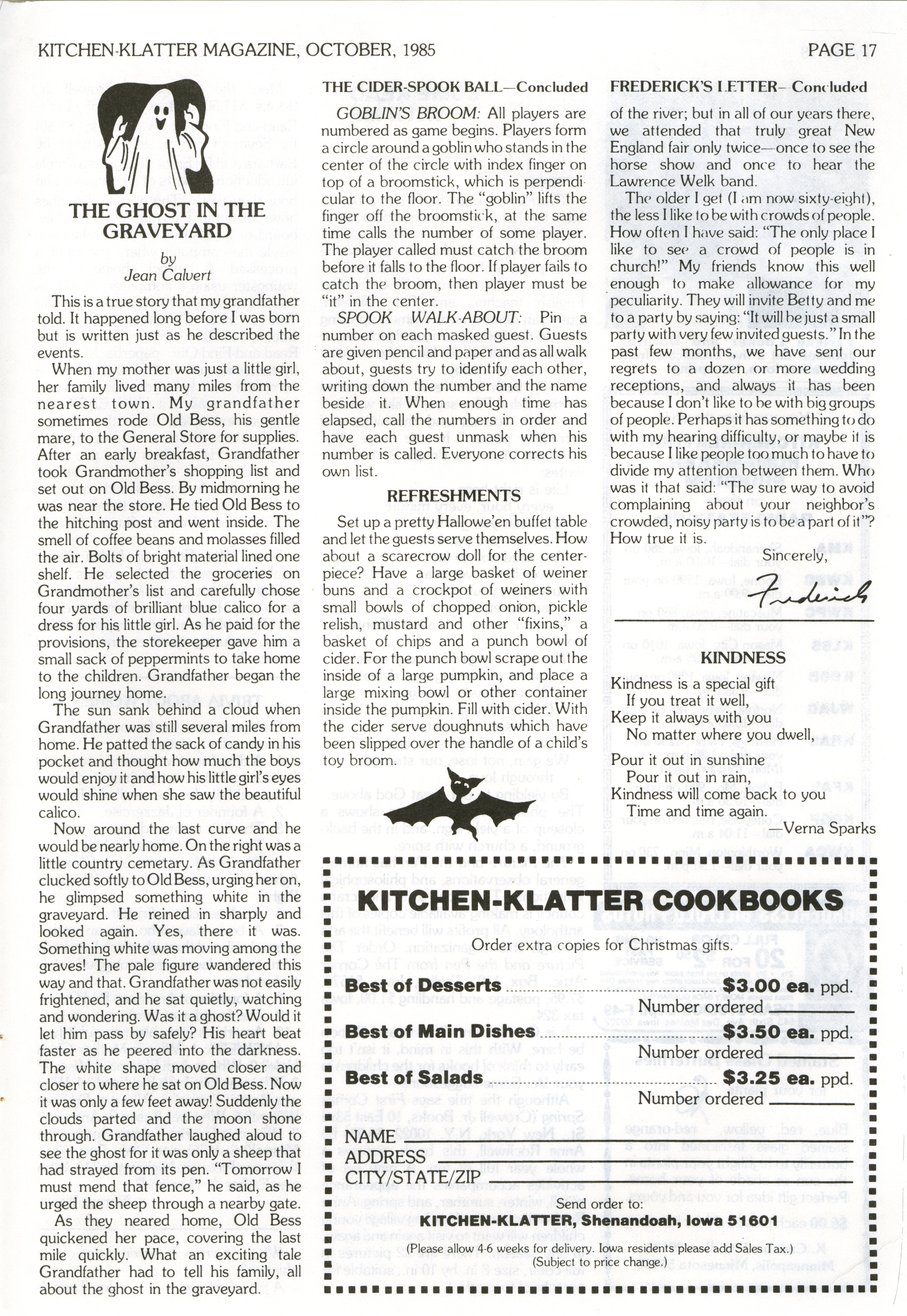 - "Kitchen-Klatter v. 49, n. 10, 1985", Kitchen-Klatter Magazine Issues, Iowa State University Library Digital Collections