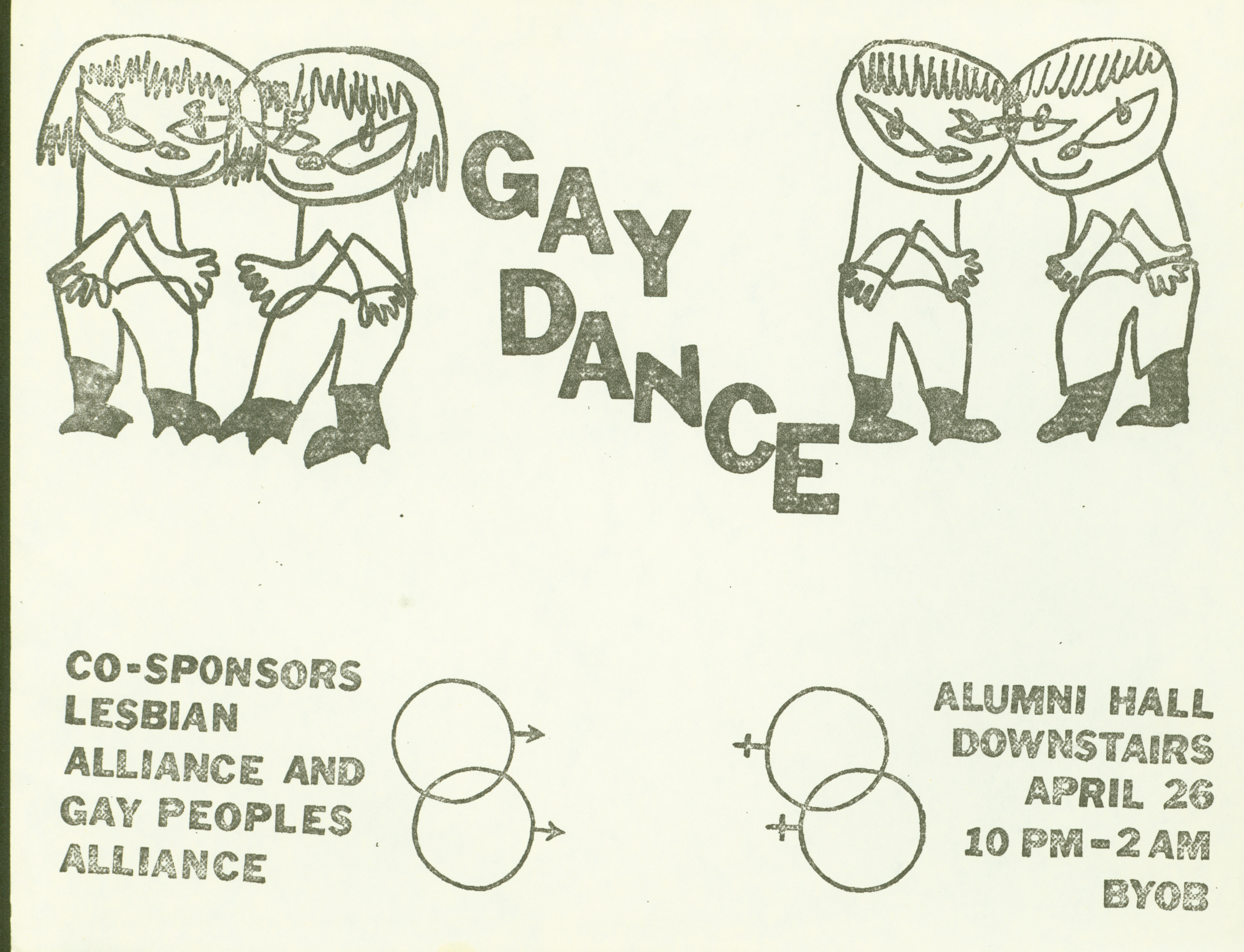 - "Gay dance flier", LGBT+ student life at Iowa State University collection, Iowa State University Library Digital Collections