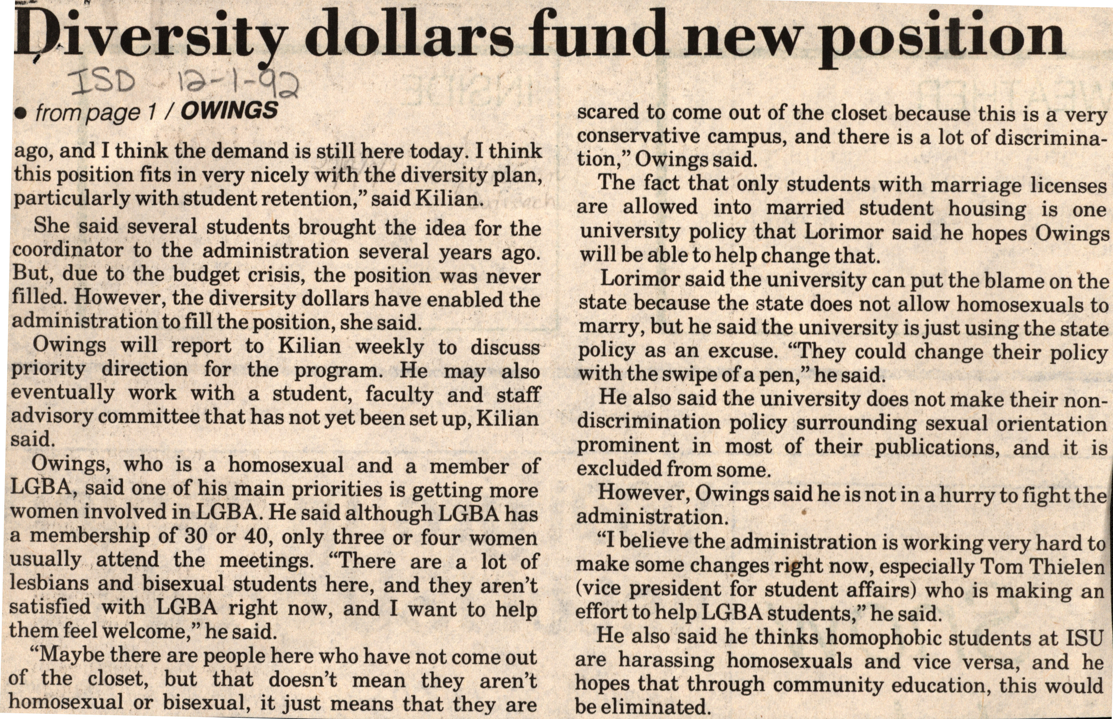 - Iowa State Daily article discussing Tom Owings, a graduate student, new role as a liaison for students who are LGBT on Iowa State University campus.