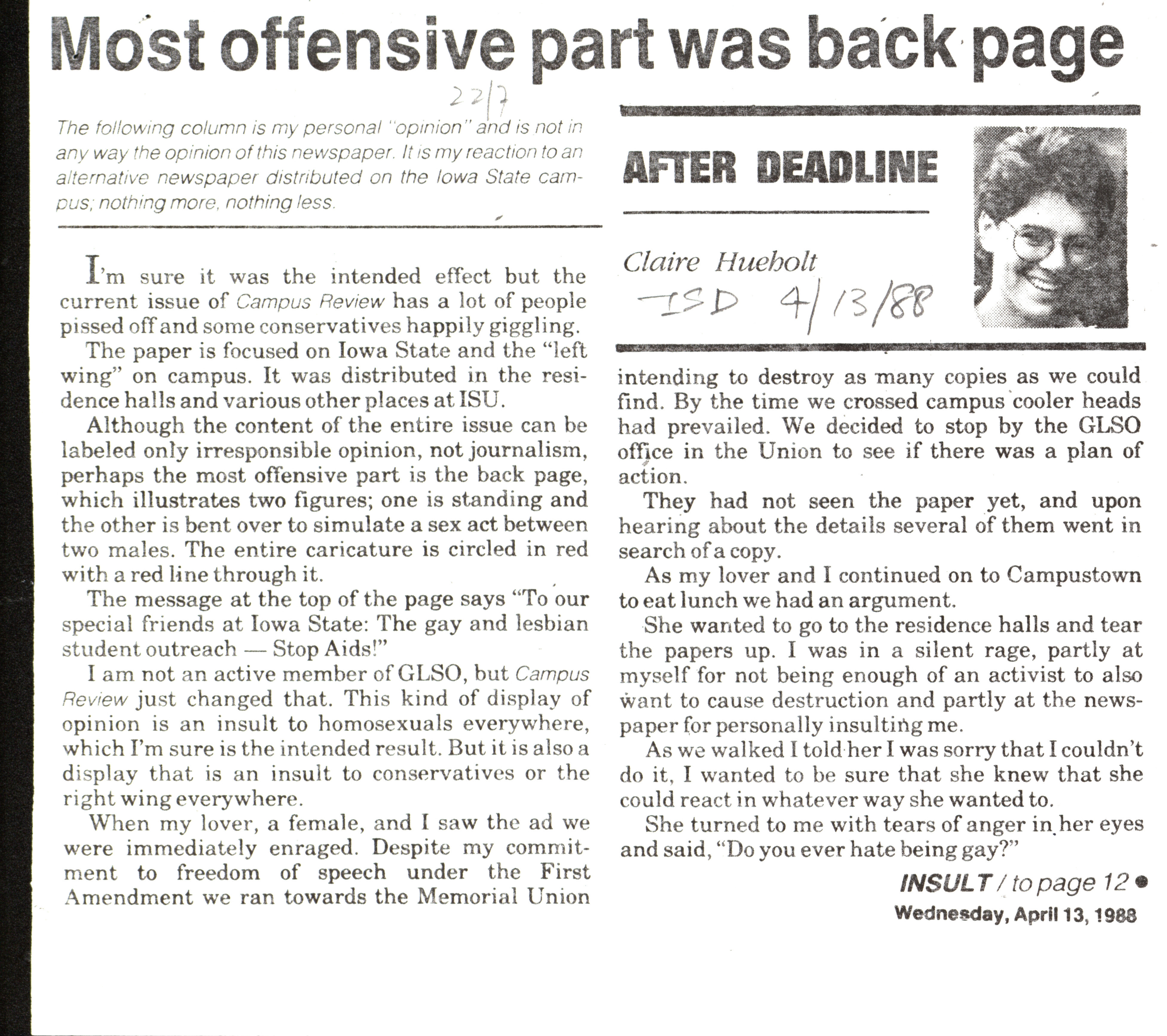 - Most offensive part was back page (Iowa State daily)