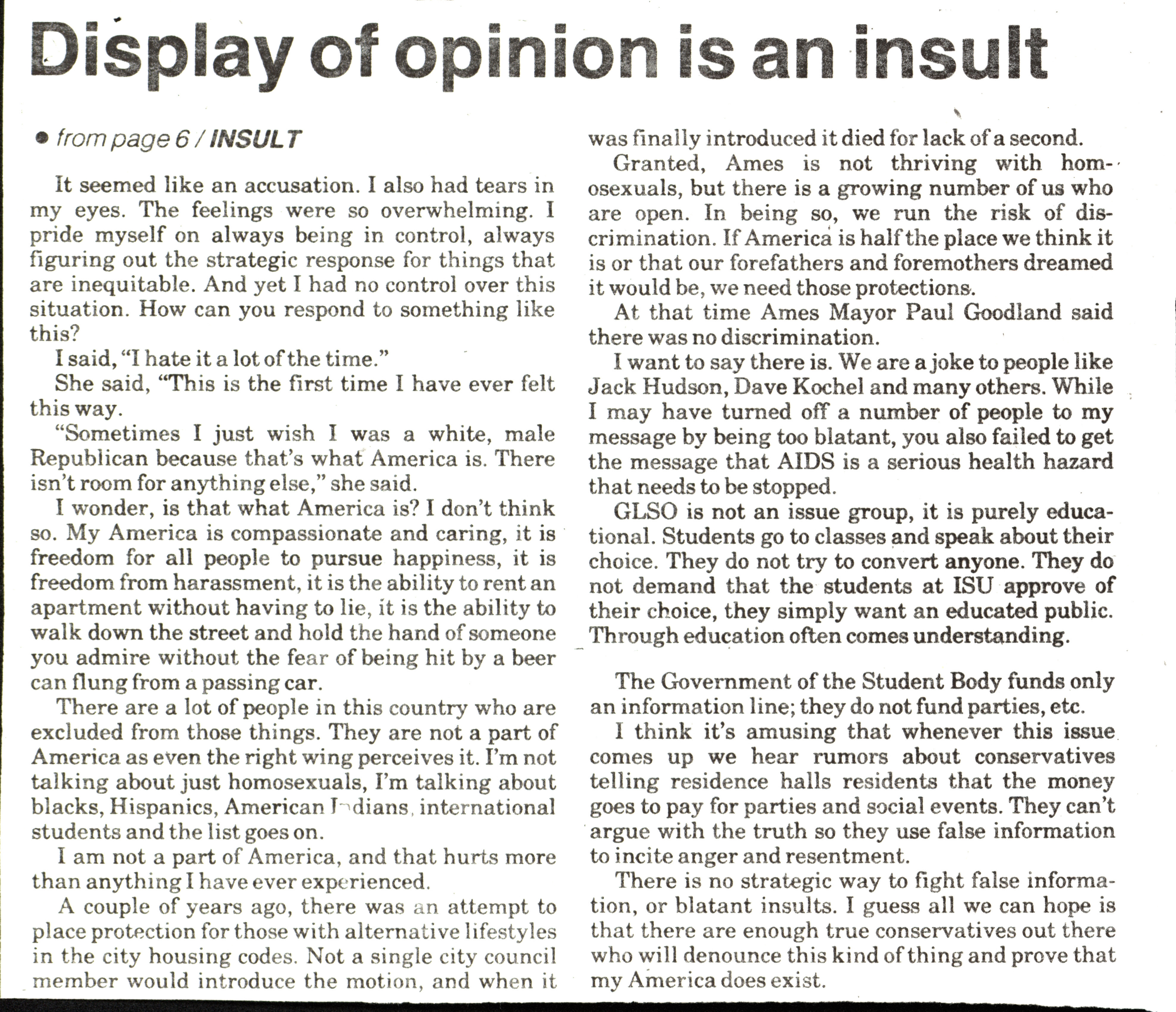 - "Most offensive part was back page (Iowa State daily)", LGBT+ student life at Iowa State University collection, Iowa State University Library Digital Collections