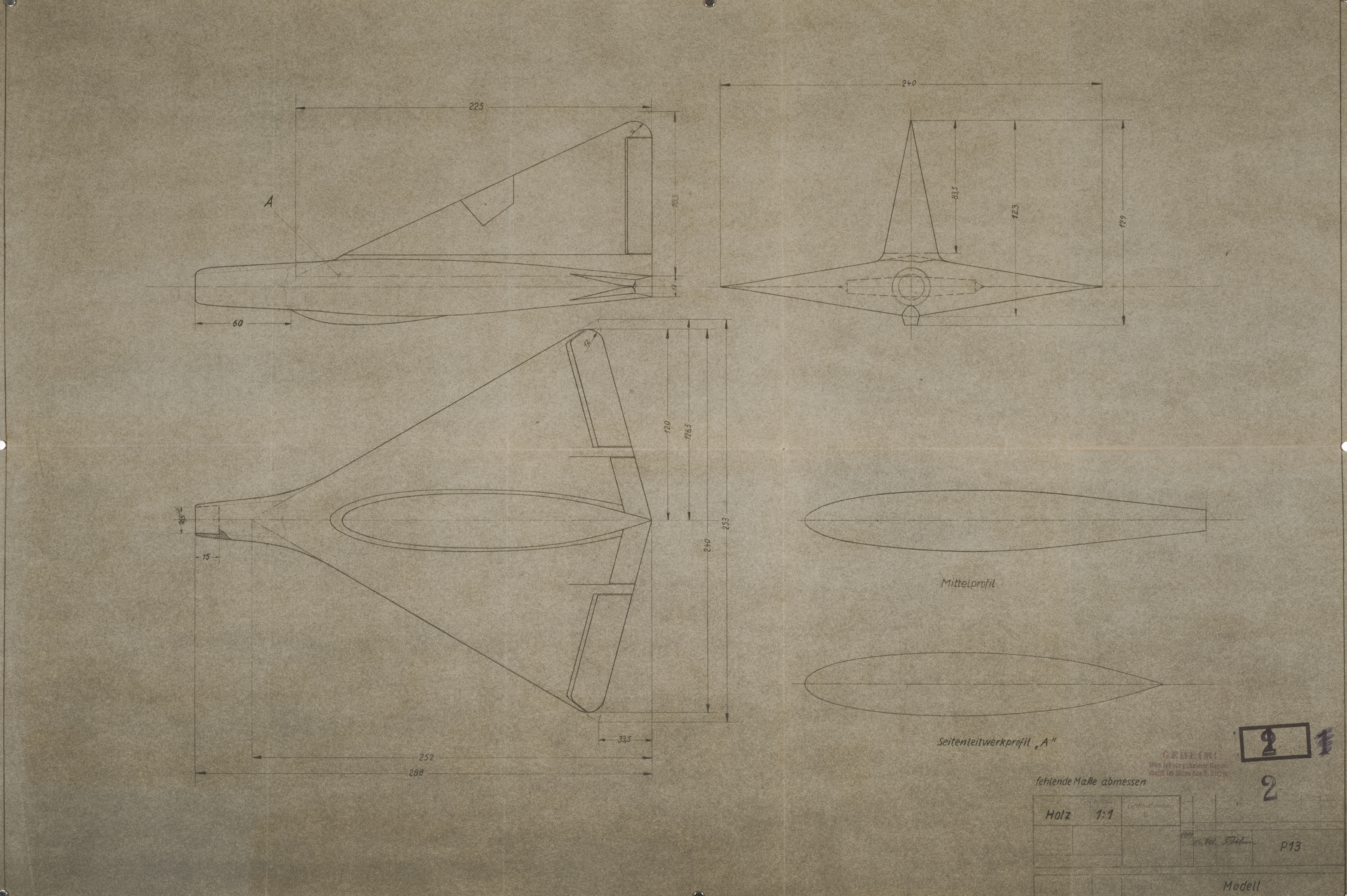 - Blueprint drawing of the P13 aircraft.