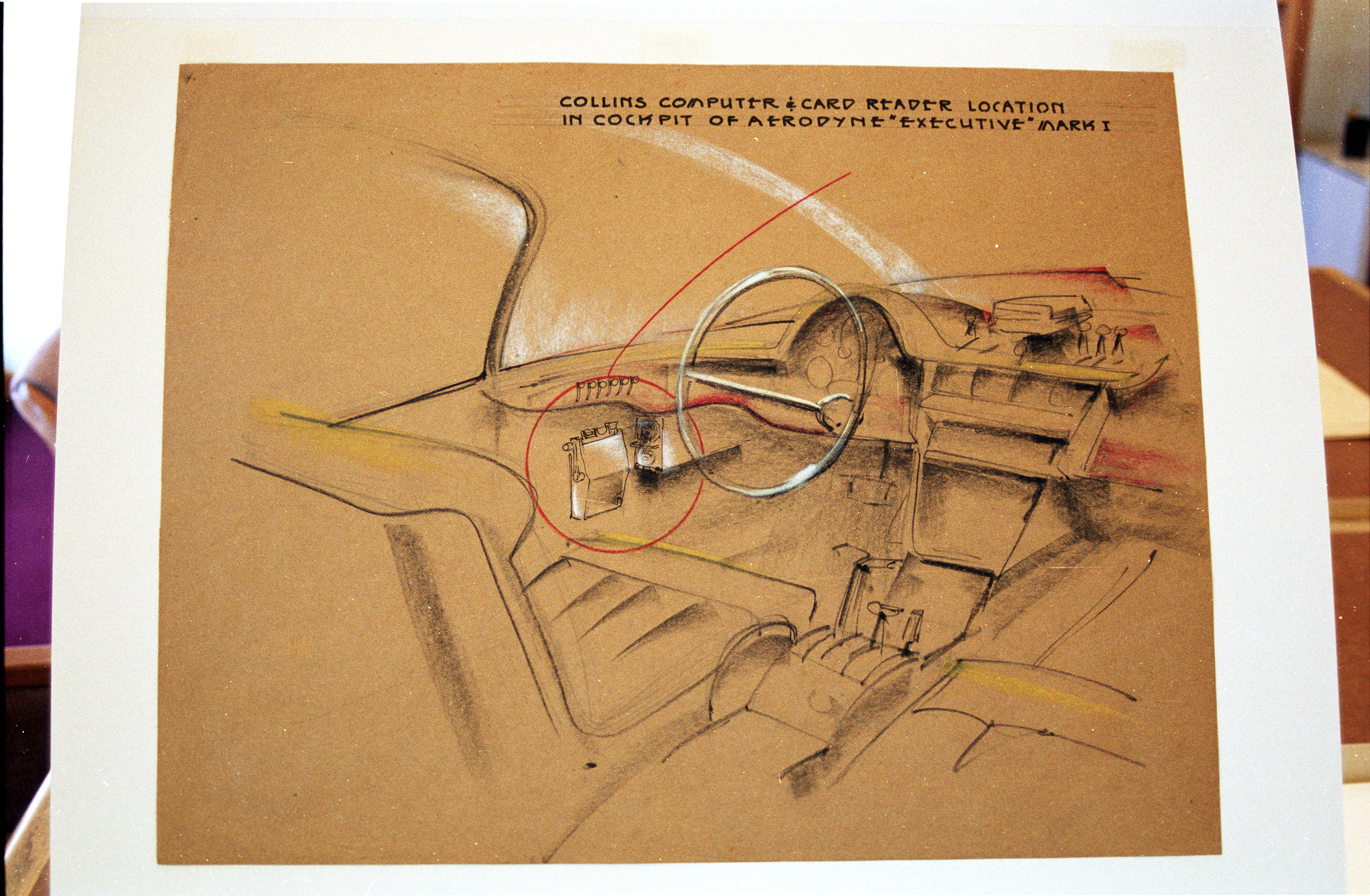 - Collins Computer & Card Reader Location in Cockpit of Aerodyne Executive Mark I conceptual drawing. Paper.