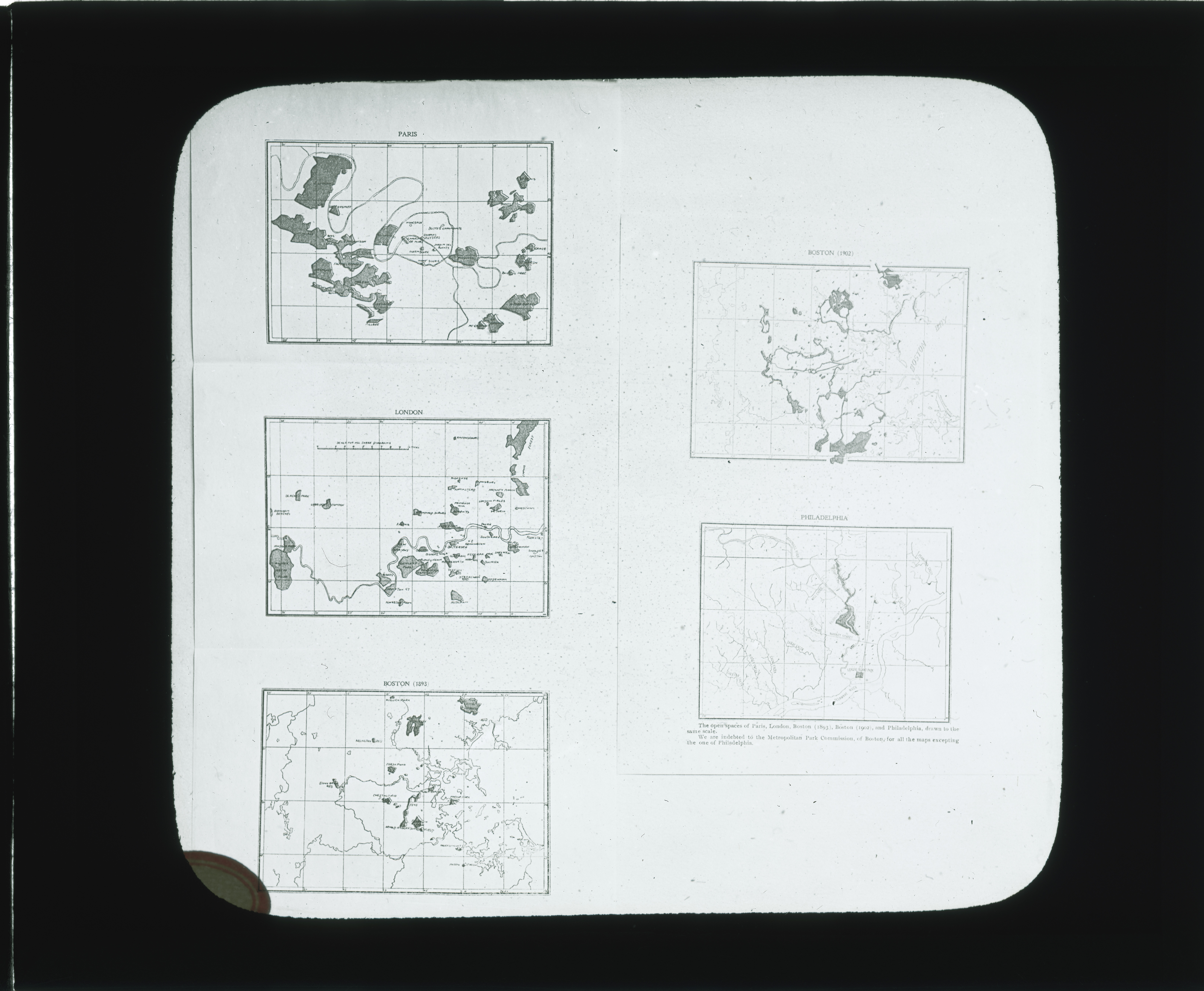 - Comparison of park areas of Paris, London, Boston (1893), Boston (1902), Philadelphia.