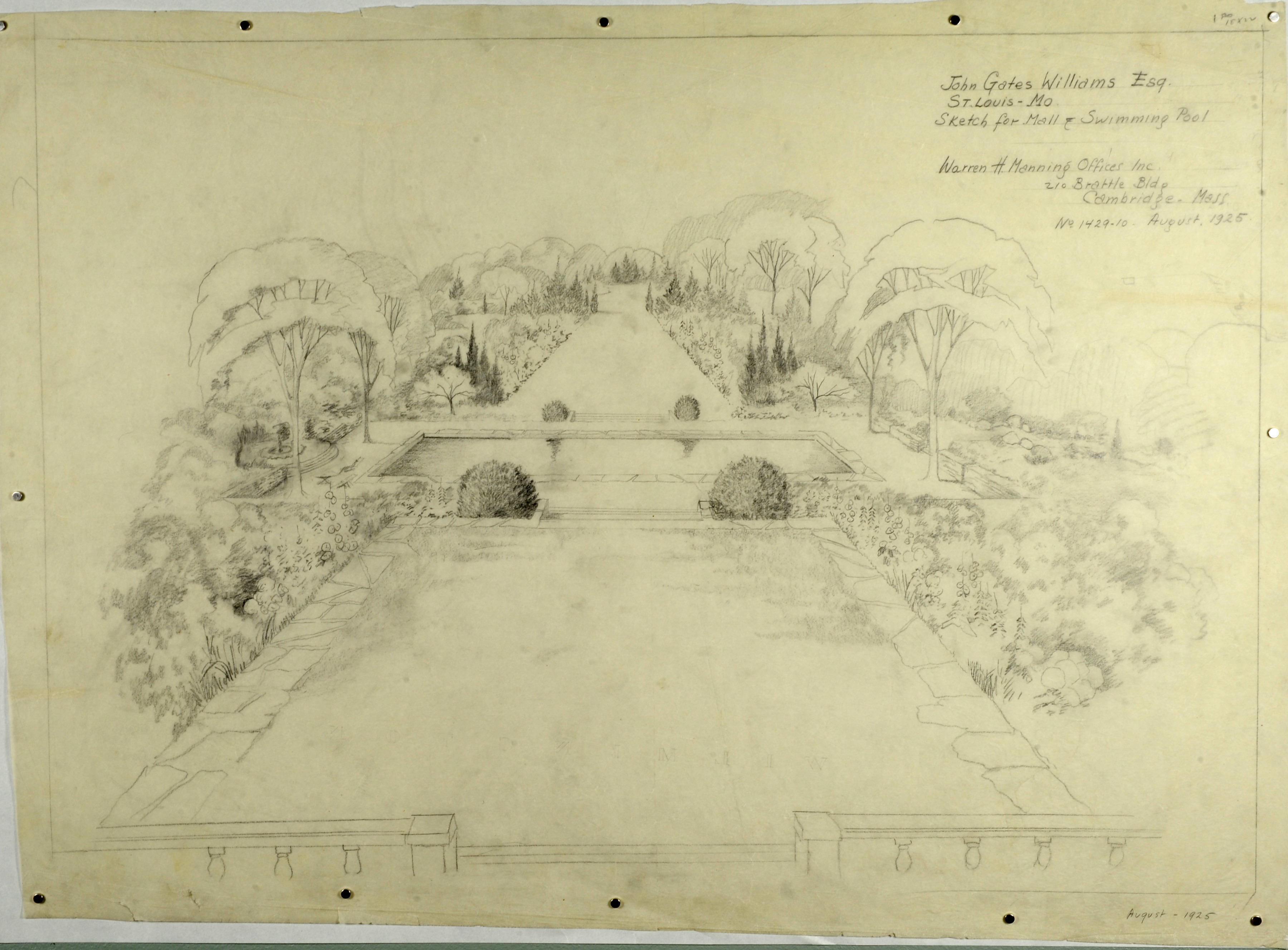 - Sketch for mall and swimming pool for John Gates Williams, Saint Louis County, Missouri, August 1925. Pencil on tracing paper. Dimensions: 21.5 x 30". Project number: 1429